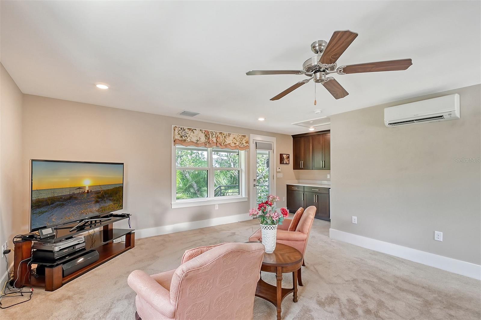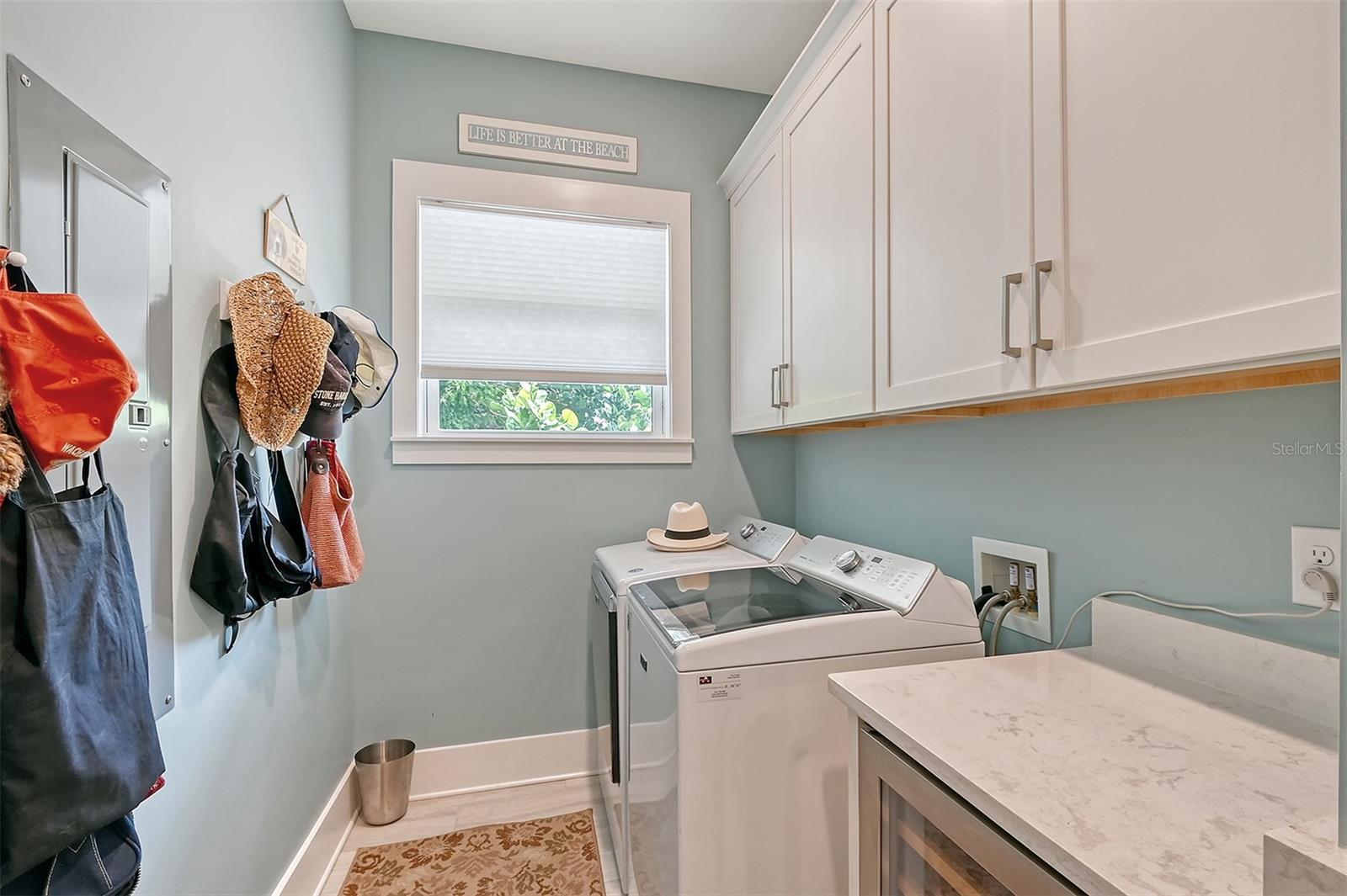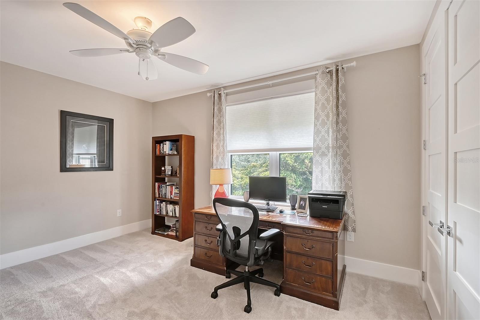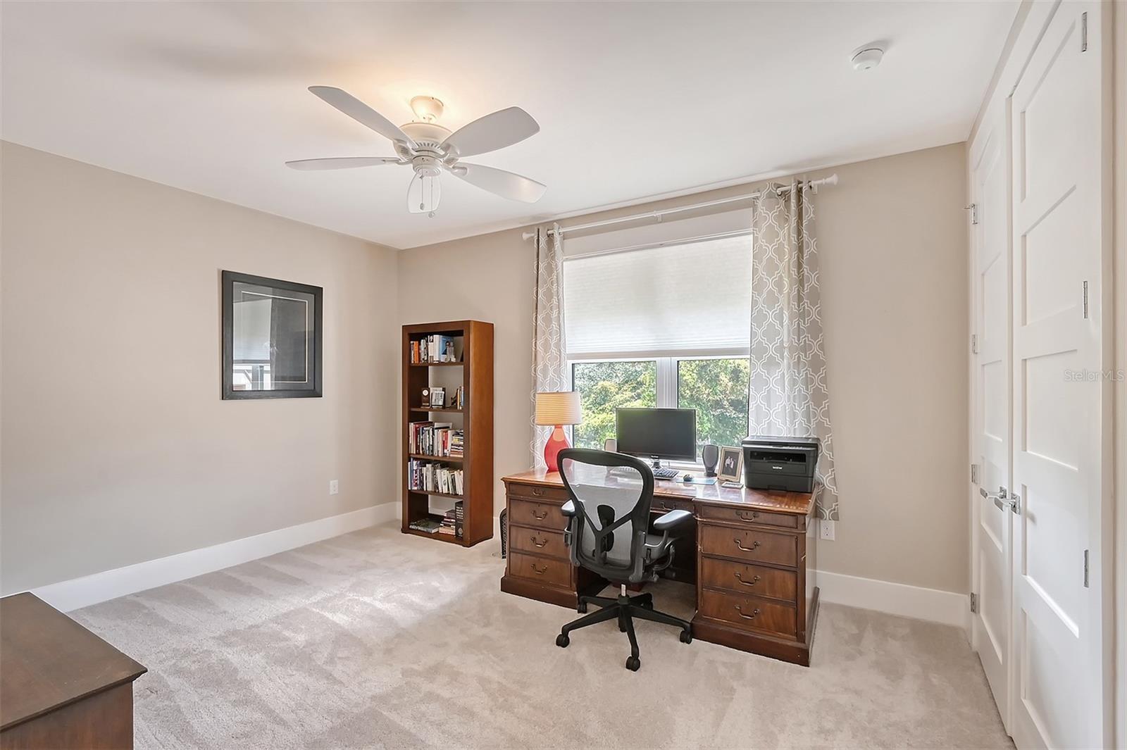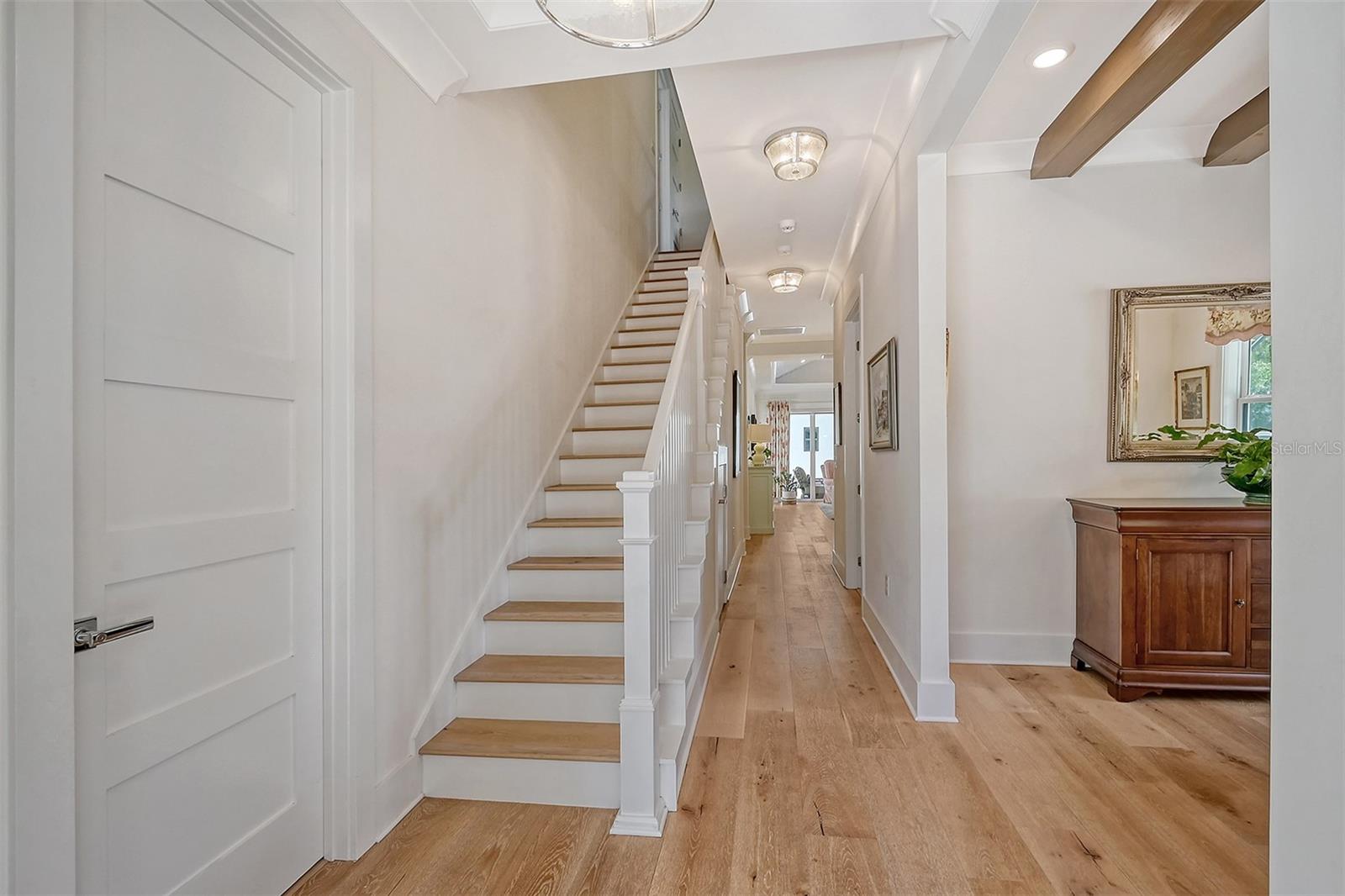 Welcome to Downtown Sarasota’s Historic Laurel Park. A hidden gem within the bustling city, offering a perfect blend of traditional design and coastal charm. This exceptional residence, built in 2018 presents an opportunity for urban living in a serene walkable neighborhood. Upon entering, one is greeted by wood flooring, plank ceilings, and enhanced baseboards and crown molding. Encompassing a flexible floorplan, the main house is complemented by a guest house above the two-car garage. At the heart of the home, the chef’s kitchen is adorned with top-of-the-line appliances including a 6-burner Thermador Professional gas range, Mid Continent Cabinetry and quartz waterfall countertops. The kitchen seamlessly flows into the great room featuring a wood plank vaulted ceiling and sliding glass doors leading out to the covered lanai, offering a perfect blend of indoor/outdoor living. The first-floor primary suite is a haven boasting a tray ceiling with wood plank, French doors to the lanai, two walk-in custom California closets, and a spa-inspired bathroom with a large dual vanity, walk-in shower and freestanding soaking tub. Upstairs, a central loft serves as the perfect bonus room or media room, while two additional large bedrooms and two full bathrooms provide ample space. The studio apartment above the garage serves as the fourth bedroom, complete with a full bathroom and a private entry, making it the ideal space for guests, an art studio, or home office. The outdoor oasis is a refreshing retreat featuring a natural tone travertine deck that leads to a heated pool with waterfall feature. An outdoor kitchen, nestled under a wood pergola, is fully equipped with a built-in grill, beverage refrigerator, and sink. The covered lanai, equipped with electronic retractable screens, seamlessly integrates indoor and outdoor living. Fully fenced outdoor entertaining area, along with an electric gate on the driveway, ensures privacy and security. Additional: high impact windows and doors, window treatments throughout, smart home devices, reverse osmosis water filtration system, wired ethernet throughout, new pool pump (May 2023), new pool heater (March 2022), and new mini-split a/c unit in guest house above garage (Dec 2023). Historic Laurel Park is a walkable neighborhood, offering easy access to grocery stores, Bayfront Park, Downtown Farmers Market, shopping, dining, and cultural entertainment. This downtown oasis presents an unparalleled opportunity to embrace a vibrant urban lifestyle within a serene and picturesque community.