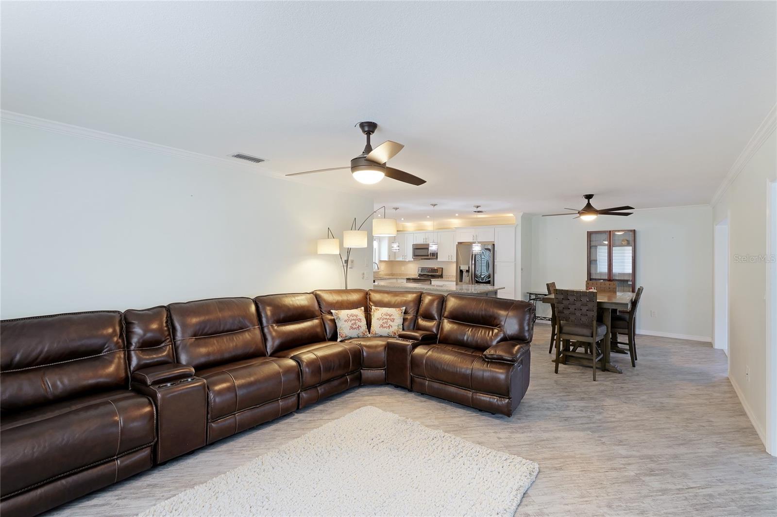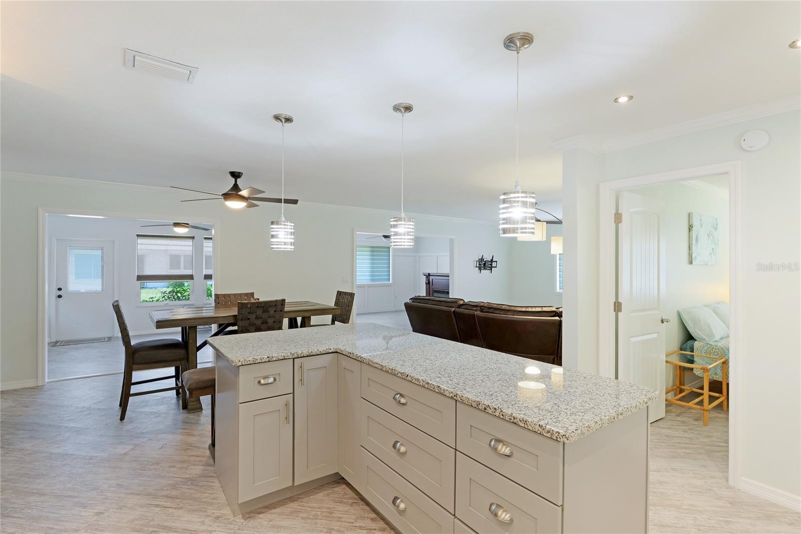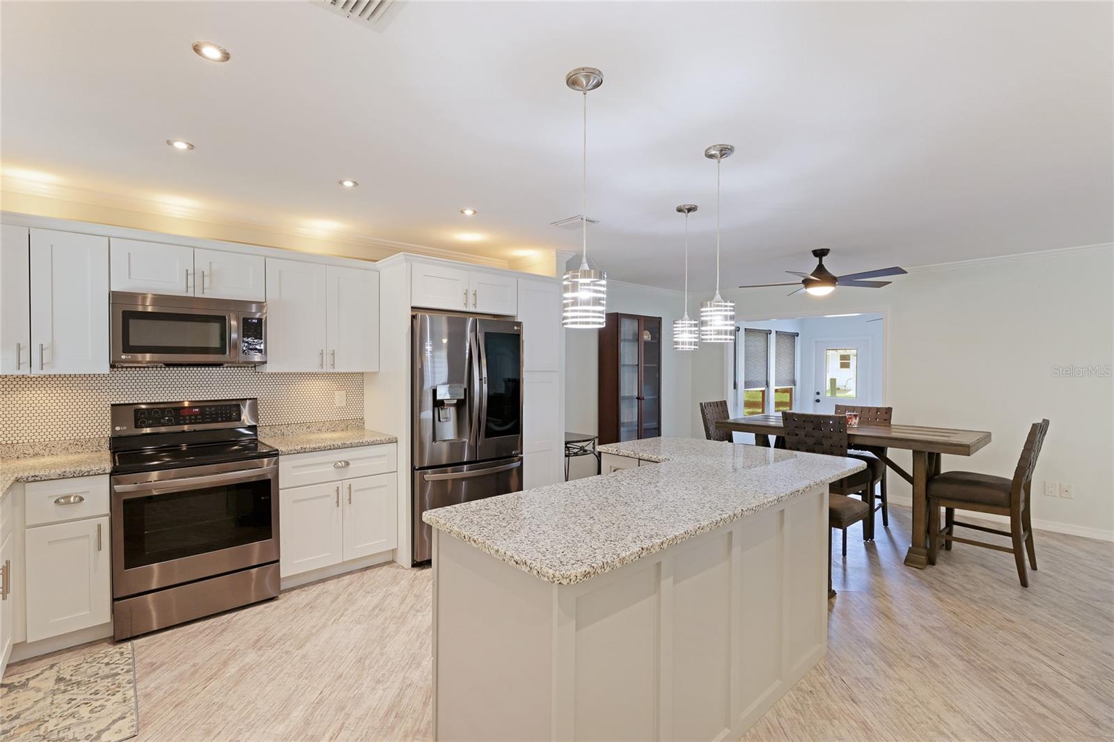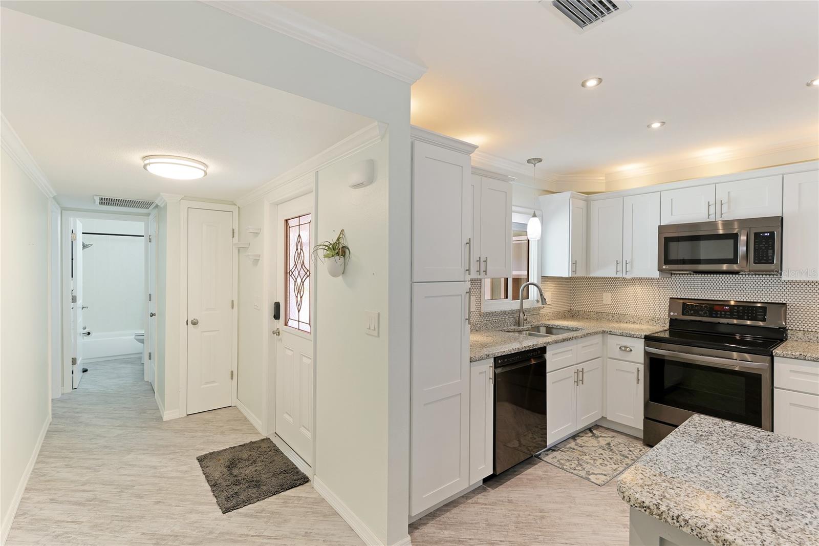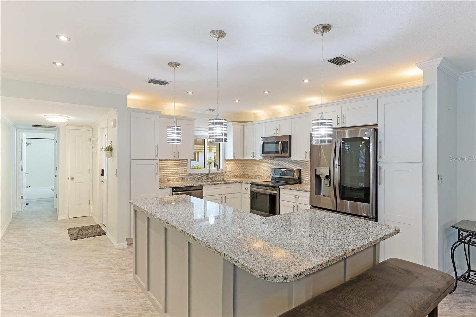 **THIS PROPERTY QUALIFIES FOR A 1.5% LENDER INCENTIVE IF USING PREFERRED LENDER. INQUIRE FOR MORE DETAILS.** Welcome to this exquisitely remodeled, maintenance-free villa in the 55+ community of Strathmore Riverside Villas. This stunning home comes furnished and features 2 bedrooms and 2 bathrooms, offering just under 1,500 sq ft of luxurious living space. No detail has been overlooked in the comprehensive remodel, ensuring a modern and comfortable living experience. Boating enthusiasts will love the community marina, which offers boat slips on a first-come, first-served basis and provides direct access to the intracoastal waterway through Phillippi Creek. The home boasts recent updates including a brand-new roof installed in 2024, covered by the HOA, and a new HVAC system installed in 2022, giving you peace of mind and years of worry-free living. You are greeted by a covered carport that includes convenient storage, private laundry room, and a charming covered entryway that invites you into the home. Upon entering, you'll be captivated by the premium vinyl waterproof flooring, elegantly accented by crown molding, remote-controlled lighting fixtures, and custom window treatments throughout. Experience culinary bliss in the kitchen, equipped with top-of-the-line LG appliances, chic two-tone cabinets, and granite countertops. The spacious island is perfect for casual dining, while the built-in pantry provides ample storage. A Florida room, complemented by an additional versatile space, offers a serene view of the common grounds at the back, creating the perfect setting to enjoy your morning coffee and savor the beauty of the outdoors. Step into the primary suite, a tranquil retreat adorned with dual barn doors—one revealing a spacious walk-in closet with custom storage solutions, while the other opens to an elegantly styled ensuite bathroom featuring a quartz countertop and a beautifully tiled shower. A second bedroom offers privacy and comfort for guests or family members, with convenient access to the updated second bathroom. Residents of Strathmore Riverside Villas can enjoy a vibrant social life and a wide array of amenities included in the monthly HOA fee. The community clubhouse features a library, gym, swimming pool, and showers, along with a large meeting room with a kitchen that can be reserved for private events. Breathtaking sunsets can be admired from the community pool and marina, creating a serene and picturesque living environment. The HOA fee also covers all lawn care, exterior maintenance (including the roof), water, sewer, trash, and cable. Living at Strathmore Riverside Villas means being just moments away from the world-renowned Siesta Key Beach, easily reachable by bike. Nearby conveniences include Detweiler's Farmers Market, Publix, Phillippi Estate Park, and the Gulf Gate area with its variety of shops and restaurants. This impeccable villa offers the best of Florida living, combining modern luxury with a vibrant and active community.