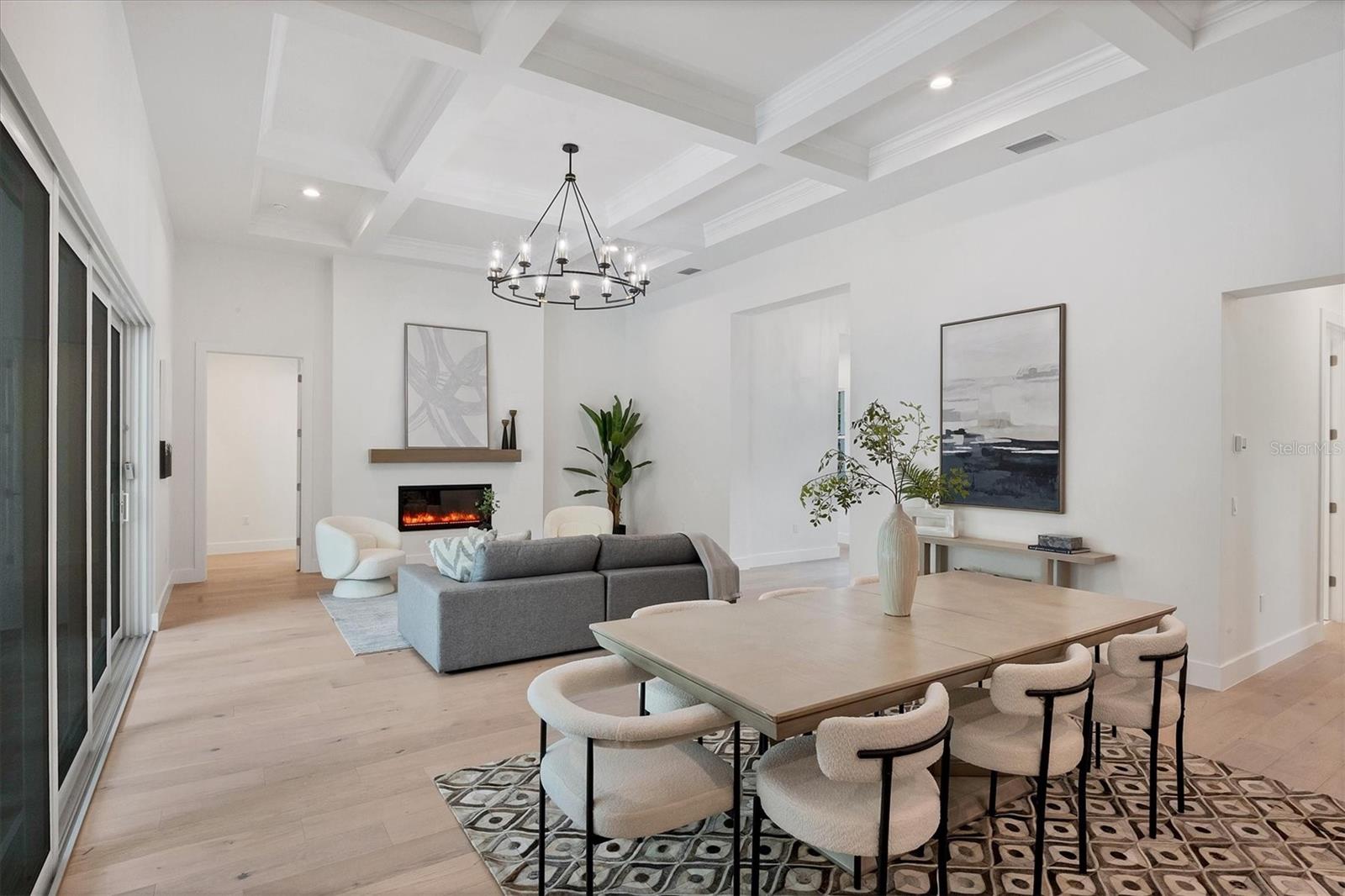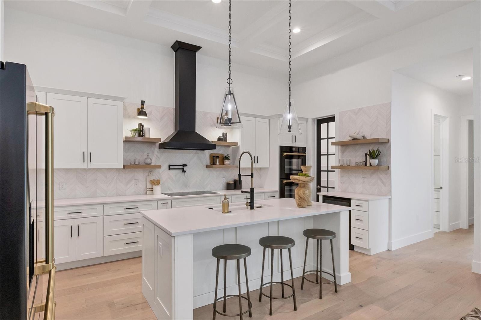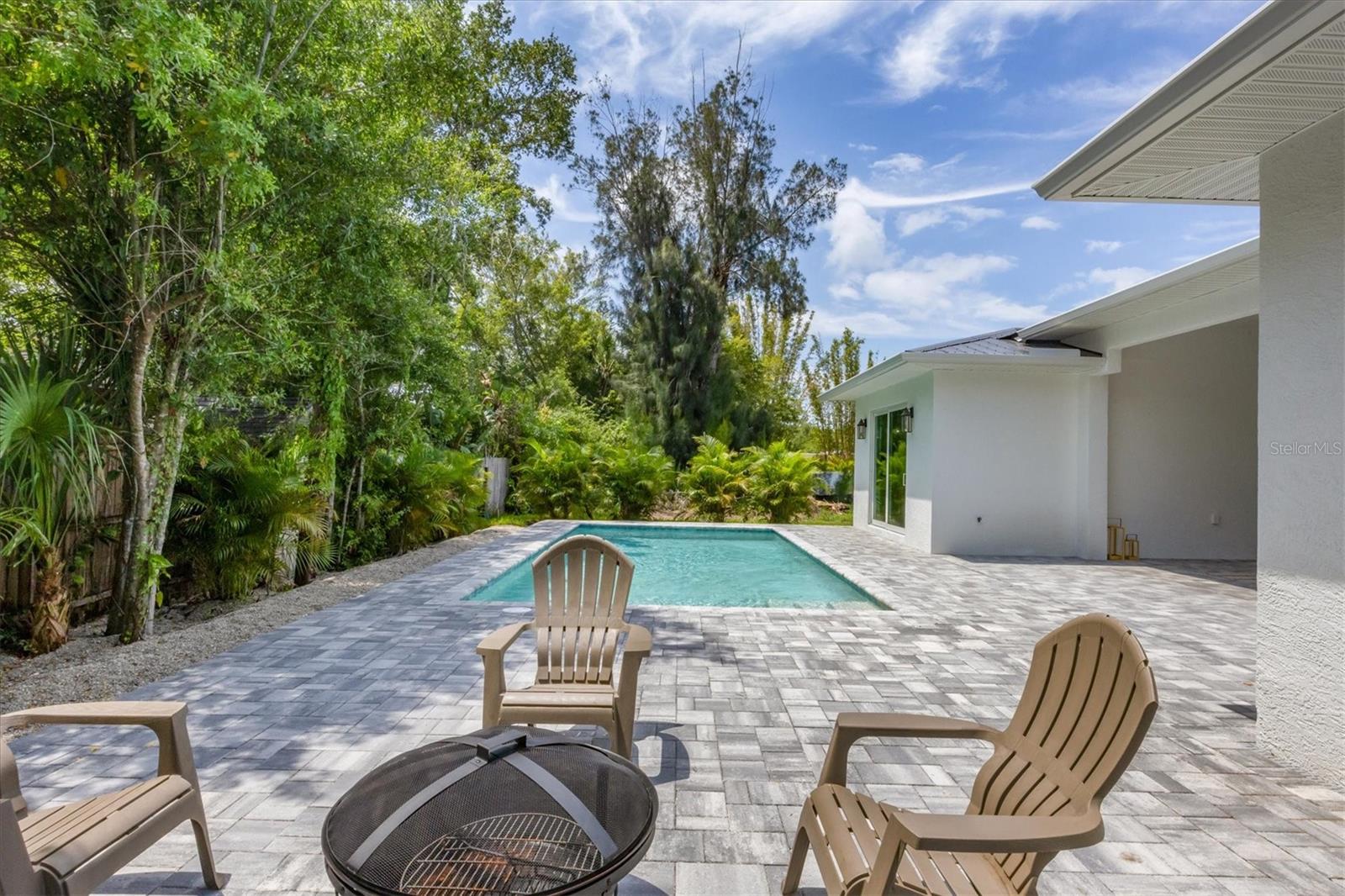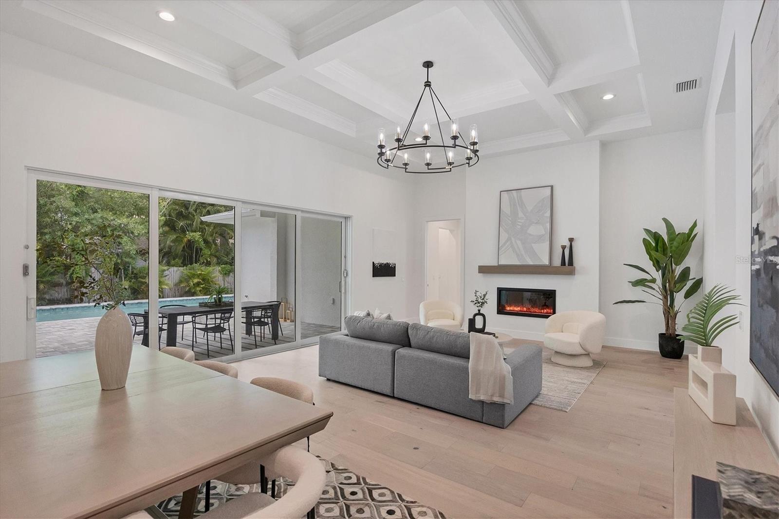 Welcome to your dream home—an impeccably designed new construction that blends sophistication, comfort, and durability. Offering 2,537 square feet of heated space and 3,545 square feet under air, this four-bedroom, three-bath estate has been thoughtfully crafted for seamless living and entertaining. Every element, from its elegant interiors to the outdoor spaces, reflects meticulous attention to detail. Step outside and immerse yourself in a personal oasis. The oversized saltwater pool, surrounded by an expansive paver deck and lanai, creates the perfect setting for relaxation or hosting guests. The outdoor kitchen, equipped with granite countertops, a gas grill, sink, and refrigerator, is a chef’s dream, making al fresco dining effortless. Built with a stem-wall foundation and all-block construction, this home offers unmatched durability. Energy-efficient spray-in insulation and a sleek black metal roof provide year-round comfort while reducing energy costs. Maintenance-free aluminum soffits and fascia ensure the exterior remains pristine with minimal upkeep, and impact-rated hurricane windows, doors, and sliders deliver peace of mind and safety during storm season. Inside, the great room captivates with 12’8” coffered ceilings, a cozy fireplace, and wall-to-wall sliding glass doors that open to the lanai, blending indoor and outdoor living spaces. Engineered hardwood floors flow throughout the home, complemented by custom lighting and upgraded Moen plumbing fixtures. The gourmet kitchen features all-wood custom shaker cabinets, quartz countertops, and Z-Line appliances with gold accents, including a double oven and separate induction range—perfect for preparing meals for any occasion. The luxurious main retreat offers a tranquil escape, featuring tray ceilings, a custom-designed feature wall, and private access to the pool. The spa-like ensuite bath invites relaxation with a freestanding soaking tub, oversized shower, and premium fixtures. Additional highlights include a versatile flex room or fourth bedroom, ideal as an office or guest space, and an oversized two-car garage with hurricane-rated doors for added protection. A well-appointed laundry room, complete with quartz countertops, abundant storage, and Samsung Smart appliances, adds convenience to everyday living. Located just minutes from downtown Sarasota, in X FLOOD ZONE, this home puts you close to the city’s vibrant arts, dining, and cultural scene. The Legacy Trail, less than a mile away, offers a scenic route for biking or walking, while Sarasota’s world-renowned beaches are just a short drive away, making it easy to enjoy the best of coastal living. This home offers a rare combination of elegance, convenience, and resilience, creating the perfect backdrop for a modern lifestyle. Don’t miss the opportunity to make it yours—schedule a private tour today and experience a property that will inspire you for years to come.