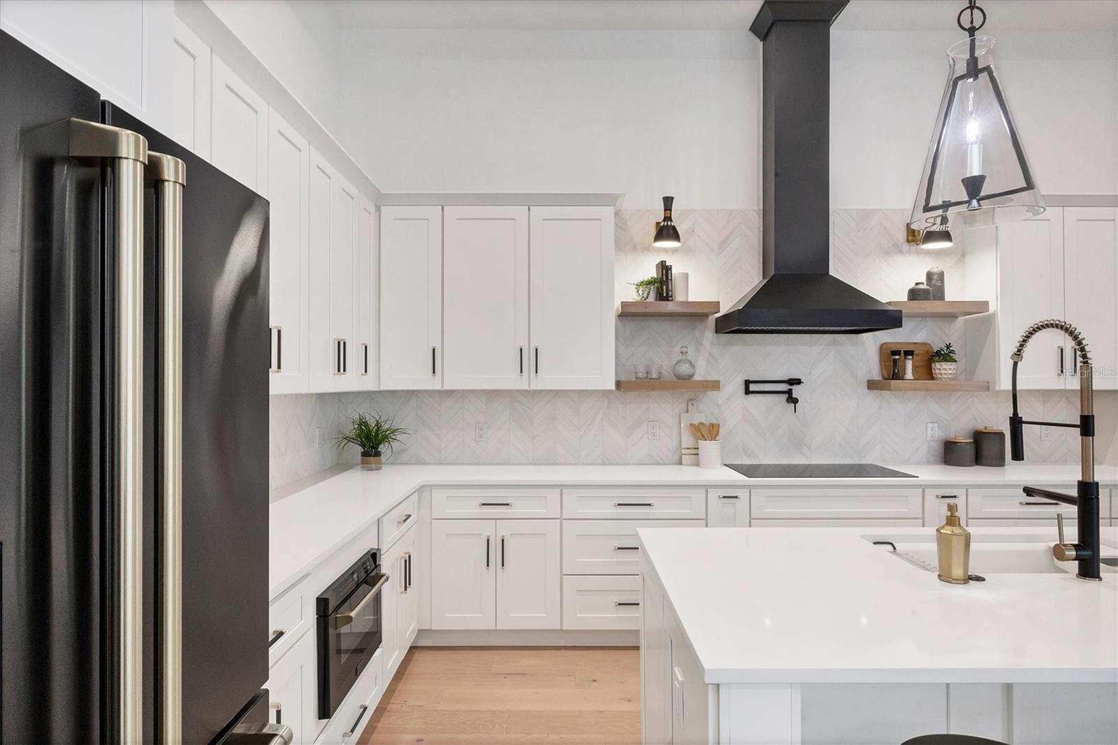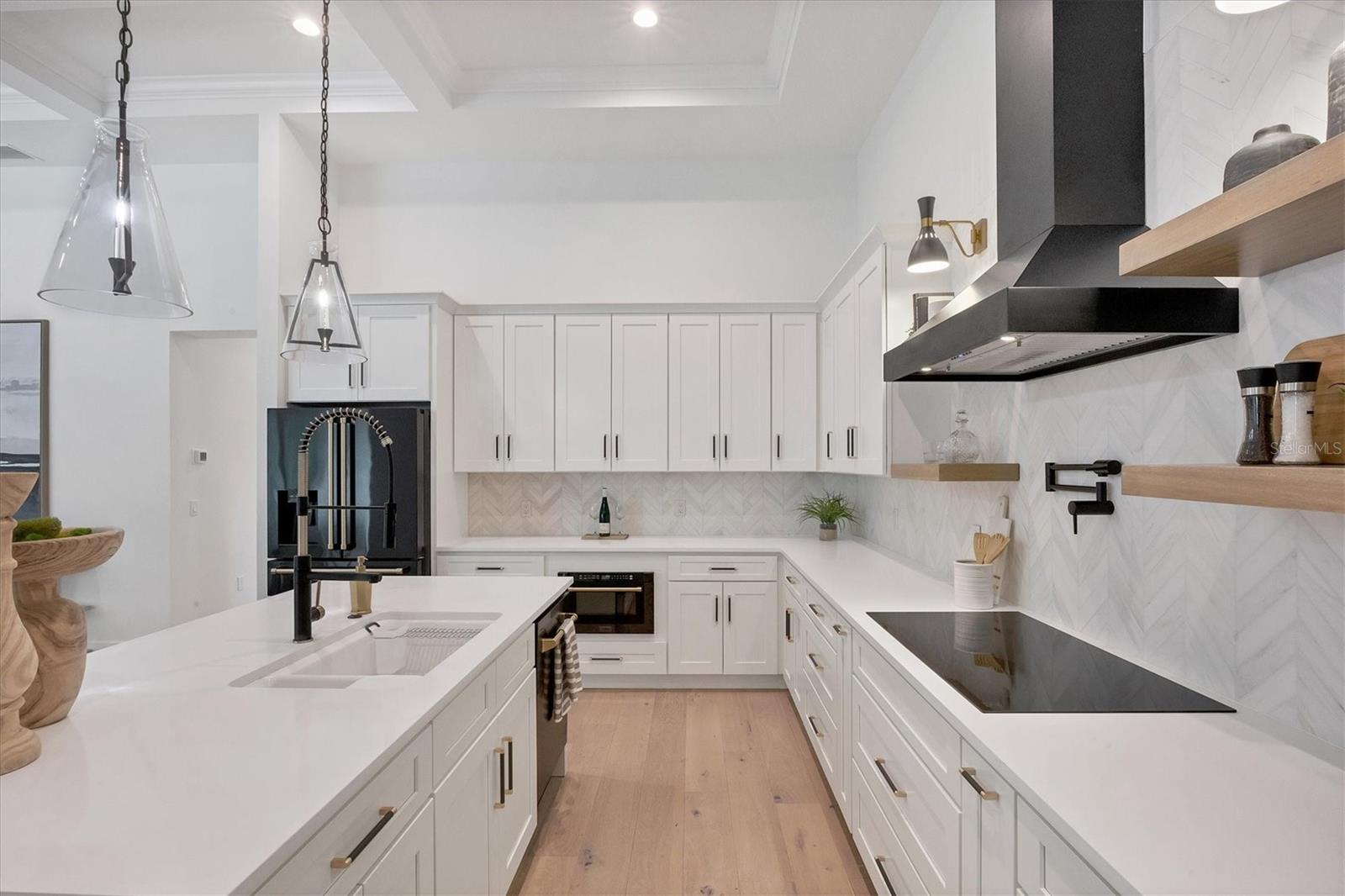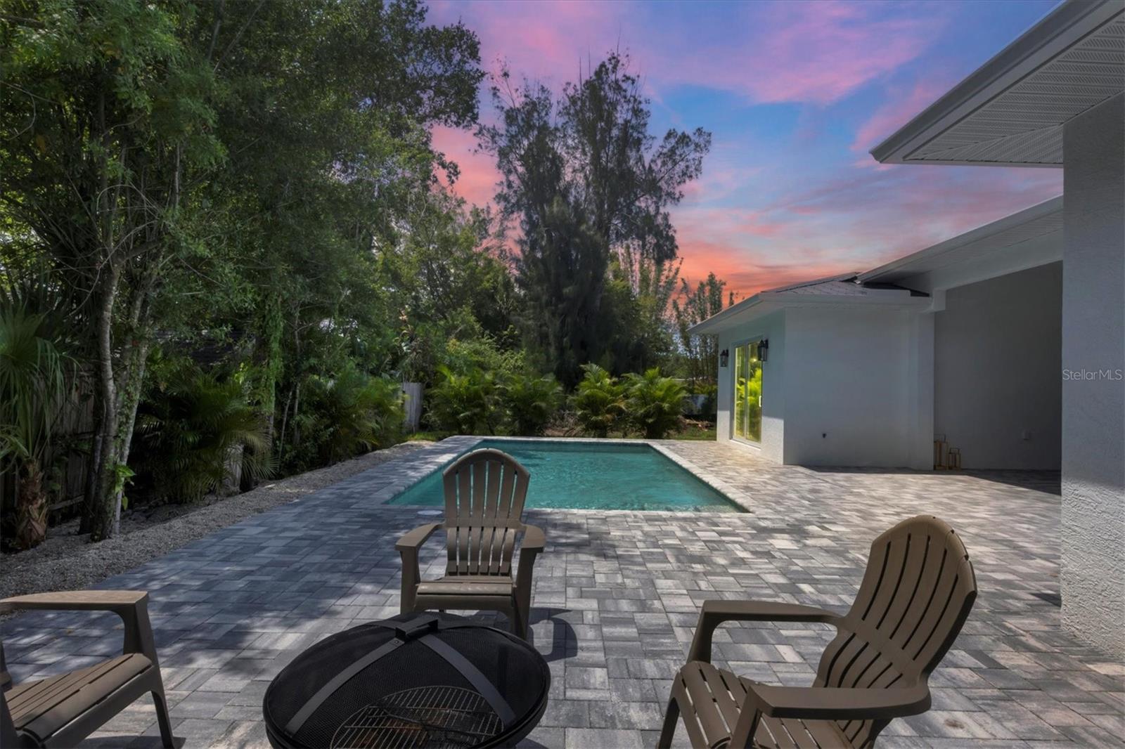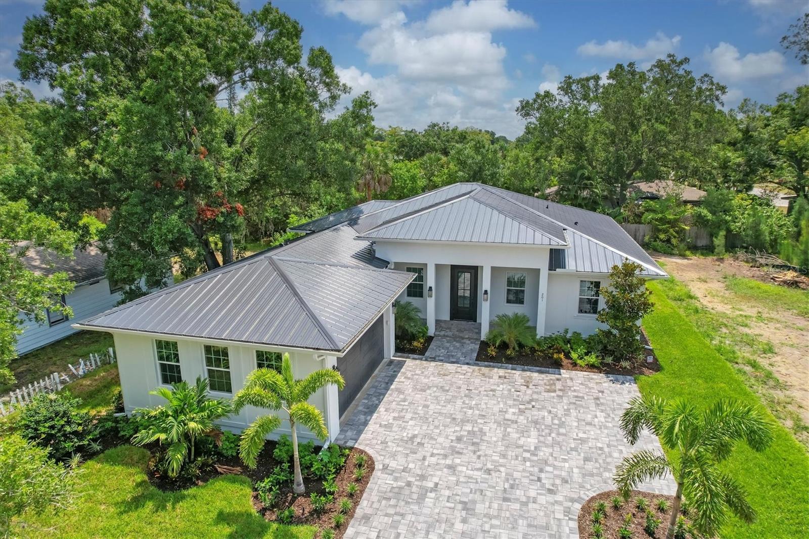 Welcome to your dream home—an impeccably designed new construction that blends sophistication, comfort, and durability. Offering 2,537 square feet of heated space and 3,545 square feet under air, this four-bedroom, three-bath estate has been thoughtfully crafted for seamless living and entertaining. Every element, from its elegant interiors to the outdoor spaces, reflects meticulous attention to detail. Step outside and immerse yourself in a personal oasis. The oversized saltwater pool, surrounded by an expansive paver deck and lanai, creates the perfect setting for relaxation or hosting guests. The outdoor kitchen, equipped with granite countertops, a gas grill, sink, and refrigerator, is a chef’s dream, making al fresco dining effortless. Built with a stem-wall foundation and all-block construction, this home offers unmatched durability. Energy-efficient spray-in insulation and a sleek black metal roof provide year-round comfort while reducing energy costs. Maintenance-free aluminum soffits and fascia ensure the exterior remains pristine with minimal upkeep, and impact-rated hurricane windows, doors, and sliders deliver peace of mind and safety during storm season. Inside, the great room captivates with 12’8” coffered ceilings, a cozy fireplace, and wall-to-wall sliding glass doors that open to the lanai, blending indoor and outdoor living spaces. Engineered hardwood floors flow throughout the home, complemented by custom lighting and upgraded Moen plumbing fixtures. The gourmet kitchen features all-wood custom shaker cabinets, quartz countertops, and Z-Line appliances with gold accents, including a double oven and separate induction range—perfect for preparing meals for any occasion. The luxurious main retreat offers a tranquil escape, featuring tray ceilings, a custom-designed feature wall, and private access to the pool. The spa-like ensuite bath invites relaxation with a freestanding soaking tub, oversized shower, and premium fixtures. Additional highlights include a versatile flex room or fourth bedroom, ideal as an office or guest space, and an oversized two-car garage with hurricane-rated doors for added protection. A well-appointed laundry room, complete with quartz countertops, abundant storage, and Samsung Smart appliances, adds convenience to everyday living. Located just minutes from downtown Sarasota, in X FLOOD ZONE, this home puts you close to the city’s vibrant arts, dining, and cultural scene. The Legacy Trail, less than a mile away, offers a scenic route for biking or walking, while Sarasota’s world-renowned beaches are just a short drive away, making it easy to enjoy the best of coastal living. This home offers a rare combination of elegance, convenience, and resilience, creating the perfect backdrop for a modern lifestyle. Don’t miss the opportunity to make it yours—schedule a private tour today and experience a property that will inspire you for years to come.