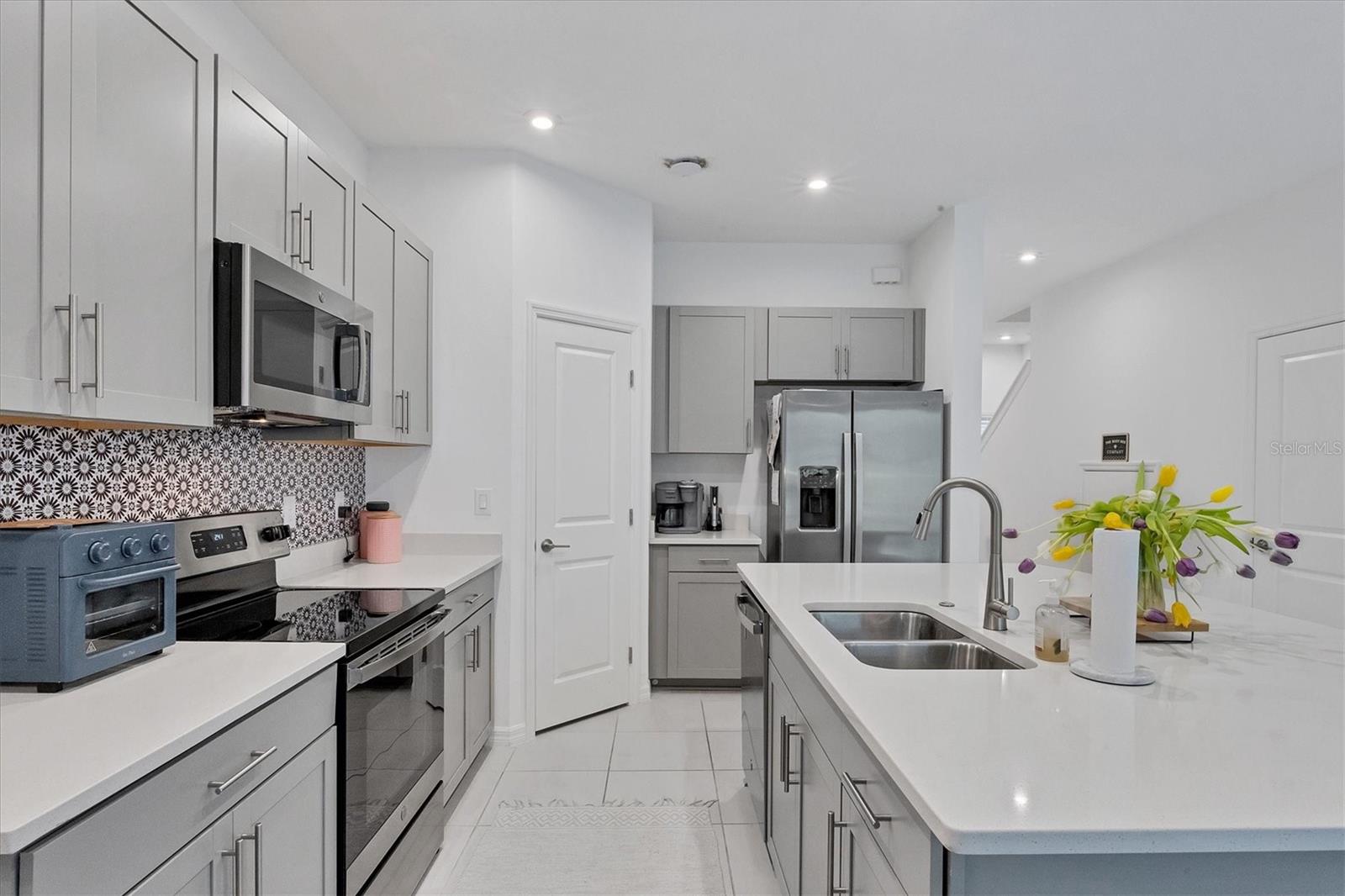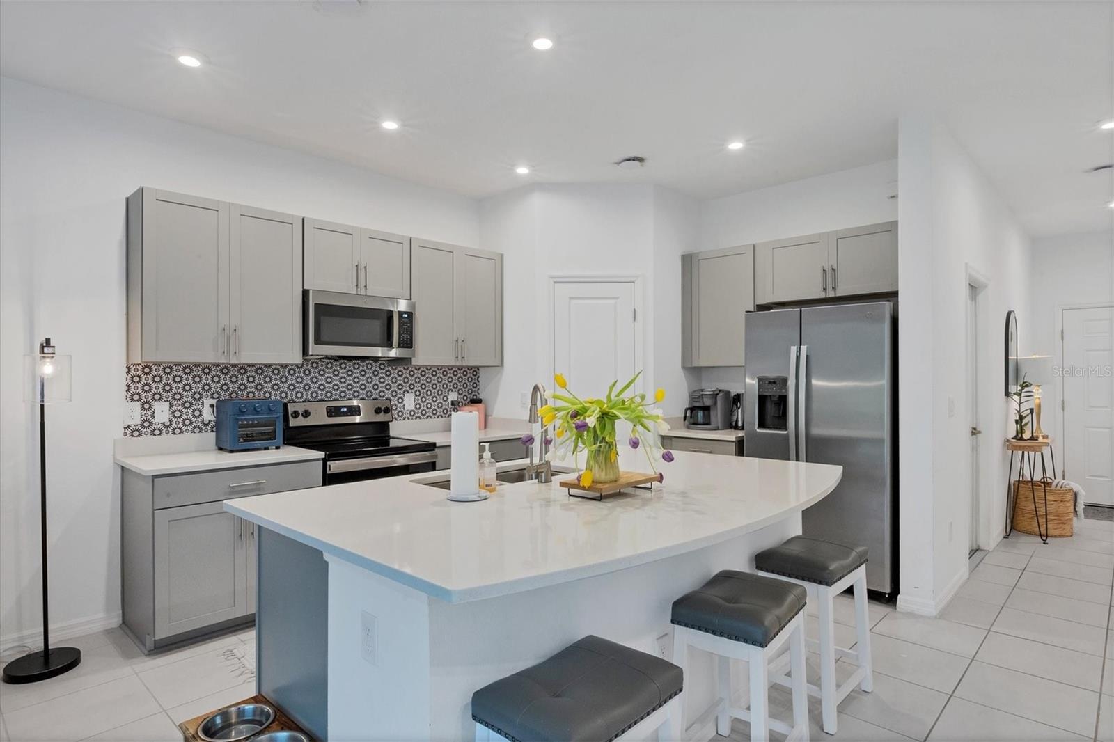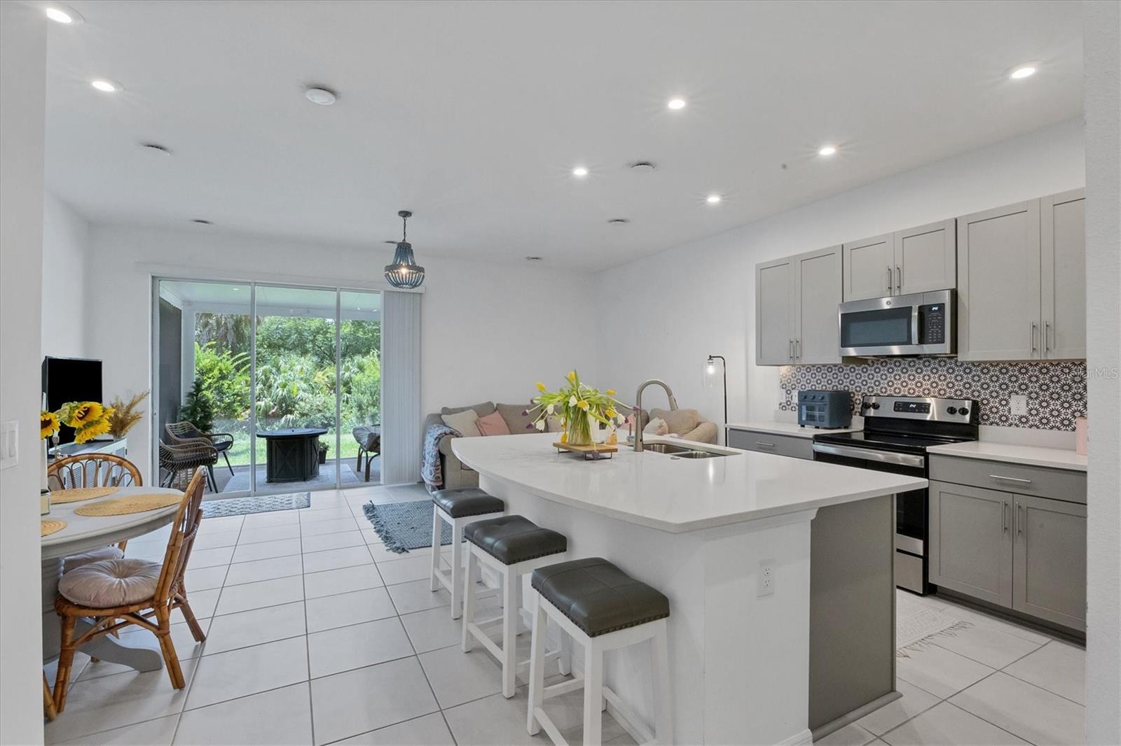 GREAT BUY ALERT!! Move right in to this wonderful FURNISHED townhome that's loaded with upgrades. This almost brand new and totally immaculate property is located in Skye Ranch. This PRIME UNIT LOCATION is on a cul de sac and it sits on a preserve for maximum privacy. This unit is stunning and seller has added a lot of stylish touches and upgrades to it. The features include tile downstairs, quartz counters, neutral gray cabinets, kitchen island with seating and breakfast nook, stainless appliances, custom backsplash, pantry, new light fixtures, extended screened in lanai overlooking the nature preserve, tasteful wallpaper and added overhead garage storage. The primary bedroom is upstairs and it's en suite. The other bedrooms are also up along with a laundry room for convenience. Skye Ranch is one of the hottest new areas in Sarasota. Great schools districts and great neighbors. There is a very nice community pool with grills and cabanas just down the street. You also have the added bonus of brand new Turner Park around the corner which includes pickleball courts, baseball and soccer fields, baseball court, dog park and playground. You also have Twin Lakes park which is just a few miles to the West. There is a new school (Skye Ranch) in the process of being built as well and the CDD fee is very low. Why wait for one being built when you can have this one immediately in a better location and you don't back up to other townhomes or a road. Schedule your showing today, you don't to miss out on this one. If prime location is important this is the one for you.