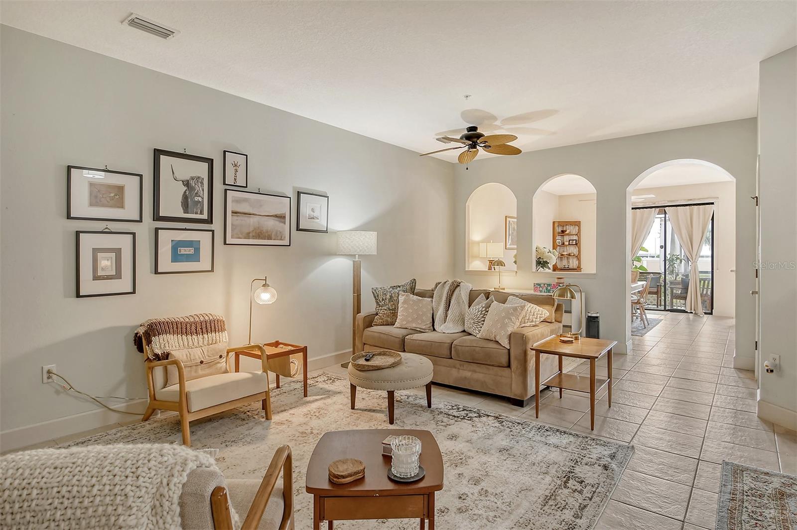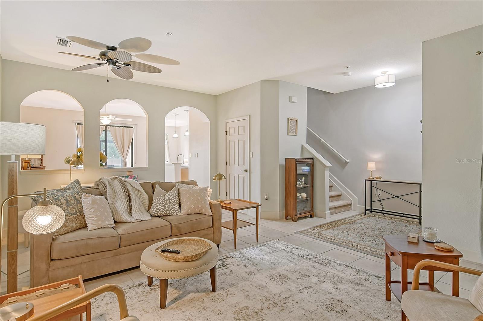 Charming townhome, nestled in the sought-after, gated Stoneridge community of Sarasota. The property features three bedrooms and two and a half bathrooms, along with an attached one-car garage. The dining room and kitchen boast an open design, perfect for cooking while engaging with family and friends. Sliding doors in the dining room lead out to a charming lanai overlooking a serene pond—ideal for enjoying your morning coffee or an evening drink. Upon entering, stairs lead to the second floor, where a generous landing area greets you. This space features double doors that open to reveal a convenient washer/dryer hookup. The primary bedroom serves as a spacious retreat with a large double window that fills the room with natural light. The walk-in closet offers built-in shelving and hanging space, while the en-suite bath includes a large glass door walk-in tile shower, a nook for laundry baskets, and a laundry closet with built-in shelving. The two additional bedrooms provide privacy and share a well-appointed second bath with a tub/shower combo. Every room in this home is fitted with a ceiling fan for added comfort. Stoneridge is a vibrant, multi-generational community featuring individual garages and driveways for each home. The community is adjacent to Urfer Park, which offers walking/running trails, an off-leash dog area, and a family zone with a covered porch and numerous play stations. The location is incredibly accessible, being just 15 minutes from Siesta Key and St. Armands Circle, 10 minutes from Sarasota Memorial Hospital, and 5 minutes from Doctors Hospital and I-75. You’ll have your choice of five grocery stores, including Detwilers, three drug stores, Walmart, and Home Depot. Recent updates to the home include new paint in the kitchen, nook, dining room, half bath, entrance stairwell, hall, and both upstairs bathrooms, along with new pendant lights and ceiling lights in the kitchen, nook, dining room, and half bath. Additionally, new lighting has been installed in the entrance, and new faucets have been added in the kitchen and primary bath. This beautiful condo townhome is ready to welcome you home. Schedule a viewing today and experience the perfect blend of comfort, convenience, and community living.