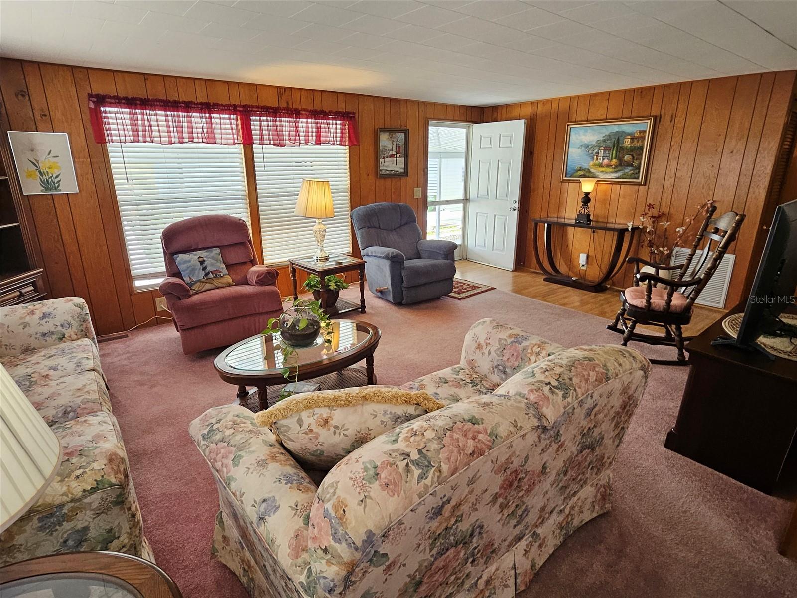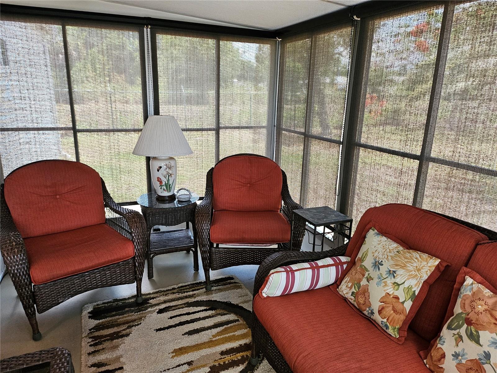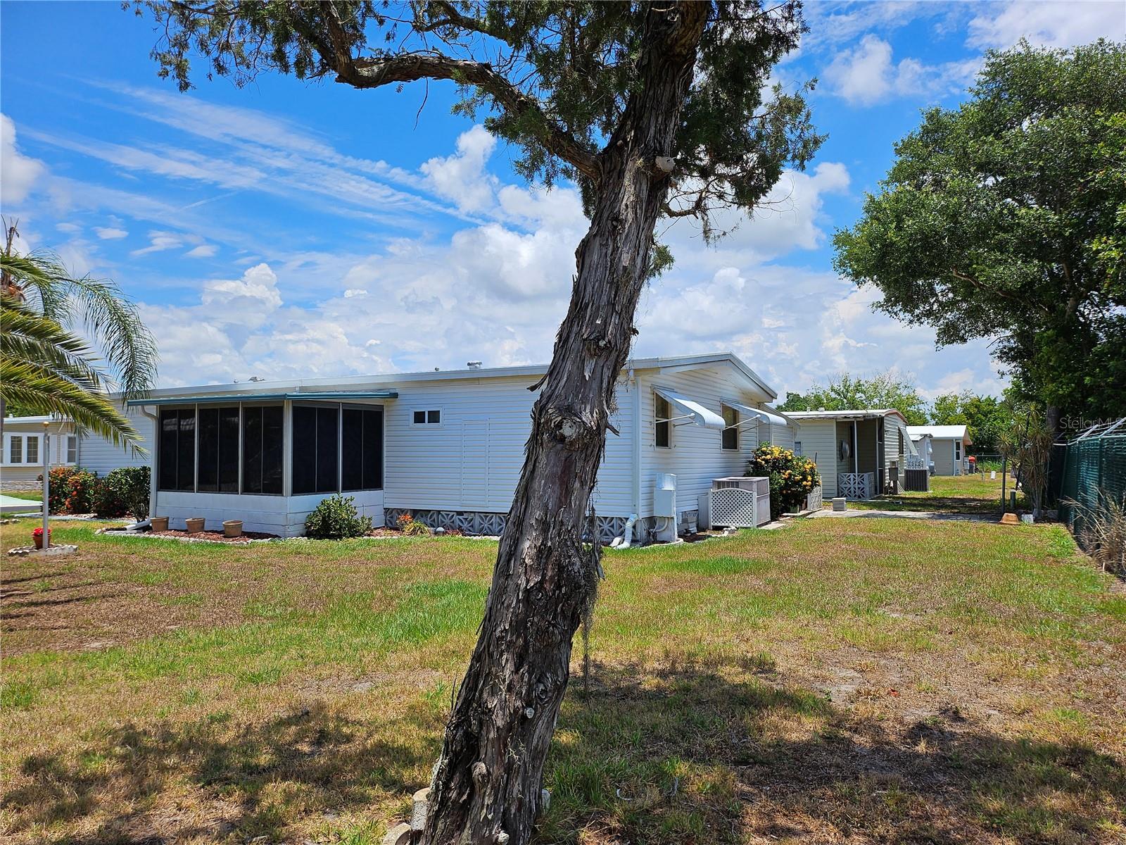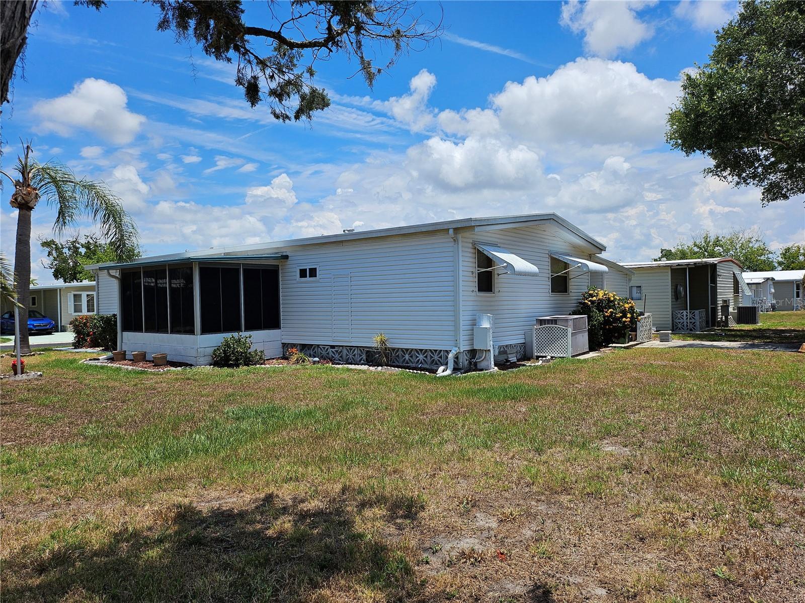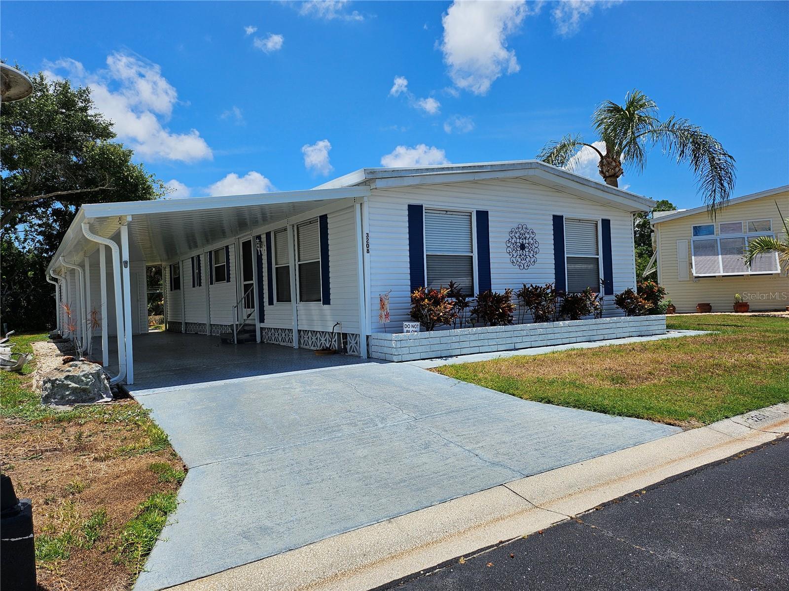 This turnkey furnished home is positioned on larger lot with a semi private backyard in the ONLY Resident Owned Park in the City limits of Sarasota!! Plenty of room to entertain and ample windows giving natural light to the living room and formal dining room spaces. The kitchen is fully outfitted, has a pantry and updated appliances. The breakfast room is a great mid house landing point, features a round table/chairs and has sliders to the comfortable sunroom/lanai that has newer vinyl windows and a rattan patio set. The primary suite is large enough for a king bed set, a very large walk in closet/room and a private en suite bath with a full size vanity and step in shower. The guest suite can be used as a bedroom, office or den. The guest bath has a full size vanity with a tub/shower. The semi private backyard paver patio has a table with chairs. The shed houses the washer/dryer and storage space. Note: there are washer/dryer hook ups in the breakfast room if you wanted to bring them inside. Updates: Galv Metal Roof Over late 90's, Carport replaced to latest hurricane codes 8/2023, Vinyl siding with insulation 2023, HVAC 2002, panel Cutler Hammer 2000 and GE, all subfloors and floorings updated approx 2000. Plumbing is copper and sewer line has been updated. The gated 90 acre community boast low maintenance fee with its vast amenities starting with the large Clubhouse outfitted with a full commercial cook kitchen, event stage, audio/visual, dance floor, fitness room, activities hall, library with books/movies/puzzles and a pool table. Outside recreation includes an extra large heated pool with a handicap ramp, a spacious kidney shaped hot tub, ample tables and lounge chairs and remodeled shower rooms. Oak trees shade the beautiful park area, Gazebo, picnic tables and a community grill. Additional amenities to enjoy are the community putt putt course, bocce ball, ping pong, horse shoes and corn hole. Oakwood Manor is a highly social community with many groups and activities to be a part of. We are located adjacent to Legacy Trail and 12 new pickle ball courts managed by the City. Close to downtown, shopping and dining. Please note that Oakwood is a NO pet and NO motorcycle Park.