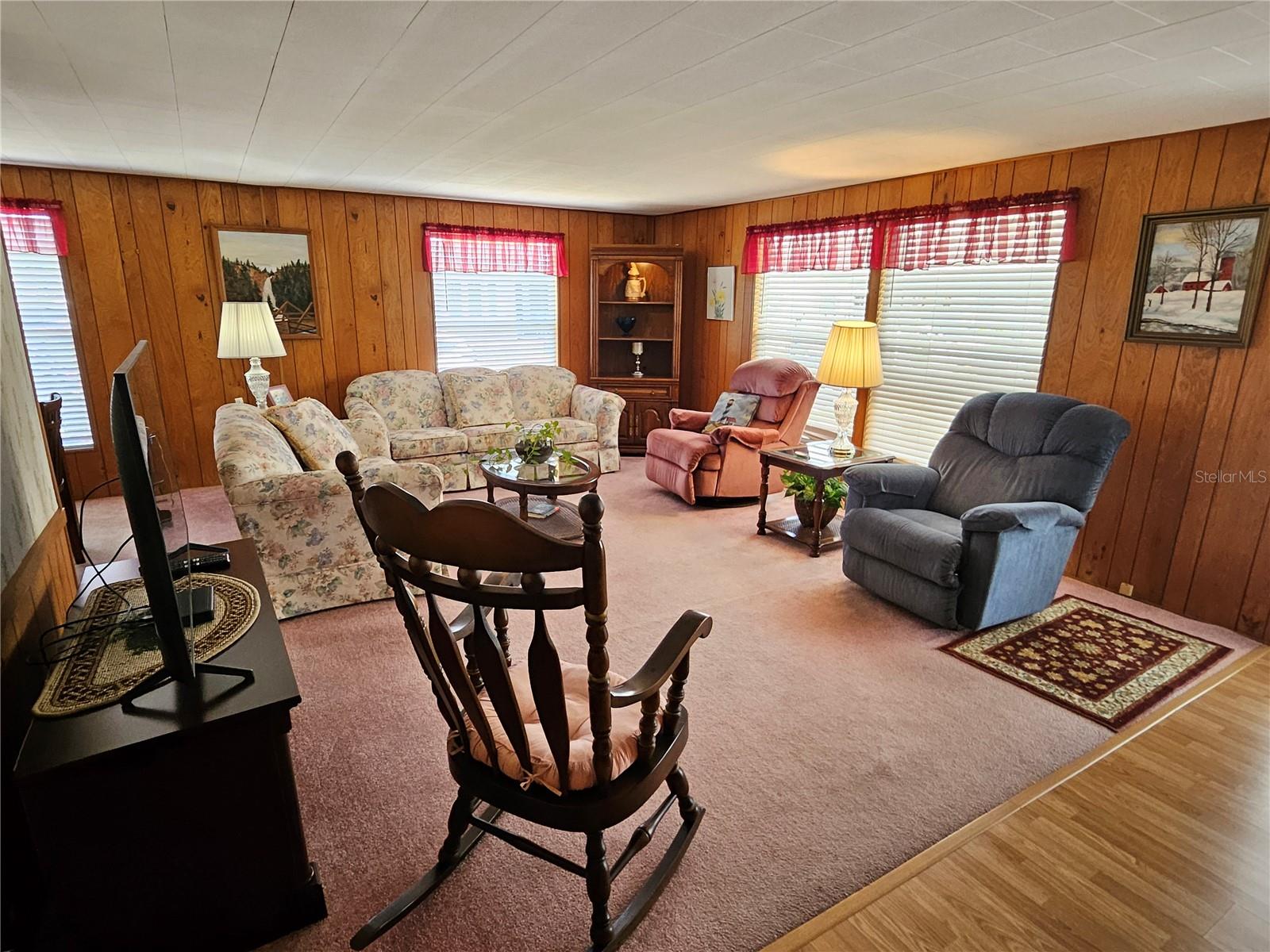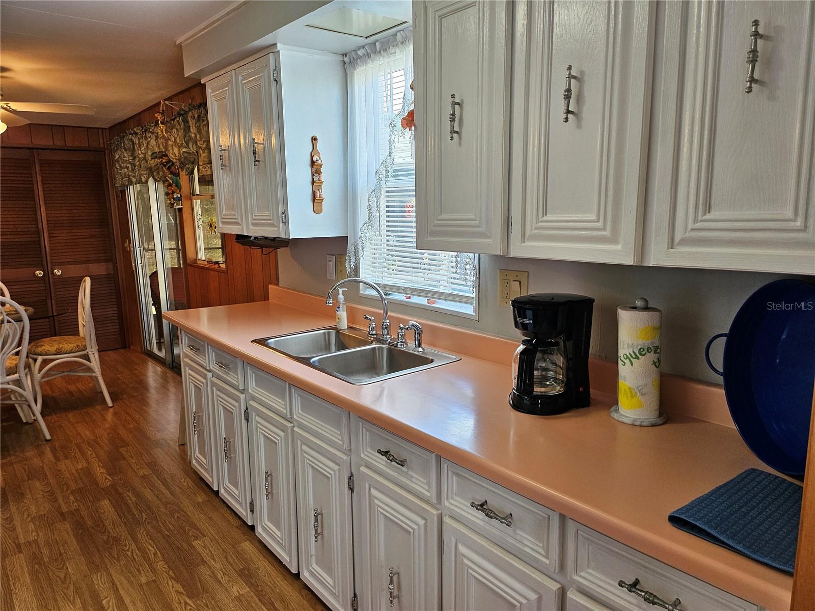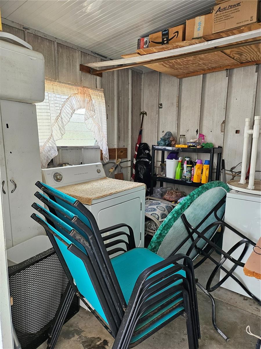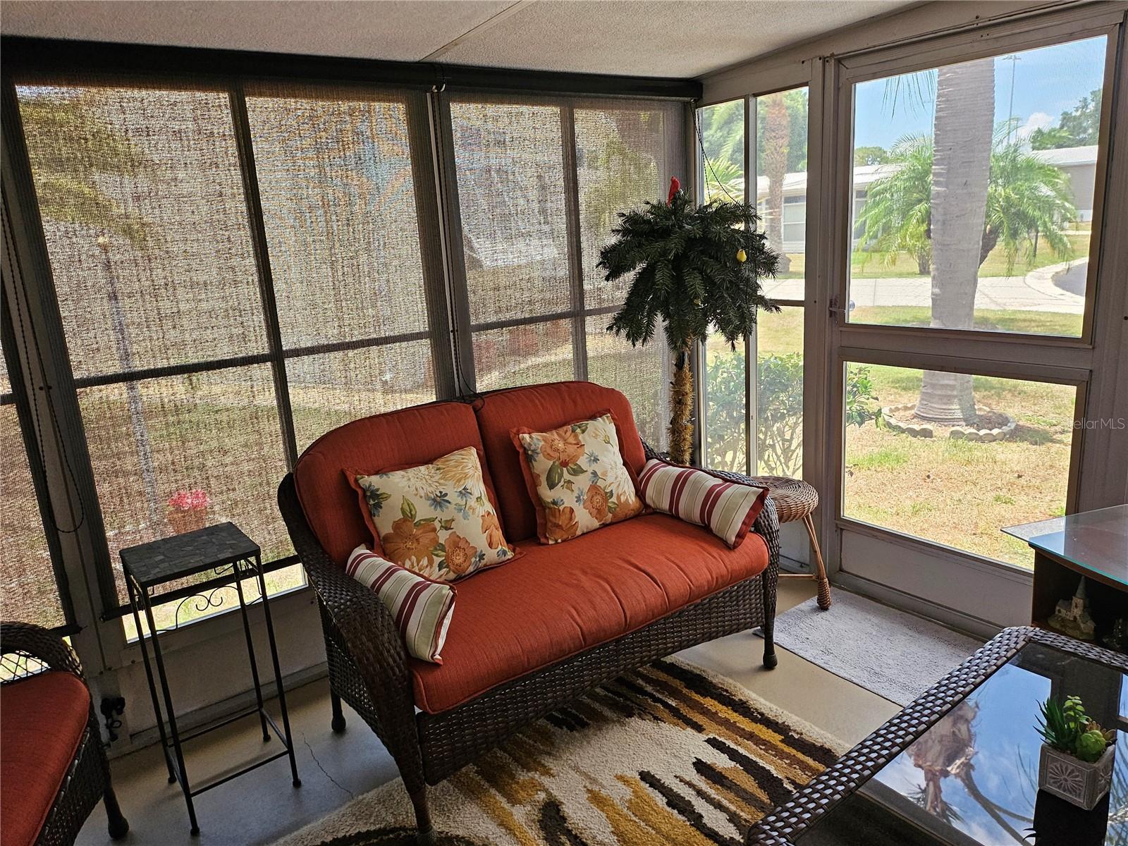 This turnkey furnished home is positioned on larger lot with a semi private backyard in the ONLY Resident Owned Park in the City limits of Sarasota!! Plenty of room to entertain and ample windows giving natural light to the living room and formal dining room spaces. The kitchen is fully outfitted, has a pantry and updated appliances. The breakfast room is a great mid house landing point, features a round table/chairs and has sliders to the comfortable sunroom/lanai that has newer vinyl windows and a rattan patio set. The primary suite is large enough for a king bed set, a very large walk in closet/room and a private en suite bath with a full size vanity and step in shower. The guest suite can be used as a bedroom, office or den. The guest bath has a full size vanity with a tub/shower. The semi private backyard paver patio has a table with chairs. The shed houses the washer/dryer and storage space. Note: there are washer/dryer hook ups in the breakfast room if you wanted to bring them inside. Updates: Galv Metal Roof Over late 90's, Carport replaced to latest hurricane codes 8/2023, Vinyl siding with insulation 2023, HVAC 2002, panel Cutler Hammer 2000 and GE, all subfloors and floorings updated approx 2000. Plumbing is copper and sewer line has been updated. The gated 90 acre community boast low maintenance fee with its vast amenities starting with the large Clubhouse outfitted with a full commercial cook kitchen, event stage, audio/visual, dance floor, fitness room, activities hall, library with books/movies/puzzles and a pool table. Outside recreation includes an extra large heated pool with a handicap ramp, a spacious kidney shaped hot tub, ample tables and lounge chairs and remodeled shower rooms. Oak trees shade the beautiful park area, Gazebo, picnic tables and a community grill. Additional amenities to enjoy are the community putt putt course, bocce ball, ping pong, horse shoes and corn hole. Oakwood Manor is a highly social community with many groups and activities to be a part of. We are located adjacent to Legacy Trail and 12 new pickle ball courts managed by the City. Close to downtown, shopping and dining. Please note that Oakwood is a NO pet and NO motorcycle Park.
