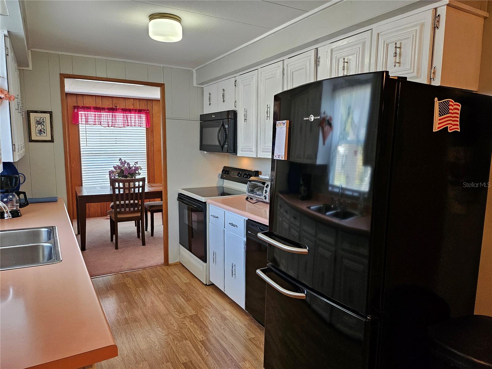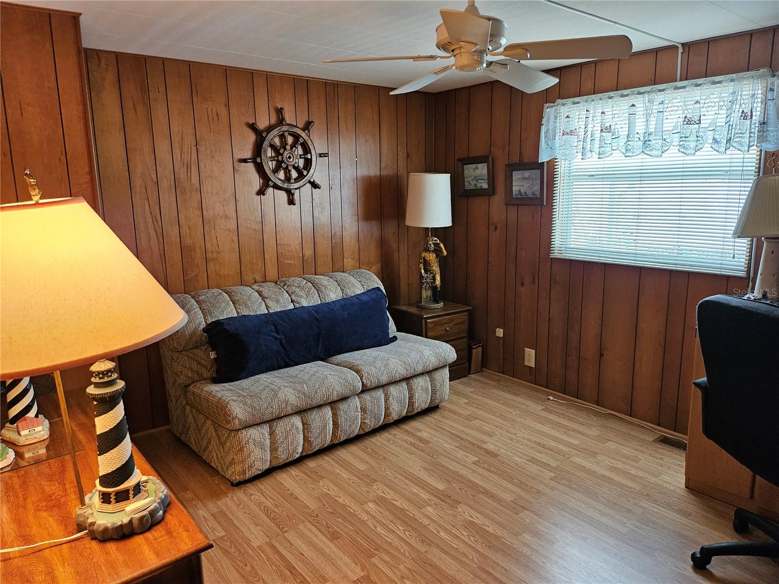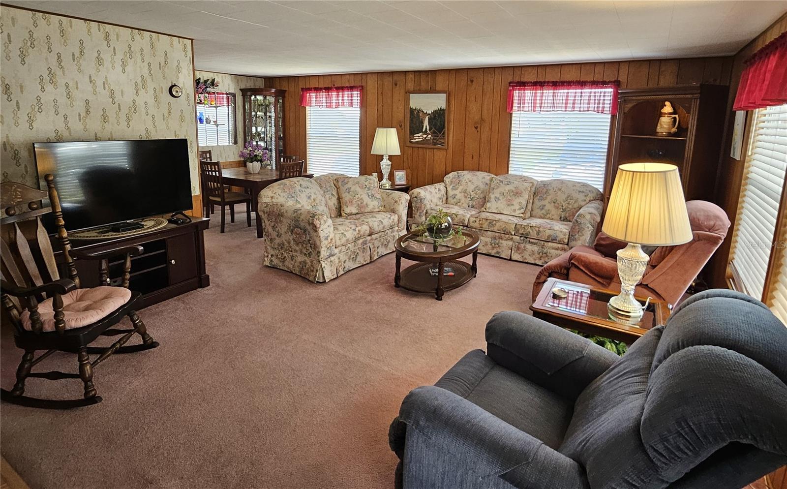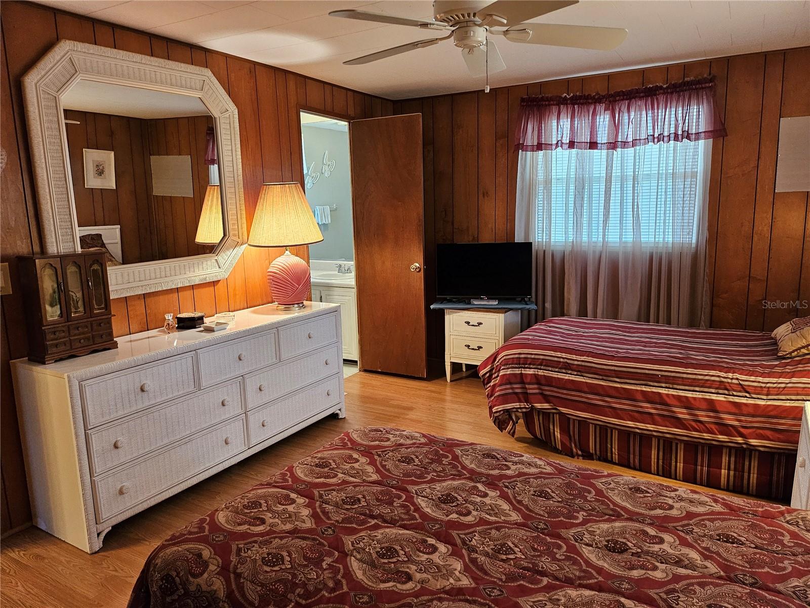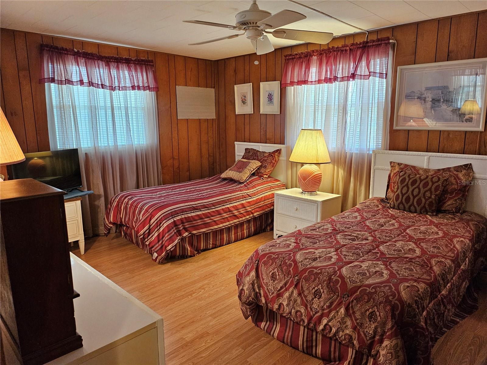 This turnkey furnished home is positioned on larger lot with a semi private backyard in the ONLY Resident Owned Park in the City limits of Sarasota!! Plenty of room to entertain and ample windows giving natural light to the living room and formal dining room spaces. The kitchen is fully outfitted, has a pantry and updated appliances. The breakfast room is a great mid house landing point, features a round table/chairs and has sliders to the comfortable sunroom/lanai that has newer vinyl windows and a rattan patio set. The primary suite is large enough for a king bed set, a very large walk in closet/room and a private en suite bath with a full size vanity and step in shower. The guest suite can be used as a bedroom, office or den. The guest bath has a full size vanity with a tub/shower. The semi private backyard paver patio has a table with chairs. The shed houses the washer/dryer and storage space. Note: there are washer/dryer hook ups in the breakfast room if you wanted to bring them inside. Updates: Galv Metal Roof Over late 90's, Carport replaced to latest hurricane codes 8/2023, Vinyl siding with insulation 2023, HVAC 2002, panel Cutler Hammer 2000 and GE, all subfloors and floorings updated approx 2000. Plumbing is copper and sewer line has been updated. The gated 90 acre community boast low maintenance fee with its vast amenities starting with the large Clubhouse outfitted with a full commercial cook kitchen, event stage, audio/visual, dance floor, fitness room, activities hall, library with books/movies/puzzles and a pool table. Outside recreation includes an extra large heated pool with a handicap ramp, a spacious kidney shaped hot tub, ample tables and lounge chairs and remodeled shower rooms. Oak trees shade the beautiful park area, Gazebo, picnic tables and a community grill. Additional amenities to enjoy are the community putt putt course, bocce ball, ping pong, horse shoes and corn hole. Oakwood Manor is a highly social community with many groups and activities to be a part of. We are located adjacent to Legacy Trail and 12 new pickle ball courts managed by the City. Close to downtown, shopping and dining. Please note that Oakwood is a NO pet and NO motorcycle Park.