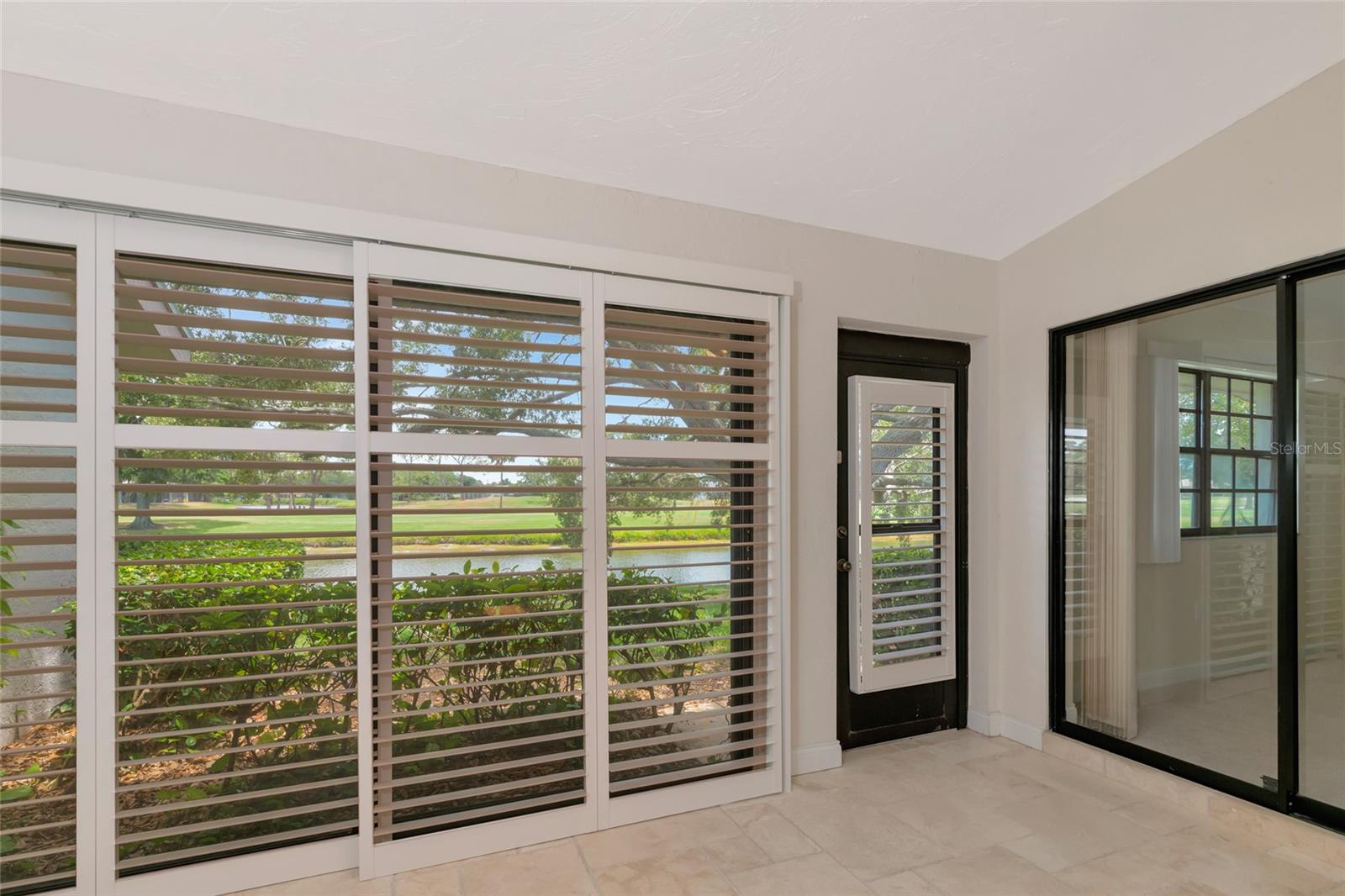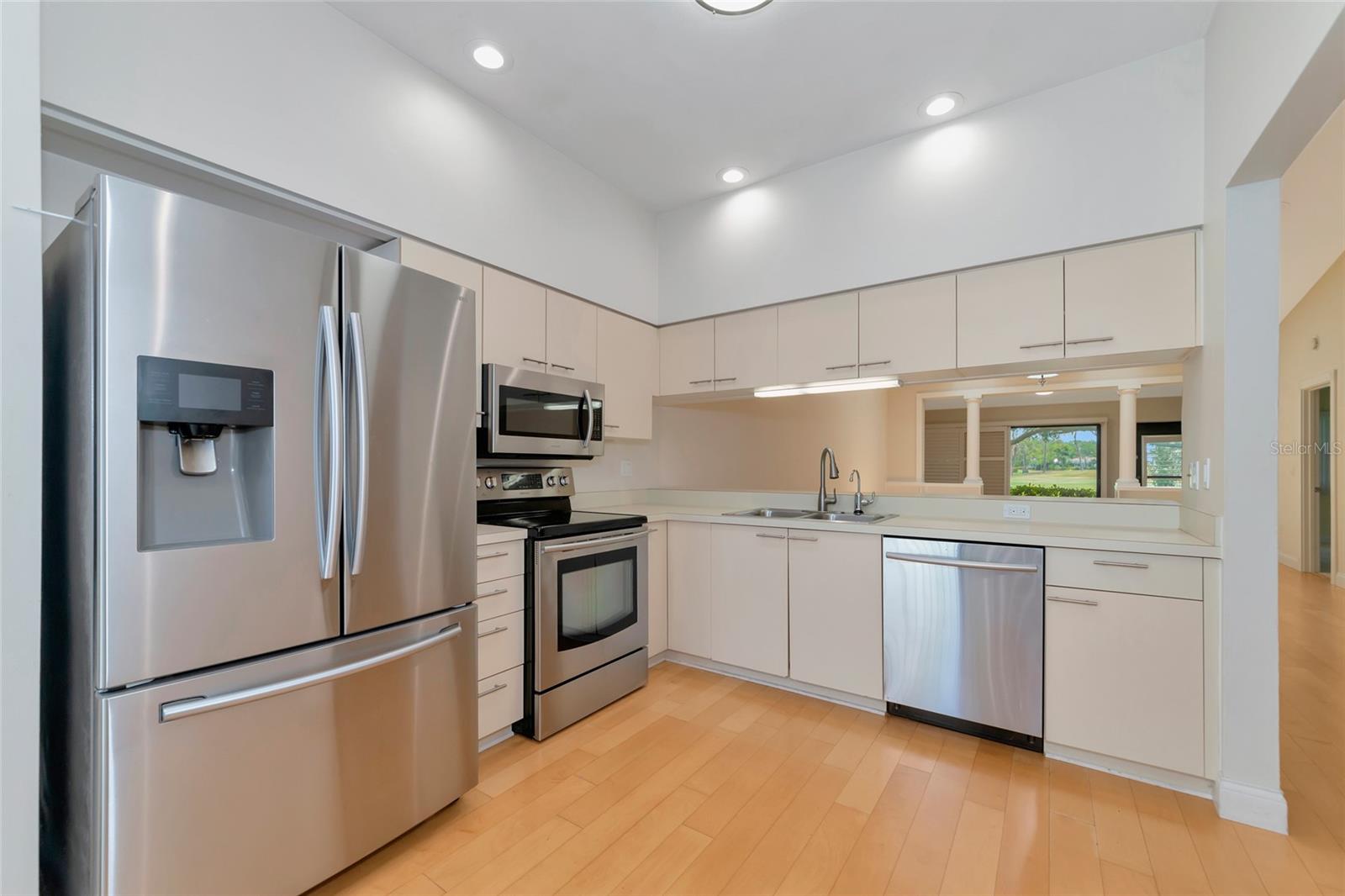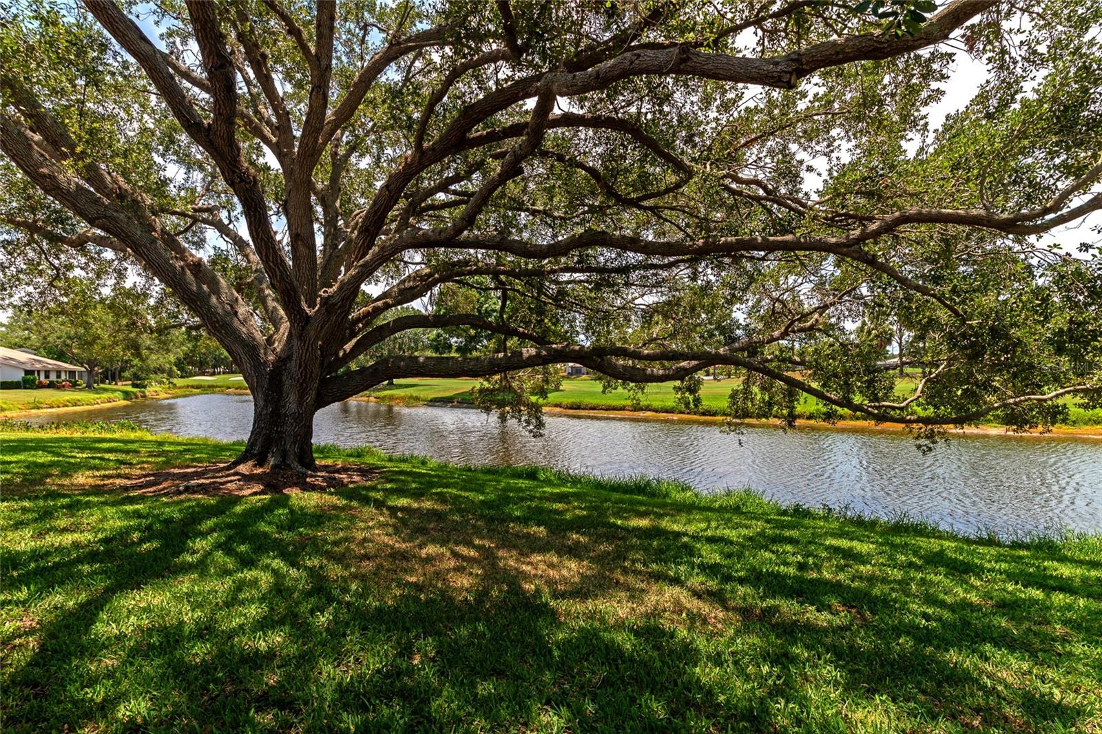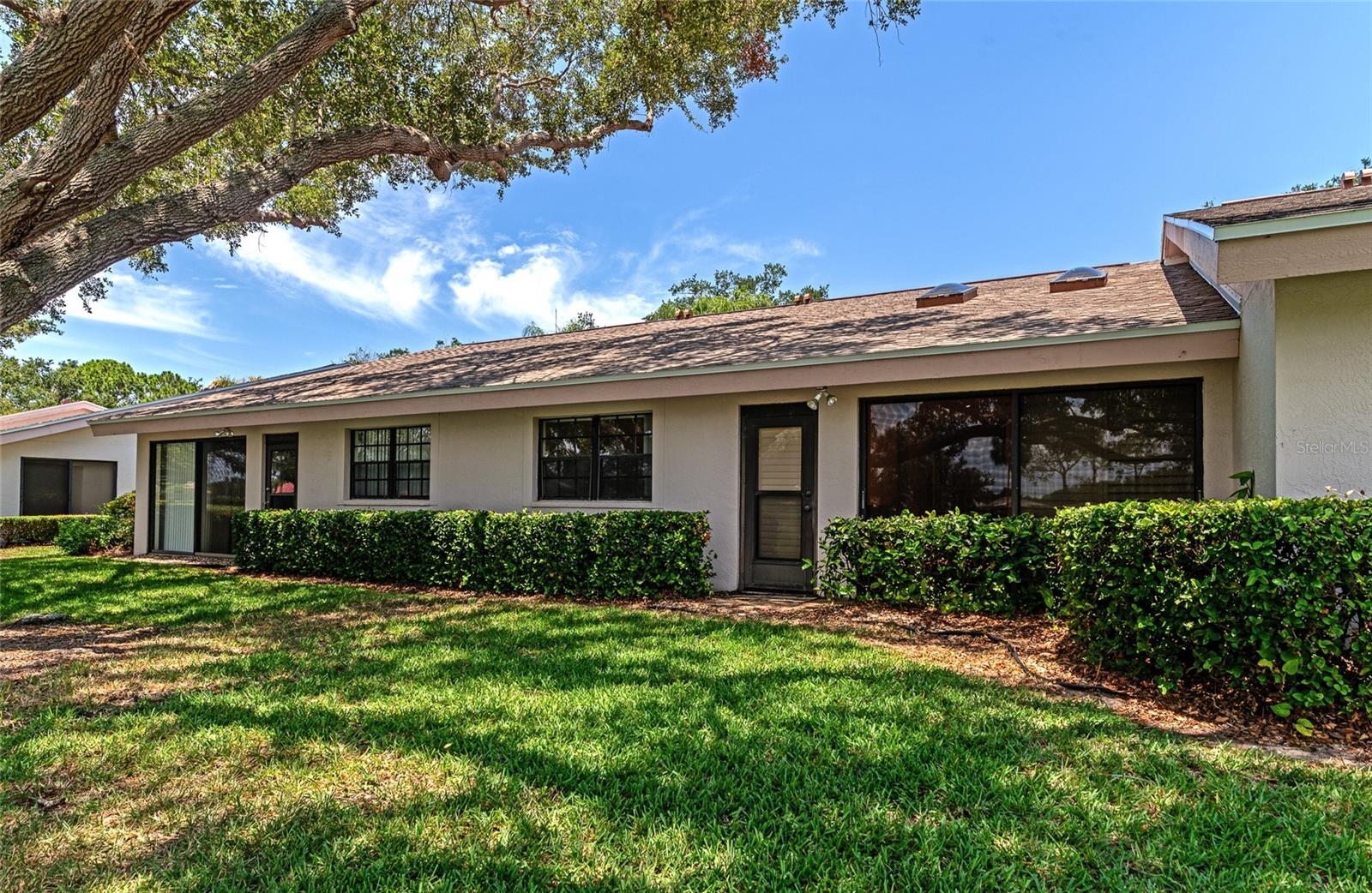 2 Bedroom, 2 Bathroom Villa with a 2 Car Garage. Stunning views looking over the lake out to a long golf course view! Glassed in lanai with ceramic tile, built in bookcases and columns to separate from the living/dining room. Kitchen has stainless appliance pkg, breakfast bar, open to the Dining room & Living room with vaulted ceilings and Two skylights. Windows have louvered Bermuda style shutters. Walk in closet in the master suite with Two separate vanities and a walk-in shower only. Interior Laundry room with full size washer/dryer with upper cabinets for that extra storage. This villa is one of few 2 Car Garages with guest parking! This established & lushly treed community offers 1600 Acres of park like setting with miles of nature trails, (3) golf courses, 80 lakes, tennis, fitness, Jr. size Olympic pool, clubs and many social activities. The Meadows is centrally located and is minutes to shopping, restaurants, i-75 access and an easy drive to gulf beaches, Sarasota/Bradenton airport, UTC Mall and downtown Sarasota. Make this your place in paradise!