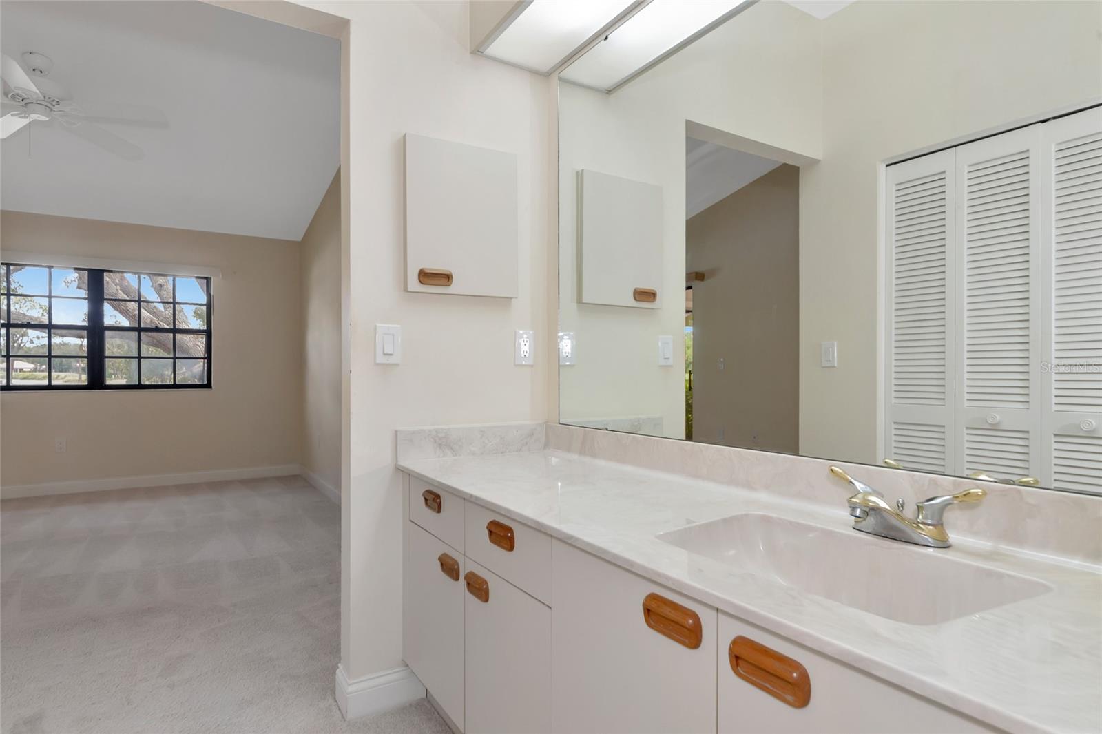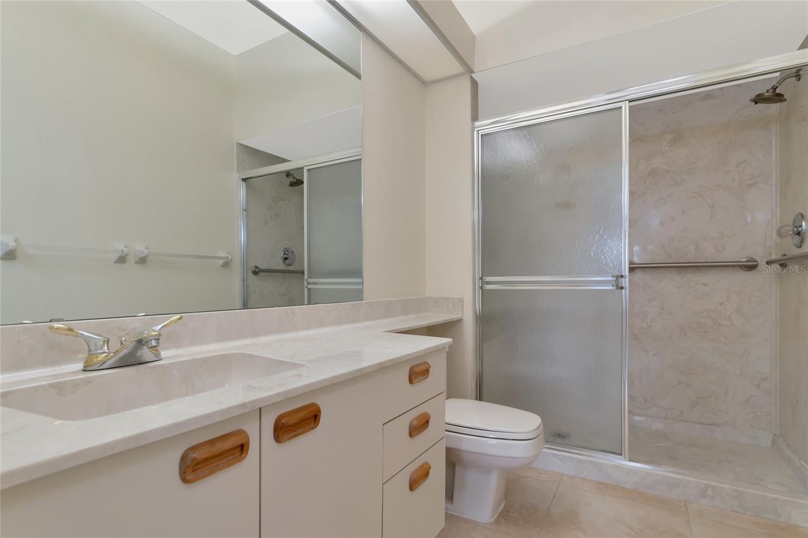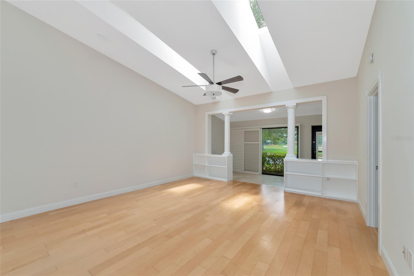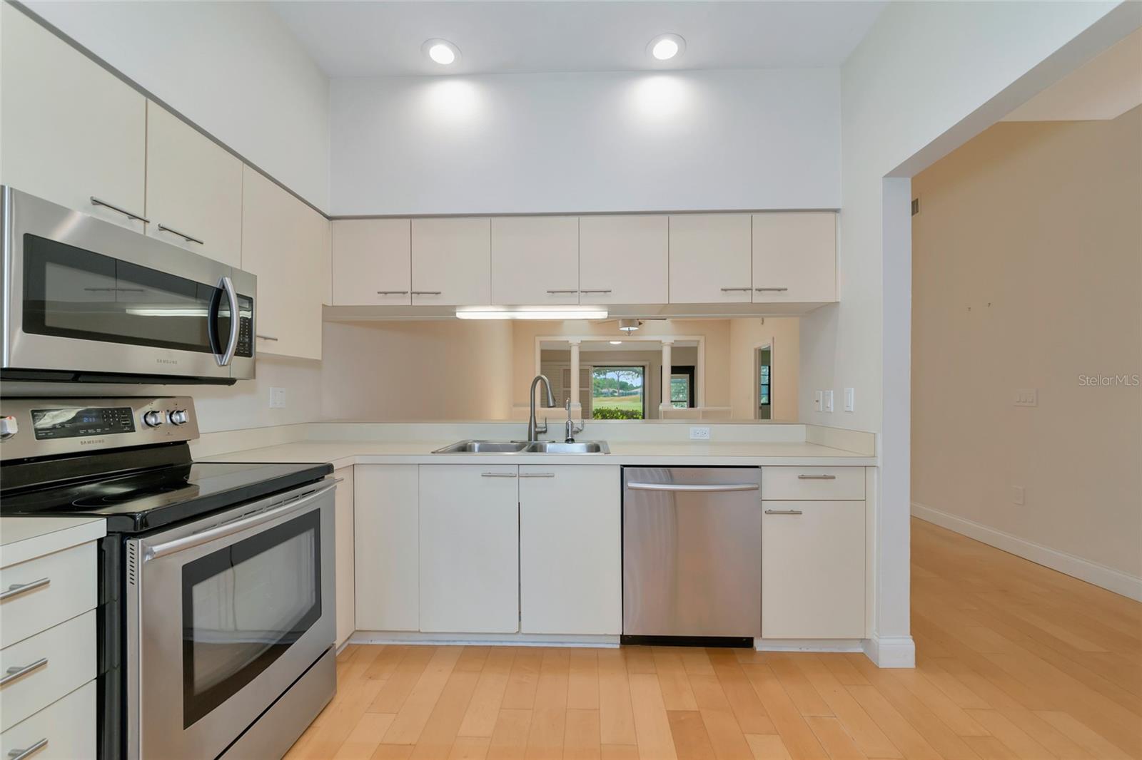 2 Bedroom, 2 Bathroom Villa with a 2 Car Garage. Stunning views looking over the lake out to a long golf course view! Glassed in lanai with ceramic tile, built in bookcases and columns to separate from the living/dining room. Kitchen has stainless appliance pkg, breakfast bar, open to the Dining room & Living room with vaulted ceilings and Two skylights. Windows have louvered Bermuda style shutters. Walk in closet in the master suite with Two separate vanities and a walk-in shower only. Interior Laundry room with full size washer/dryer with upper cabinets for that extra storage. This villa is one of few 2 Car Garages with guest parking! This established & lushly treed community offers 1600 Acres of park like setting with miles of nature trails, (3) golf courses, 80 lakes, tennis, fitness, Jr. size Olympic pool, clubs and many social activities. The Meadows is centrally located and is minutes to shopping, restaurants, i-75 access and an easy drive to gulf beaches, Sarasota/Bradenton airport, UTC Mall and downtown Sarasota. Make this your place in paradise!