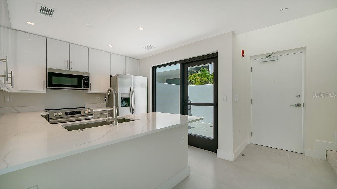 Brand new construction (never occupied), luxurious condo in the heart of Rosemary District. 2 bedroom, 2 bathroom "loft style" unit is ready for immediate occupancy. Another mesmerizing contemporary design by award-winning architects Halflants + Pichette. This unit has very HIGH CEILINGS going all the way up to floor 2. The patio off of the kitchen and a secured and covered parking space comes with with this unit with direct power for ELECTRIC CAR charging. Gated community (no guard) and locked gated entrances from the sidewalk. Add in a dozen restaurants within a three-block radius, along with art galleries, the Sarasota Ballet, Saturday morning farmers market and Whole Foods and you now have the delights of living in the Rosemary District. Garden living with the excitement of all that downtown living is all about. Elevators and stairwells escort you to your front door. Enjoy gated covered parking with an assigned reserved parking space with wiring for an EV charger. Contemporary cabinetry, quartz countertops, superb appliance packages, solid core doors, porcelain tile floors inside and out and efficient, insulated impact glass make your home a very special place. Fine and casual dining, the theater, the opera, art galleries, world-class shopping and Sarasota Bayfront Park. Just over the John Ringling Bridge to Lido Beach and delightful shopping of St Armands Circle! Call for your private showing today. Buyers and/or Buyers Agent to verify all pertinent information, including room sizes, as they may be approximate. All Association information should be verified with Property Management Company or Association. Information deemed reliable but not guaranteed.