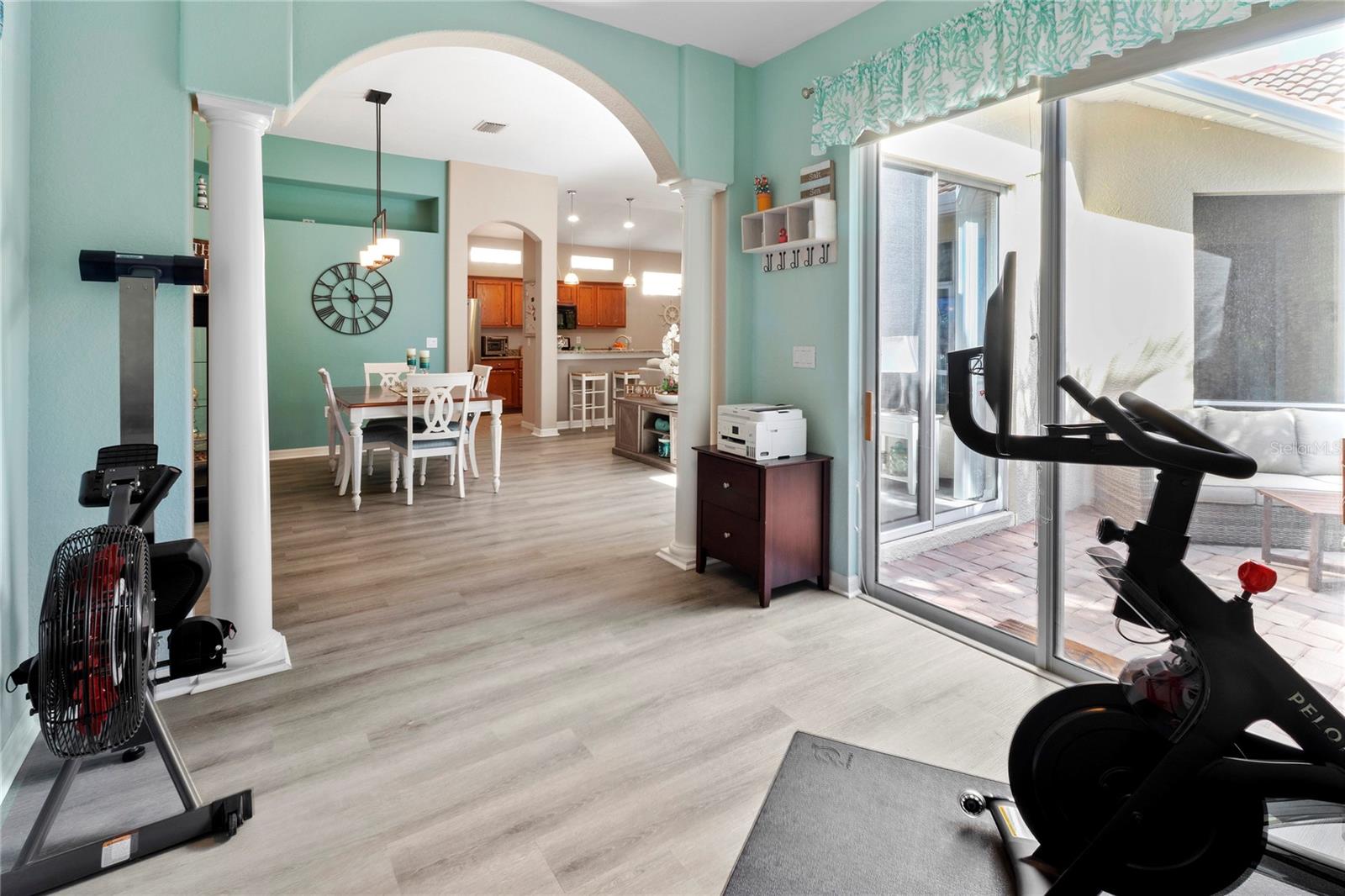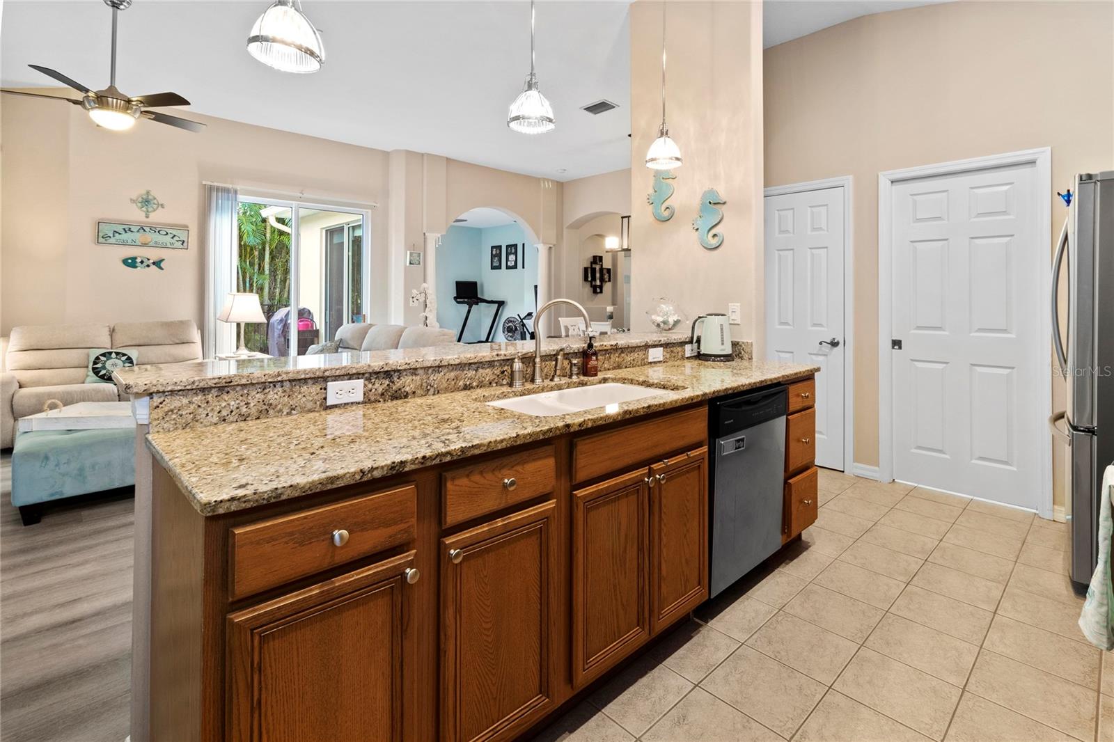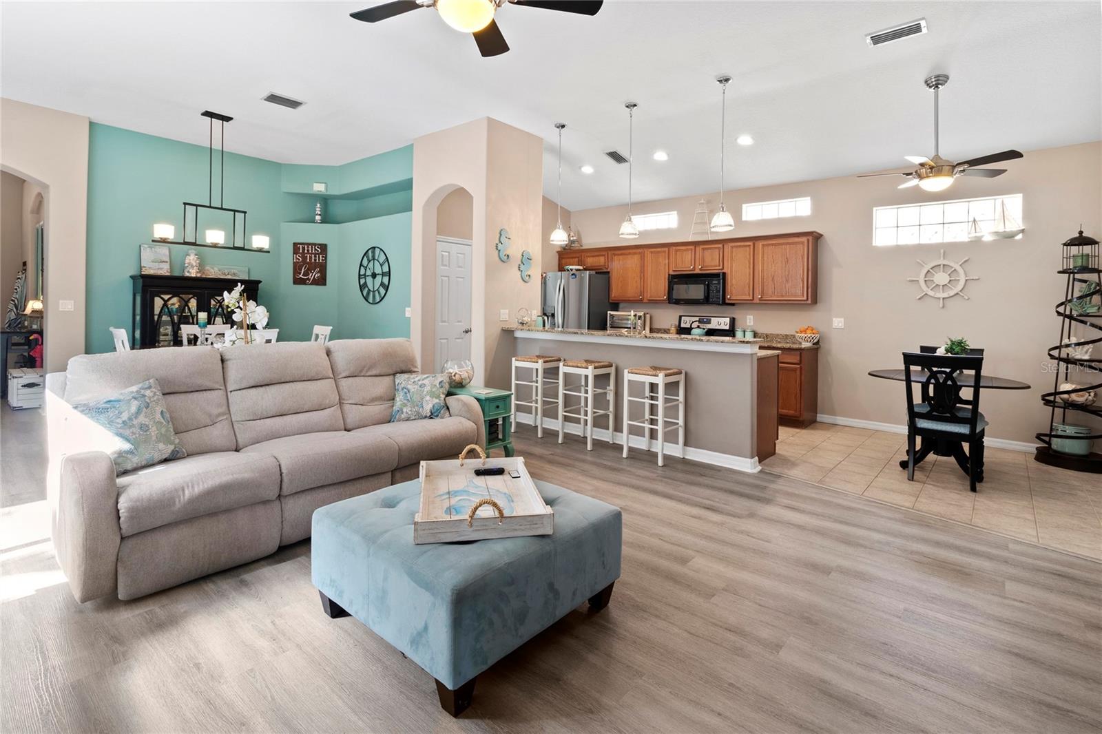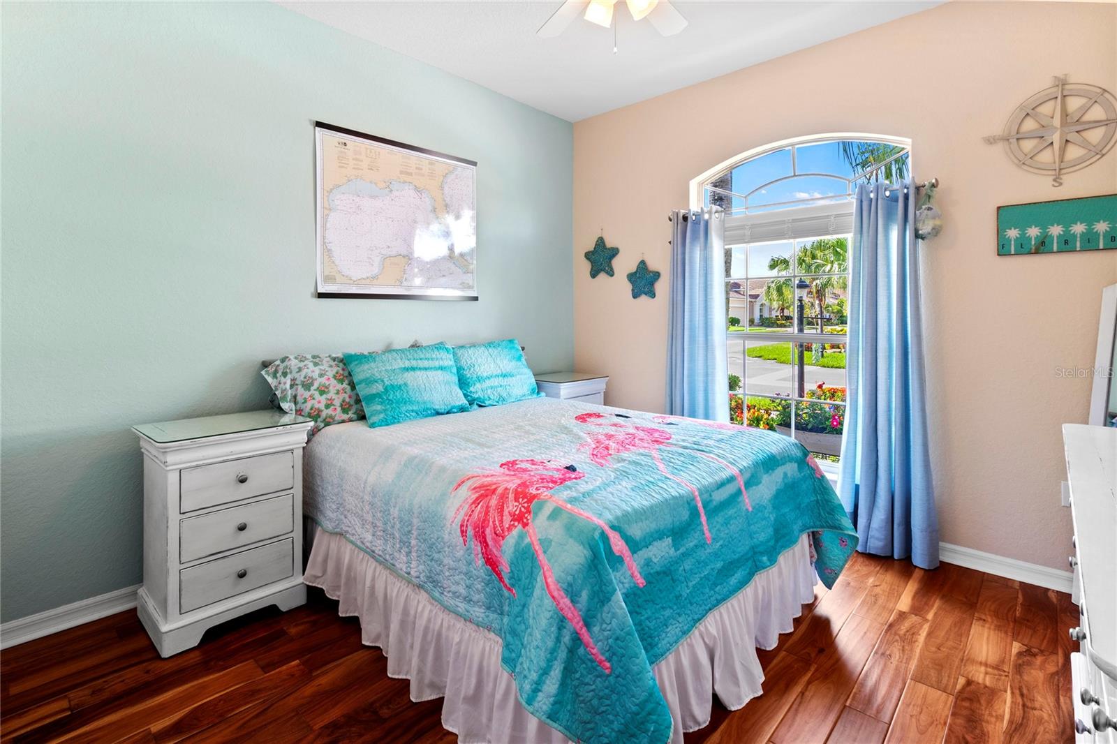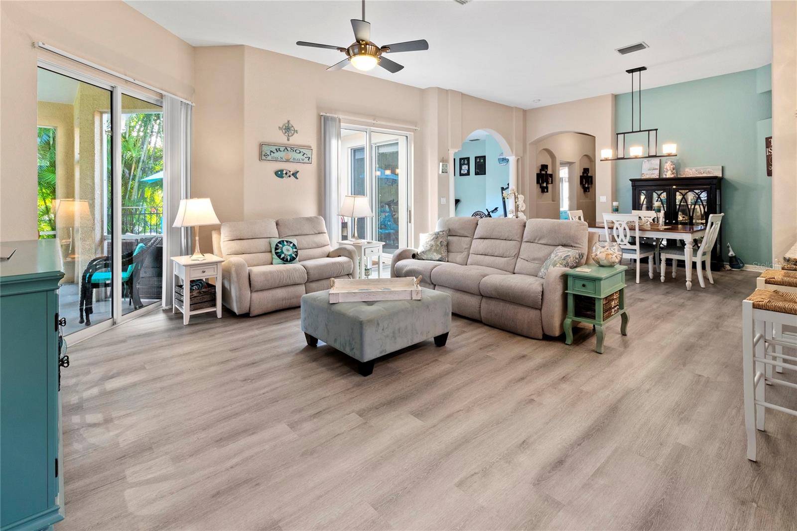 Experience the masterful blend of maintenance-free living with the privacy of a single-family home in this two bedroom + den and two bath residence situated on a corner lot. Palm Lakes is a gated community of single story, free-standing homes with low monthly dues. Perfect as a primary or secondary home. Make an entrance on the pavered walkway with enhanced landscaping to the foyer to find the split plan guest quarters for excellent privacy. Splendid great room floor plan perfect for entertaining including dining area, eat-in kitchen with generous breakfast bar, granite counters and newer stainless appliances (refrigerator 2024). Roomy primary bedroom offers access through sliders to the screened lanai offering a wonderful and private place to unwind and enjoy the fresh air. Let’s not forget the bonus den that could be easily converted to a third bedroom. You are sure to enjoy the convenience of the dedicated laundry room and roomy two car garage. New flooring, new hot water heater and new exterior paint ensuring peace of mind for years to come (Barrel Tile Roof 19 yo & HVAC 8 yo). The open design of this home boasts stunning new luxury vinyl flooring, hardwood (guest) and ceramic tile (kitchen & baths) requiring effortless maintenance and excellent for those sandy feet. This home offers high ceilings, beautiful custom architectural features that include arches, columns, recessed lighting, palladian windows and art niche foyer walls. Palm Lakes offers a community pool, playground and clubhouse with pool table & kitchen. There’s even a generator at the clubhouse. The low maintenance fees include lawn maintenance, exterior painting and pest control. This prime location affords convenient access to all cultural venues, dining, retail, golf, excellent schools and world-class powdery sand Gulf beaches. You are sure to find this tranquil oasis the place for great memories to be made.