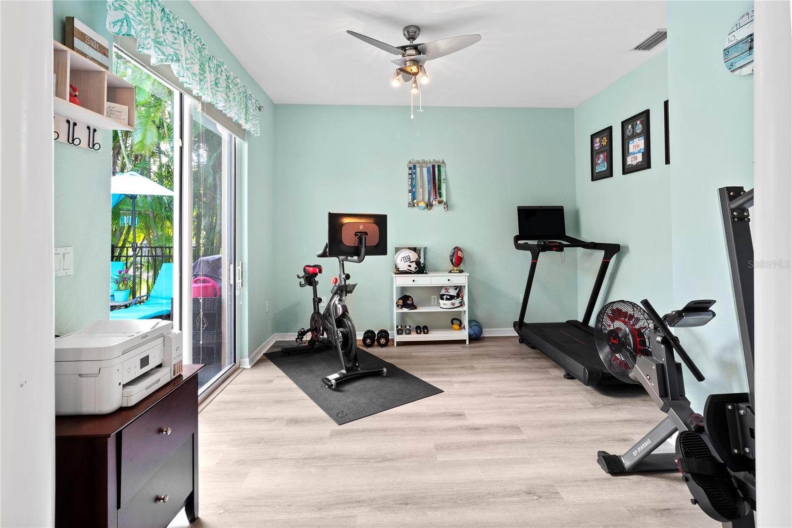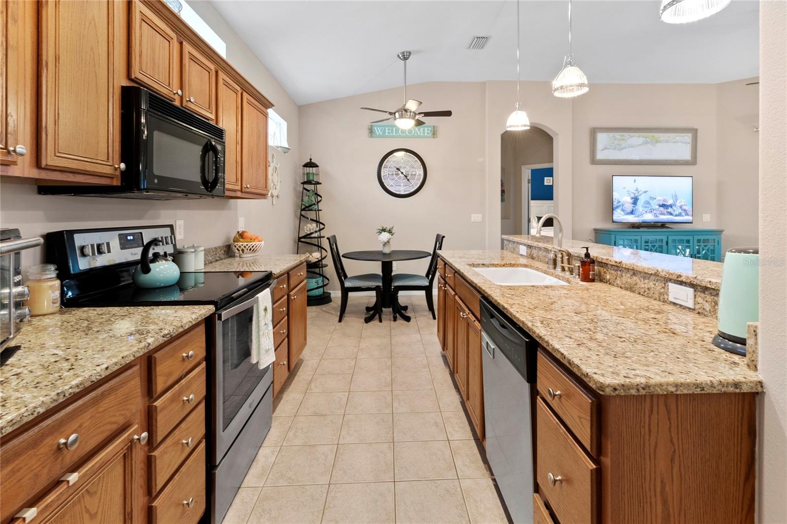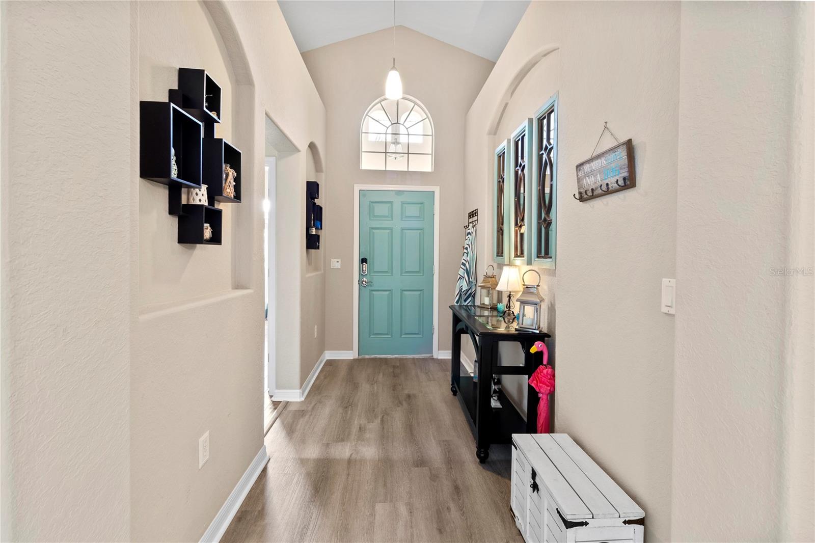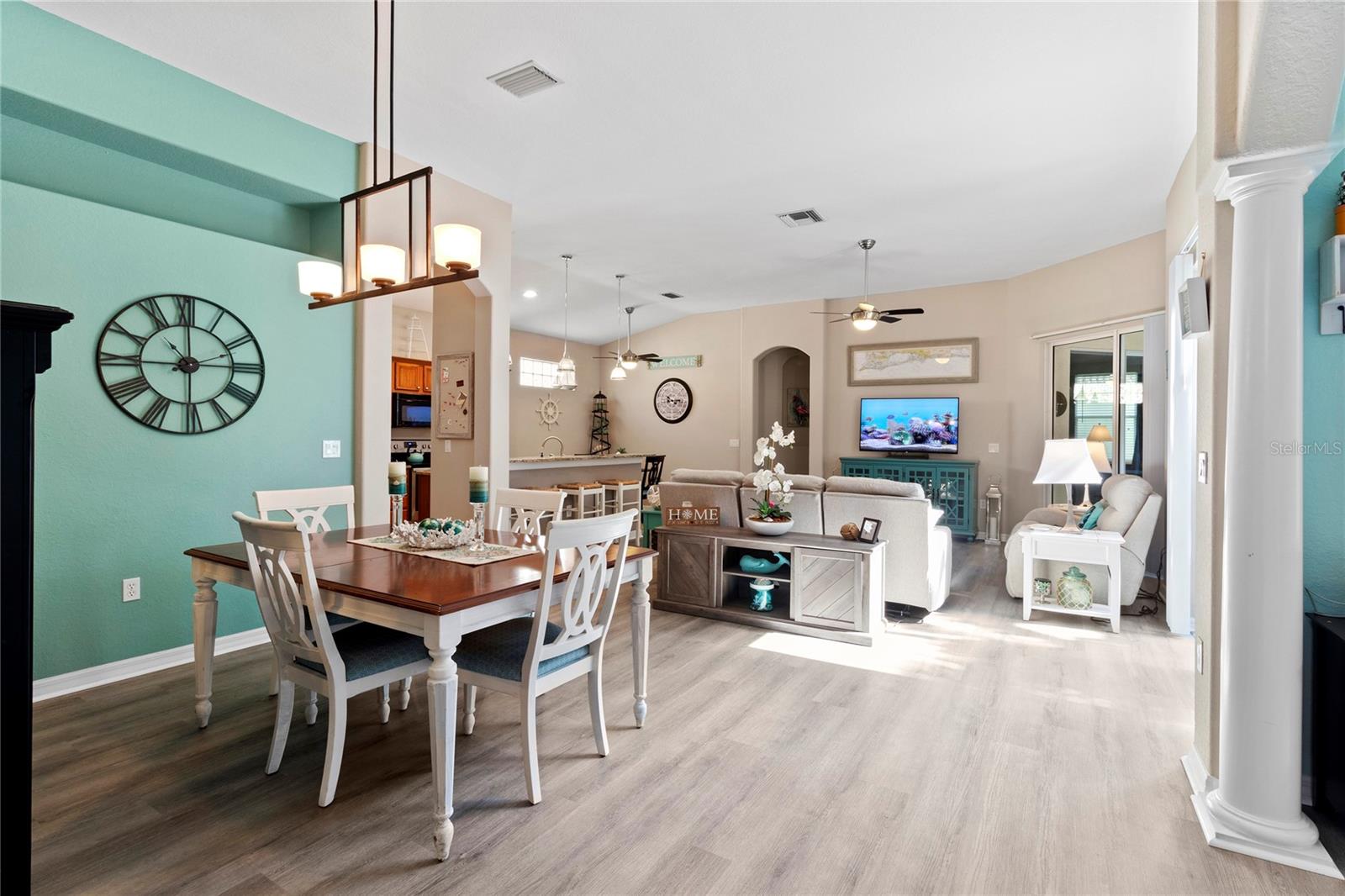 Experience the masterful blend of maintenance-free living with the privacy of a single-family home in this two bedroom + den and two bath residence situated on a corner lot. Palm Lakes is a gated community of single story, free-standing homes with low monthly dues. Perfect as a primary or secondary home. Make an entrance on the pavered walkway with enhanced landscaping to the foyer to find the split plan guest quarters for excellent privacy. Splendid great room floor plan perfect for entertaining including dining area, eat-in kitchen with generous breakfast bar, granite counters and newer stainless appliances (refrigerator 2024). Roomy primary bedroom offers access through sliders to the screened lanai offering a wonderful and private place to unwind and enjoy the fresh air. Let’s not forget the bonus den that could be easily converted to a third bedroom. You are sure to enjoy the convenience of the dedicated laundry room and roomy two car garage. New flooring, new hot water heater and new exterior paint ensuring peace of mind for years to come (Barrel Tile Roof 19 yo & HVAC 8 yo). The open design of this home boasts stunning new luxury vinyl flooring, hardwood (guest) and ceramic tile (kitchen & baths) requiring effortless maintenance and excellent for those sandy feet. This home offers high ceilings, beautiful custom architectural features that include arches, columns, recessed lighting, palladian windows and art niche foyer walls. Palm Lakes offers a community pool, playground and clubhouse with pool table & kitchen. There’s even a generator at the clubhouse. The low maintenance fees include lawn maintenance, exterior painting and pest control. This prime location affords convenient access to all cultural venues, dining, retail, golf, excellent schools and world-class powdery sand Gulf beaches. You are sure to find this tranquil oasis the place for great memories to be made.
