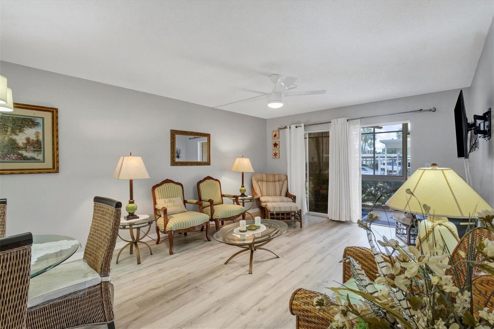 Welcome to your serene oasis in the heart of our vibrant 55+ community! This impeccably remodeled 2 bed, 2 bath condo offers the perfect blend of comfort and convenience. Step inside to discover a beautifully furnished turnkey unit, where every detail has been thoughtfully considered. From the spacious living areas to the modern kitchen boasting updated appliances, this home is ready to enchant. Enjoy the ease of covered carport parking right at your doorstep, ensuring effortless access to your haven. Plus, you'll find additional storage just across the hall, alongside the convenience of a nearby laundry room. Beyond your doorstep, indulge in a wealth of community activities tailored for your enjoyment. Whether it's socializing at the clubhouse or relaxing by the pool, every day brings new opportunities for leisure and camaraderie. Glen Oaks Garden Apartments is just a short drive to downtown, lido beach, St Armands, and less than a mile to Publix Groceries, bank and coffee and restaurants. Don't miss out on this rare opportunity to embrace the best of 55+ living with an affordable monthly condo fee that includes a lot: water, trash, sewer, cable, pool, exterior maint. Some updates include: AC Unit 2024, guest bath with beautiful shower and floor tiles, frameless glass-door, vanity, mirror and lights. 2023 Samsung 43" smart TV and Samsung Refrigerator. 2022 Rescreened lanai and new King bedroom suit. 2020 New Paint and Flooring and brand new master bathroom. 2015 NEW KITCHEN: all new cabinets, granite counters, microwave, and dishwasher. Schedule your showing today and experience the allure of this remarkable condo firsthand!