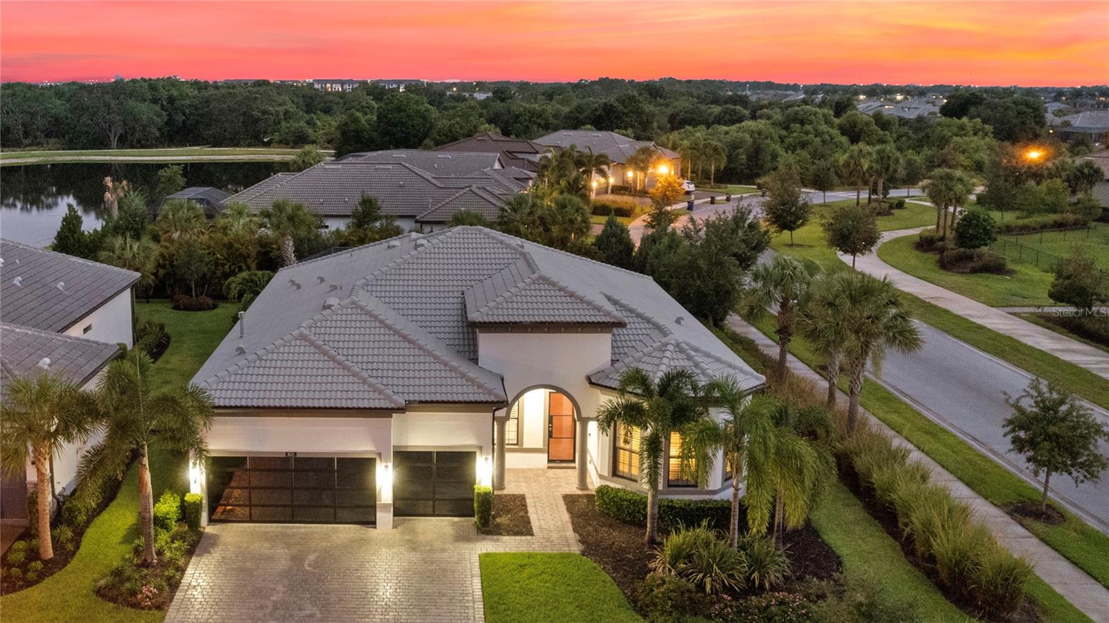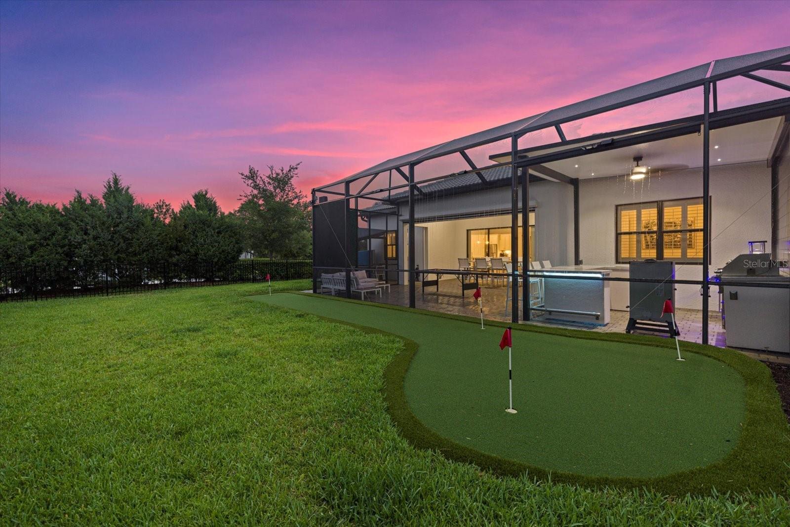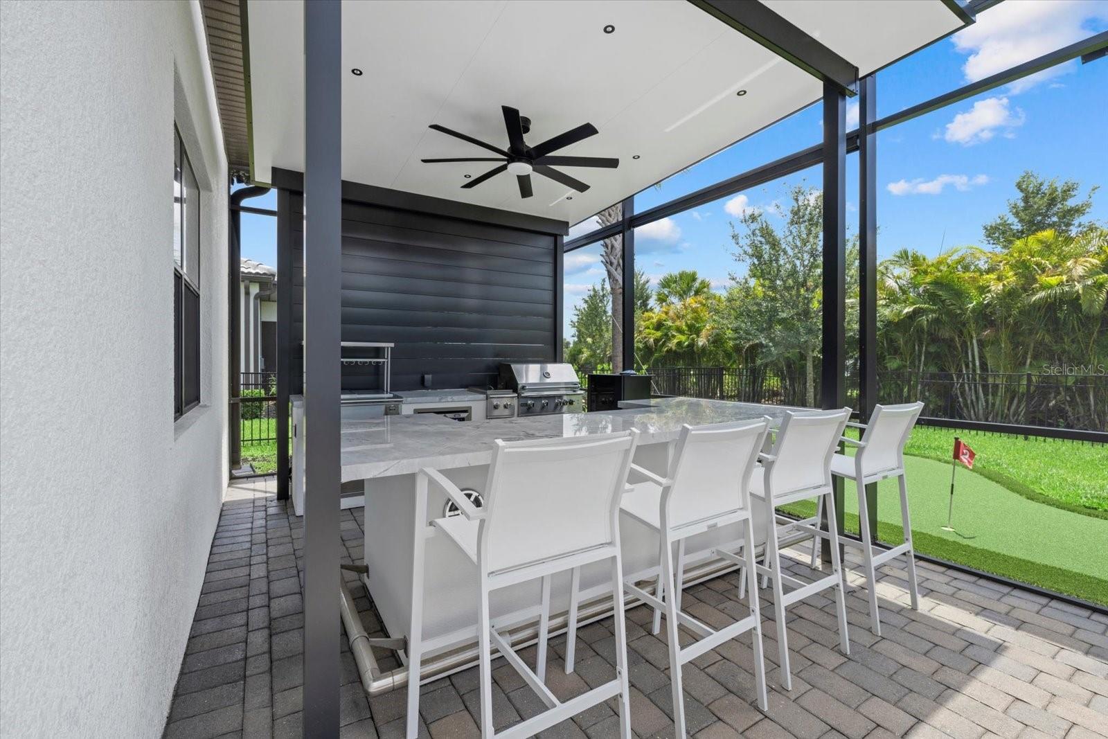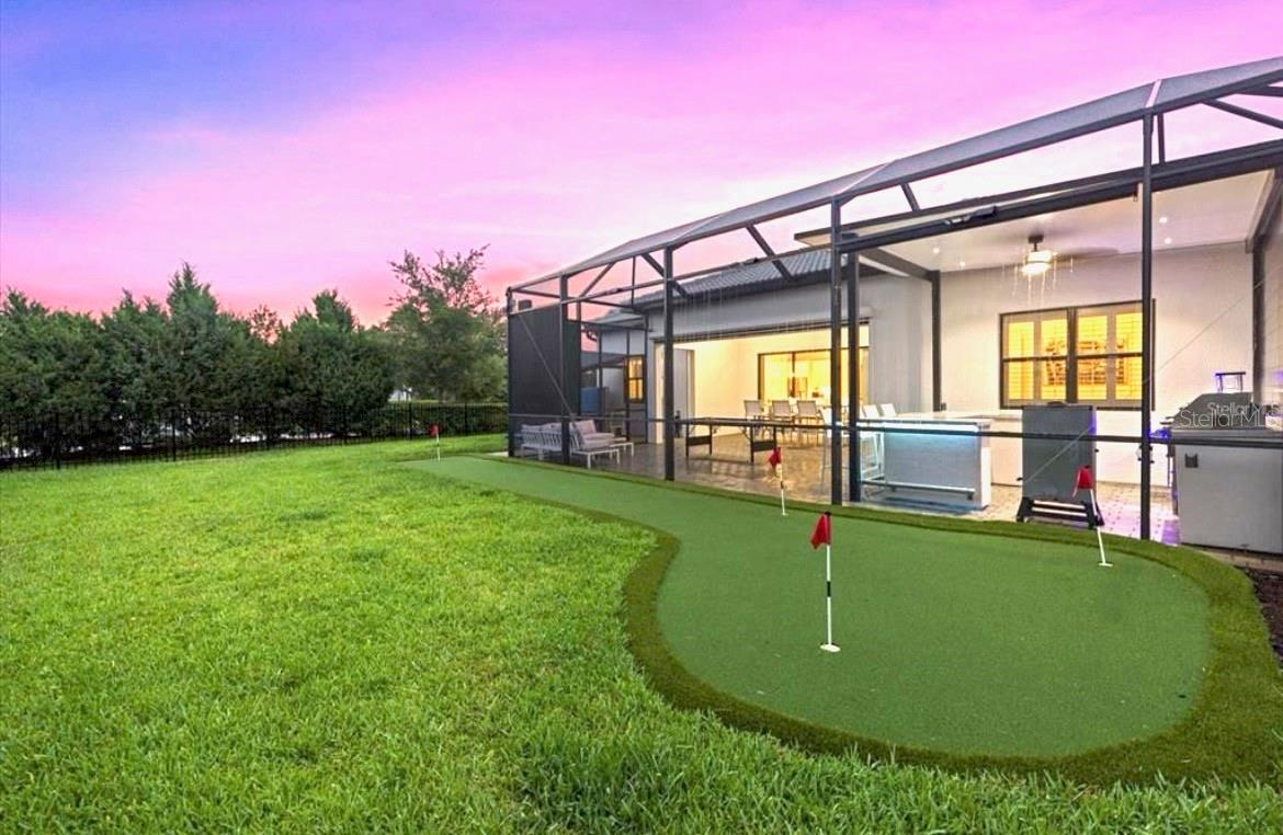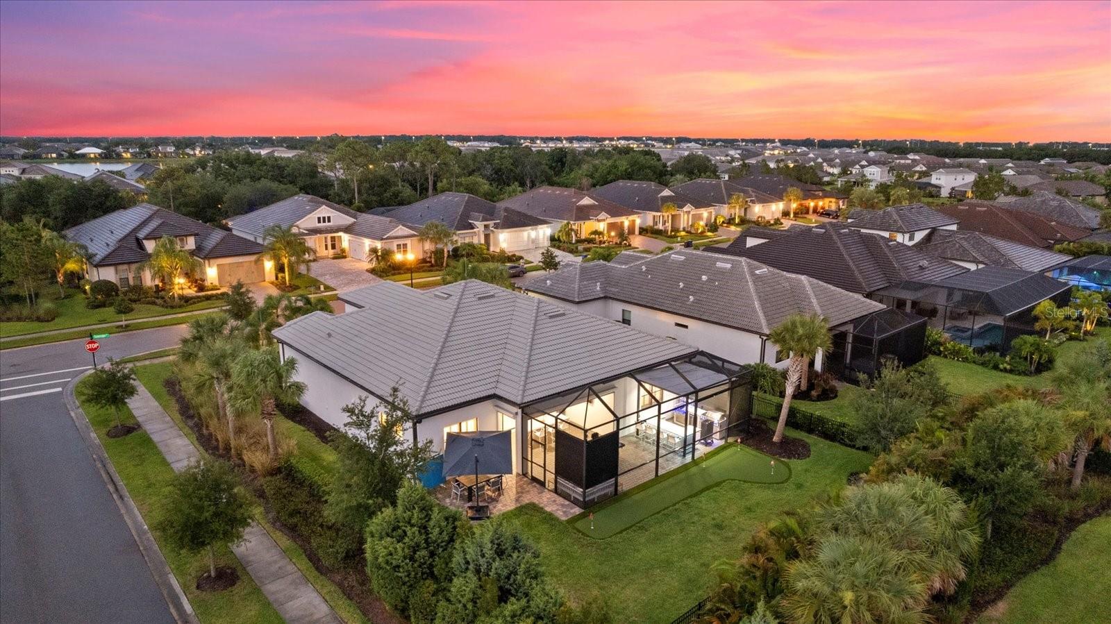Welcome to your dream home in the highly coveted village of Shoreview, nestled within the heart of Waterside at Lakewood Ranch. This stunning custom-built residence with over $175,000 in recent custom upgrades offers the pinnacle of luxury living, boasting 3 bedrooms, 3 bathrooms, and a spacious 3-car garage with a flex office space. Upon entering, you are greeted by a grand great room featuring soaring 12-foot ceilings, creating an expansive and airy atmosphere ideal for hosting gatherings. The chef's kitchen is a masterpiece, complete with built-in appliances, a sizable island for culinary creations, and exquisite finishes throughout. The seamless indoor-outdoor living experience is perfected with pocket slider doors leading to an expansive lanai and a custom outdoor oasis. Here, a custom bar and outdoor kitchen await, alongside a massive, covered dining area, a generous sitting and entertaining space, and your own personal putting green—all set within a lush, tropical fenced backyard. The home offers privacy and comfort with generously sized bedrooms, each accompanied by its own bathroom and walk-in closet. The primary suite is thoughtfully separated, featuring a private bath designed for relaxation and rejuvenation. Additional highlights include stunning custom glass doors at the office, front entry and garage, enhancing the home's curb appeal and elegance. Situated on an oversized corner lot, you'll enjoy breathtaking western-facing Florida sunsets daily. Just across the street, the dog park beckons, while easy access to the cart path makes trips to the brand-new Waterside shopping and dining plaza effortless. Residents of Shoreview also enjoy exclusive access to resort-style amenities including a pool, gathering spaces, an entertaining bar, fitness center, firepit, tennis and pickleball courts, private beach with kayak launch —all just steps away. Conveniently located, this home offers easy access to Lakewood Ranch Main Street, University Town Center, downtown Sarasota, St. Armand’s Circle and the pristine beaches of Siesta Key, Lido Key, Longboat Key, Anna Maria Island, as well as cultural hubs like St. Petersburg, Tampa and even Orlando—all within a short drive. Don’t miss your chance to own this exceptional residence in one of the most desirable communities on Florida’s Gulf Coast. Experience luxury, convenience and unparalleled lifestyle at its finest in this Shoreview gem.