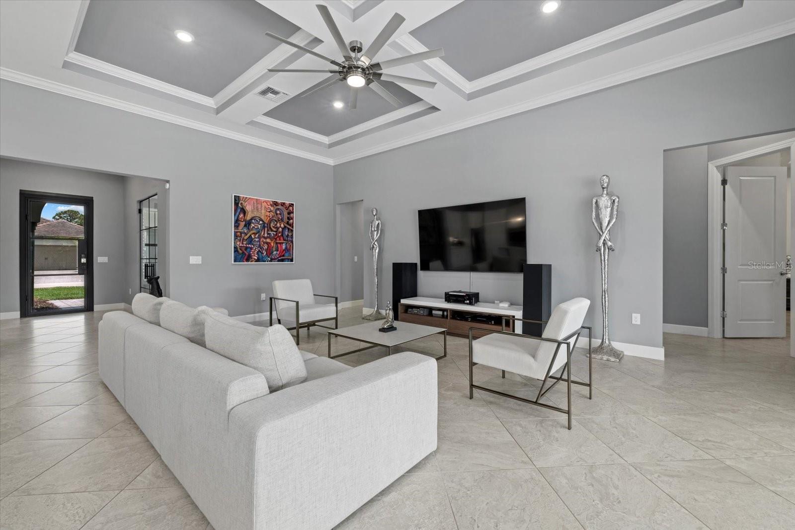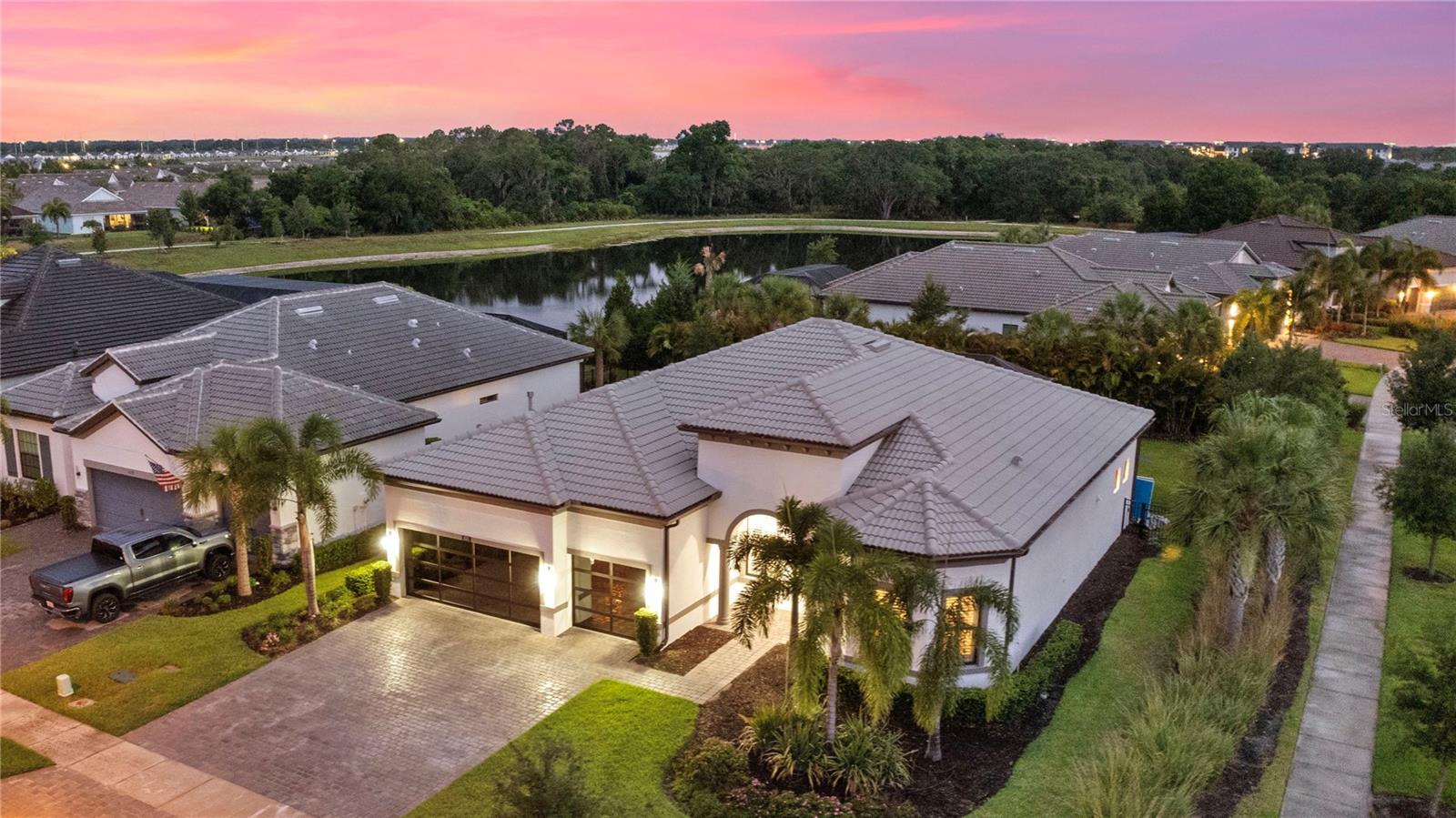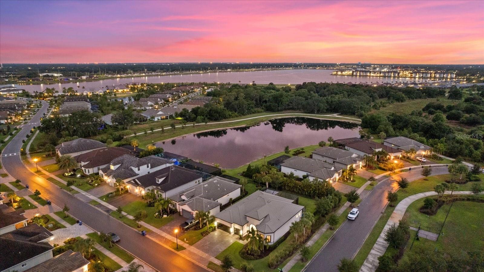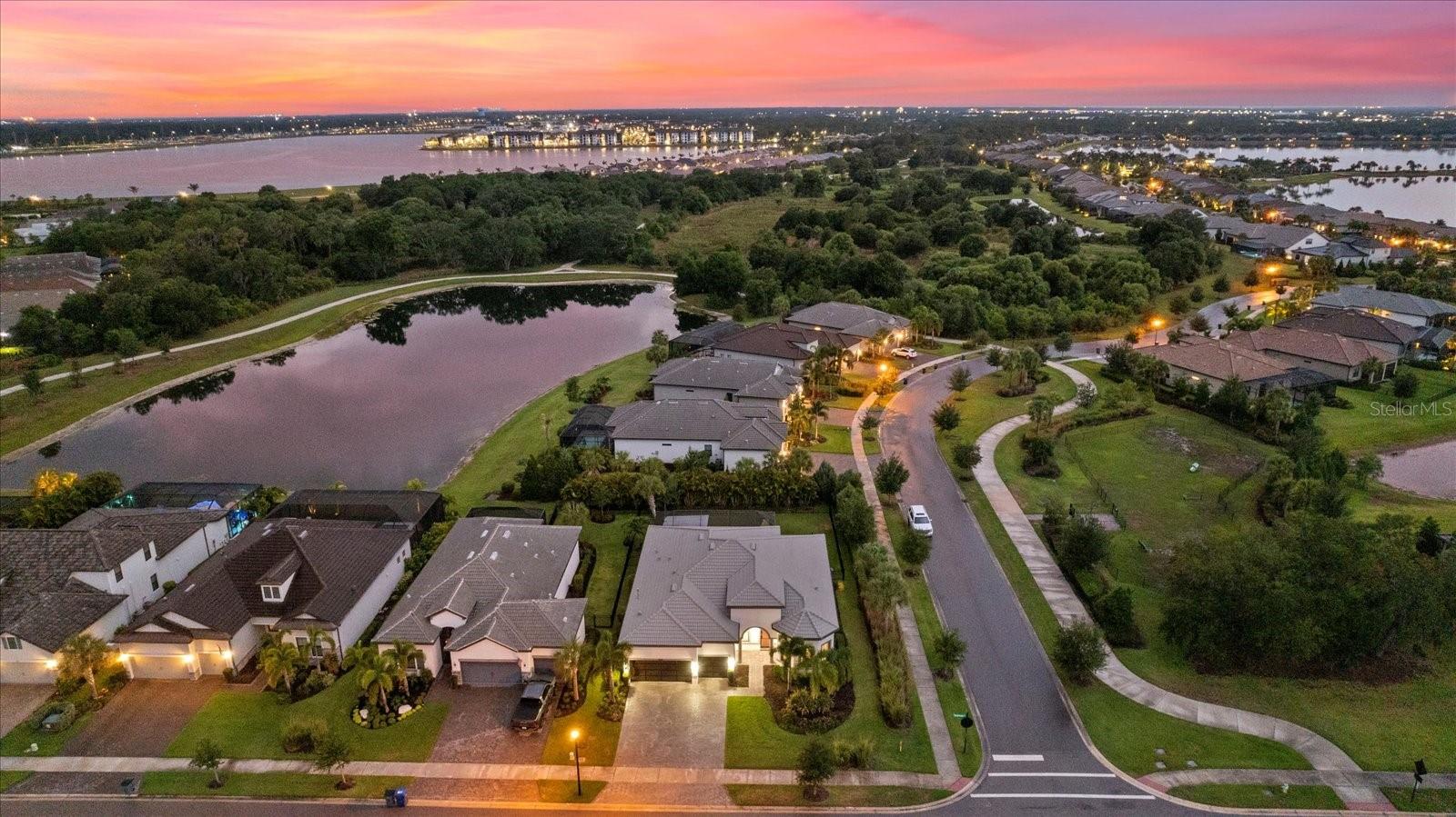 Welcome to your dream home in the highly coveted village of Shoreview, nestled within the heart of Waterside at Lakewood Ranch. This stunning custom-built residence with over $175,000 in recent custom upgrades offers the pinnacle of luxury living, boasting 3 bedrooms, 3 bathrooms, and a spacious 3-car garage with a flex office space. Upon entering, you are greeted by a grand great room featuring soaring 12-foot ceilings, creating an expansive and airy atmosphere ideal for hosting gatherings. The chef's kitchen is a masterpiece, complete with built-in appliances, a sizable island for culinary creations, and exquisite finishes throughout. The seamless indoor-outdoor living experience is perfected with pocket slider doors leading to an expansive lanai and a custom outdoor oasis. Here, a custom bar and outdoor kitchen await, alongside a massive, covered dining area, a generous sitting and entertaining space, and your own personal putting green—all set within a lush, tropical fenced backyard. The home offers privacy and comfort with generously sized bedrooms, each accompanied by its own bathroom and walk-in closet. The primary suite is thoughtfully separated, featuring a private bath designed for relaxation and rejuvenation. Additional highlights include stunning custom glass doors at the office, front entry and garage, enhancing the home's curb appeal and elegance. Situated on an oversized corner lot, you'll enjoy breathtaking western-facing Florida sunsets daily. Just across the street, the dog park beckons, while easy access to the cart path makes trips to the brand-new Waterside shopping and dining plaza effortless. Residents of Shoreview also enjoy exclusive access to resort-style amenities including a pool, gathering spaces, an entertaining bar, fitness center, firepit, tennis and pickleball courts, private beach with kayak launch —all just steps away. Conveniently located, this home offers easy access to Lakewood Ranch Main Street, University Town Center, downtown Sarasota, St. Armand’s Circle and the pristine beaches of Siesta Key, Lido Key, Longboat Key, Anna Maria Island, as well as cultural hubs like St. Petersburg, Tampa and even Orlando—all within a short drive. Don’t miss your chance to own this exceptional residence in one of the most desirable communities on Florida’s Gulf Coast. Experience luxury, convenience and unparalleled lifestyle at its finest in this Shoreview gem.