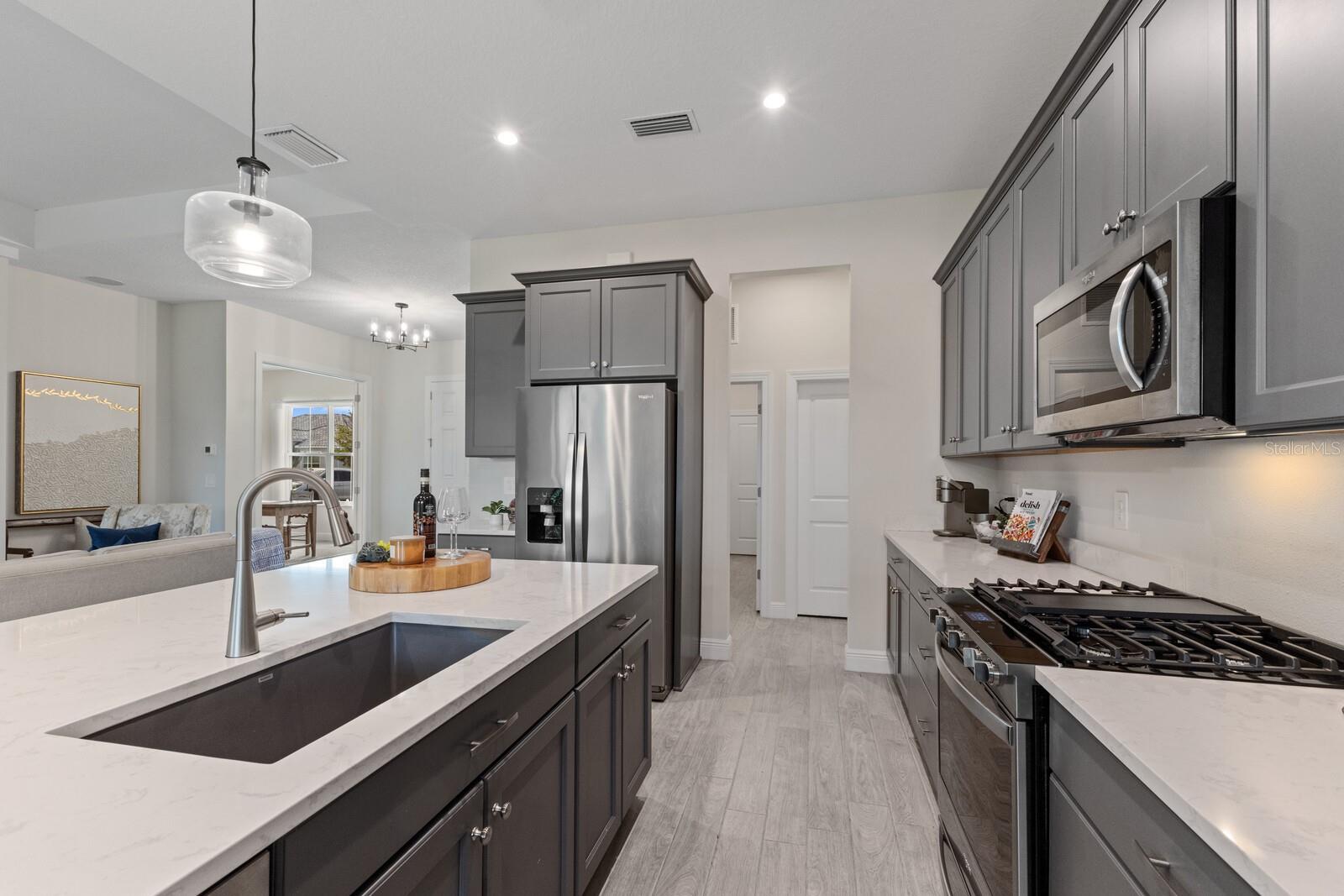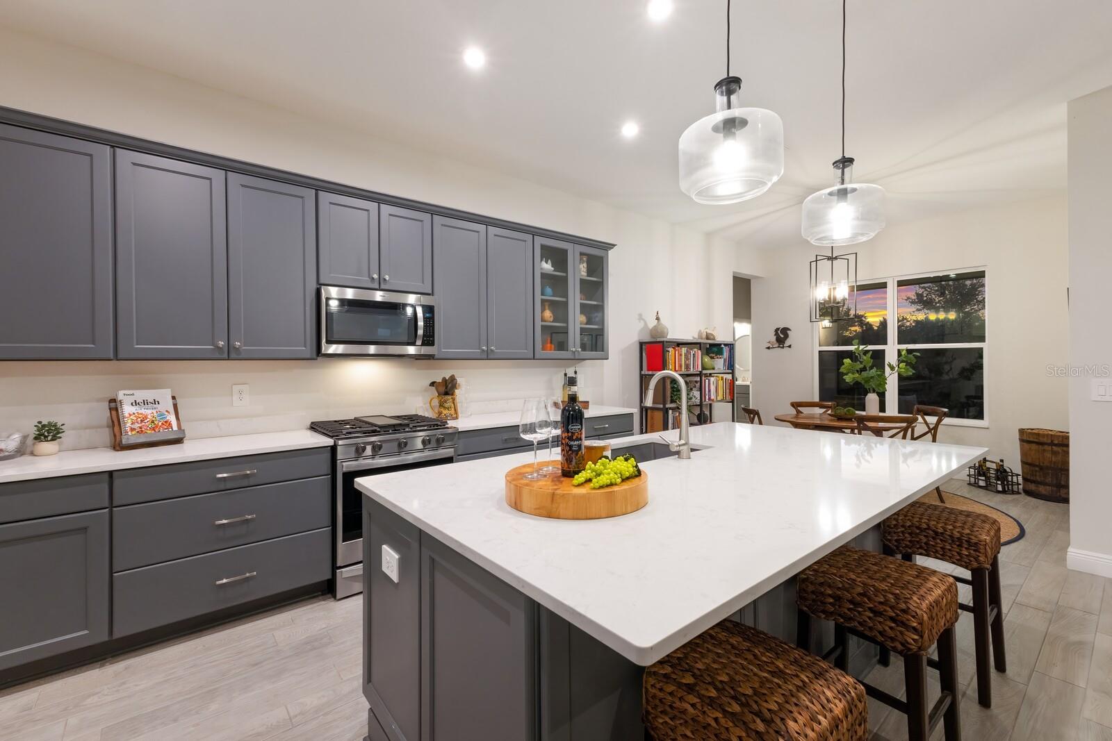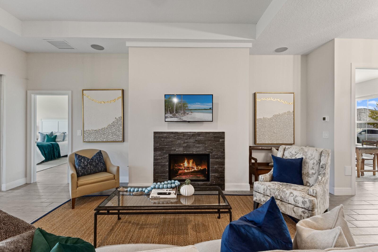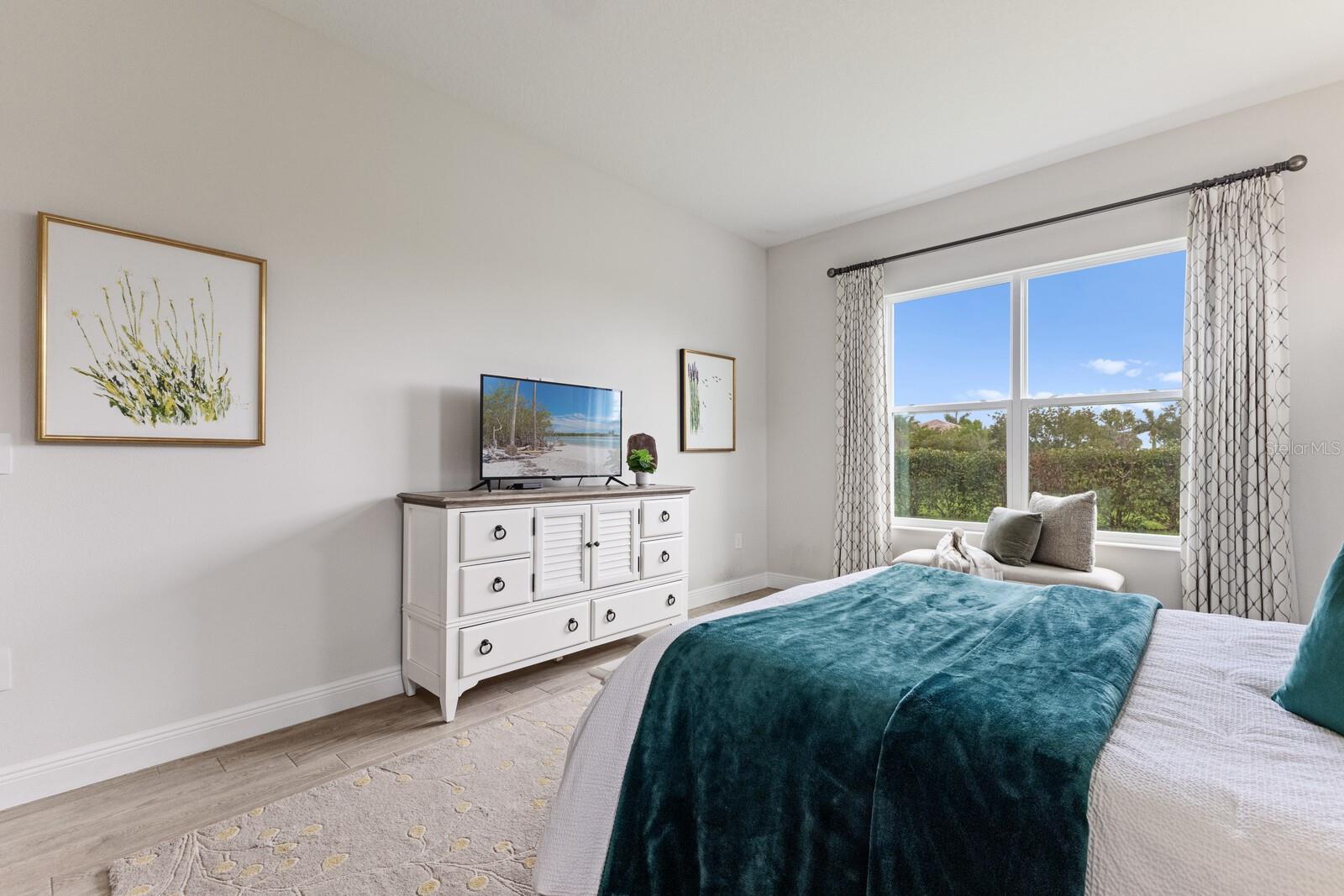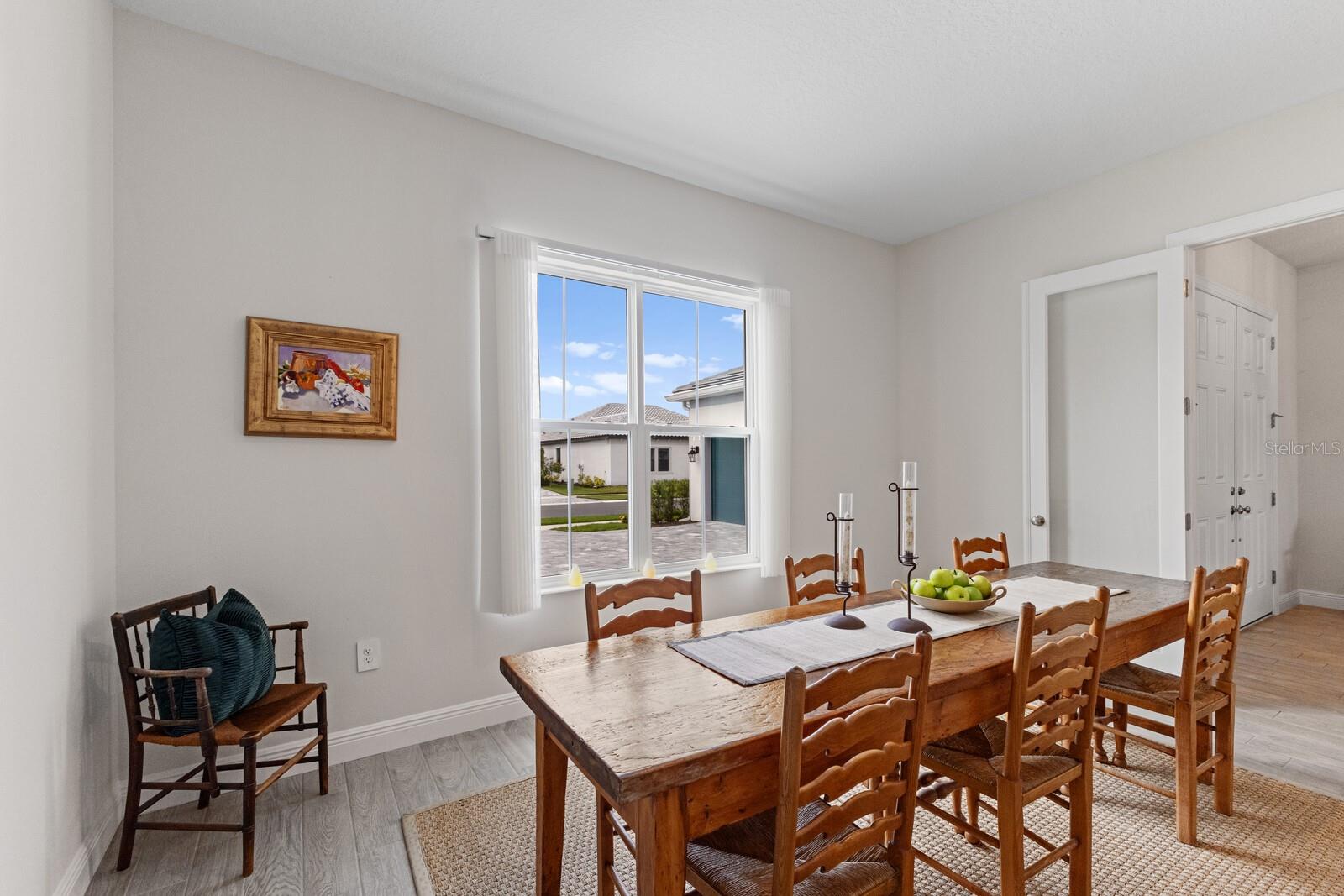 Situated on private setting, this Asher great room plan residence is nestled in Worthington, one of Sarasota’s newer gated communities offering an intimate neighborhood setting with maintenance-free living. This one-story 2,300 square foot open living concept plan boasts serene surroundings, optimal curb appeal, volume tray ceilings, and stunning plank tile flooring throughout. This three bedroom plus den and a bonus room plan is ideal for entertaining and every day living at every turn flowing seamlessly between the great room with gas fireplace, dining area and kitchen. Chefs will delight in the upgraded cabinetry and quartz counters, counter height island bar, stainless steel appliances, oversized walk-in pantry, and perfectly sized dining area engulfed by the surrounding private views beyond. Seamlessly connected to the outdoors, glass sliders reveal a serene outdoor living space with ample under cover screened entertainment areas, plus plenty of space to add a pool, spa, and outdoor kitchen. Relax and unwind in the elegant owner’s retreat positioned on a private wing, offering two walk-in closets, tray ceiling, and an appointed bath boasting separate vanities with quartz counters, large shower, and separate water closet. Overnight visitors will be right at home on their own separate wing with two generous guest suites centered by the home’s second full bath. Behind double doors off the great room, this inviting residence offers a dedicated separate study/den as well as a bonus room just off the third full bath. This inviting gem evokes a coastal elegance with a plethora of additional highlights including an oversized laundry room with utility sink, central vacuum, tankless water heater, hurricane shutters, pavered driveway, barrel tile roof, and a courtyard entry three car garage. Worthington is positioned in East Sarasota, minutes from downtown Sarasota, UTC Mall, Waterside Place, and Lakewood Ranch.