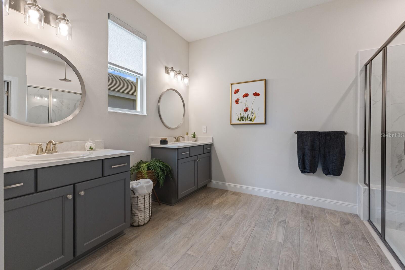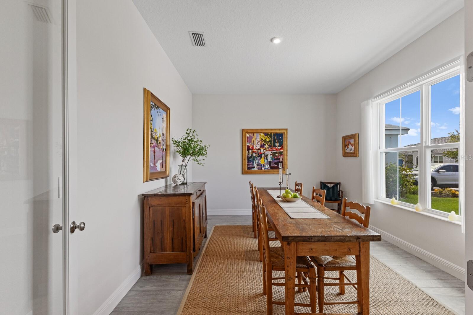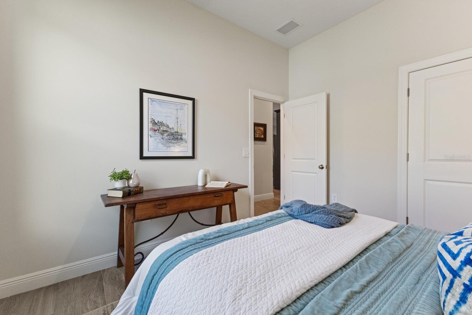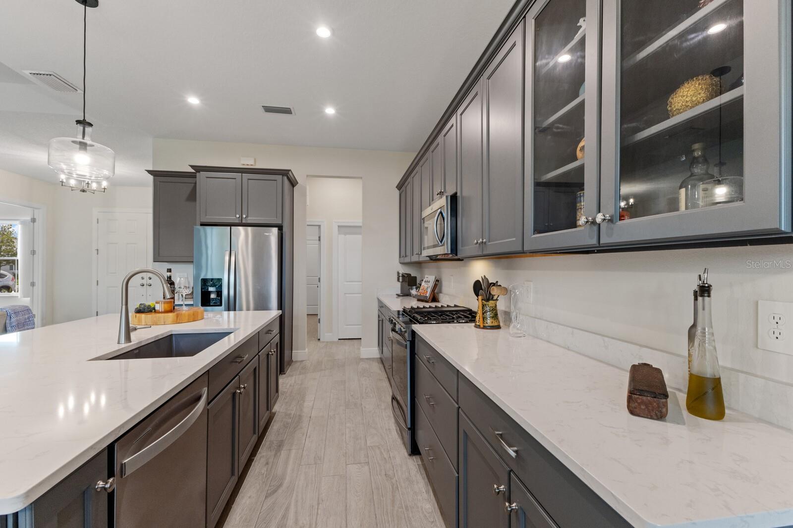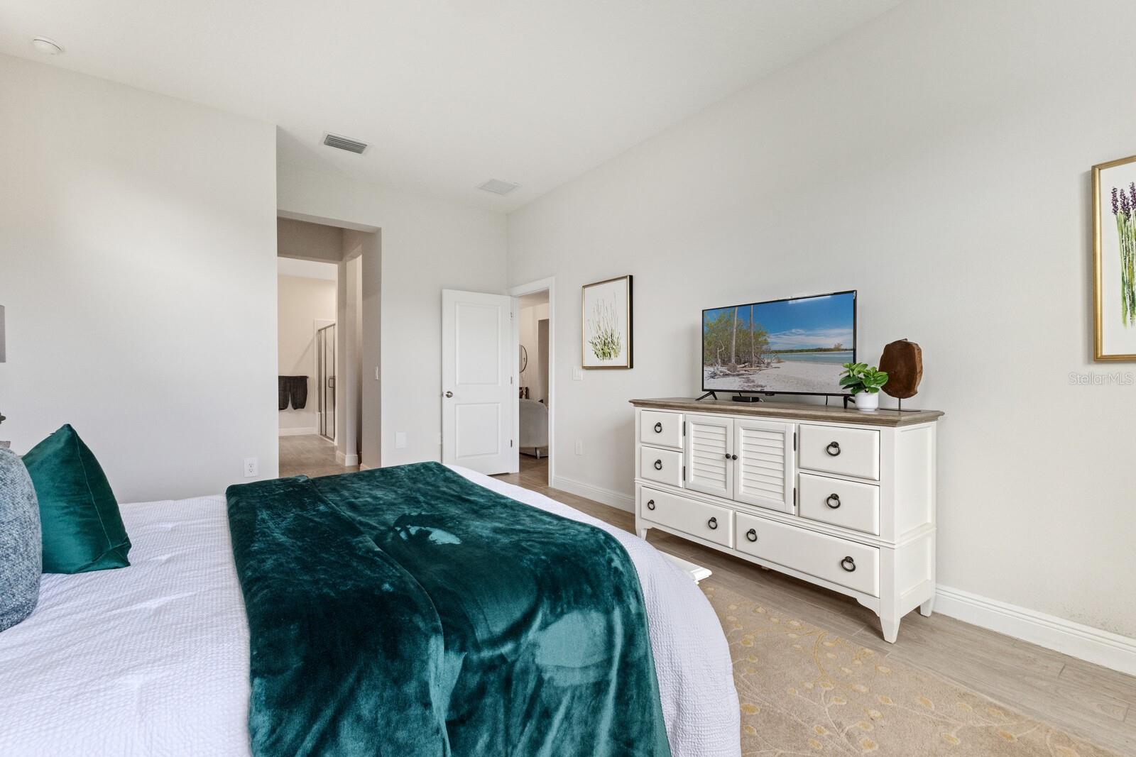 Situated on private setting, this Asher great room plan residence is nestled in Worthington, one of Sarasota’s newer gated communities offering an intimate neighborhood setting with maintenance-free living. This one-story 2,300 square foot open living concept plan boasts serene surroundings, optimal curb appeal, volume tray ceilings, and stunning plank tile flooring throughout. This three bedroom plus den and a bonus room plan is ideal for entertaining and every day living at every turn flowing seamlessly between the great room with gas fireplace, dining area and kitchen. Chefs will delight in the upgraded cabinetry and quartz counters, counter height island bar, stainless steel appliances, oversized walk-in pantry, and perfectly sized dining area engulfed by the surrounding private views beyond. Seamlessly connected to the outdoors, glass sliders reveal a serene outdoor living space with ample under cover screened entertainment areas, plus plenty of space to add a pool, spa, and outdoor kitchen. Relax and unwind in the elegant owner’s retreat positioned on a private wing, offering two walk-in closets, tray ceiling, and an appointed bath boasting separate vanities with quartz counters, large shower, and separate water closet. Overnight visitors will be right at home on their own separate wing with two generous guest suites centered by the home’s second full bath. Behind double doors off the great room, this inviting residence offers a dedicated separate study/den as well as a bonus room just off the third full bath. This inviting gem evokes a coastal elegance with a plethora of additional highlights including an oversized laundry room with utility sink, central vacuum, tankless water heater, hurricane shutters, pavered driveway, barrel tile roof, and a courtyard entry three car garage. Worthington is positioned in East Sarasota, minutes from downtown Sarasota, UTC Mall, Waterside Place, and Lakewood Ranch.