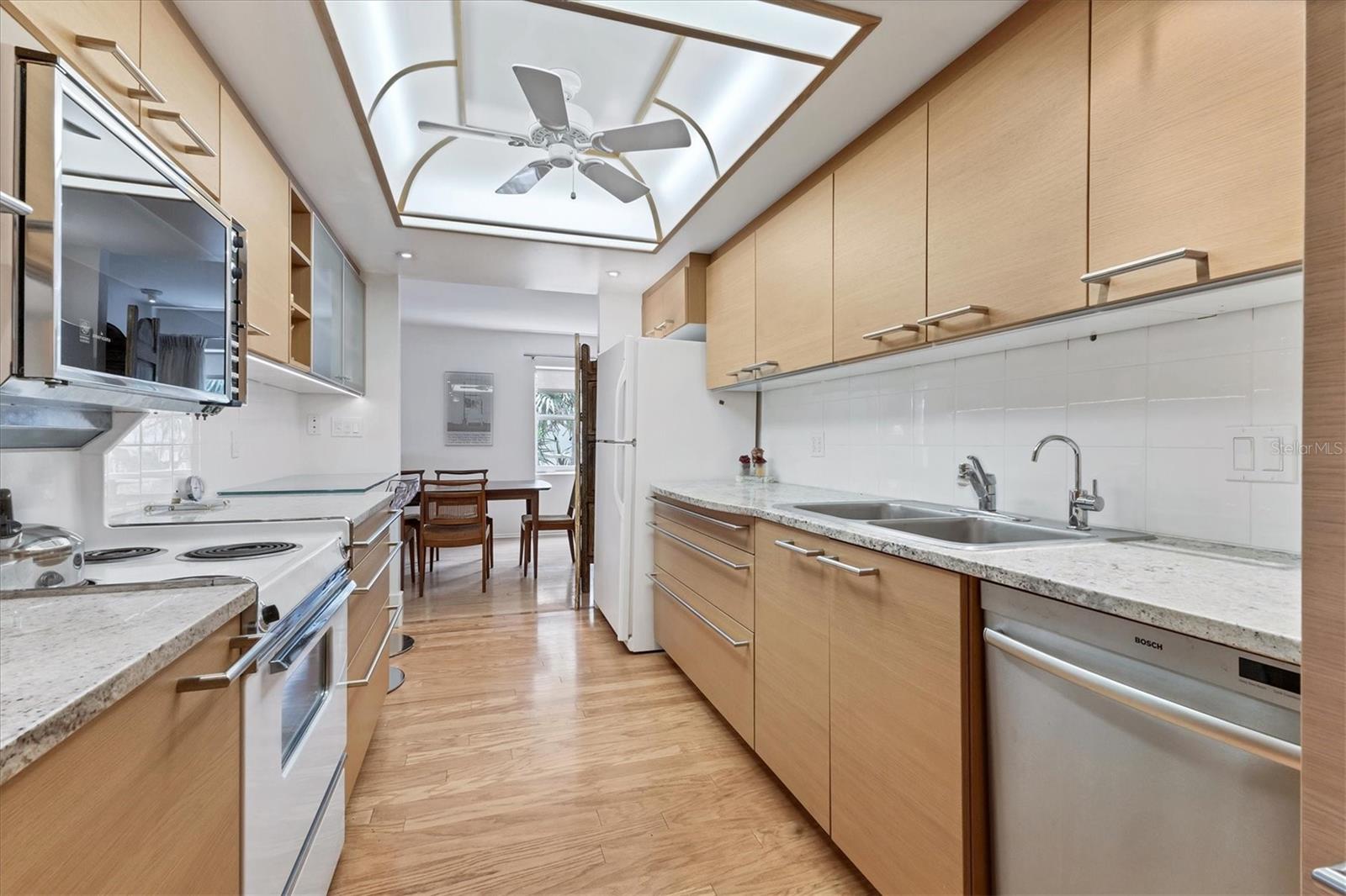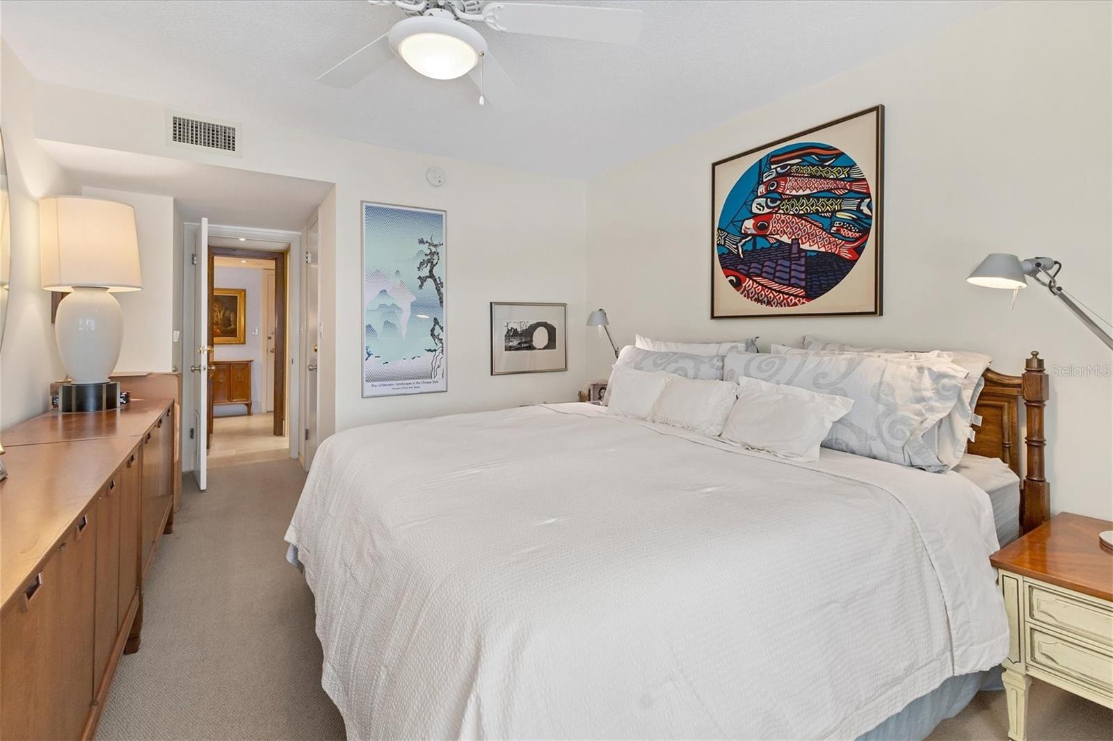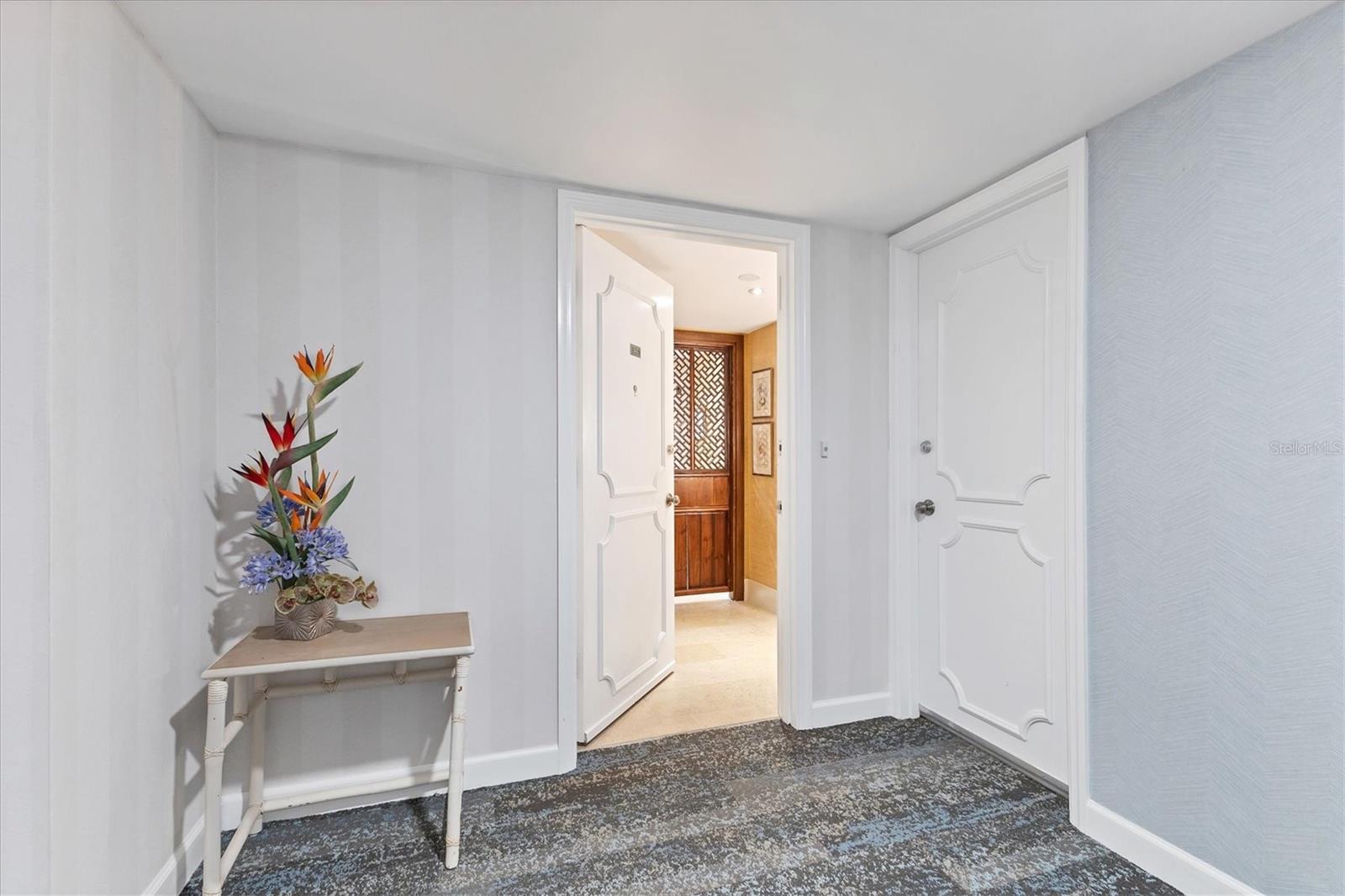 Welcome to your own piece of paradise in the rarely available Key Towers South. This stunning corner unit features 2 bedrooms, 2 bathrooms and offers the perfect combination of luxury and beachside living. Generously proportioned living spaces complement the floorplan and the light that filters through the condo. The entry foyer leads down a hall to a large, updated kitchen complete with Granite countertops, solid wood cabinetry and a Bosch dishwasher as well as plenty of storage and a breakfast bar. Two custom bookcases flank the living room, creating a spacious flow that opens onto the dining room, with large windows offering views of the Gulf of Mexico. The primary bedroom is a true retreat, with a walk-in closet and en-suite renovated bathroom featuring a double vanity and a large walk-in shower. The second bedroom is perfect for hosting guests or as a home office, complete with a full bathroom just steps away. The enclosed lanai with electric fireplace is the perfect spot to enjoy the morning sunlight with your coffee or take a short stroll to the white sandy beaches of South Lido Beach just moments away. This condo also offers access to a private pool and fitness center for your enjoyment. Take comfort in the security of impact resistant windows, one covered parking space and the benefit of a newly renovated lobby, to be completed by the 4th quarter of 2024, fully paid for by the sellers before closing. Located on Lido Key, you'll have easy access to all the shopping, dining, and entertainment options that Sarasota has to offer, with close proximity to St. Armands Circle and the vibrant downtown. Don't miss out on this excellent value and rare opportunity to own a piece of paradise on Lido Key!