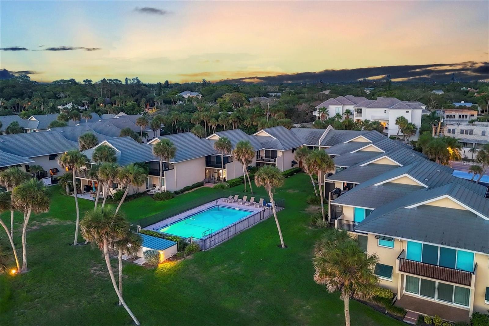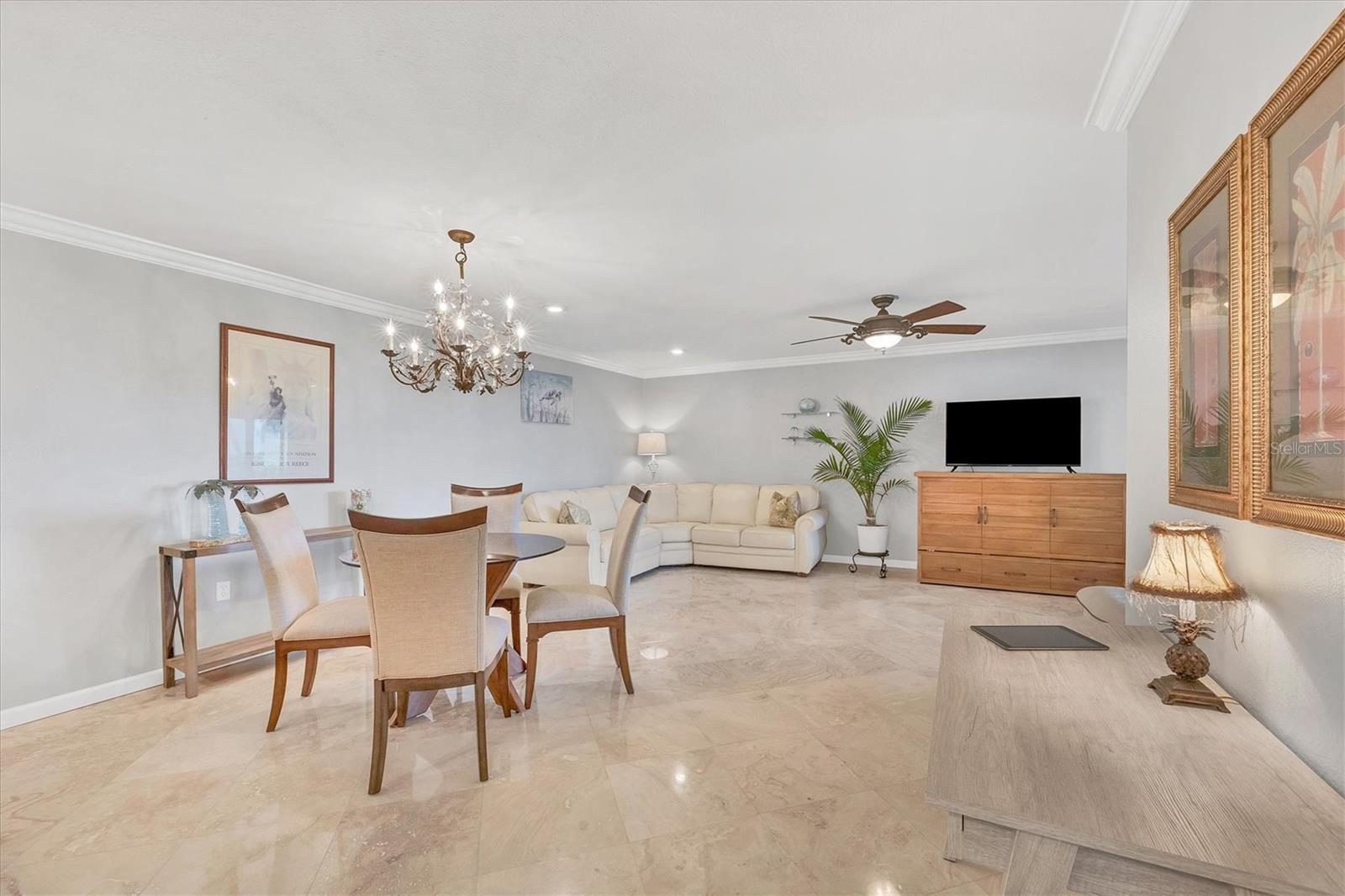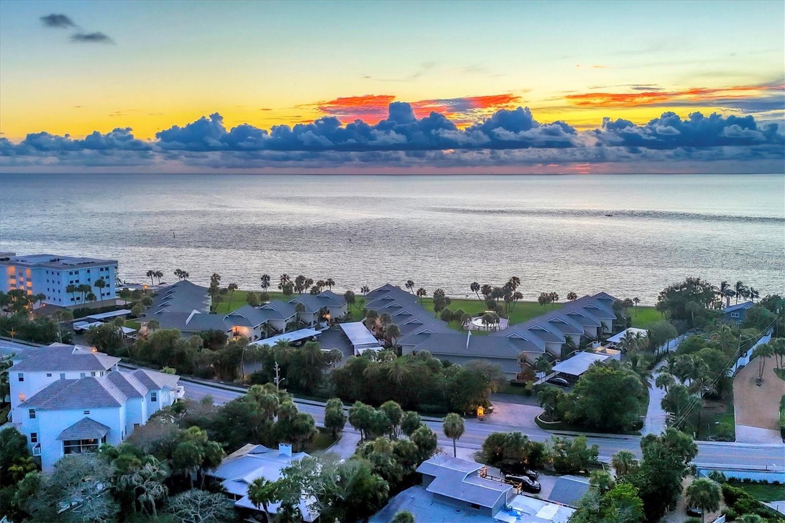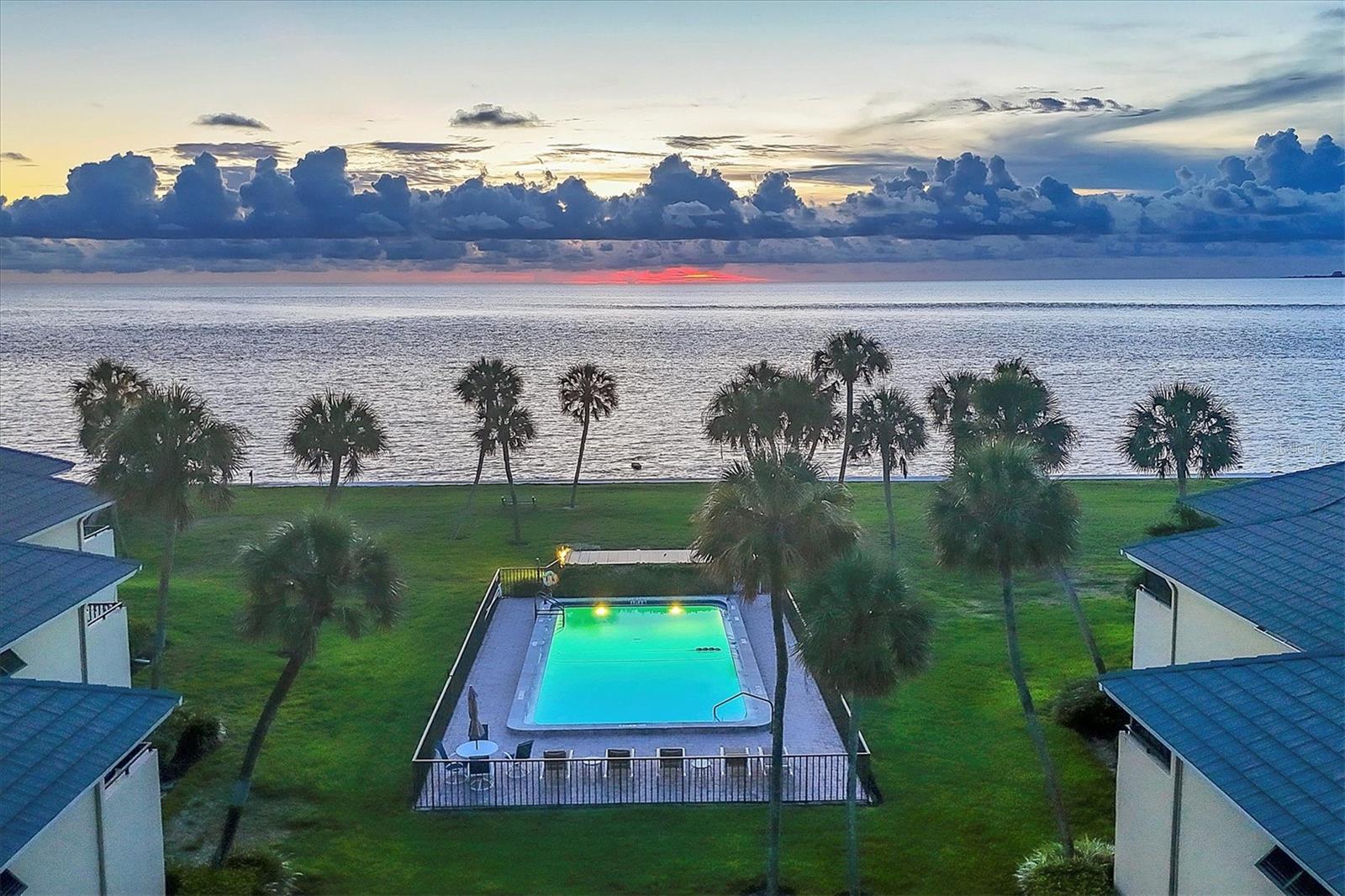 Discover a stunning, turnkey furnished waterfront condo in the highly desirable Sea Village community. Perfect for both seasonal retreats and year-round living, this condo offers a true paradise with breathtaking views of Big Pass and the Gulf of Mexico and is just steps from the heated community pool. The foyer greets you with travertine floors and an abundance of natural light streaming through the front door. Step into the living room, adorned with crown molding and hurricane rated sliders with plantation shutters, drawing you to the stunning water and sunset views. The dining room, featuring an ornate chandelier and crown molding, seamlessly opens to the kitchen and living room. The kitchen is a chef's delight with recessed lighting, wood cabinetry, granite countertops, a lazy susan, and pendant lights over the sink and breakfast bar with bar-height seating. It is equipped with a Samsung refrigerator and microwave, GE range, and Bosch dishwasher. The primary bedroom boasts crown molding, a French door entry, and sliders to the lanai offering those crazy views of the blue green waters. The spa-like bath includes dual sinks, wood cabinetry, travertine floors, a walk-in shower, and a wall of closets. The guest bedroom features crown molding, a window with plantation shutters, and a wall of closets. The guest bath is elegantly designed with a wood vanity with a granite top and travertine on the walls to the ceiling and in the shower. The lanai, with travertine flooring that extends to the outdoor patio beyond the screened-in area, offers a clear view screen, perfect for enjoying expanded views and the outdoors. There is also a fishing pier for residents to use. For peace of mind, the unit is equipped with impact-rated glass. This residence is being sold turnkey furnished, except for a few personal items and select pieces of art. Located on the north end of the island, this residence offers easy access to Siesta Key Beach, Sarasota, and the area's wealth of amenities and attractions. With Siesta Key Village within walking distance, you can effortlessly enjoy the island's finest dining, shopping, and entertainment options, making every day a delightful coastal experience.