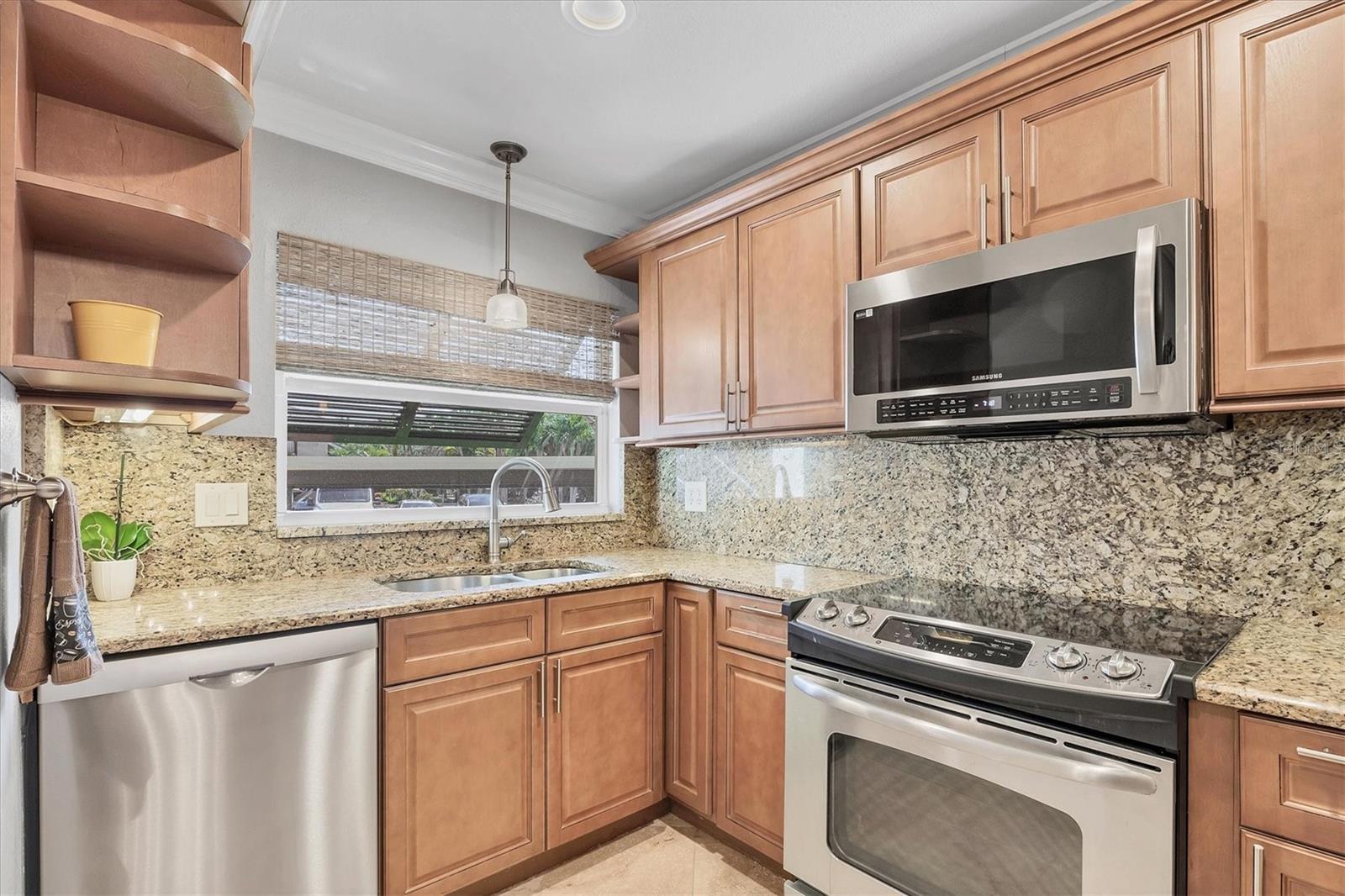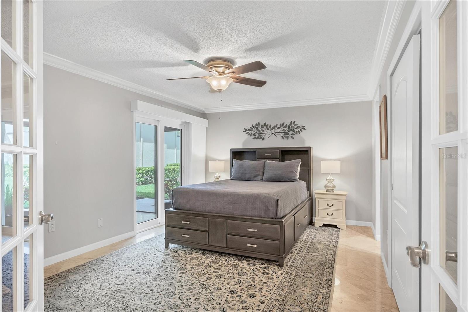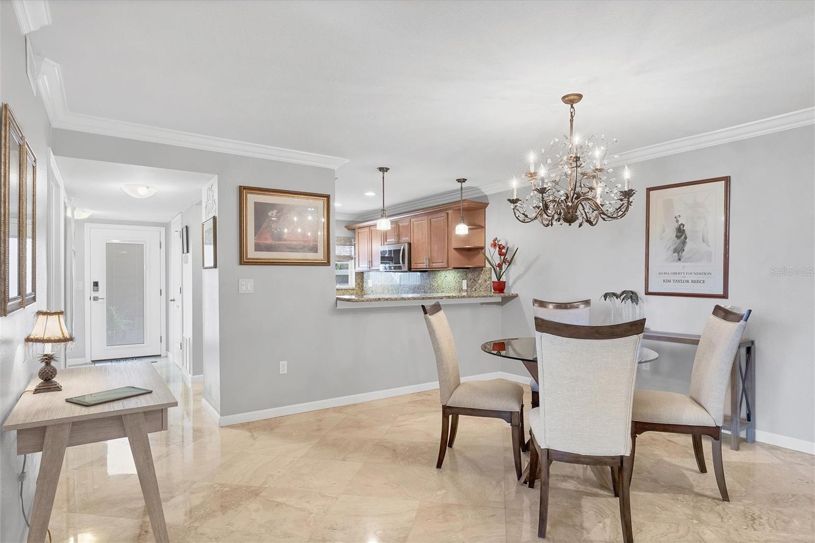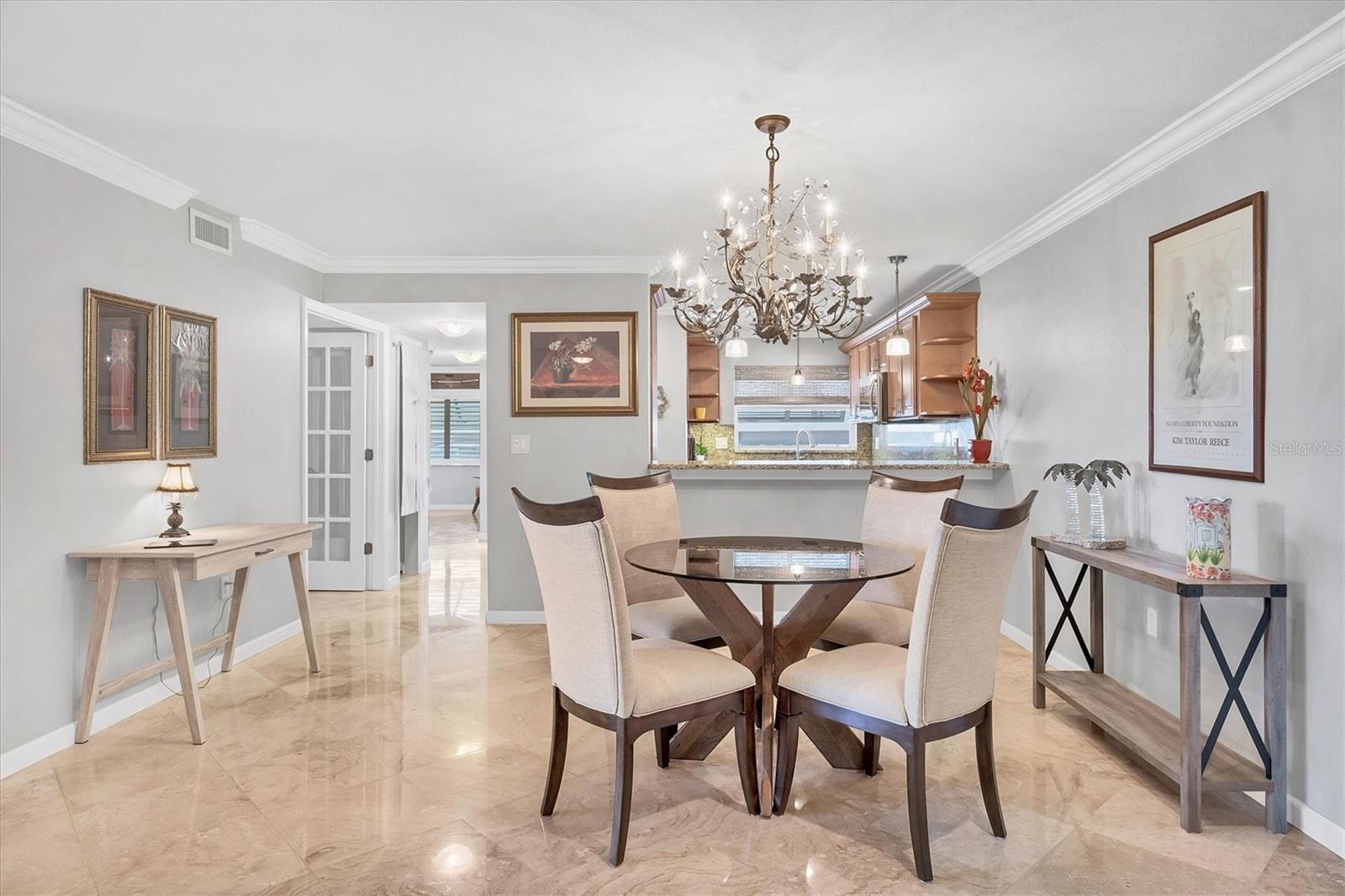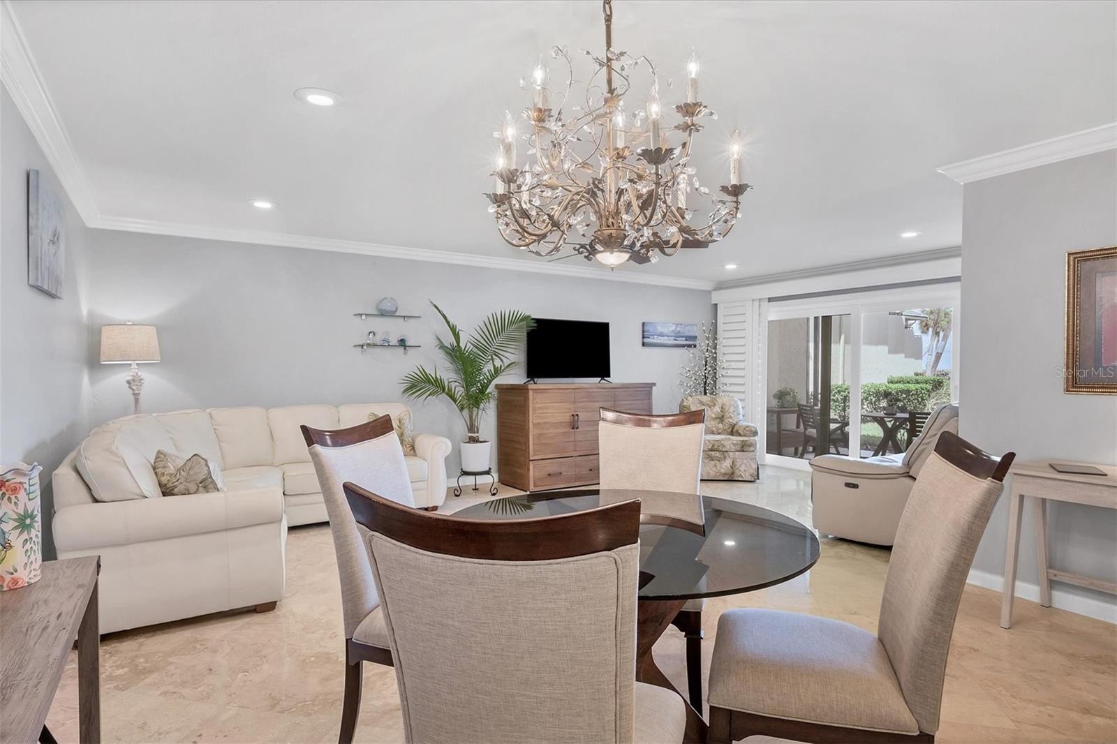 Discover a stunning, turnkey furnished waterfront condo in the highly desirable Sea Village community. Perfect for both seasonal retreats and year-round living, this condo offers a true paradise with breathtaking views of Big Pass and the Gulf of Mexico and is just steps from the heated community pool. The foyer greets you with travertine floors and an abundance of natural light streaming through the front door. Step into the living room, adorned with crown molding and hurricane rated sliders with plantation shutters, drawing you to the stunning water and sunset views. The dining room, featuring an ornate chandelier and crown molding, seamlessly opens to the kitchen and living room. The kitchen is a chef's delight with recessed lighting, wood cabinetry, granite countertops, a lazy susan, and pendant lights over the sink and breakfast bar with bar-height seating. It is equipped with a Samsung refrigerator and microwave, GE range, and Bosch dishwasher. The primary bedroom boasts crown molding, a French door entry, and sliders to the lanai offering those crazy views of the blue green waters. The spa-like bath includes dual sinks, wood cabinetry, travertine floors, a walk-in shower, and a wall of closets. The guest bedroom features crown molding, a window with plantation shutters, and a wall of closets. The guest bath is elegantly designed with a wood vanity with a granite top and travertine on the walls to the ceiling and in the shower. The lanai, with travertine flooring that extends to the outdoor patio beyond the screened-in area, offers a clear view screen, perfect for enjoying expanded views and the outdoors. There is also a fishing pier for residents to use. For peace of mind, the unit is equipped with impact-rated glass. This residence is being sold turnkey furnished, except for a few personal items and select pieces of art. Located on the north end of the island, this residence offers easy access to Siesta Key Beach, Sarasota, and the area's wealth of amenities and attractions. With Siesta Key Village within walking distance, you can effortlessly enjoy the island's finest dining, shopping, and entertainment options, making every day a delightful coastal experience.