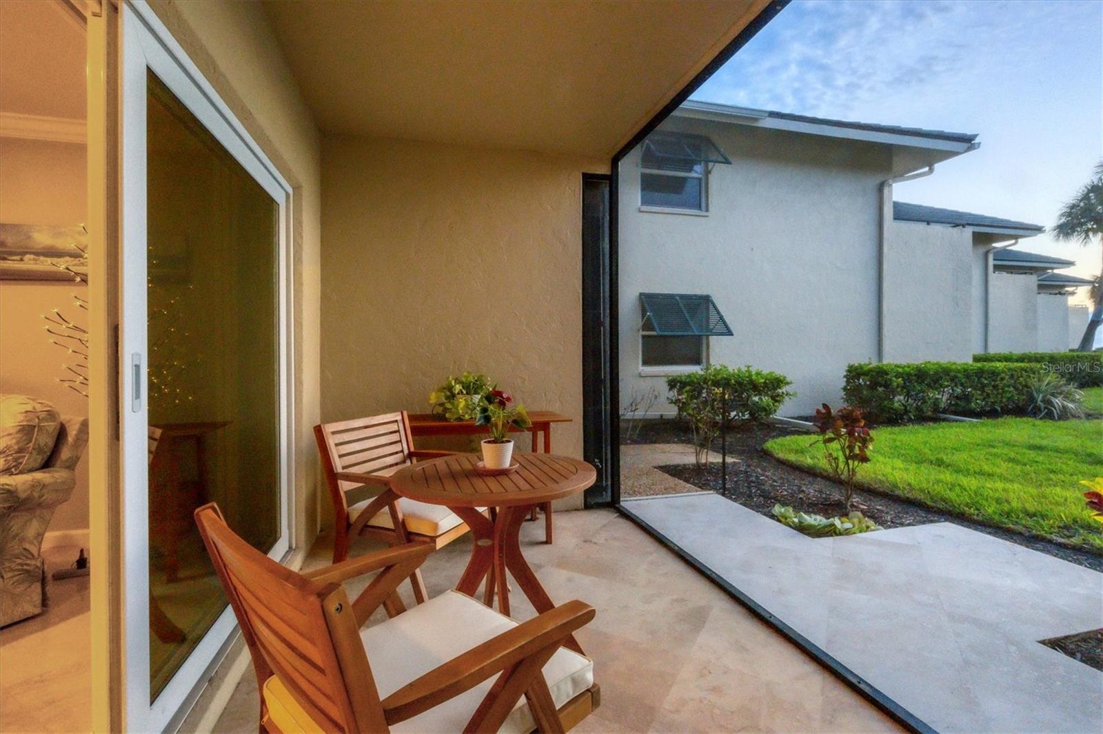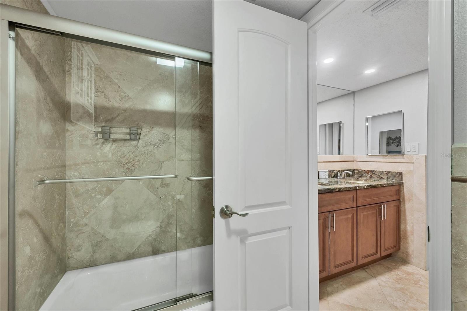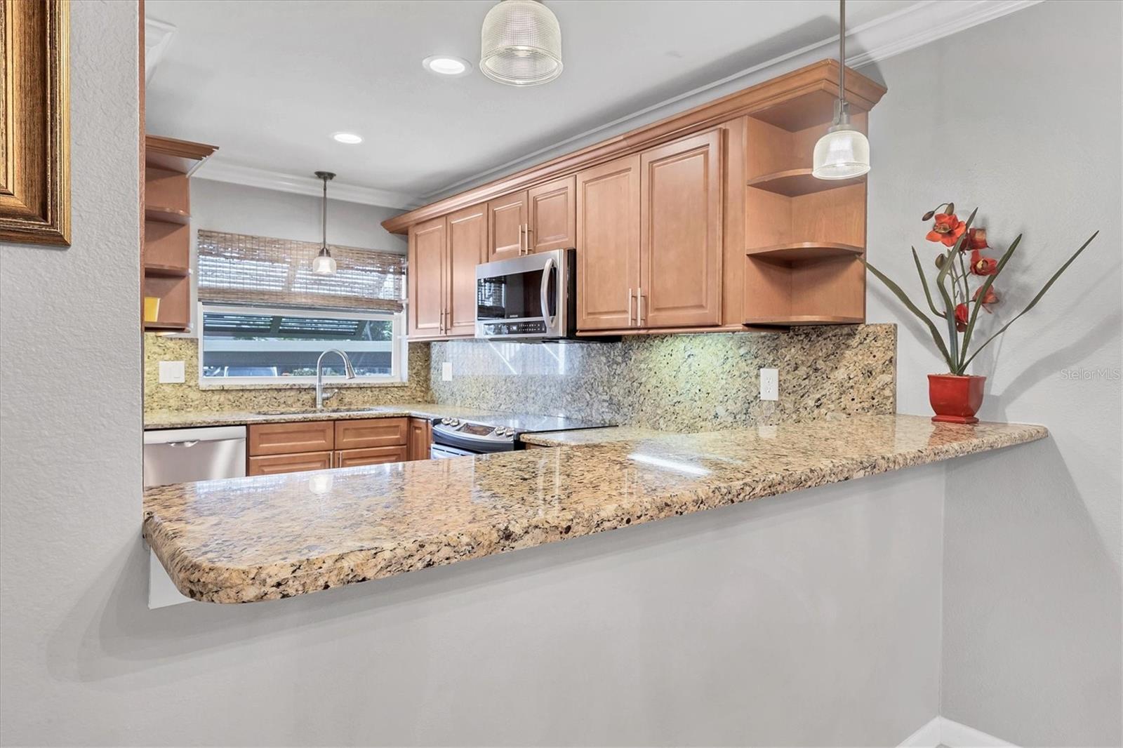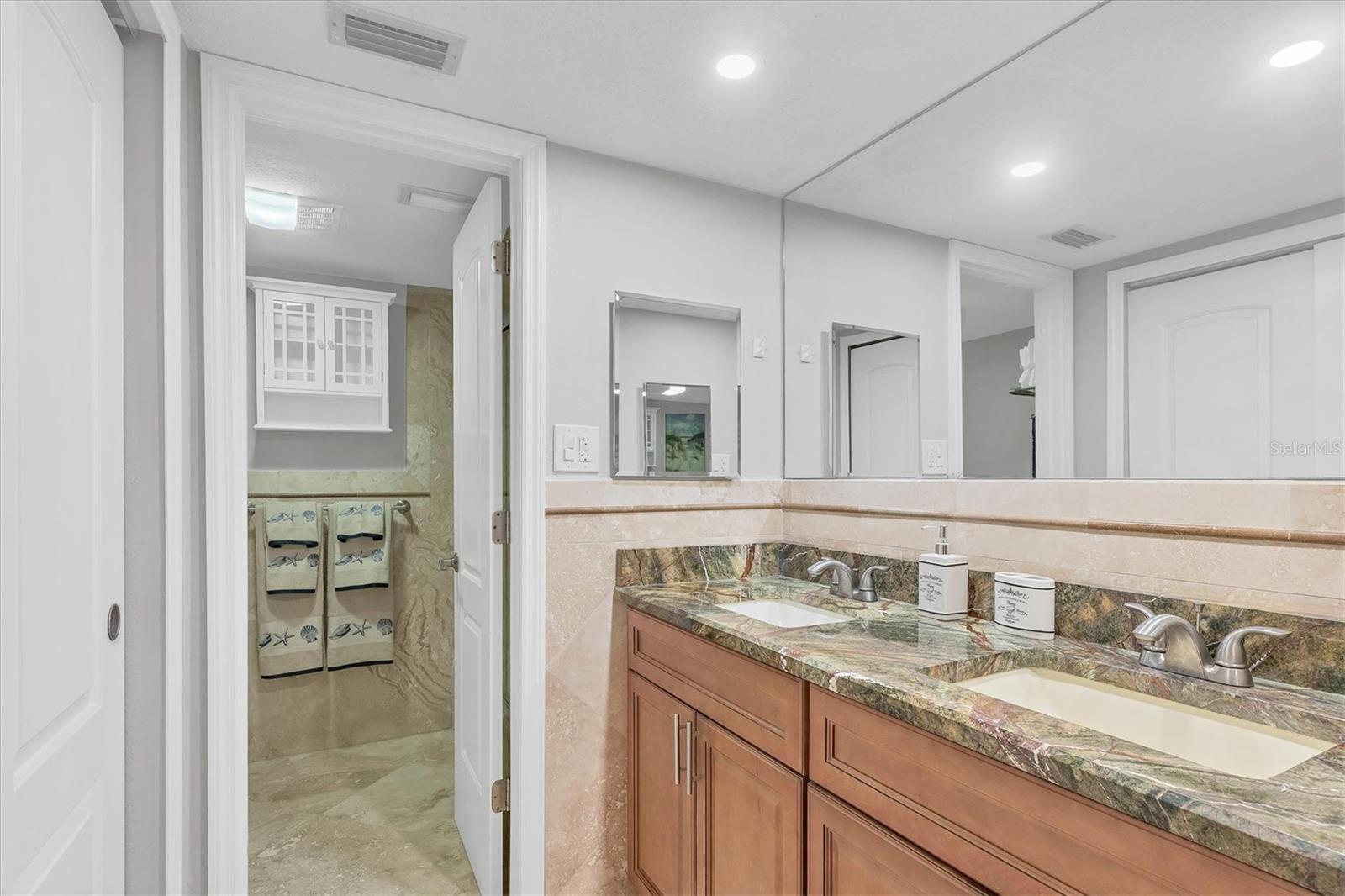 Discover a stunning, turnkey furnished waterfront condo in the highly desirable Sea Village community. Perfect for both seasonal retreats and year-round living, this condo offers a true paradise with breathtaking views of Big Pass and the Gulf of Mexico and is just steps from the heated community pool. The foyer greets you with travertine floors and an abundance of natural light streaming through the front door. Step into the living room, adorned with crown molding and hurricane rated sliders with plantation shutters, drawing you to the stunning water and sunset views. The dining room, featuring an ornate chandelier and crown molding, seamlessly opens to the kitchen and living room. The kitchen is a chef's delight with recessed lighting, wood cabinetry, granite countertops, a lazy susan, and pendant lights over the sink and breakfast bar with bar-height seating. It is equipped with a Samsung refrigerator and microwave, GE range, and Bosch dishwasher. The primary bedroom boasts crown molding, a French door entry, and sliders to the lanai offering those crazy views of the blue green waters. The spa-like bath includes dual sinks, wood cabinetry, travertine floors, a walk-in shower, and a wall of closets. The guest bedroom features crown molding, a window with plantation shutters, and a wall of closets. The guest bath is elegantly designed with a wood vanity with a granite top and travertine on the walls to the ceiling and in the shower. The lanai, with travertine flooring that extends to the outdoor patio beyond the screened-in area, offers a clear view screen, perfect for enjoying expanded views and the outdoors. There is also a fishing pier for residents to use. For peace of mind, the unit is equipped with impact-rated glass. This residence is being sold turnkey furnished, except for a few personal items and select pieces of art. Located on the north end of the island, this residence offers easy access to Siesta Key Beach, Sarasota, and the area's wealth of amenities and attractions. With Siesta Key Village within walking distance, you can effortlessly enjoy the island's finest dining, shopping, and entertainment options, making every day a delightful coastal experience.