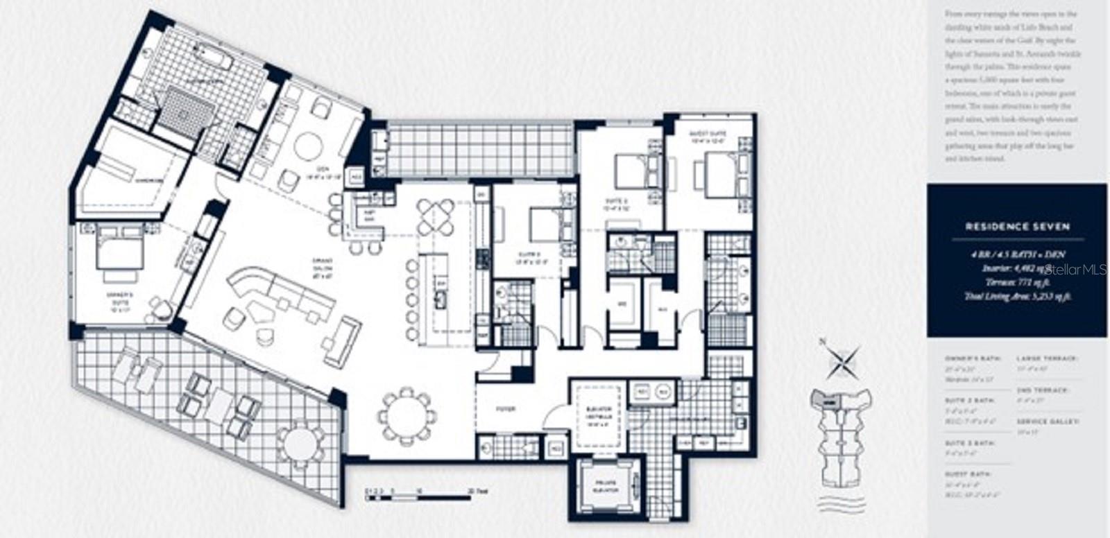 One or more photo(s) has been virtually staged. Under Construction. The Rosewood Residences, Lido Key the first stand-alone condominium residences bearing the Rosewood name. Offering a limited collection of 65 stunning private residences located on 3.5 acres of one of the most treasured beaches on the West coast of Florida with 235 feet of beach frontage. The 11-story design by Miami based Swedroe Architecture with interiors spaces thoughtfully designed by Lillian Wu Studios of NYC. Offering 24-hour concierge, valet parking and bespoke owner services by Rosewood Resorts. Residence #907 features 4 bedrooms, 4.5 baths plus den with 4,482 square feet perfect for entertaining. Dramatically organized around an expansive island and an inviting wet bar. As the private elevator doors open to the grand salon, the floor to ceiling windows provide a spectacular view of the Gulf of Mexico. Three ensuite bedrooms plus a spacious den ensuring owners and guests privacy. The owner’s bedroom continues the views even further, with a full wall of floor to ceiling windows and glass door leading out to your expansive terrace. Imagine waking up to this view and enjoying a cup of coffee from the morning bar without having to leave your owner’s suite. No detail overlooked in the expansive kitchen Wolf, Sub-Zero, Waterworks plumbing fixtures, Rocky Mountain hardware and Irpinia cabinets with a multitude of finish choices. Grab your favorite vintage from your 65-bottle Sub Zero wine tower as the chef in your life creates their masterpiece on the outdoor summer kitchen with built in gas grill. The residence is a perfect location for entertaining and offers a separate service galley with second refrigerator, oven, and dishwasher a perfect space for catering or a dinner prepared by your onsite chef and delivered by the in-residence dining team. The 46,900 square foot amenity level offers an intimate, private club atmosphere surrounded only by family and friends. The spaces are perfect for gathering or quiet escape. Only 65 owners, your experience will be as private as it will be luxurious. Lavish amenities include a private Bistro dining option, a world-class fitness center with options for private training and yoga, two outdoor pools, private cabanas, day beds, towels, food, and beverage service. The wellness spa is a haven for relaxation with hot and cold plunge pools, salt and steam room and private massage rooms. The social lounge, serving morning coffee, is a wonderful place to start the day. The other amenities include a game room, a nine-seat private theater and six generously sized guest suites allowing owners’ family and friends to enjoy the pleasures of this private resort. The Beach club with chair and umbrella service also includes an outdoor pursuits program including kayaking and standup paddle boards. Rosewood’s philosophy a “Sense of Place” redefines the concept of residential hospitality by creating experiences that are authentic, original, and deeply personal by offering impeccable service and unparalleled attention to detail.