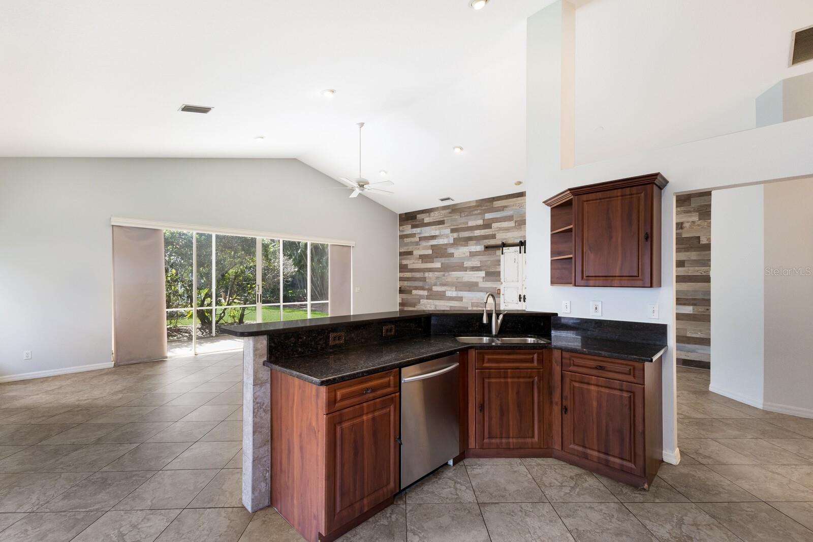 Welcome to this charming three-bedroom, two-bathroom home in the highly sought-after, maintenance-free community of Wyndham. Designed for maximum privacy, this home boasts tasteful updates that check off your “wish list.” The large, eat-in kitchen features soaring ceilings, granite countertops, stainless steel appliances, and plank tile flooring. An antique barn door with a custom tiled accent wall leads to a master ensuite with a dual vanity, soaker tub, and walk-in shower. On a breezy day, open the sliders to your private lanai looking out to a lovely pond and enjoy your morning coffee or dinner with your loved one. Ease on over to the gorgeous community pool surrounded by ancient oaks and soak your stress away. With so many choices of how to spend your days, the community of Wyndham, consisting of just 63 homes, offers a heated community pool and includes lawn care, landscaping, irrigation, and common area upkeep in the low HOA fee of $504 per quarter ($168 per month), with no CDD fees. Ideally located just 15 minutes from downtown Sarasota, this home is close to world-class shopping at UTC Mall, Benderson Park & Rowing Center, restaurants, hospitals, medical centers, The Meadows Country Club, beautiful beaches, and I-75. This home perfectly combines comfort, style, and convenience.