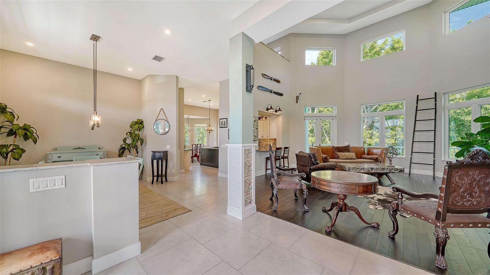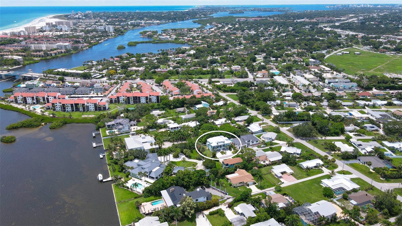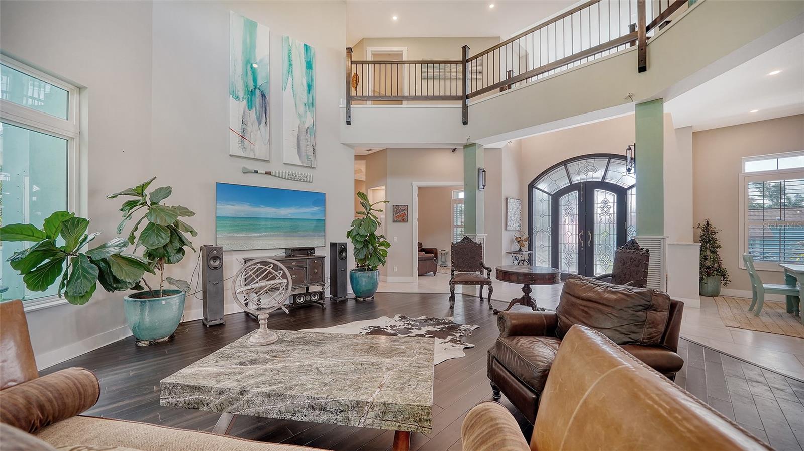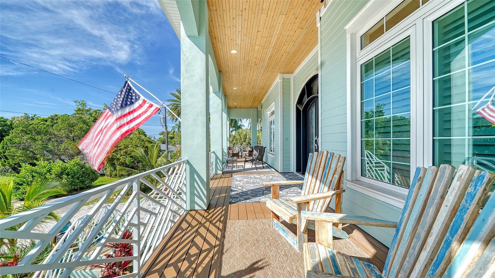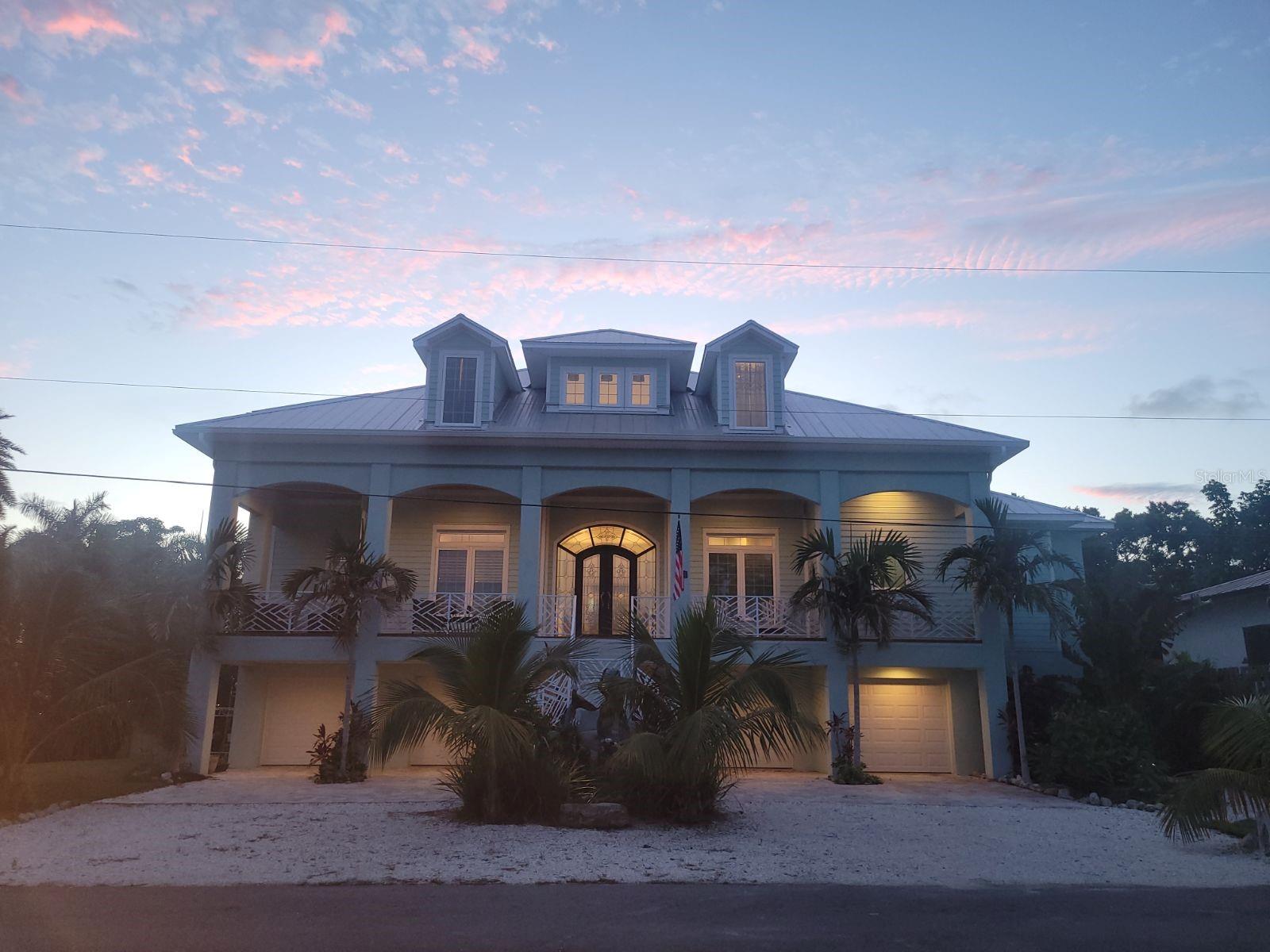 Nestled in the coveted West of the Trail area, just half a mile from the beautiful Siesta Key, you'll discover this exquisite custom-built home from 2020, located on a very private dead-end street. This Key West-style residence spans 3,407 square feet and features 3 bedrooms, 3.5 baths, an office/den, and a 4-car garage. Additionally, a bonus room with a private entrance is situated on the ground floor. This stunning three-story home is constructed with solid concrete block and poured concrete, meeting hurricane codes of 2020. It boasts a durable metal roof, impact windows and many more features add to the home's exceptional quality and appeal. The front of the house boasts a 500-square-foot covered porch finished with hardy board siding and Trex decking. In the back, there's a 500-square-foot terrace, accessible from both the kitchen and living room, ideal for entertaining or dining. Upon entering, you’ll be welcomed by a stunning living room with a soaring 28-foot ceiling, offering breathtaking views of the natural landscape. The kitchen, featuring high-end appliances and a gas cooktop, opens to a spacious back deck, perfect for entertaining. The primary suite and office are conveniently located on the main floor. The third floor, open to the living room below, houses two additional en-suite bedrooms, a wet bar, a small office space, and a back terrace surrounded by nature. This unique layout seamlessly blends luxury and comfort, making it an ideal retreat.