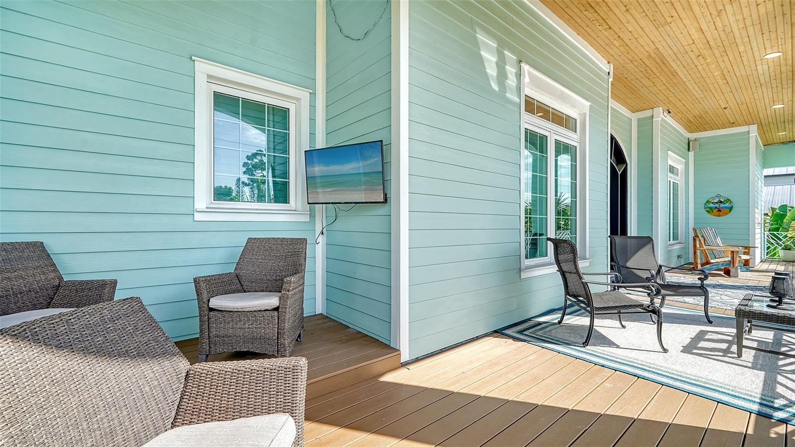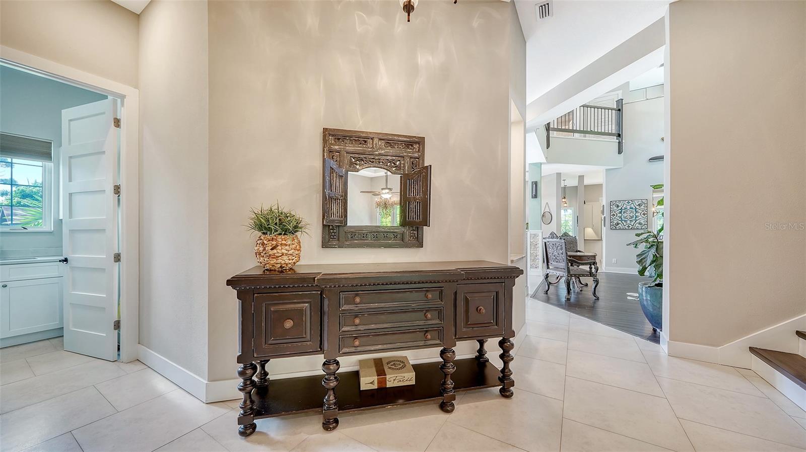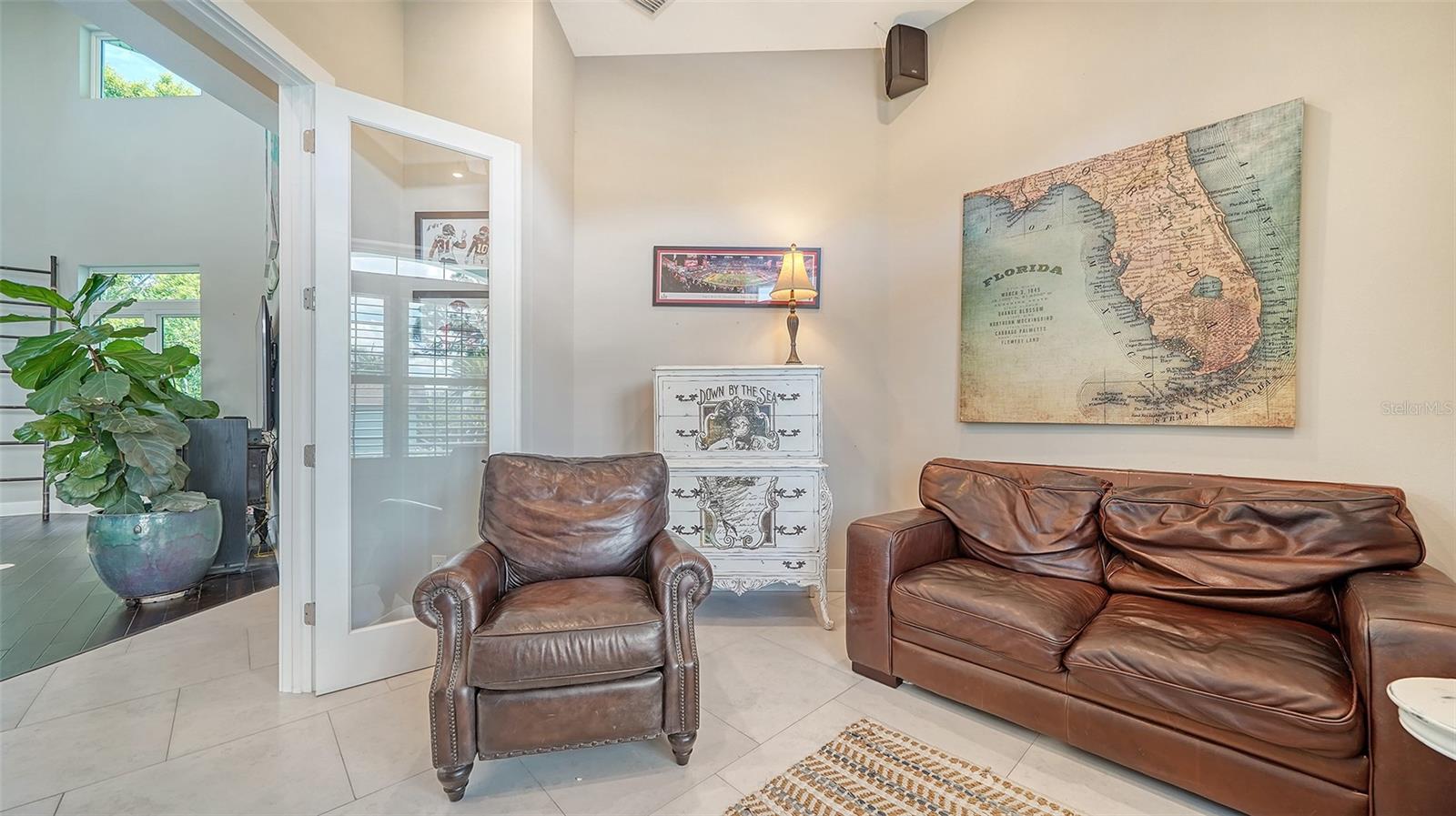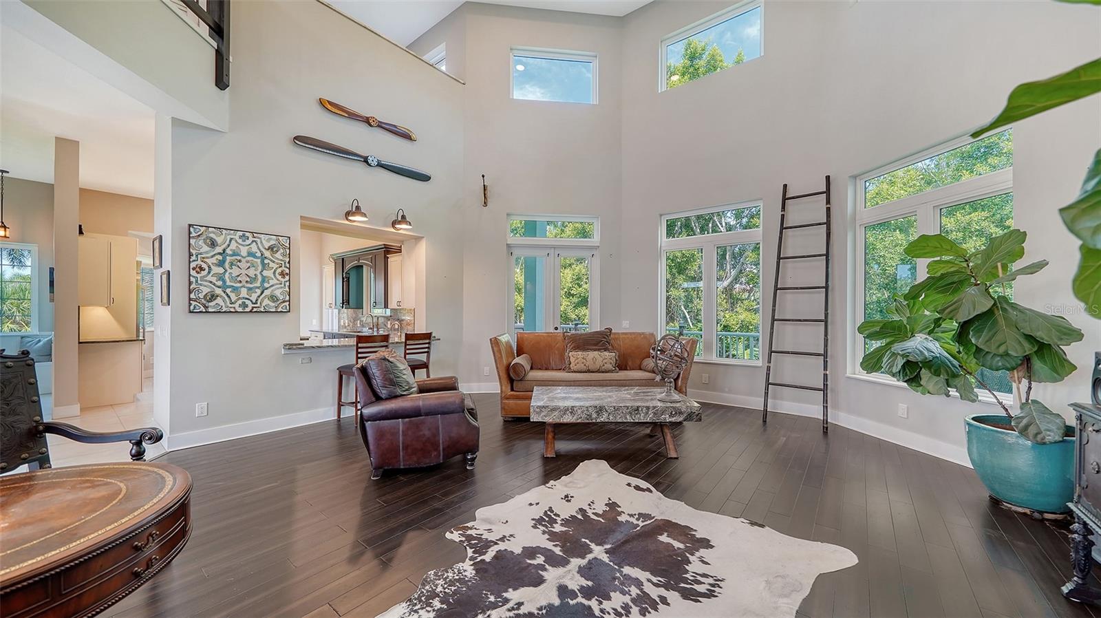 Nestled in the coveted West of the Trail area, just half a mile from the beautiful Siesta Key, you'll discover this exquisite custom-built home from 2020, located on a very private dead-end street. This Key West-style residence spans 3,407 square feet and features 3 bedrooms, 3.5 baths, an office/den, and a 4-car garage. Additionally, a bonus room with a private entrance is situated on the ground floor. This stunning three-story home is constructed with solid concrete block and poured concrete, meeting hurricane codes of 2020. It boasts a durable metal roof, impact windows and many more features add to the home's exceptional quality and appeal. The front of the house boasts a 500-square-foot covered porch finished with hardy board siding and Trex decking. In the back, there's a 500-square-foot terrace, accessible from both the kitchen and living room, ideal for entertaining or dining. Upon entering, you’ll be welcomed by a stunning living room with a soaring 28-foot ceiling, offering breathtaking views of the natural landscape. The kitchen, featuring high-end appliances and a gas cooktop, opens to a spacious back deck, perfect for entertaining. The primary suite and office are conveniently located on the main floor. The third floor, open to the living room below, houses two additional en-suite bedrooms, a wet bar, a small office space, and a back terrace surrounded by nature. This unique layout seamlessly blends luxury and comfort, making it an ideal retreat.