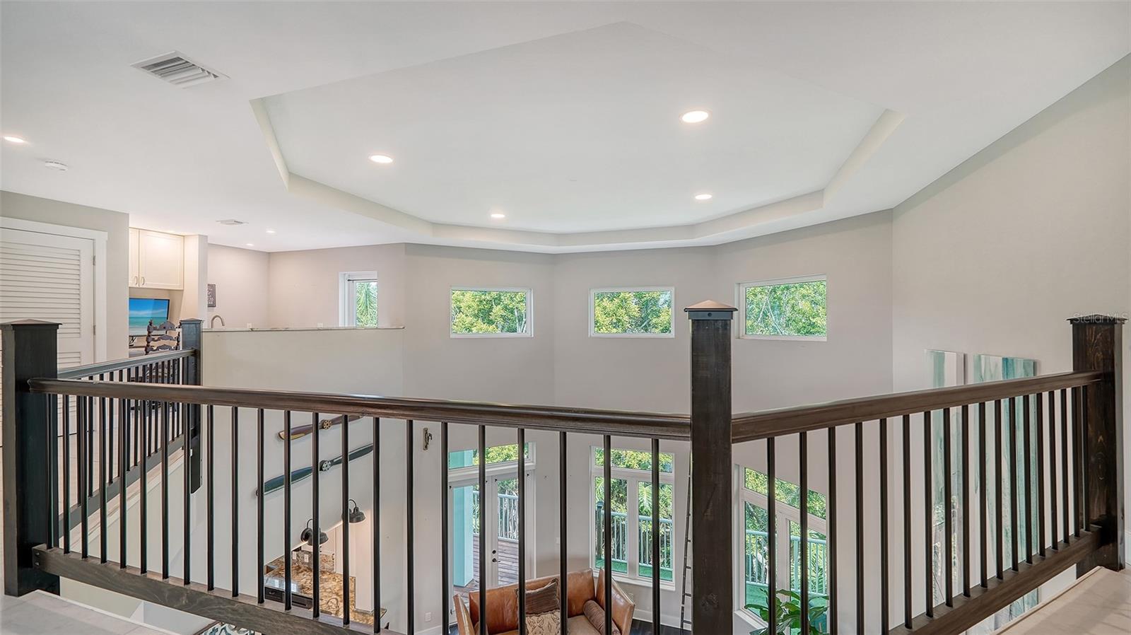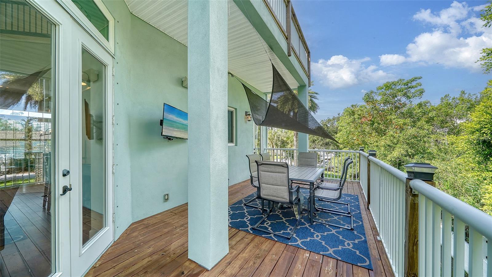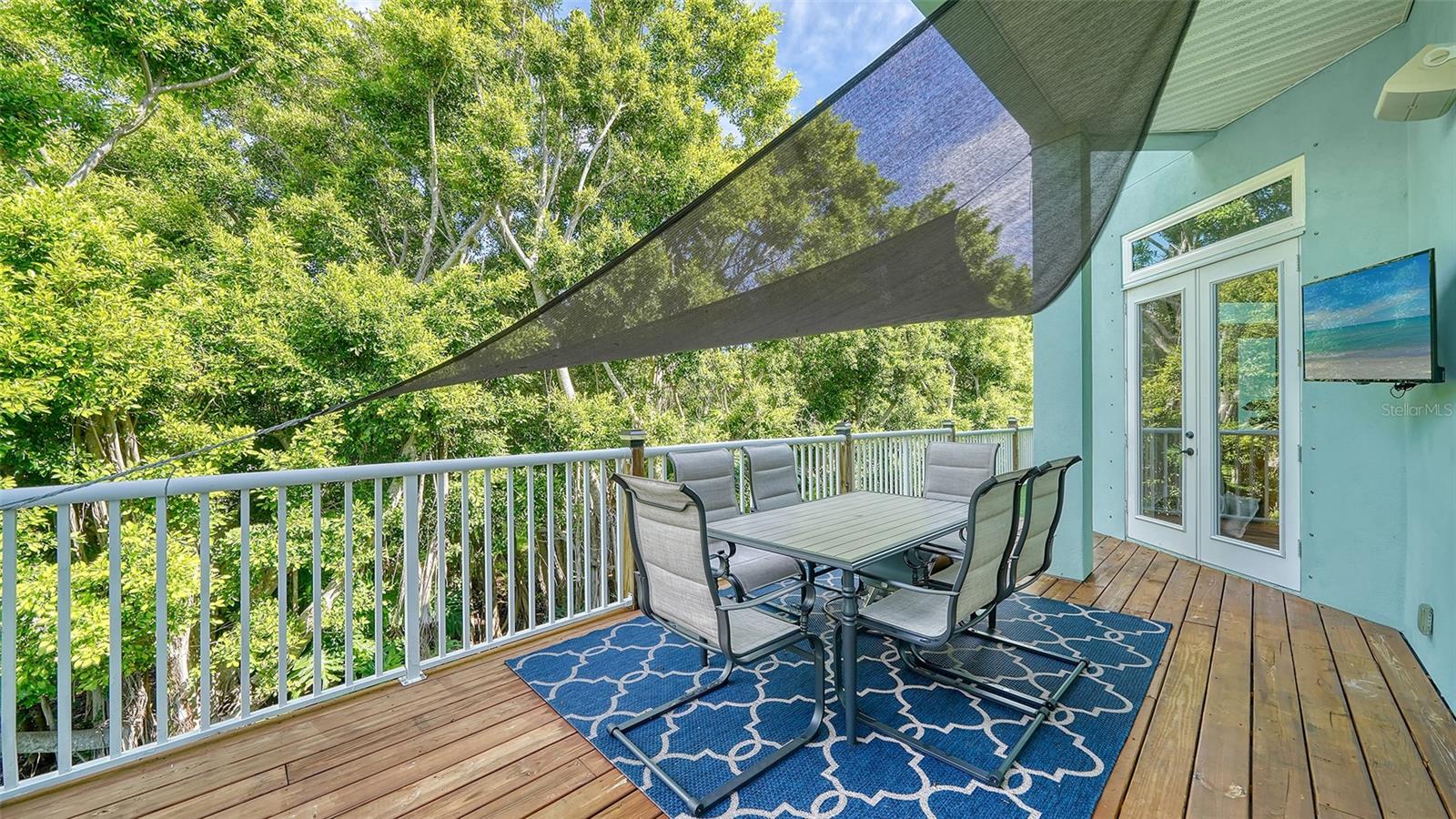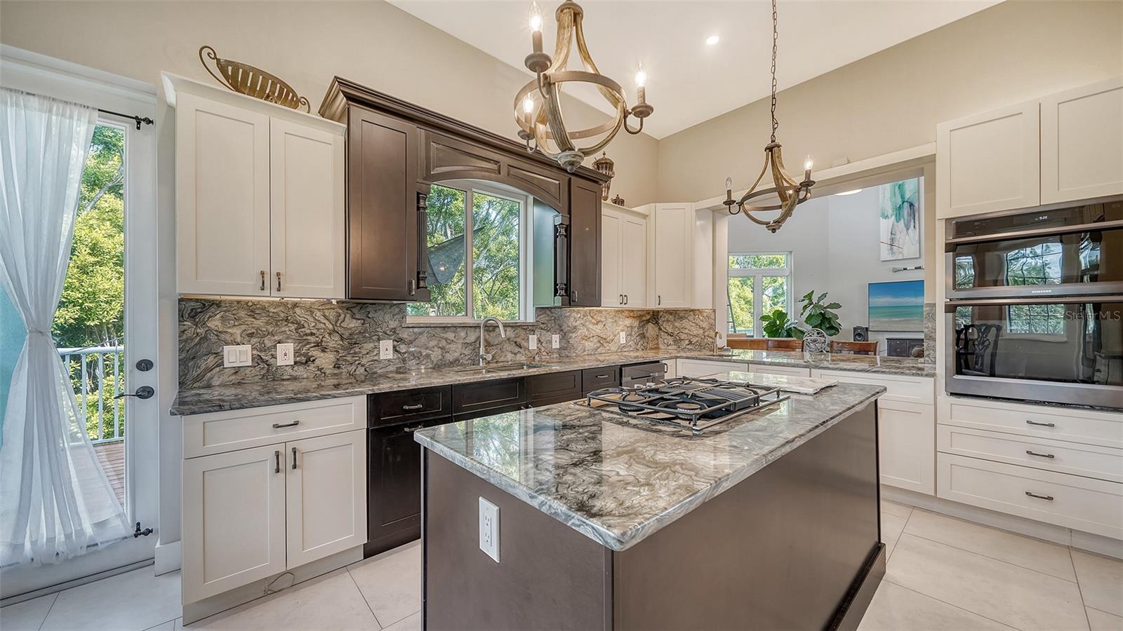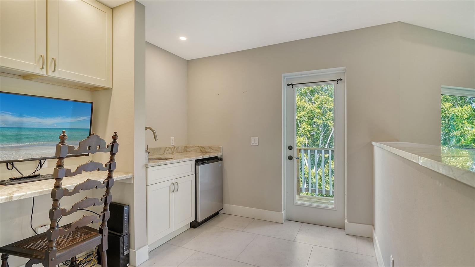 Nestled in the coveted West of the Trail area, just half a mile from the beautiful Siesta Key, you'll discover this exquisite custom-built home from 2020, located on a very private dead-end street. This Key West-style residence spans 3,407 square feet and features 3 bedrooms, 3.5 baths, an office/den, and a 4-car garage. Additionally, a bonus room with a private entrance is situated on the ground floor. This stunning three-story home is constructed with solid concrete block and poured concrete, meeting hurricane codes of 2020. It boasts a durable metal roof, impact windows and many more features add to the home's exceptional quality and appeal. The front of the house boasts a 500-square-foot covered porch finished with hardy board siding and Trex decking. In the back, there's a 500-square-foot terrace, accessible from both the kitchen and living room, ideal for entertaining or dining. Upon entering, you’ll be welcomed by a stunning living room with a soaring 28-foot ceiling, offering breathtaking views of the natural landscape. The kitchen, featuring high-end appliances and a gas cooktop, opens to a spacious back deck, perfect for entertaining. The primary suite and office are conveniently located on the main floor. The third floor, open to the living room below, houses two additional en-suite bedrooms, a wet bar, a small office space, and a back terrace surrounded by nature. This unique layout seamlessly blends luxury and comfort, making it an ideal retreat.