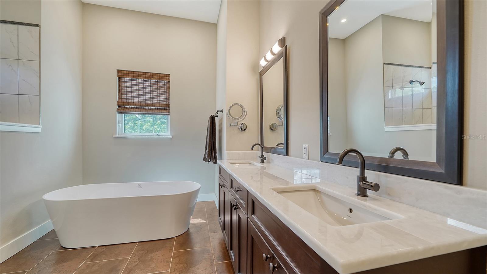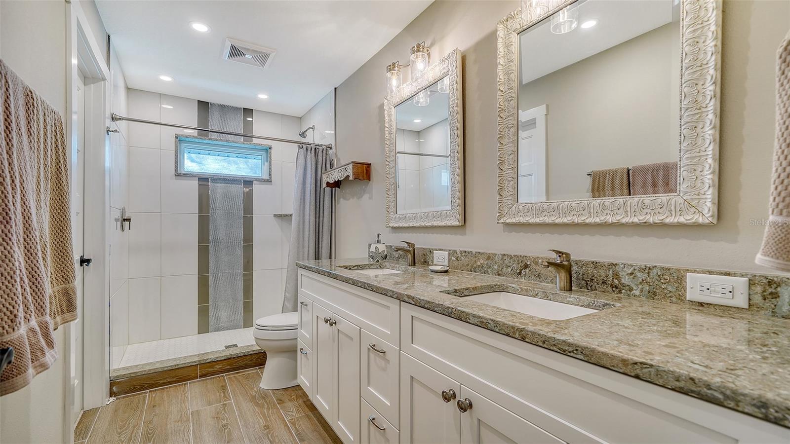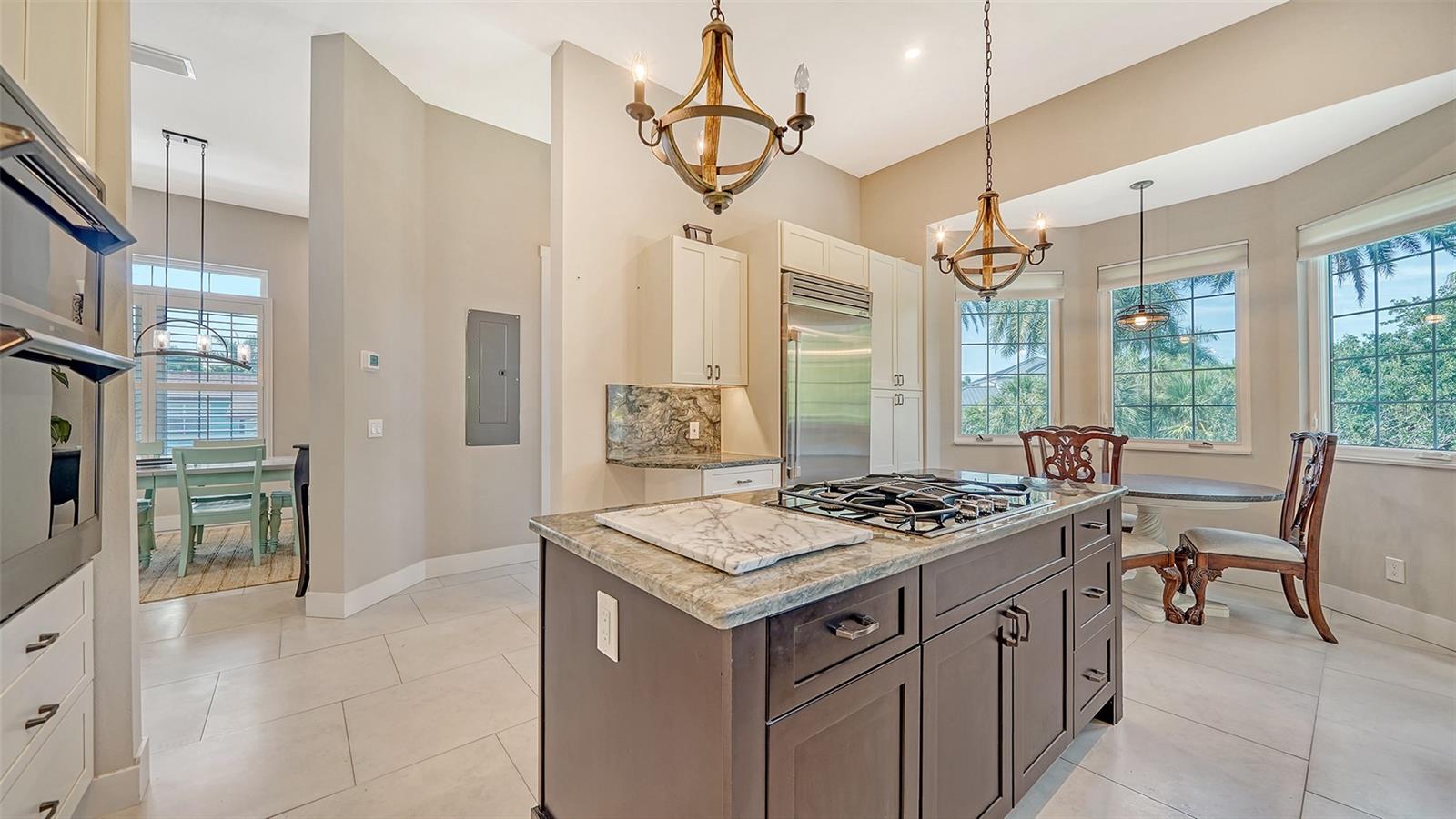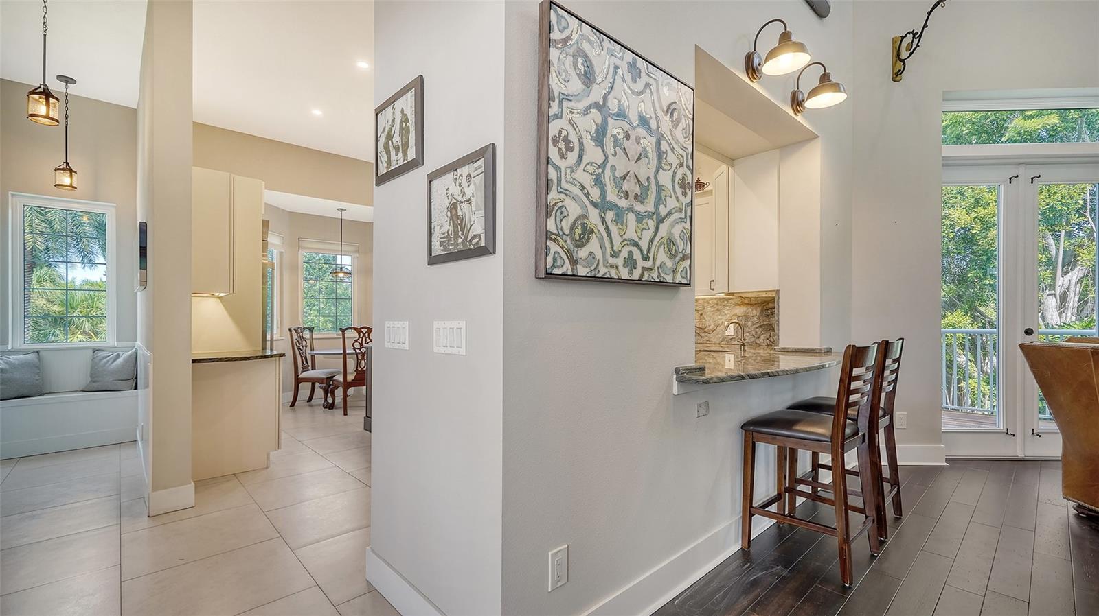Nestled in the coveted West of the Trail area, just half a mile from the beautiful Siesta Key, you'll discover this exquisite custom-built home from 2020, located on a very private dead-end street. This Key West-style residence spans 3,407 square feet and features 3 bedrooms, 3.5 baths, an office/den, and a 4-car garage. Additionally, a bonus room with a private entrance is situated on the ground floor. This stunning three-story home is constructed with solid concrete block and poured concrete, meeting hurricane codes of 2020. It boasts a durable metal roof, impact windows and many more features add to the home's exceptional quality and appeal. The front of the house boasts a 500-square-foot covered porch finished with hardy board siding and Trex decking. In the back, there's a 500-square-foot terrace, accessible from both the kitchen and living room, ideal for entertaining or dining. Upon entering, you’ll be welcomed by a stunning living room with a soaring 28-foot ceiling, offering breathtaking views of the natural landscape. The kitchen, featuring high-end appliances and a gas cooktop, opens to a spacious back deck, perfect for entertaining. The primary suite and office are conveniently located on the main floor. The third floor, open to the living room below, houses two additional en-suite bedrooms, a wet bar, a small office space, and a back terrace surrounded by nature. This unique layout seamlessly blends luxury and comfort, making it an ideal retreat.