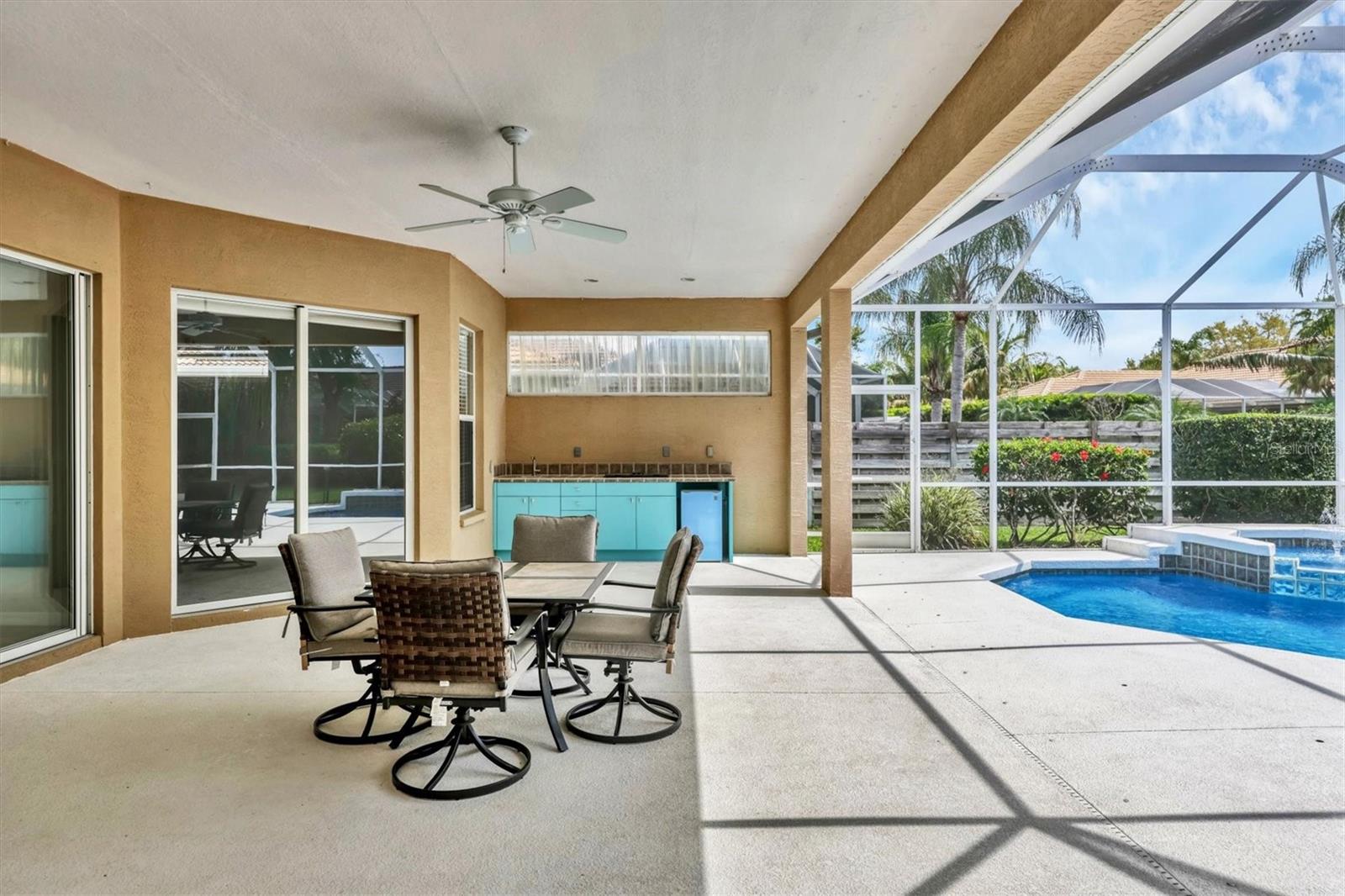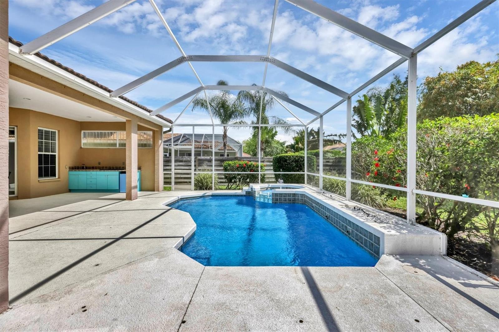 Are you ready for an exceptional move-in ready pool home located in a fantastic neighborhood within an A-rated school district? This house features 4 bedrooms, 3 bathrooms, 12 ft double tray ceilings in the dinning room and great room, along with a spacious fenced backyard - plenty of room for your family or furry friends. Updates include a NEW TILE ROOF installed in 2020, a RESURFACED pool and spa (2024), freshly painted interior (December 2023), a NEW POOL HEATER installed in October 2022, and a PENTAIR pool automation system added in October 2023. The house also comes with clear panel hurricane shutters for added peace of mind during storm season. Additionally, BRAND-NEW microwave and stove units were just installed in March 2024, accompanied by a one-year-old dishwasher and a two-year-old fridge. HVAC was replaced in 2020. Considering new construction? This gem offers mature landscaping and more yard than you would typically see. The location is ideal, with Siesta Key, various beaches, schools, shopping centers, downtown areas, and the interstate all conveniently located within a few miles. All these amenities are available for an incredibly low annual HOA fee of $527 and there is no CDD fee. Don't miss the chance to experience this remarkable home firsthand!