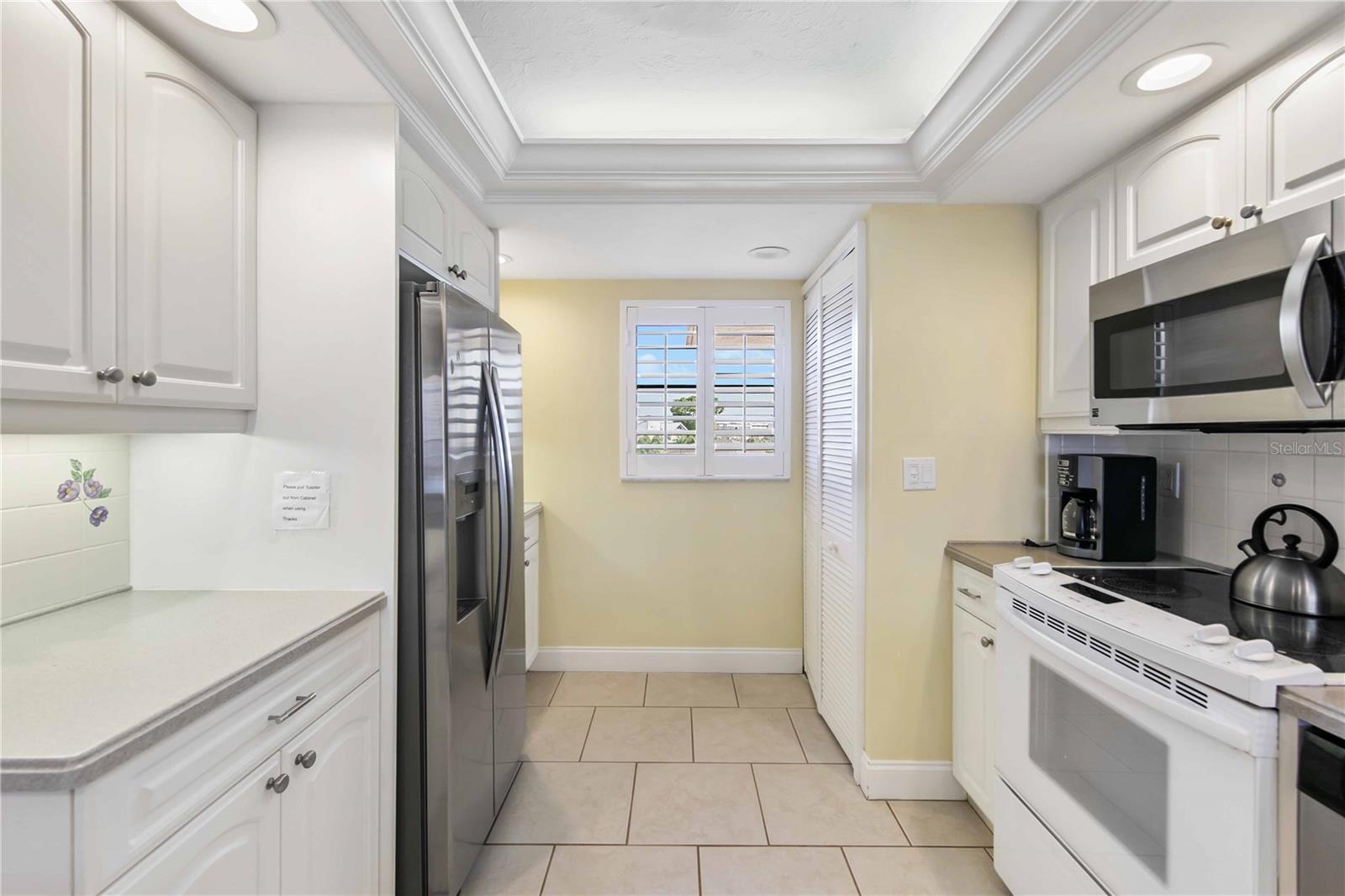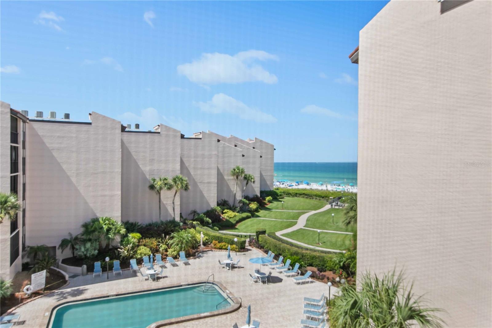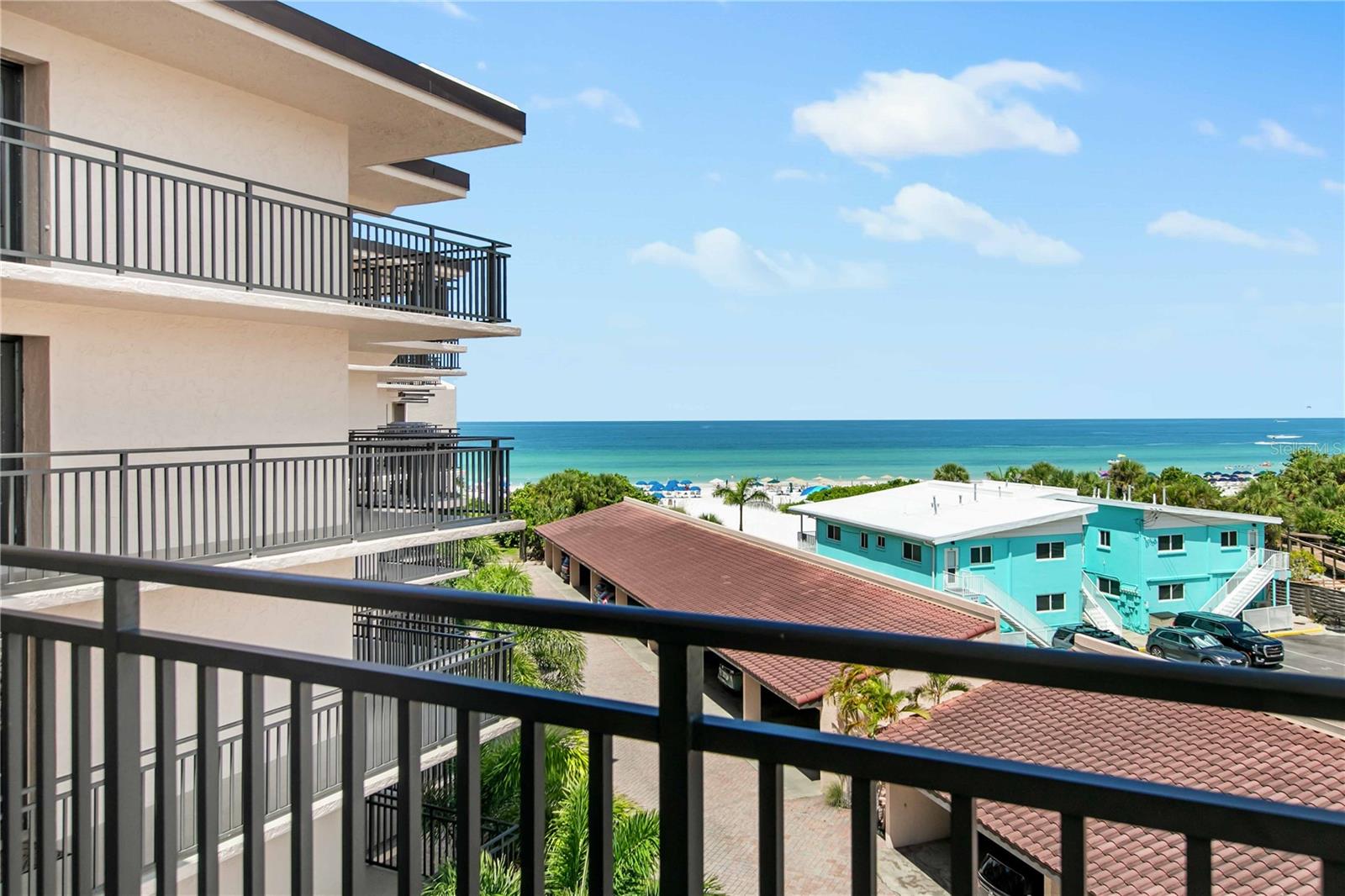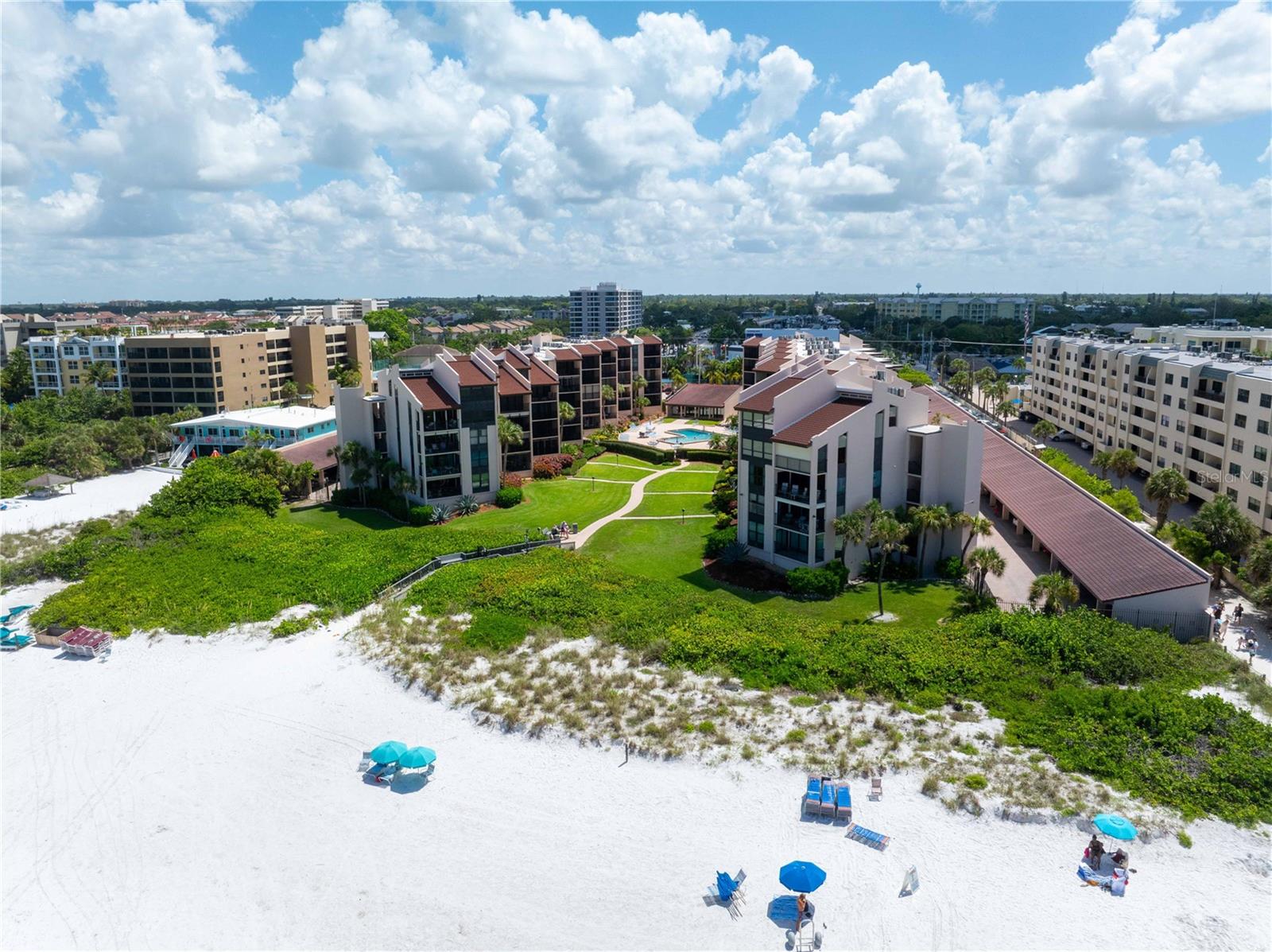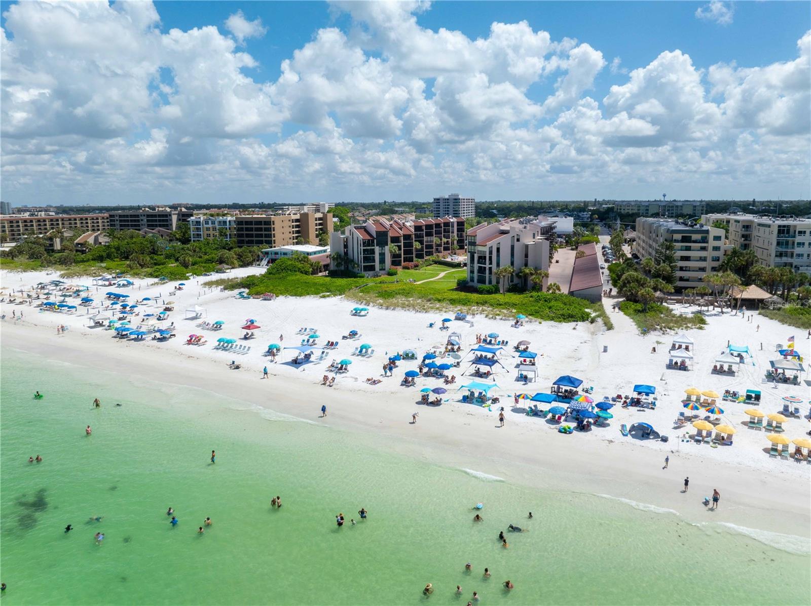 Welcome to your island getaway that offers all the comforts of home. Nestled in the north building of Siesta Breakers, this cozy two bedroom two bathroom beachside abode is bright and cheerful. As you approach the front door with a convenient screen door to allow a gentle breeze, drink in the impressive view of the Gulf of Mexico from the 5th floor perch. Like a breath of fresh air, the inviting kitchen draws you in as your eyes travel the length of the open floor plan to the lanai with equally impressive views of the gorgeous grounds and the gulf. A generous kitchen is the perfect place to create your coastal cuisine and features convenient counter height seating, updated recessed lighting and a closet with your advantageous in-unit laundry. A neutral tile floor grants low maintenance living and easy clean up from your sandy Siesta adventures and is the foundation of the generous living area, the perfect place to prop your feet up and relax. Open the doors to the spacious lanai and create a cool cross breeze while enjoying the sound of the waves lapping along Crescent Beach. Retire to the ample owners en-suite where you are surrounded by upgrades from the attractive plantation shutters to the nicely appointed bathroom featuring dual closets and handsome finishes. Siesta Breakers boasts a prime location along Crescent Beach just a short stroll to dining and shopping at Captain Curt’s plaza and a short Siesta Breeze Trolley ride away from the lively Siesta Village. Spend your days lounging on the beach, soaking in the heated swimming pool, playing a spirited game of tennis on the lighted courts or socializing in the welcoming club house. Venture off the island and enjoy Sarasota’s engaging recreational activities, vibrant cultural scene and exciting shopping and eateries. All 2024 special assessments have been paid by owners and an excellent onsite rental management office makes this an enticing opportunity for the owner/investor!