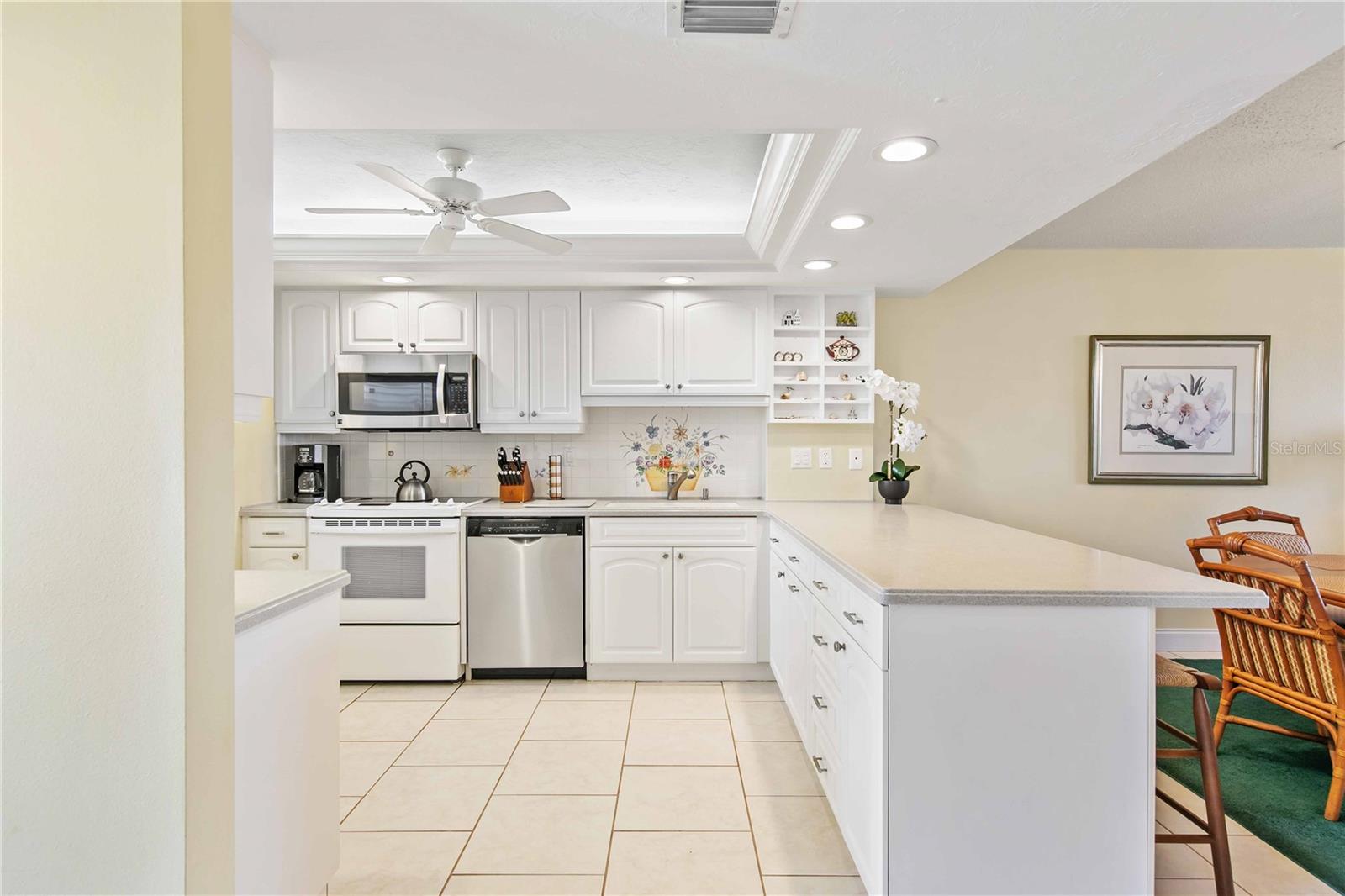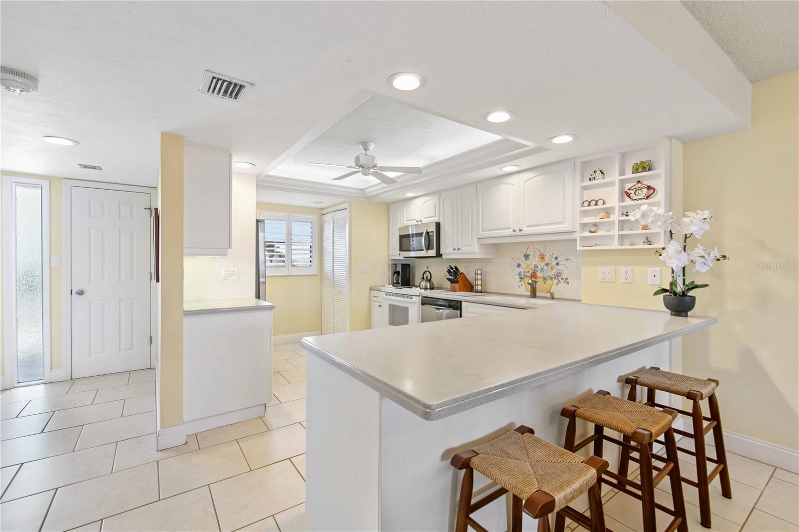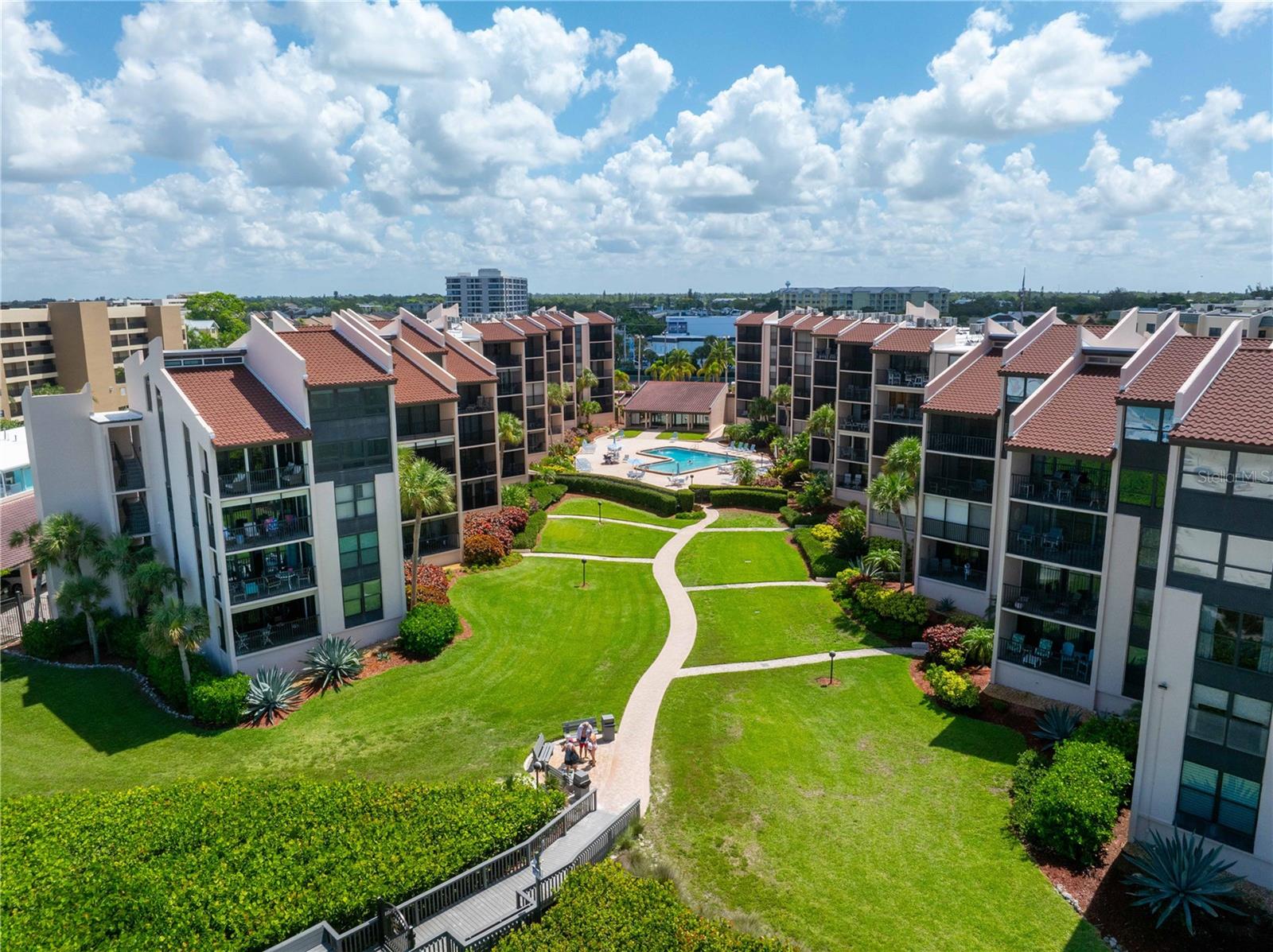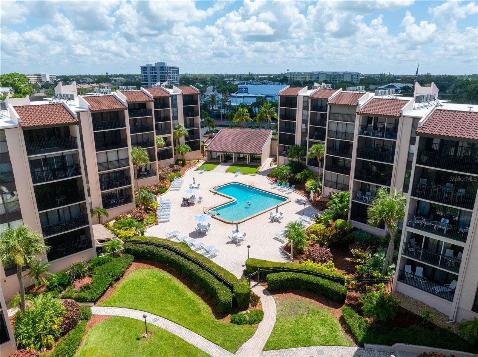Welcome to your island getaway that offers all the comforts of home. Nestled in the north building of Siesta Breakers, this cozy two bedroom two bathroom beachside abode is bright and cheerful. As you approach the front door with a convenient screen door to allow a gentle breeze, drink in the impressive view of the Gulf of Mexico from the 5th floor perch. Like a breath of fresh air, the inviting kitchen draws you in as your eyes travel the length of the open floor plan to the lanai with equally impressive views of the gorgeous grounds and the gulf. A generous kitchen is the perfect place to create your coastal cuisine and features convenient counter height seating, updated recessed lighting and a closet with your advantageous in-unit laundry. A neutral tile floor grants low maintenance living and easy clean up from your sandy Siesta adventures and is the foundation of the generous living area, the perfect place to prop your feet up and relax. Open the doors to the spacious lanai and create a cool cross breeze while enjoying the sound of the waves lapping along Crescent Beach. Retire to the ample owners en-suite where you are surrounded by upgrades from the attractive plantation shutters to the nicely appointed bathroom featuring dual closets and handsome finishes. Siesta Breakers boasts a prime location along Crescent Beach just a short stroll to dining and shopping at Captain Curt’s plaza and a short Siesta Breeze Trolley ride away from the lively Siesta Village. Spend your days lounging on the beach, soaking in the heated swimming pool, playing a spirited game of tennis on the lighted courts or socializing in the welcoming club house. Venture off the island and enjoy Sarasota’s engaging recreational activities, vibrant cultural scene and exciting shopping and eateries. All 2024 special assessments have been paid by owners and an excellent onsite rental management office makes this an enticing opportunity for the owner/investor!