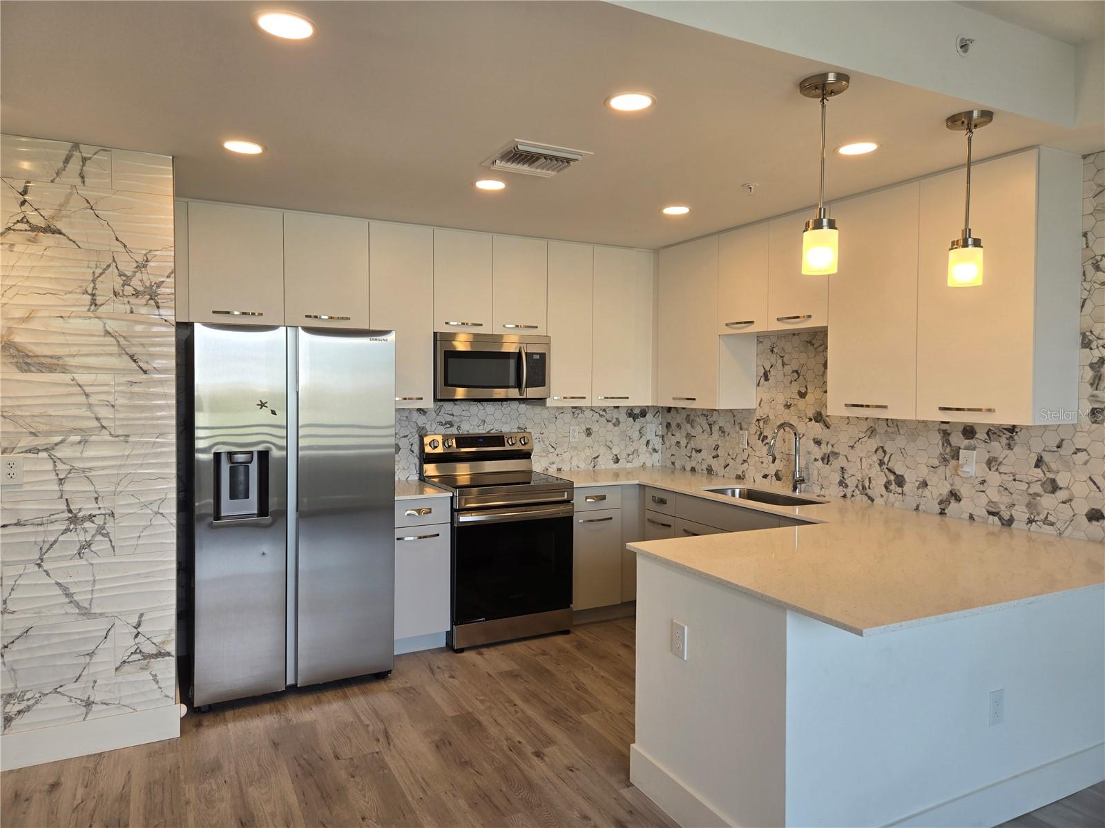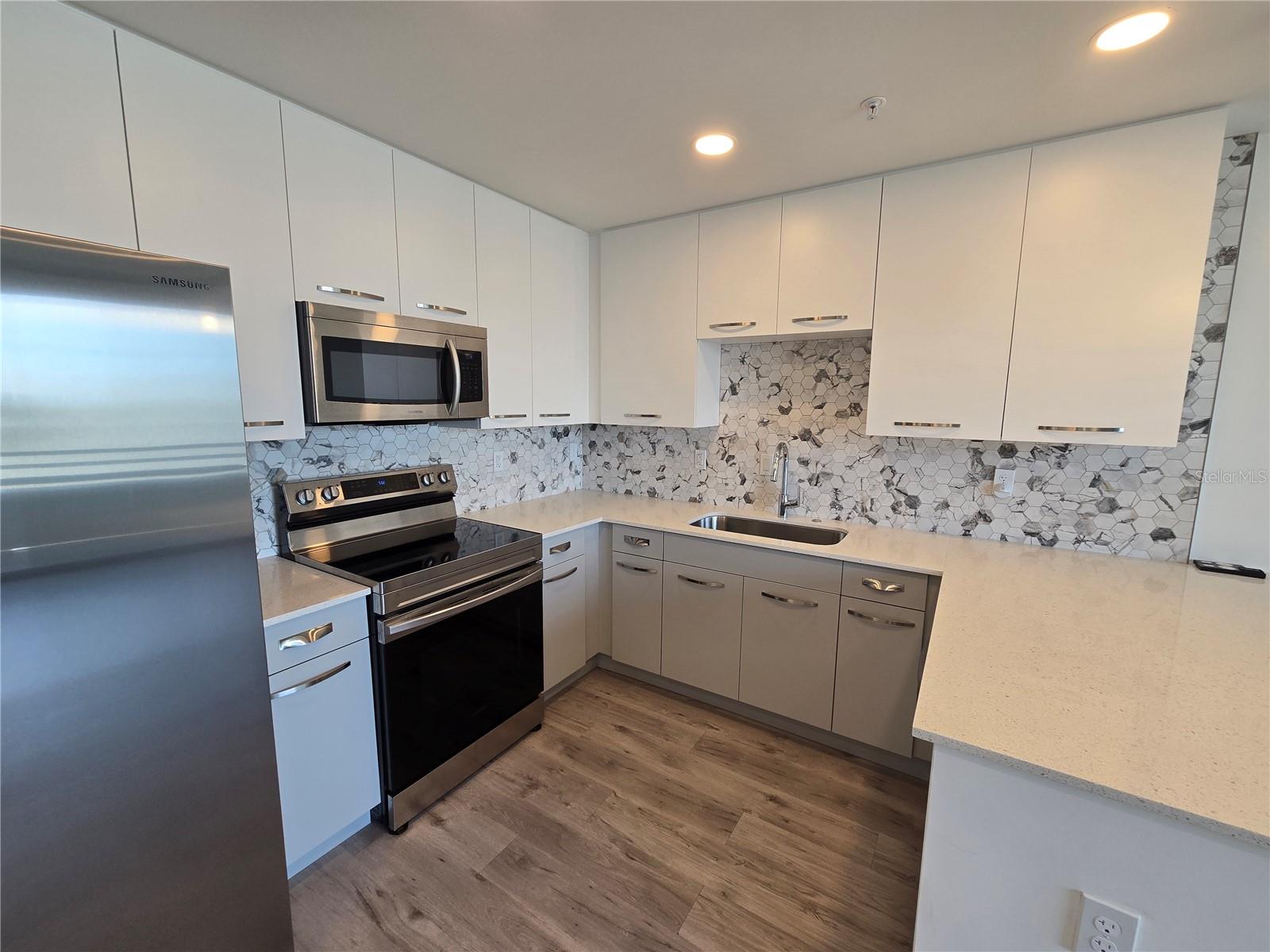 Live just 1.5 miles to Main Street Sarasota. Frequently BOAT SLIPS available WITH LIFT for sale or lease. A ADDITIONAL FEE OF $243.00 A QUARTER FOR BOAT SLIP. Agent will assist BUYER in finding a boat slip. THE STRAND! Come check out this Modern New Construction (2022) TOP FLOOR Condo. There is onsite management Monday-Friday. The Board of Directors are proactive and helpful. A lenient rental policy is great for the investor "(8 days/7 nights min./52 times a year)" Beautiful Views from your top floor. So many upgrades hard to list them all...4-Panel hurricane rated Sliding Glass Doors. Tile floor installed on the patio, up graded oversized handles on kitchen cabinets, back splashes, in bathrooms and kitchen. Both bathroom vanities are specially bought for this home. Kayakers, Paddleboarders, and of course enjoy daily the amazing Sarasota Sunsets! open floor plan. The Kitchen/Dinning/Living Room offers a large entertaining area and this home is filled with natural sunlight. The Kitchen is upgraded to the Modern Glossy White Cabinets and paired with stylish white Quartz countertops. The large Island with modern lighting is perfect for entertaining, eating, working, or to just gather around. Bright Morning Sun with a view of the Pool. The Primary bathroom has upgraded tile throughout, Modern Cabinetry, Quartz Countertops, Glass Shower Door, and a Window Streaming Natural Light. You enter the Den/2nd Room through the very popular modern Barn doors. This room is large enough to be used as a 2ND BEDROOM, an OFFICE or BOTH. The Laundry Room has a full size washer and dryer. Modern Lighting and Fans. A great fenced dog park. You can also grab your kayak and launch from your own community Floating Dock. Catch some rays, take a dip in the Resort Style Heated Pool/Spa, or get a workout in the Well-Equipped Gym. There are Car charging stations too! Take a Walk around the Gated Community, Grill out at the community gas grills, or bring a beverage and Relax at the Gas-Fire Pit! The Strand is great for full time, part-time, or Investor Living. WEEKLY Rentals are Allowed! All of this is located in one of the BEST places to live. How exciting to live within 2 miles of three Waterfront Parks? Whitaker Park, The BRAND-NEW Bay Park, and the Bayfront Park are all super close! Drive, Bike, or Walk to Downtown especially on Saturday during the weekly Farmers Market. Walk to the Wicked Cantina and enjoy their Yummy Chips and Salsa, or head Downtown for shopping and dozens of restaurants of many different varieties. Lido beach is 5 miles away and Siesta Key beach is 8.6 miles away. Sarasota has Museums, Theaters, Opera, Beaches, Symphony, Parks, Yoga, Shopping, Golf Courses, Restaurants, and more! It is YOUR time now, so why not spoil yourself?
