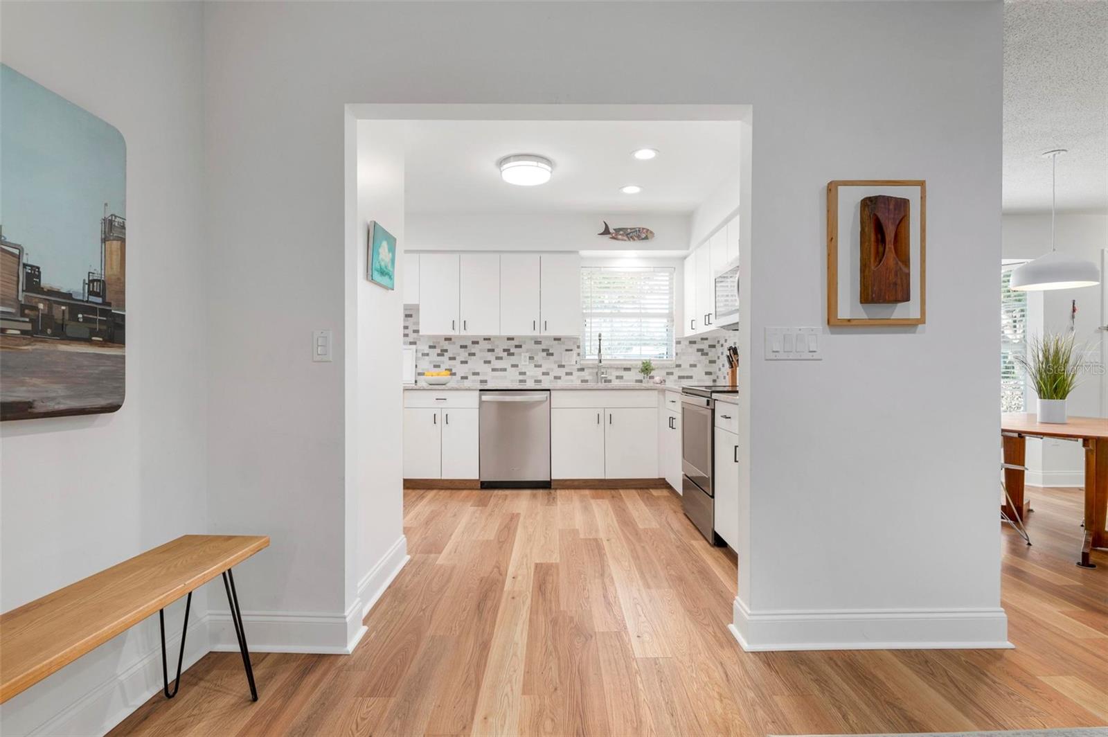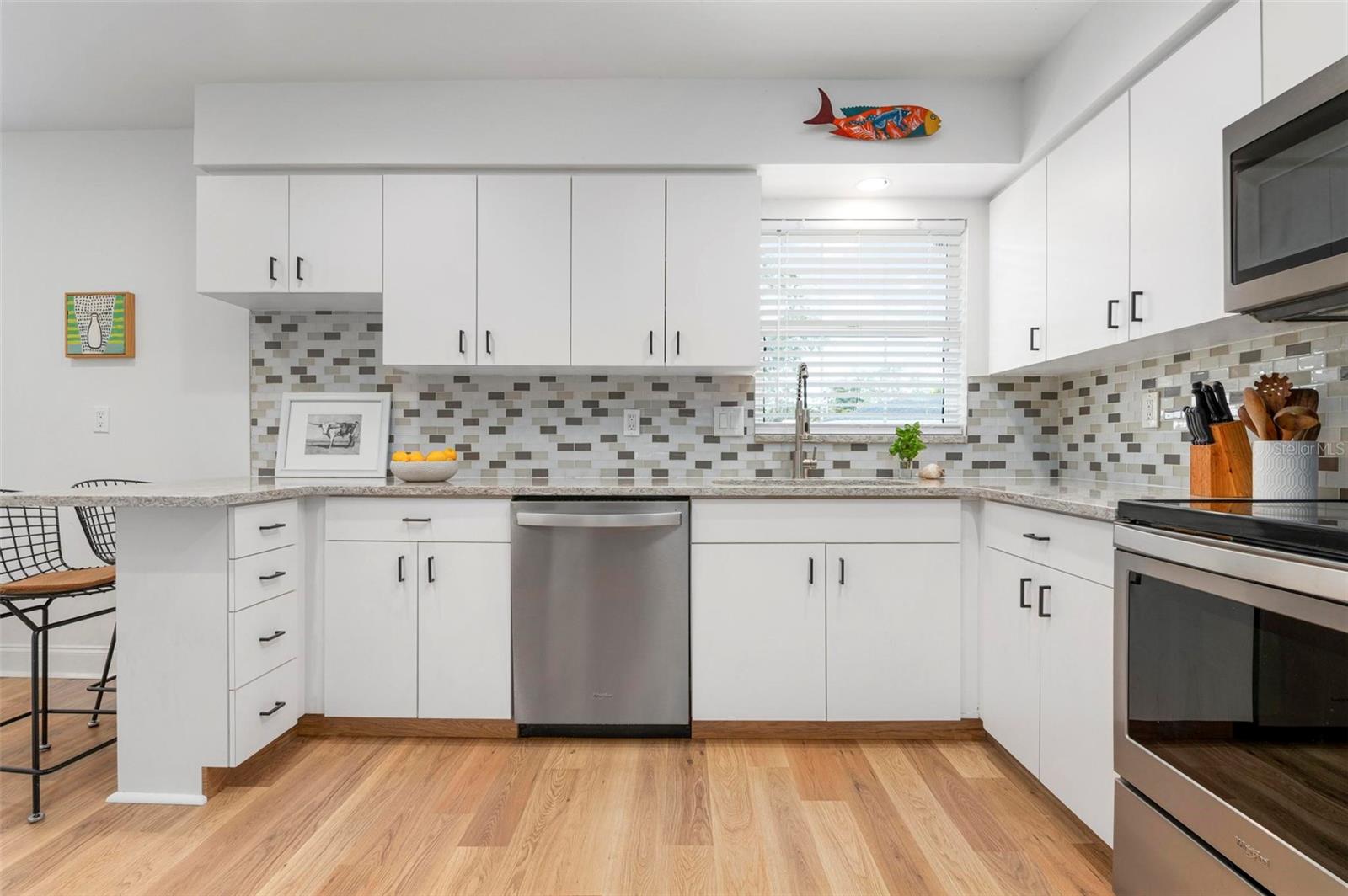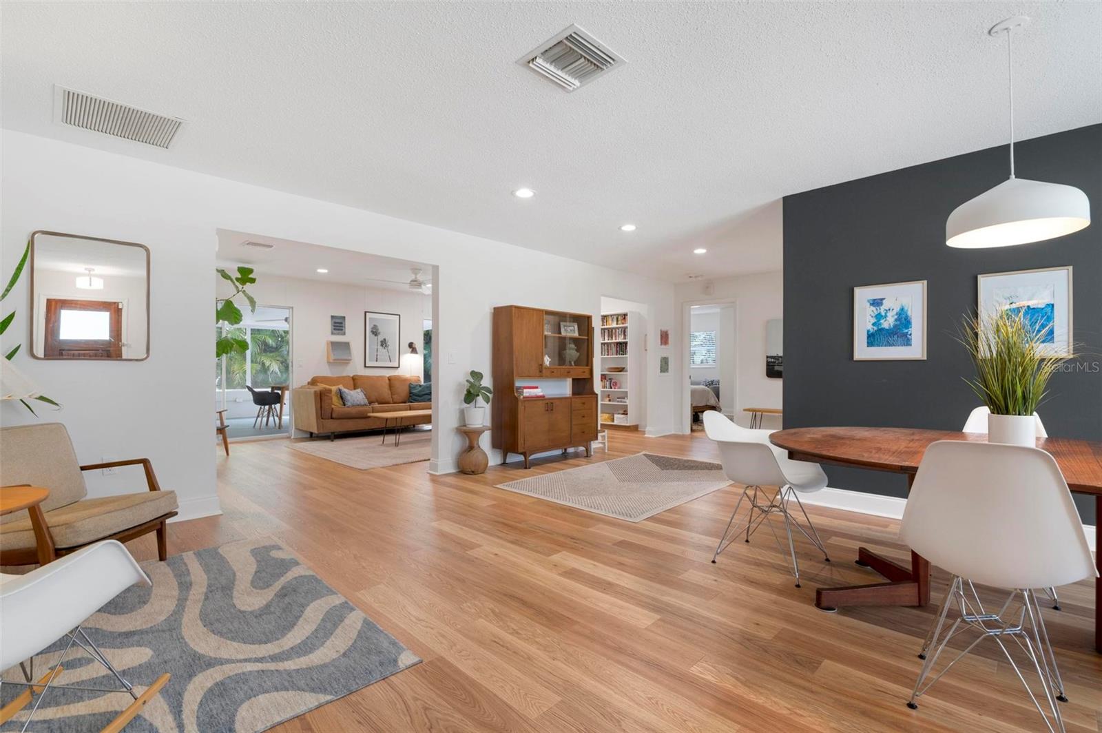 Wow is the only word to describe this stunning South Gate home! As you approach, the pride of ownership and care taken is immediately evident. The pristine lawn, thoughtful landscaping, sharp paint, and pretty pavered drive are welcoming and hint at the beauty that waits inside. Opening the front door, you’ll be pleasantly surprised at the airy and open floor plan – it is bright & beautiful and flows perfectly, with lots of light and just enough definition between the spaces for optimal usability. The new engineered hardwood throughout lends a lovely sense of warmth and continuity, and also gives a very “now” feel to the chic space. Don’t worry, lovers of terrazzo, it is underneath and the floors were not glued in order to preserve it! Crisp walls and black hardware complete the elegant but cool interior look. Everything in this home’s split floor plan is well-thought out and no place is that more evident than the kitchen! Clean white cabinetry, gleaming quartz counters, and likely more storage than you have ever seen in a Florida ranch are all a dream, and there is also a cute mudroom-type space for easy coming and going from the oversized 2-car garage. Spaciousness abounds here…the main bedroom is huge and the other two are also generous, plus there is a great family room toward the back of the home, along with a very large screened patio! Loads of storage space throughout this cheerful home is convenient and makes it easier to live a clutter-free life. The outdoor space here is impressive as well: in addition to the giant covered patio that acts as an extension of the living area, there is ample open patio space to get some sun & a private outdoor shower too! The entire yard is enclosed with pretty wood fencing and bordered with gorgeous tropical landscaping that provides both beauty and complete privacy, and there is a separate fenced area for pets. This home is immaculate and literally everything is done! A newer roof (2018) and AC (2020), well for irrigation, wiring for closed-circuit cameras, attic insulation, plus coming-soon hurricane shutters complete the package. The location of South Gate, which also offers optional HOA membership & optional membership to the great community pool, simply cannot be beat and this property is truly the best of the best…Imagine living in a home that looks like it came out of a magazine AND being just 10 minutes to downtown and to Siesta Key Beach…yes, WOW pretty much sums it up.