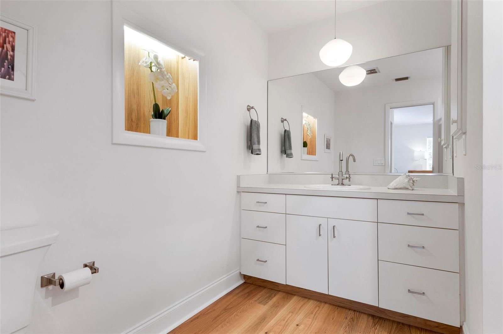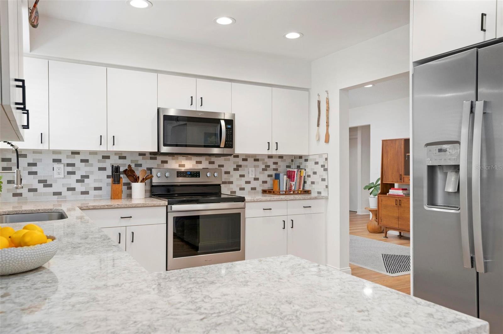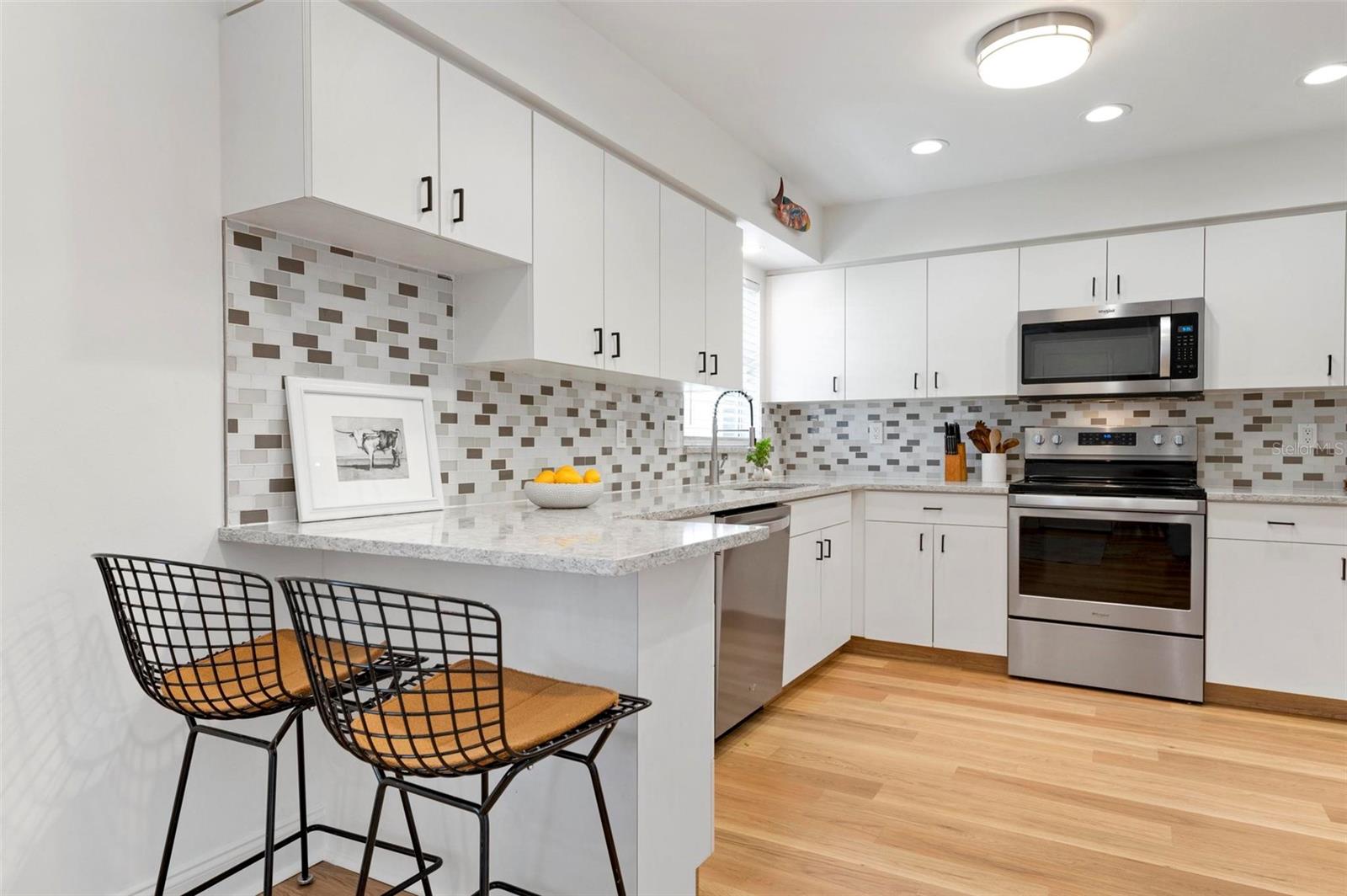Wow is the only word to describe this stunning South Gate home! As you approach, the pride of ownership and care taken is immediately evident. The pristine lawn, thoughtful landscaping, sharp paint, and pretty pavered drive are welcoming and hint at the beauty that waits inside. Opening the front door, you’ll be pleasantly surprised at the airy and open floor plan – it is bright & beautiful and flows perfectly, with lots of light and just enough definition between the spaces for optimal usability. The new engineered hardwood throughout lends a lovely sense of warmth and continuity, and also gives a very “now” feel to the chic space. Don’t worry, lovers of terrazzo, it is underneath and the floors were not glued in order to preserve it! Crisp walls and black hardware complete the elegant but cool interior look. Everything in this home’s split floor plan is well-thought out and no place is that more evident than the kitchen! Clean white cabinetry, gleaming quartz counters, and likely more storage than you have ever seen in a Florida ranch are all a dream, and there is also a cute mudroom-type space for easy coming and going from the oversized 2-car garage. Spaciousness abounds here…the main bedroom is huge and the other two are also generous, plus there is a great family room toward the back of the home, along with a very large screened patio! Loads of storage space throughout this cheerful home is convenient and makes it easier to live a clutter-free life. The outdoor space here is impressive as well: in addition to the giant covered patio that acts as an extension of the living area, there is ample open patio space to get some sun & a private outdoor shower too! The entire yard is enclosed with pretty wood fencing and bordered with gorgeous tropical landscaping that provides both beauty and complete privacy, and there is a separate fenced area for pets. This home is immaculate and literally everything is done! A newer roof (2018) and AC (2020), well for irrigation, wiring for closed-circuit cameras, attic insulation, plus coming-soon hurricane shutters complete the package. The location of South Gate, which also offers optional HOA membership & optional membership to the great community pool, simply cannot be beat and this property is truly the best of the best…Imagine living in a home that looks like it came out of a magazine AND being just 10 minutes to downtown and to Siesta Key Beach…yes, WOW pretty much sums it up.