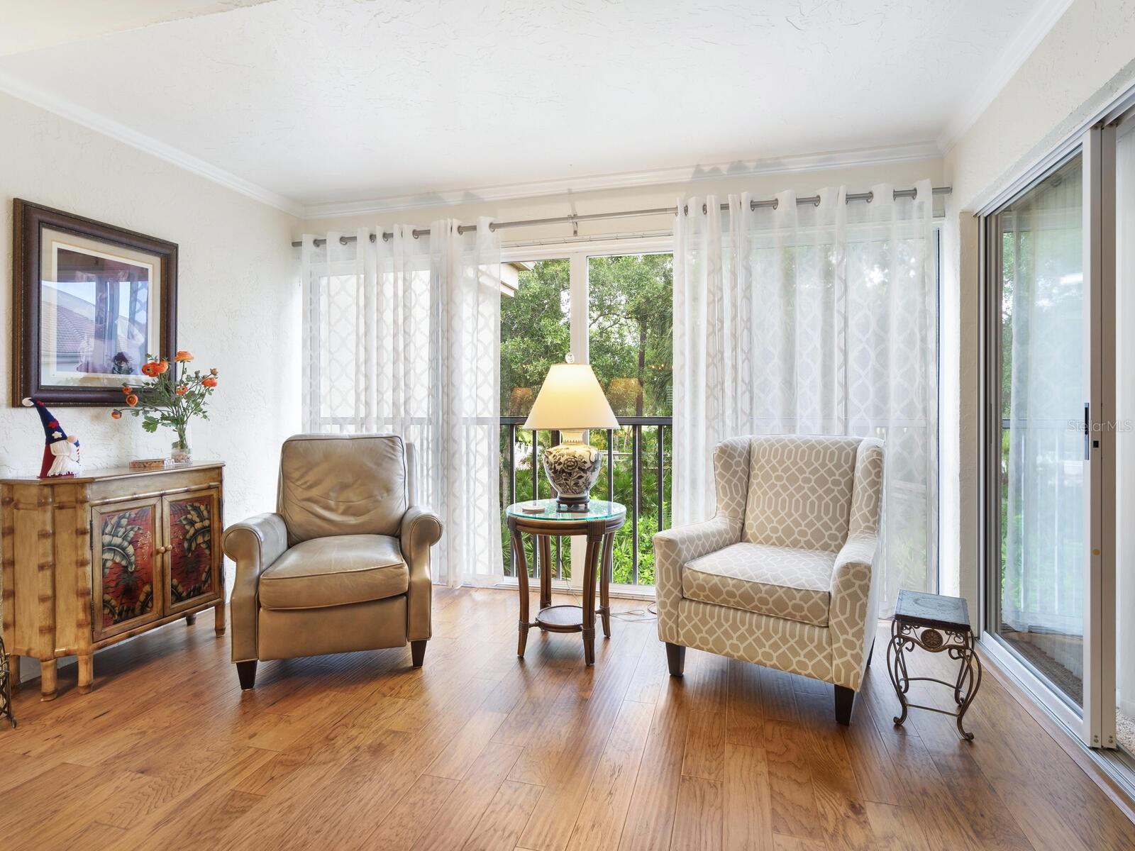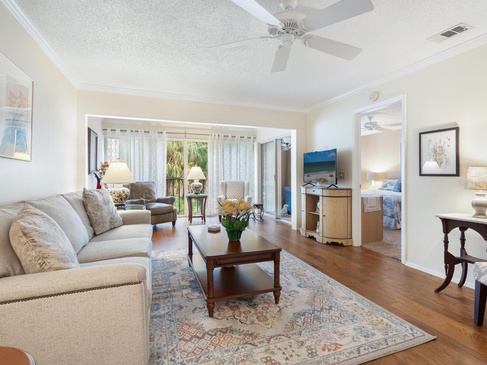 Woodland Grove remains one of The Meadows most popular garden style condominiums. Well maintained, constructed and managed with low quarterly maintenance fee. This 2nd floor unit has an expanded living area by enclosing lanai and removing interior sliding panels. The community pool is uniquely set within wooded bird sanctuary accessed by boardwalk. This unit has outstanding view of the nature preserve and pool. The Meadows is a 4-star community of over 13 miles of biking and walking trails, 80 lakes, 3 golf courses, tennis complex with 18 courts, Jr. Olympic pool, new designed fitness center, pickleball, restaurants and a multitude of special interest clubs and activities. All of this set within an oasis of oaks and greenbelts on the boundaries of all the shops, dining, entertainment and recreation within the UTC mall and Aquatic Park and Rowing facility. Come take a look.