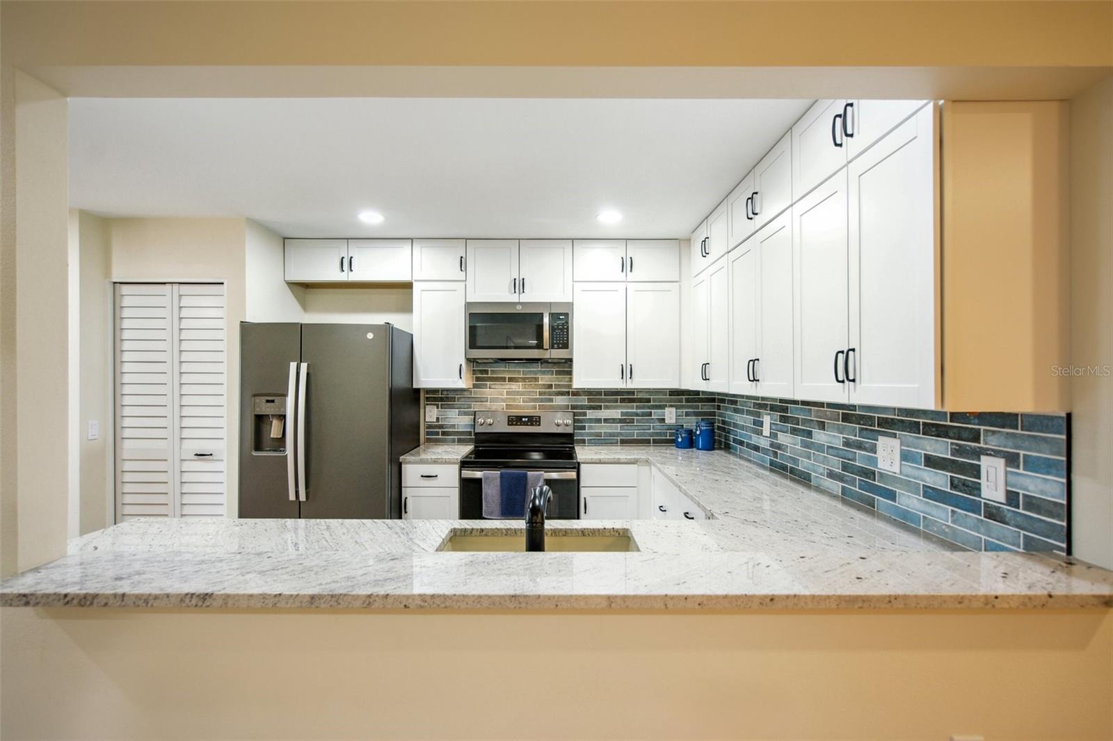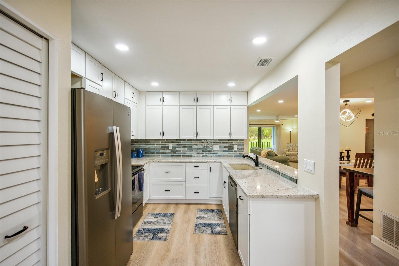 One or more photo(s) has been virtually staged. This completely remodeled home overlooking the 17th par 3 hole on Palm Aire’s Lakes course is waiting for you. LOW CONDO FEES. Entering the home, be welcomed by the beautiful tee to green views of the golf course. The reimagined kitchen features all new stainless steel appliances, cabinets and gorgeous granite countertops. Plenty of room for pots, pans and even grandma’s China as there is more than ample storage including a large pantry. Entertaining is a breeze with this open floor plan that offers a large pass through from the kitchen to the dining area. The living area includes a formal dining space and wet bar. Awaken in the primary suite in the morning to the same golf course views or watch the sun rise over the course with coffee on the 4 season lanai. The primary bedroom includes two closets and en-suite bathroom that is showcased with a new designer tile “wet wall” The second bedroom is split from the rest of the home and has the second bath nearby. A second screened porch at the front door is a welcoming outdoor space. A private garage provides enough space for your car and golf cart. Avista offers an Olympic size pool, hot tub, club house and community features like grill, car wash stations and dog walking area. Short term rentals are allowed and membership to Palm Aire with its newly redesigned Champs course, soon to be redesigned Lakes course, and soon to be remodeled club is optional. This location is convenient to everything. UTC mall is a little over two miles away, SRQ Airport, downtown Sarasota with its shopping and cultural offerings and downtown Bradenton are minutes away. World-class beaches, including Siesta Key and Anna Maria Island are close by.