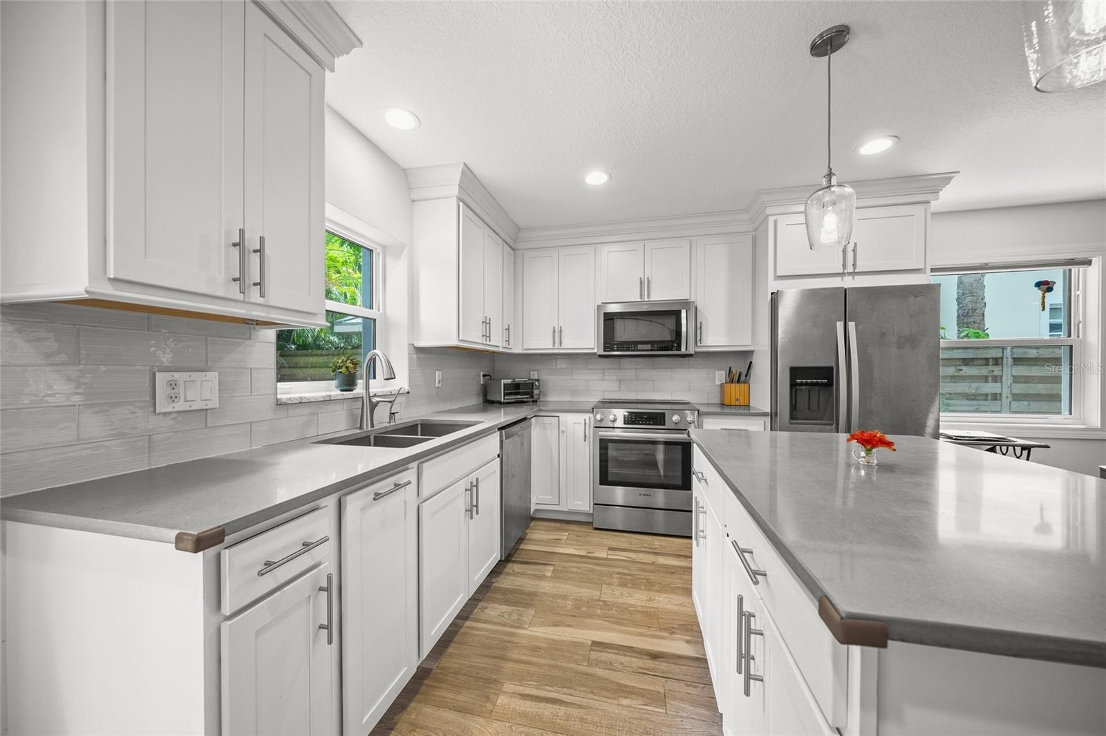 Discover this ultra private gem where luxury meets charm in this cozy, elegant home ready to become your new sanctuary. Perfectly situated just over 3 miles from Florida's renowned Siesta Key Beach and the vibrant Siesta Key Village, this property offers an unparalleled lifestyle filled with upscale restaurants, exhilarating water activities, and endless new experiences. Downtown Sarasota, with its high-end dining, chic bars, exclusive shops, and stunning marina, is only 3 miles away, while Trader Joe's is a convenient 1.1 miles from your doorstep on Tamiami Trail. Families will appreciate the proximity to renowned Southside Elementary School, located within a mile radius. This exquisite home features a state-of-the-art Culligan water filtration system with reverse osmosis for pristine drinking water, an advanced air purification system for the AC, and a mini-split AC in the garage. It's also prepped for a portable generator and enhanced with landscape lighting. Step inside to an open floor plan that seamlessly blends the living and dining areas with the gourmet kitchen, creating an ideal space for entertaining. The luxurious master suite boasts a French door and barn door, adding a touch of elegance, while the two additional bedrooms offer comfort and style. With two beautifully appointed bathrooms, a spacious garage, and a serene backyard, this home provides the perfect blend of luxury and comfort. Nestled on a canopy-like road, this house is surrounded by lush greenery in a tranquil and picturesque neighborhood, perfect for leisurely bike rides and enchanting evening walks. Whether you're seeking a full-time residence or a lucrative investment property, this luxurious home offers the best of both worlds, combining sophistication with charm in an idyllic setting.