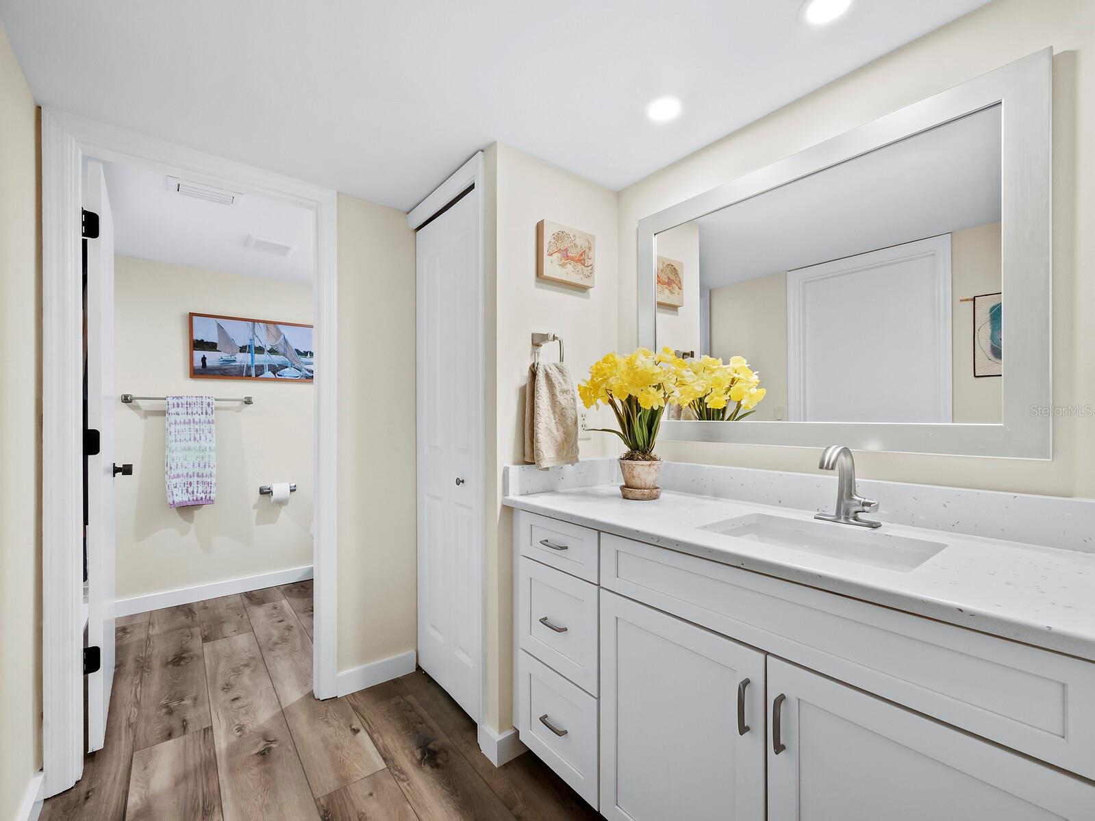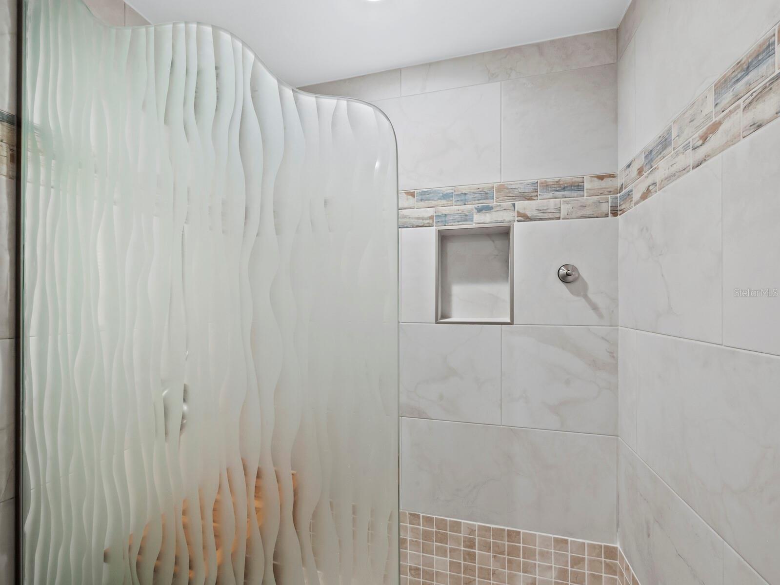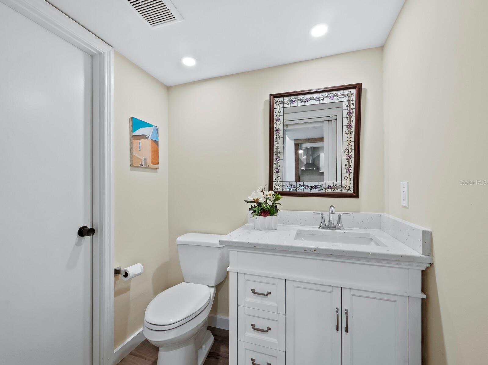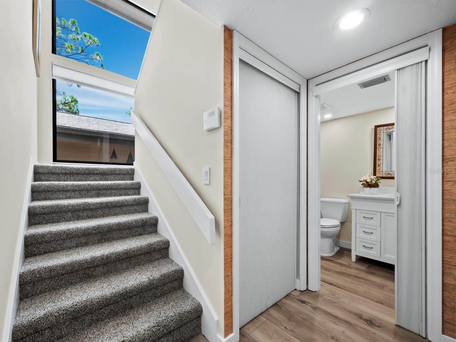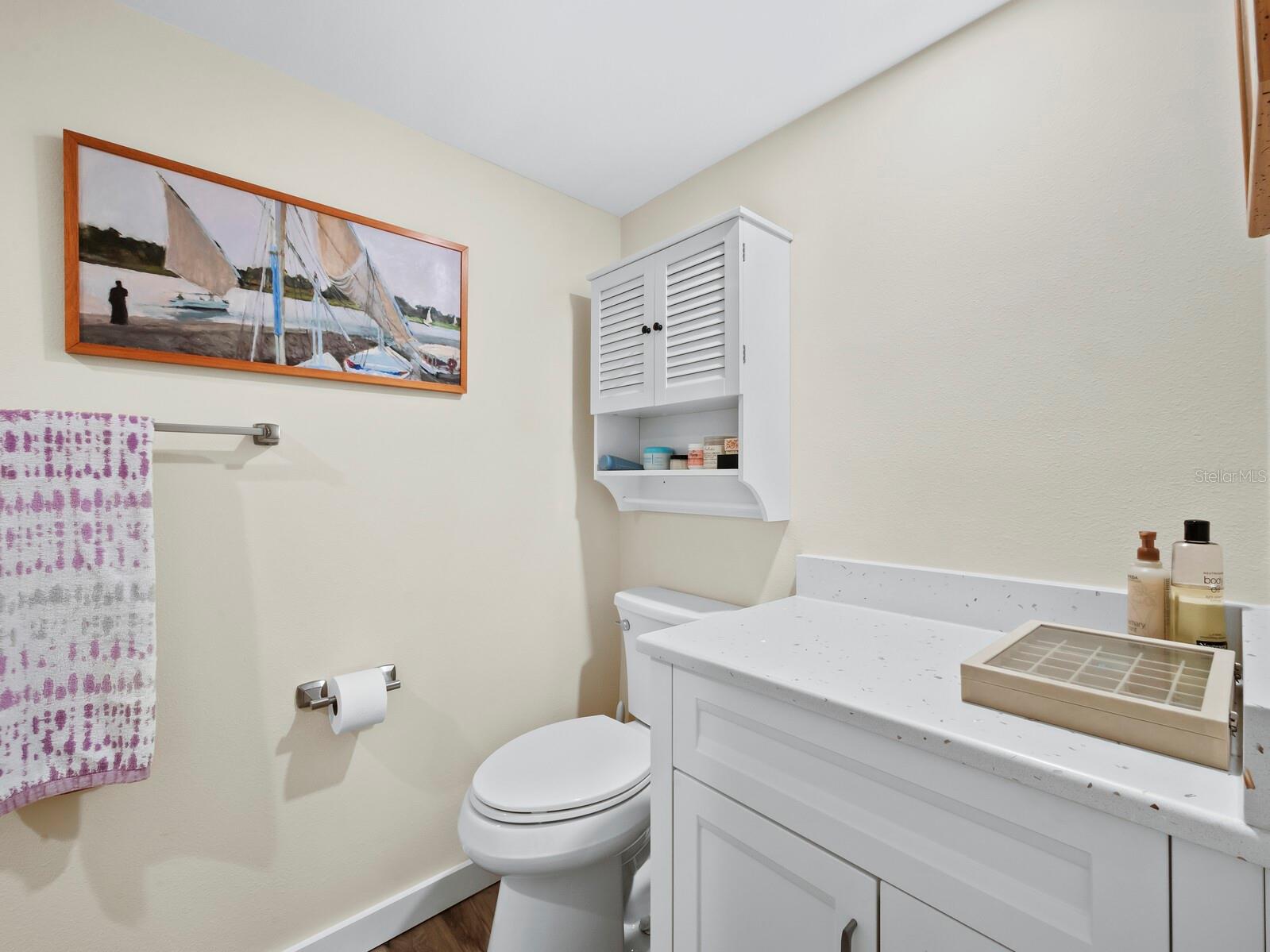 Welcome to a serene retreat in The Meadows, nestled in the forested enclave of Chandlers Forde. This 2-bedroom + den villa offers over 2,000 sq. ft. of stylish, comfortable living space. Upon entry, you're immediately enveloped by a harmonious blend of wood, stone, and intricate tilework, all illuminated by carefully crafted lighting. The faux wood tile floors lead you into the heart of the home, where the formal dining room and living room share a magnificent two-sided fireplace, stretching up to the vaulted ceiling and creating an open, airy ambiance. The beautifully updated kitchen features top-quality stainless steel appliances, stone countertops, a breakfast bar, and all-white cabinetry accented with glass panels and a chic tile backsplash. Adjacent to the kitchen, the dining area and living room flow seamlessly into the expansive Florida room. The primary suite on the main floor offers a private escape, with a sliding door opening to the Florida room. Upstairs, an additional bedroom and a dedicated office space provide ample room for family or guests. Additional features include two A/C units replaced in 2018 and a new roof installed in 2022. Located in The Meadows, a friendly community with 14 miles of meandering walking/biking trails and resort-style amenities, including three 18-hole golf courses, excellent tennis facilities, a fitness and community center, multiple pools, and more for active, social living.