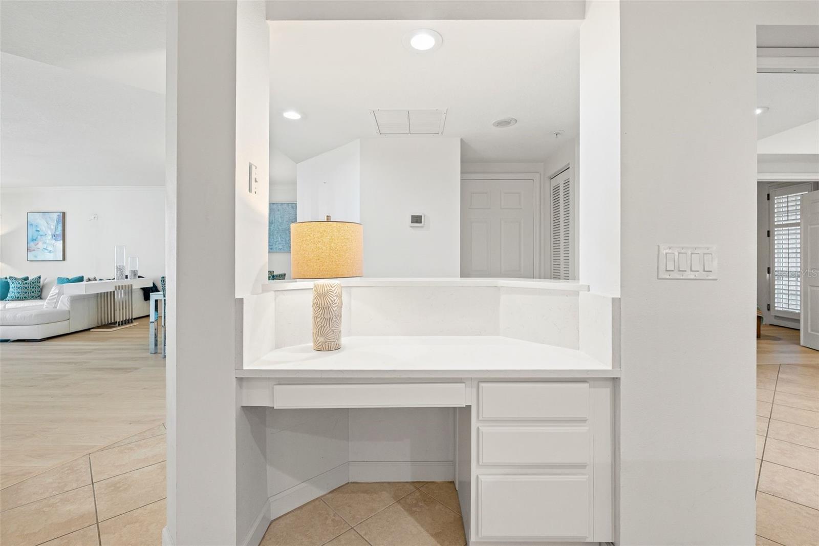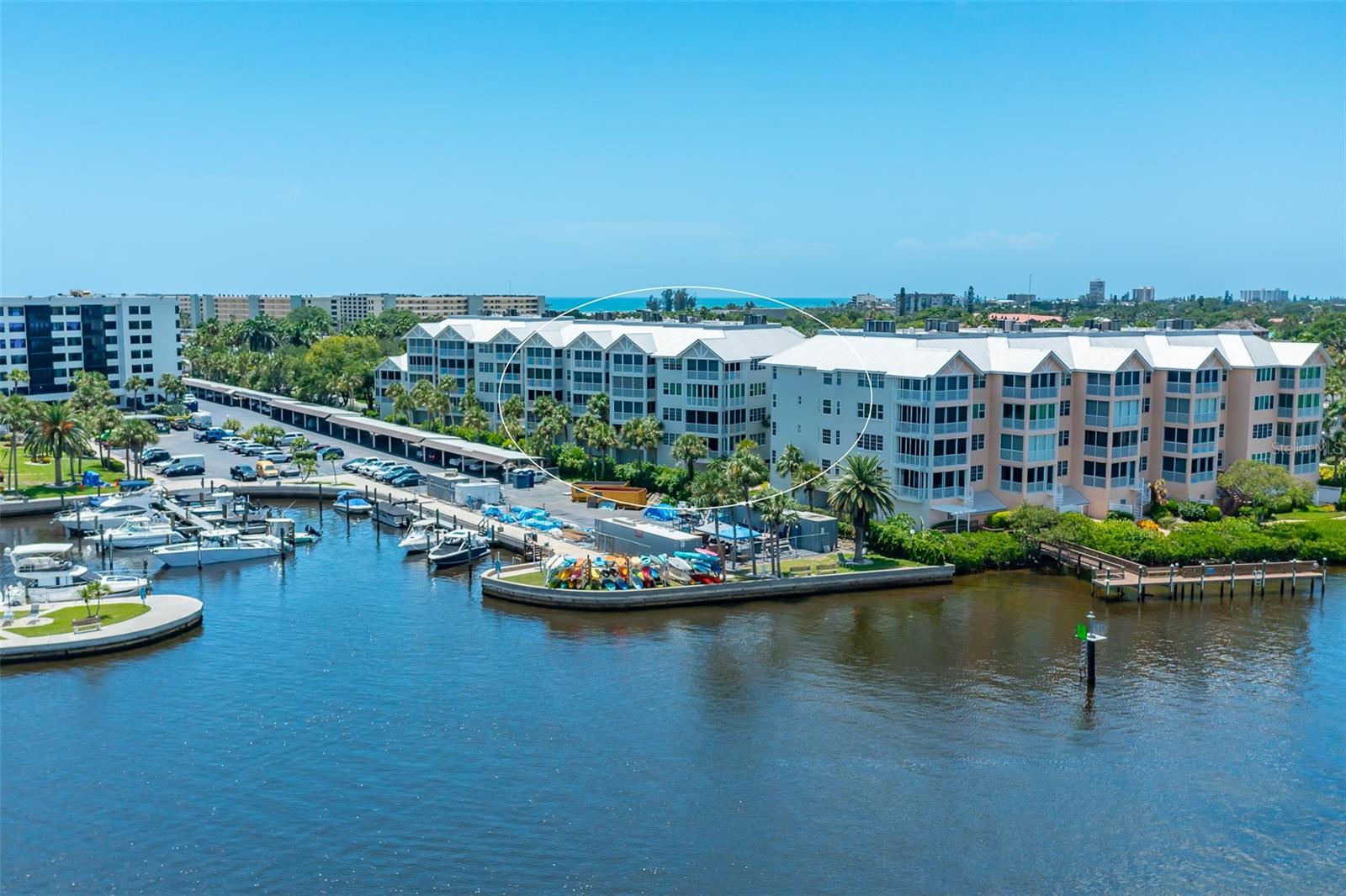 Newly installed white quartz countertops and freshly painted cabinets make the kitchen bright and cheery in this expansive 2-bedroom, 2-bath residence. With breathtaking bay views, the interior boasts an impressive 1,915 square feet of under-air living space, complemented with covered lanais in both front and back and a convenient sunning deck. The interior features both a living room and a family room, a split bedroom plan with ensuites, and hard surface flooring throughout. HVAC and hot water heater replaced in 2024. Rare to properties on the key, there is also a private one-car garage under the building, supplemented by ample open parking. Just a short walk to the public beach, Dolphin Bay offers an array of amenities, including a clubhouse, pool, spa, tennis courts, fitness center and day dock. This gated, pet-friendly community is ideal for those seeking an active waterfront lifestyle in a social and vibrant environment. Take advantage of the trolley stop located right out front, providing easy access to live entertainment and dining options throughout Siesta Key. With exterior painting and elevator renovations complete, now is the time to live your best life at Dolphin Bay!