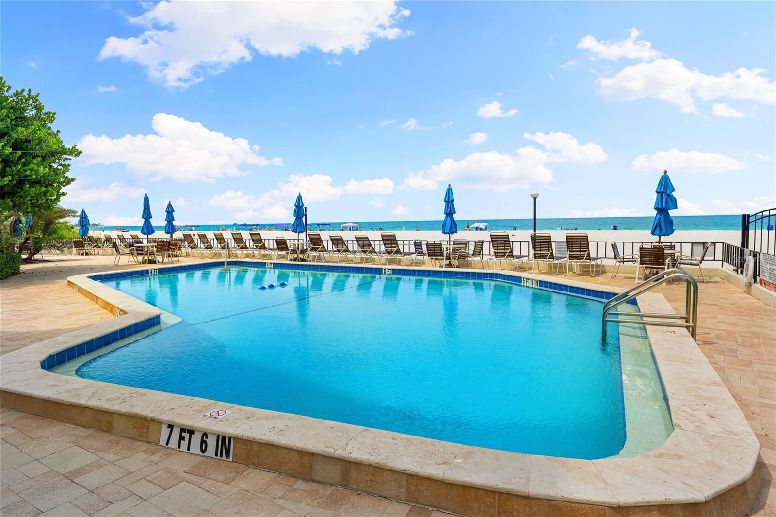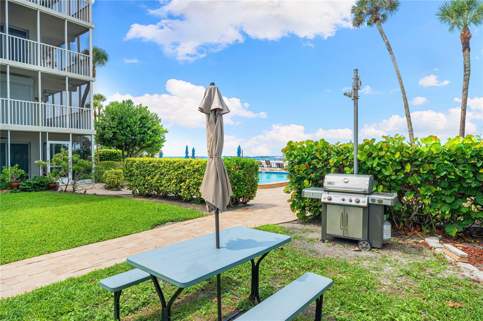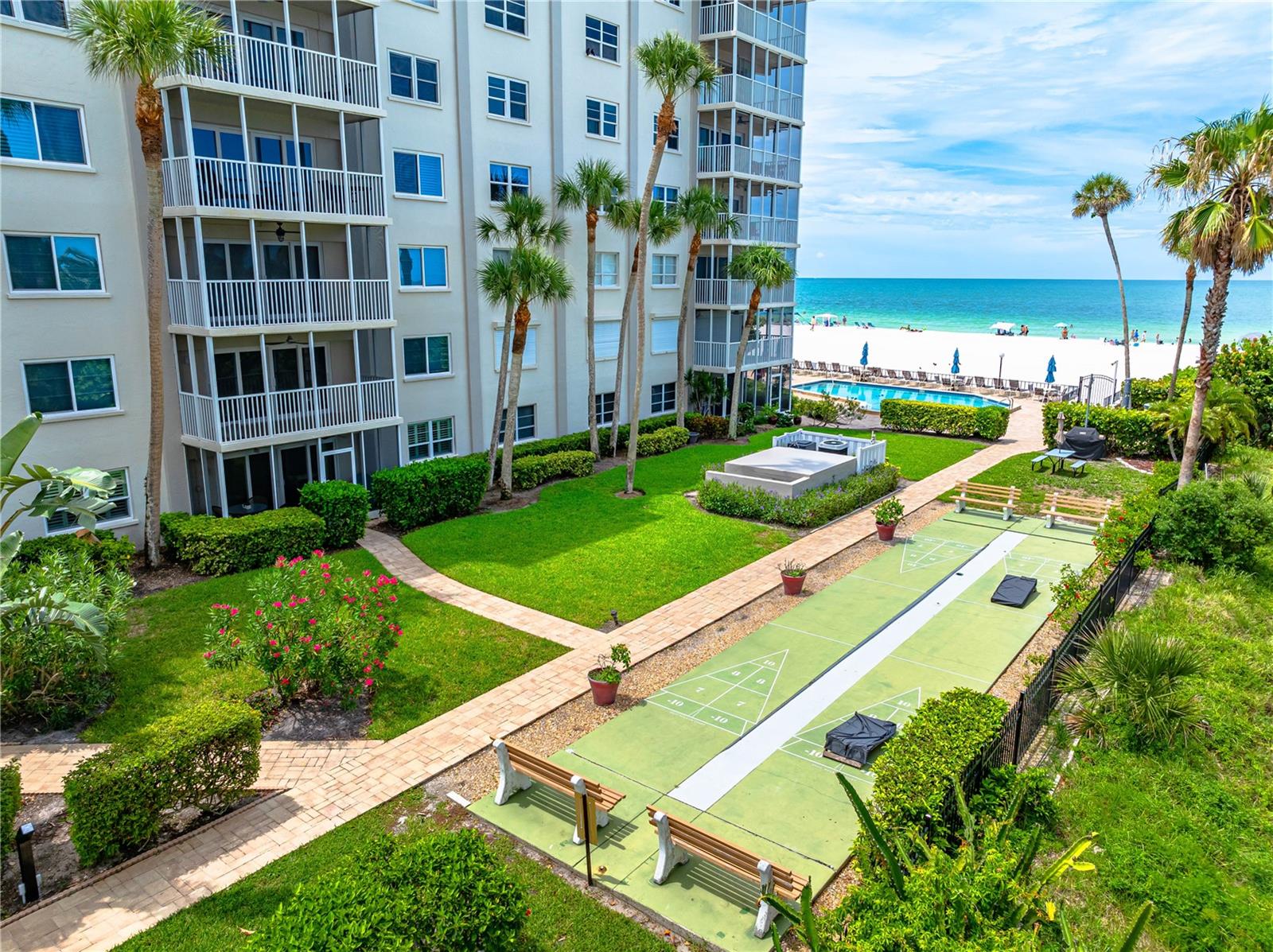 Experience the pinnacle of coastal living in this exquisite ground floor 2 bedroom, 2 bathroom condo, perfectly situated on the Gulf of Mexico. This spacious unit offers direct access to the beach and features a partial view of the stunning beachfront pool and beautiful Gulf waters. The open floor plan seamlessly integrates the living, dining and kitchen areas, creating a perfect space for both relaxation and entertaining. The modern kitchen features granite countertops, ample cabinet space, and some stainless-steel appliances, ideal for culinary enthusiasts. The living room opens onto a private patio where you can enjoy partial views of the Gulf and the shimmering pool. It’s the perfect spot to sip your morning coffee or unwind with evening cocktails while taking in the coastal ambiance. The master suite boasts luxurious details with granite countertops, stone floors, and a walk in shower with elegant stone finishes. Additionally, the master suite offers a large walk in closet with ample space. The second bedroom is equally spacious, with convenient access to the second full bathroom, featuring a contemporary vessel sink and a walk-in shower. Residents have access to a range of upscale amenities, including a beachfront pool and fitness center, and private beach access. The ground floor location provides added convenience and accessibility, making it an ideal choice for those seeking a blend of luxury and ease. Immerse yourself in the serene beauty and tranquility of Gulf Coast living in this exceptional ground floor condo. Don’t miss the chance to own your piece of paradise!