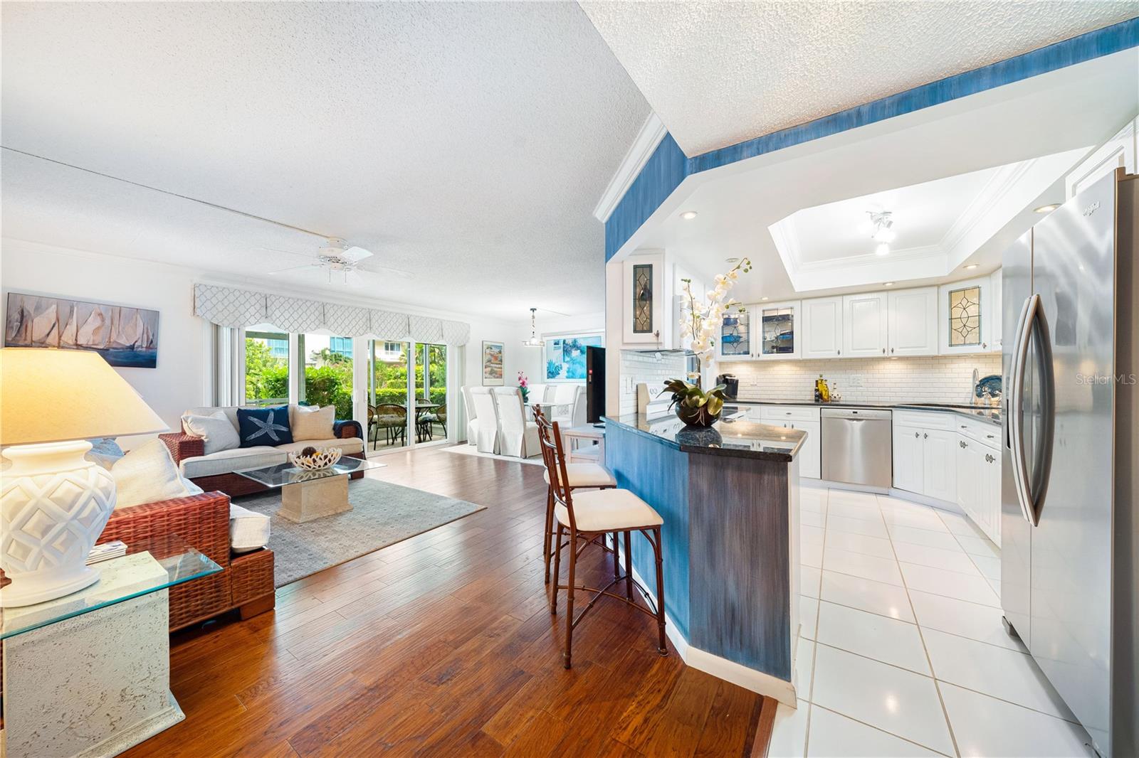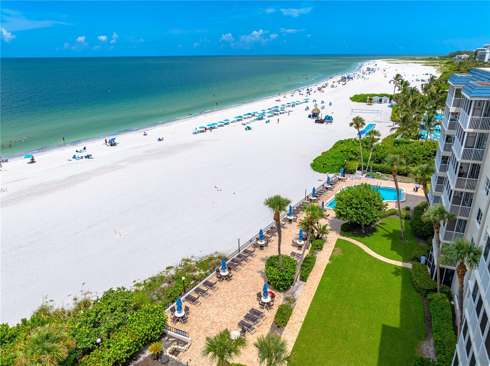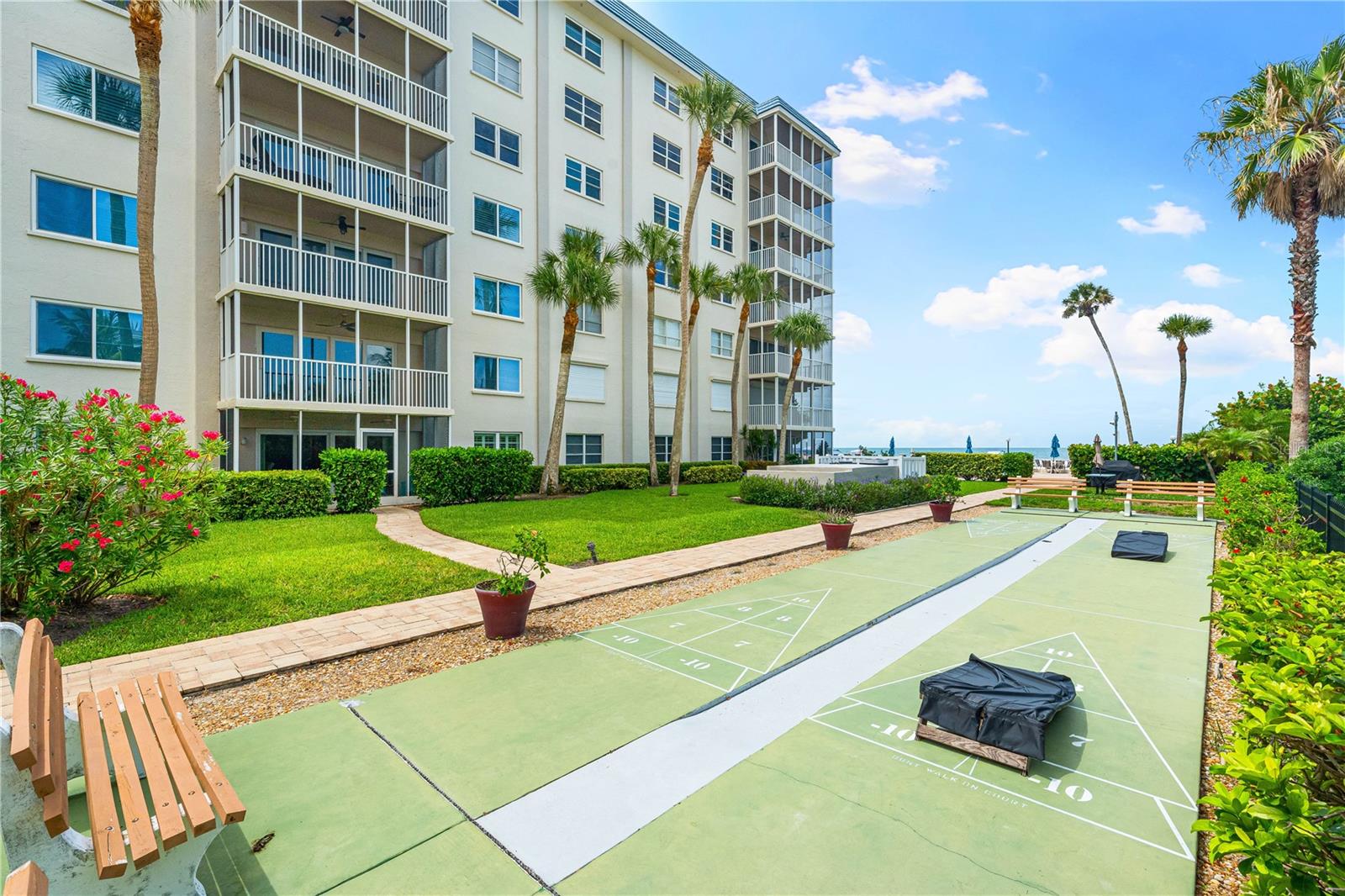 Experience the pinnacle of coastal living in this exquisite ground floor 2 bedroom, 2 bathroom condo, perfectly situated on the Gulf of Mexico. This spacious unit offers direct access to the beach and features a partial view of the stunning beachfront pool and beautiful Gulf waters. The open floor plan seamlessly integrates the living, dining and kitchen areas, creating a perfect space for both relaxation and entertaining. The modern kitchen features granite countertops, ample cabinet space, and some stainless-steel appliances, ideal for culinary enthusiasts. The living room opens onto a private patio where you can enjoy partial views of the Gulf and the shimmering pool. It’s the perfect spot to sip your morning coffee or unwind with evening cocktails while taking in the coastal ambiance. The master suite boasts luxurious details with granite countertops, stone floors, and a walk in shower with elegant stone finishes. Additionally, the master suite offers a large walk in closet with ample space. The second bedroom is equally spacious, with convenient access to the second full bathroom, featuring a contemporary vessel sink and a walk-in shower. Residents have access to a range of upscale amenities, including a beachfront pool and fitness center, and private beach access. The ground floor location provides added convenience and accessibility, making it an ideal choice for those seeking a blend of luxury and ease. Immerse yourself in the serene beauty and tranquility of Gulf Coast living in this exceptional ground floor condo. Don’t miss the chance to own your piece of paradise!