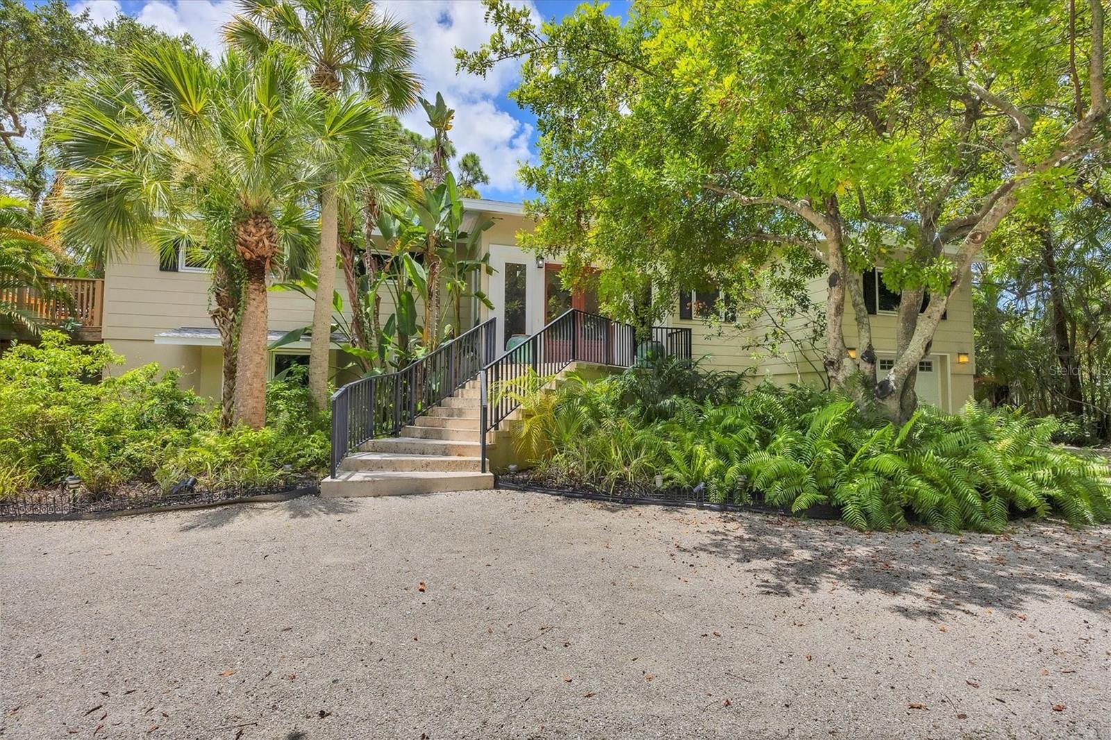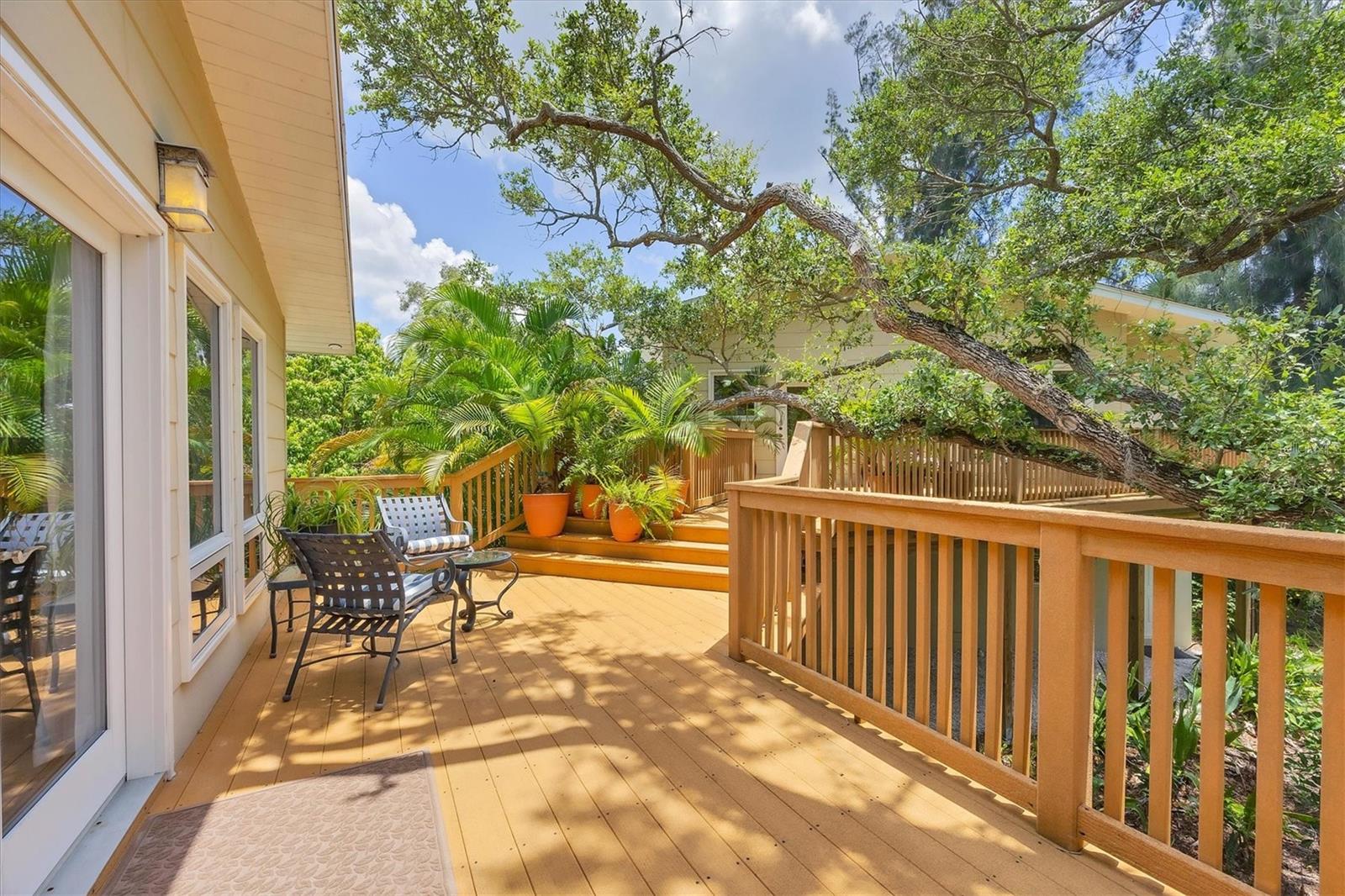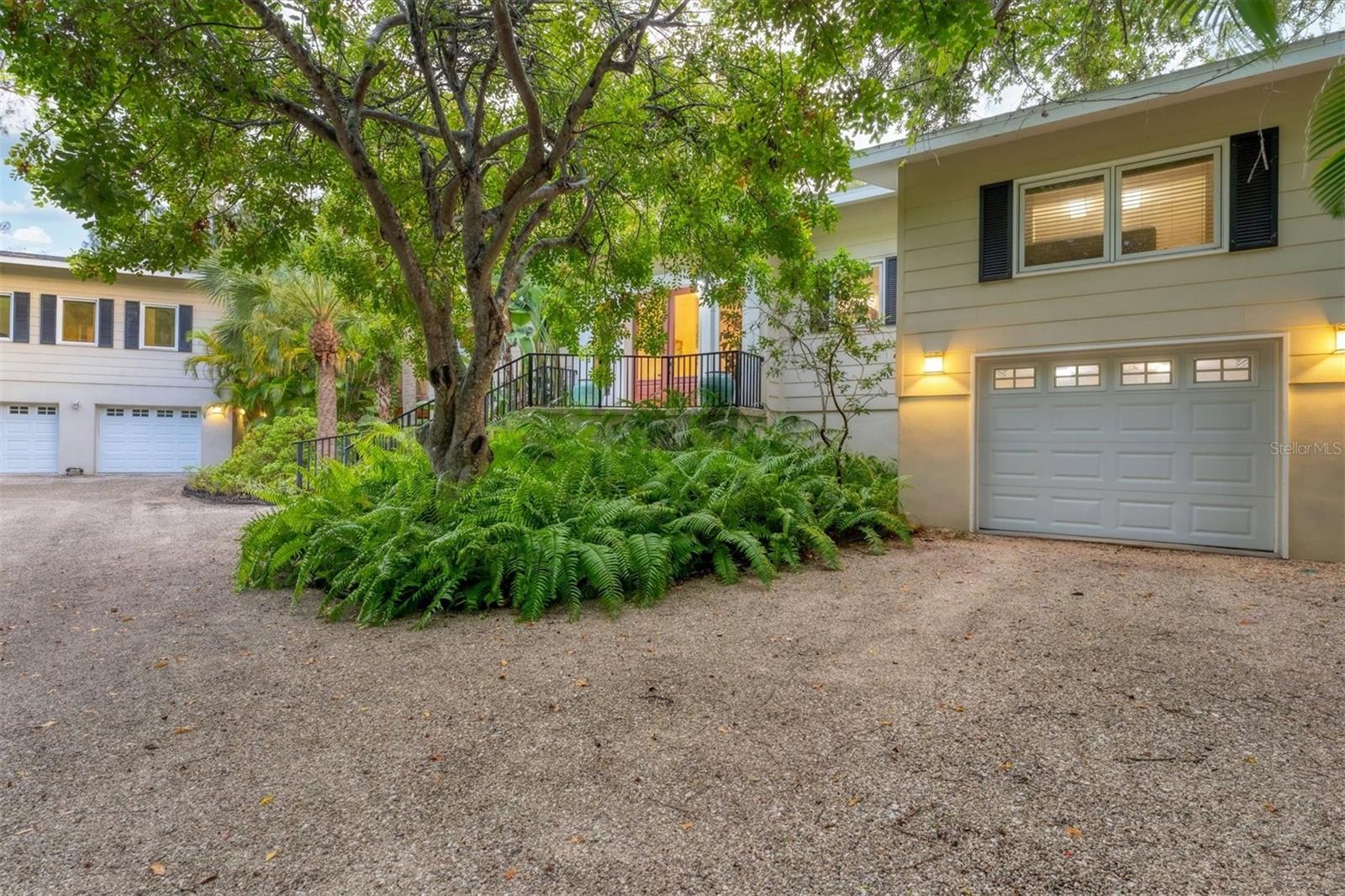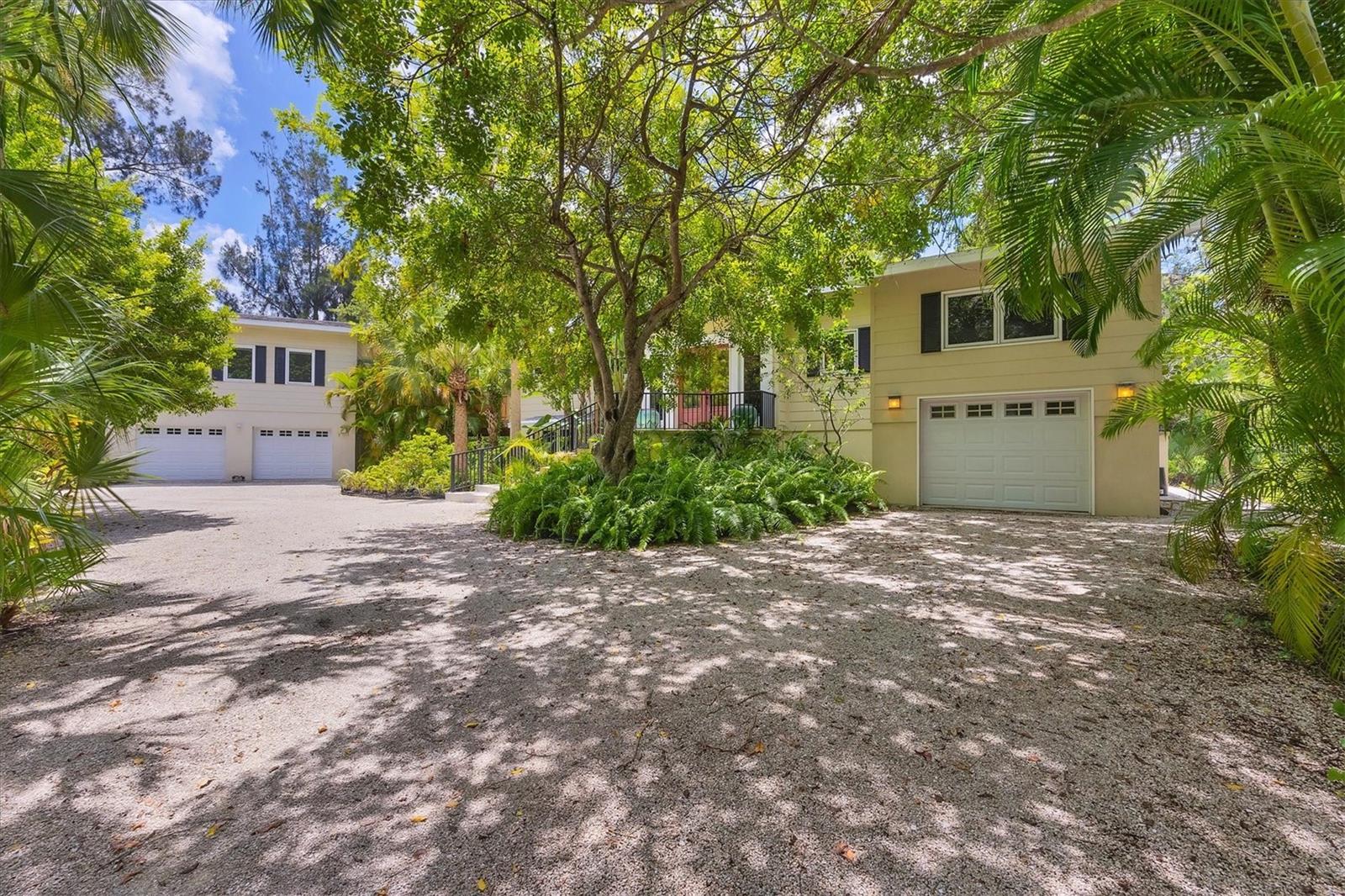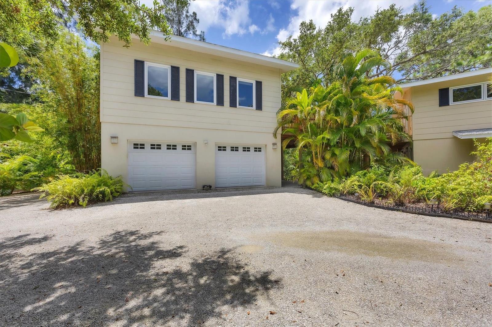One or more photo(s) has been virtually staged. Discover Sanderling Club—one of the most unique and inviting private Gulf front communities on Florida's West Coast. As you pass through the gate, you are immediately enveloped by a tree canopy and tropical foliage that leads to this exquisite property. Originally built in 1960, the main house was completely remodeled in 2010. In 2008, a new guest house was added. In total, the property features four bedrooms, four baths and 3,766 square feet of living space. An elevator ensures access to both homes. Upon entering the foyer and spacious great room, you'll feel the true essence of indoor-outdoor living on Siesta Key. The serene views of Heron Lagoon and live oak trees create an unparalleled sense of comfort and connection to nature. The modern kitchen includes a high-end appliance package, black oak cabinets with dark granite countertops, and a breakfast bar. It is complemented by a large pantry/laundry room with a built-in desk and cabinetry. Adjacent is a dining room enveloped with a wall of windows and access to the lanai. An open concept den boasts built-ins and sets the scene for casual living. The oversized primary suite, situated steps above the main living floor, features an adjacent deck with a hot tub surrounded by relaxing views of paradise and an expansive luxurious bath. The ground level of the main house provides access to an "in-law" suite with a bath and kitchenette. There is also an expansive air-conditioned bonus room in the garage. The guest house, connected to the main house by a walkway intertwined with live oak trees, includes two bedrooms, a full bath, a kitchen, and a two-car garage. Outside, this tropical oasis features plenty of living and dining areas and there is ample space for a pool and spa. Community members enjoy activities and social events in a clubhouse designed by famed architect Paul Rudolph, with a large waterfront patio and grilling area with beach/Gulf access, Har-Tru tennis courts, pickleball, and a playground. Enjoy breathtaking sunset and Gulf of Mexico views from the iconic Sanderling Club beach cabanas and clubhouse. The community also offers a private marina with direct sailboat access to Sarasota Bay, the Intracoastal Waterway, and the Gulf of Mexico. The property is located minutes to Siesta Key’s crystal quartz sand beaches and Siesta Village for shopping and restaurants. Culturally rich downtown Sarasota restaurants, theater, ballet, opera, museums, galleries, and shopping are a short drive away.