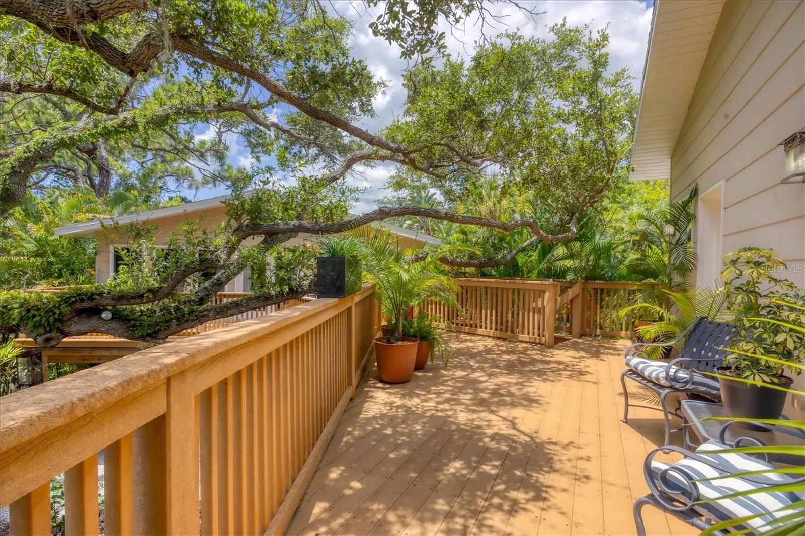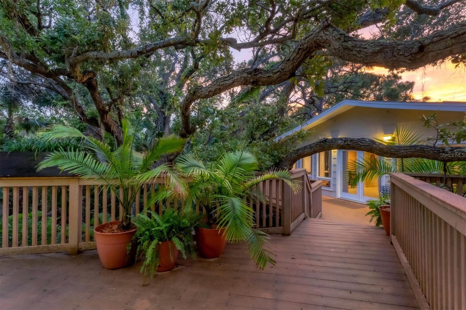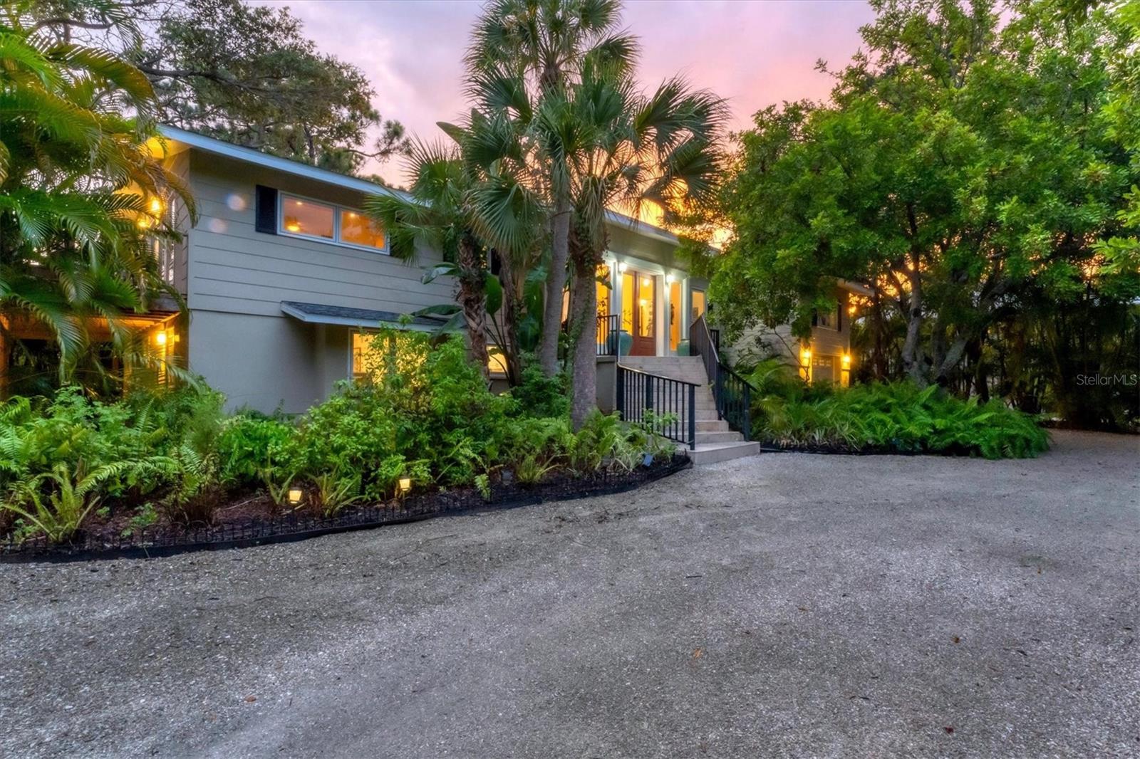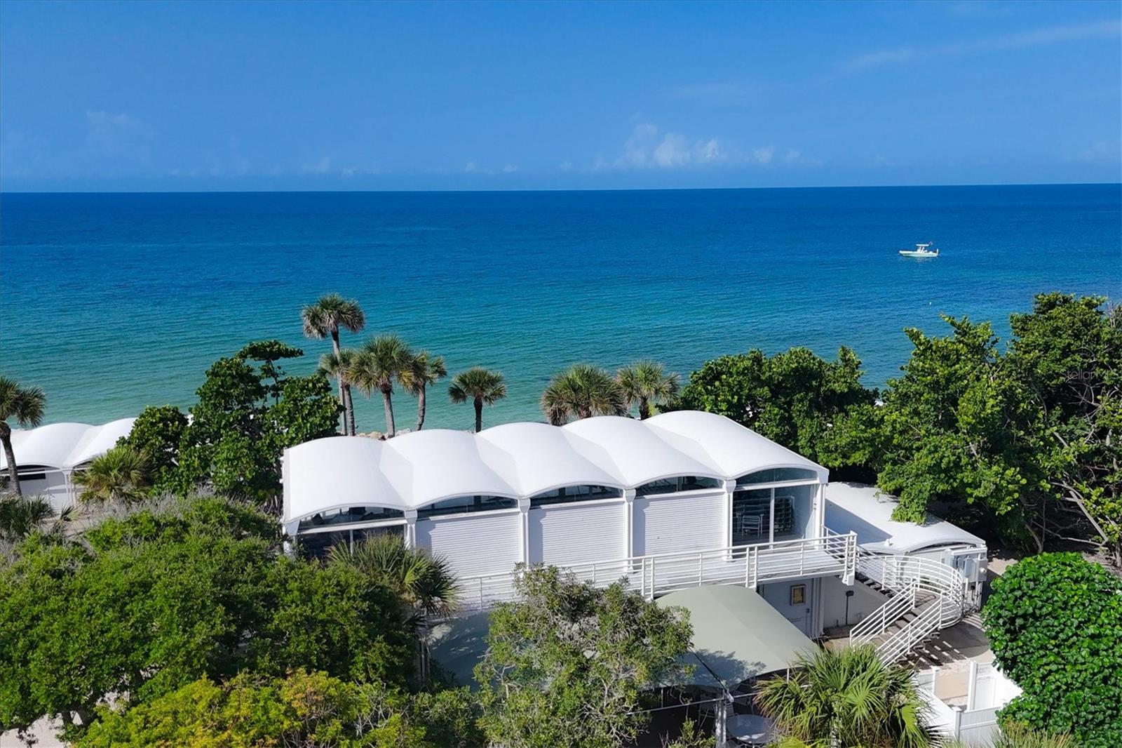 One or more photo(s) has been virtually staged. Discover Sanderling Club—one of the most unique and inviting private Gulf front communities on Florida's West Coast. As you pass through the gate, you are immediately enveloped by a tree canopy and tropical foliage that leads to this exquisite property. Originally built in 1960, the main house was completely remodeled in 2010. In 2008, a new guest house was added. In total, the property features four bedrooms, four baths and 3,766 square feet of living space. An elevator ensures access to both homes. Upon entering the foyer and spacious great room, you'll feel the true essence of indoor-outdoor living on Siesta Key. The serene views of Heron Lagoon and live oak trees create an unparalleled sense of comfort and connection to nature. The modern kitchen includes a high-end appliance package, black oak cabinets with dark granite countertops, and a breakfast bar. It is complemented by a large pantry/laundry room with a built-in desk and cabinetry. Adjacent is a dining room enveloped with a wall of windows and access to the lanai. An open concept den boasts built-ins and sets the scene for casual living. The oversized primary suite, situated steps above the main living floor, features an adjacent deck with a hot tub surrounded by relaxing views of paradise and an expansive luxurious bath. The ground level of the main house provides access to an "in-law" suite with a bath and kitchenette. There is also an expansive air-conditioned bonus room in the garage. The guest house, connected to the main house by a walkway intertwined with live oak trees, includes two bedrooms, a full bath, a kitchen, and a two-car garage. Outside, this tropical oasis features plenty of living and dining areas and there is ample space for a pool and spa. Community members enjoy activities and social events in a clubhouse designed by famed architect Paul Rudolph, with a large waterfront patio and grilling area with beach/Gulf access, Har-Tru tennis courts, pickleball, and a playground. Enjoy breathtaking sunset and Gulf of Mexico views from the iconic Sanderling Club beach cabanas and clubhouse. The community also offers a private marina with direct sailboat access to Sarasota Bay, the Intracoastal Waterway, and the Gulf of Mexico. The property is located minutes to Siesta Key’s crystal quartz sand beaches and Siesta Village for shopping and restaurants. Culturally rich downtown Sarasota restaurants, theater, ballet, opera, museums, galleries, and shopping are a short drive away.