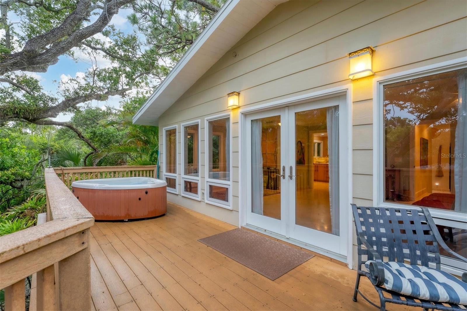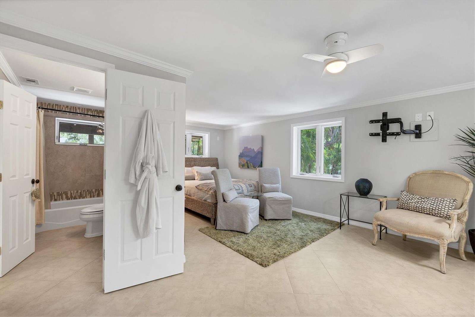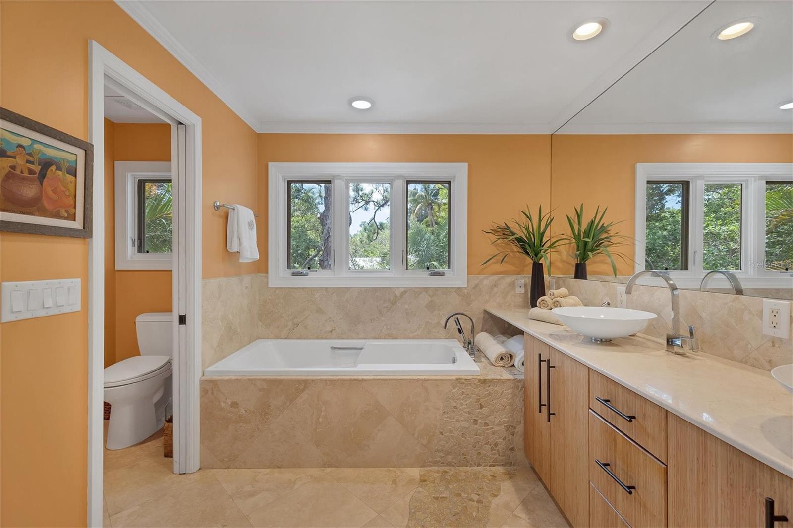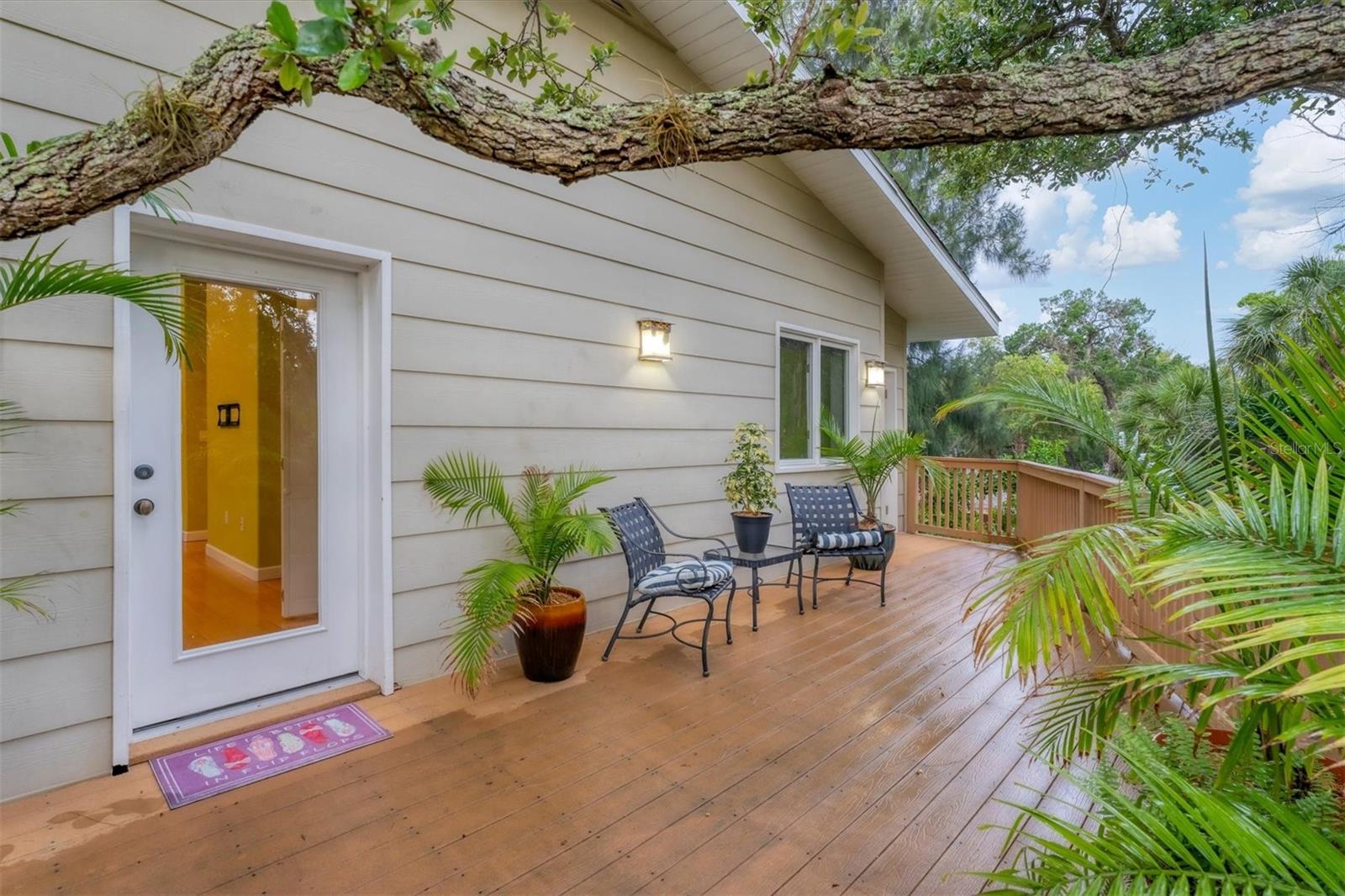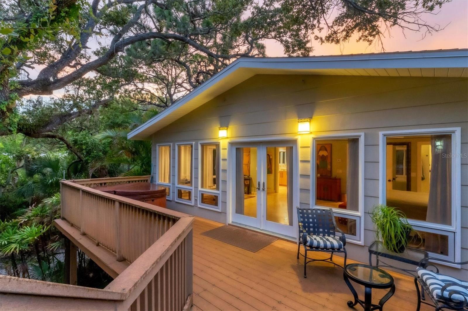One or more photo(s) has been virtually staged. Discover Sanderling Club—one of the most unique and inviting private Gulf front communities on Florida's West Coast. As you pass through the gate, you are immediately enveloped by a tree canopy and tropical foliage that leads to this exquisite property. Originally built in 1960, the main house was completely remodeled in 2010. In 2008, a new guest house was added. In total, the property features four bedrooms, four baths and 3,766 square feet of living space. An elevator ensures access to both homes. Upon entering the foyer and spacious great room, you'll feel the true essence of indoor-outdoor living on Siesta Key. The serene views of Heron Lagoon and live oak trees create an unparalleled sense of comfort and connection to nature. The modern kitchen includes a high-end appliance package, black oak cabinets with dark granite countertops, and a breakfast bar. It is complemented by a large pantry/laundry room with a built-in desk and cabinetry. Adjacent is a dining room enveloped with a wall of windows and access to the lanai. An open concept den boasts built-ins and sets the scene for casual living. The oversized primary suite, situated steps above the main living floor, features an adjacent deck with a hot tub surrounded by relaxing views of paradise and an expansive luxurious bath. The ground level of the main house provides access to an "in-law" suite with a bath and kitchenette. There is also an expansive air-conditioned bonus room in the garage. The guest house, connected to the main house by a walkway intertwined with live oak trees, includes two bedrooms, a full bath, a kitchen, and a two-car garage. Outside, this tropical oasis features plenty of living and dining areas and there is ample space for a pool and spa. Community members enjoy activities and social events in a clubhouse designed by famed architect Paul Rudolph, with a large waterfront patio and grilling area with beach/Gulf access, Har-Tru tennis courts, pickleball, and a playground. Enjoy breathtaking sunset and Gulf of Mexico views from the iconic Sanderling Club beach cabanas and clubhouse. The community also offers a private marina with direct sailboat access to Sarasota Bay, the Intracoastal Waterway, and the Gulf of Mexico. The property is located minutes to Siesta Key’s crystal quartz sand beaches and Siesta Village for shopping and restaurants. Culturally rich downtown Sarasota restaurants, theater, ballet, opera, museums, galleries, and shopping are a short drive away.