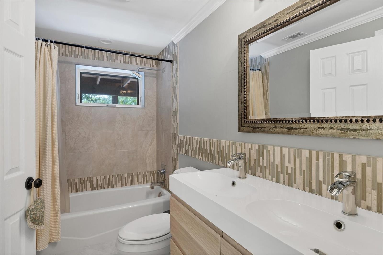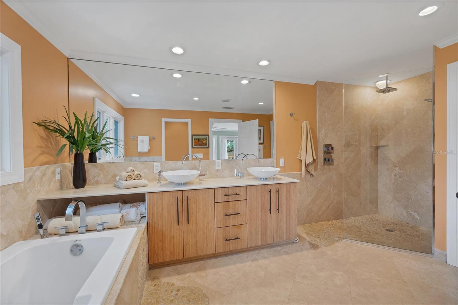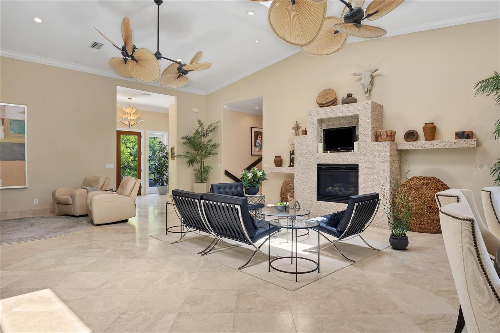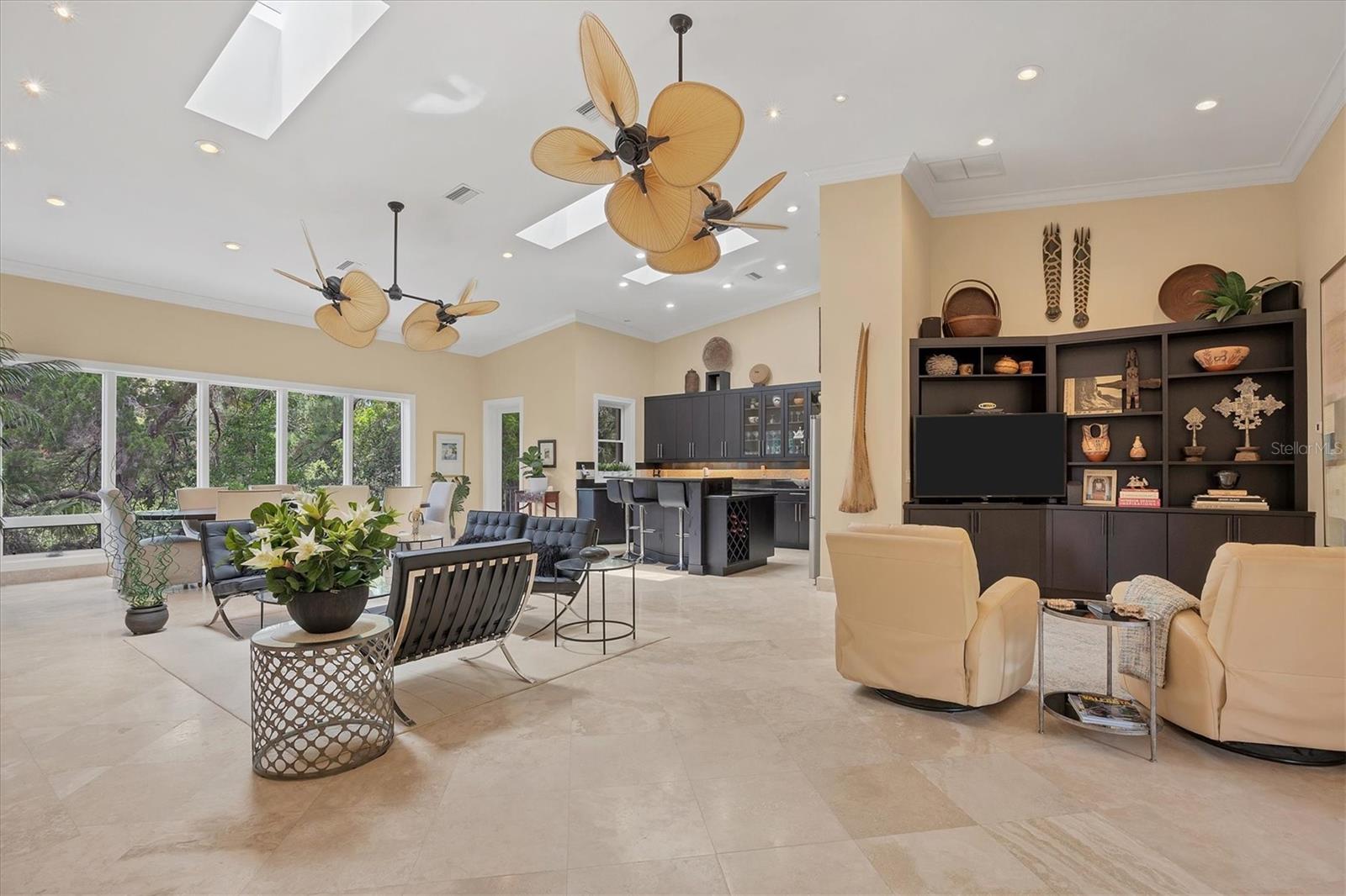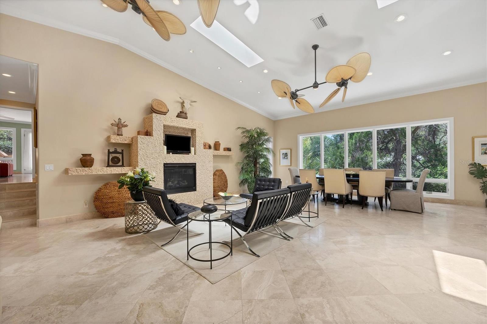 One or more photo(s) has been virtually staged. Discover Sanderling Club—one of the most unique and inviting private Gulf front communities on Florida's West Coast. As you pass through the gate, you are immediately enveloped by a tree canopy and tropical foliage that leads to this exquisite property. Originally built in 1960, the main house was completely remodeled in 2010. In 2008, a new guest house was added. In total, the property features four bedrooms, four baths and 3,766 square feet of living space. An elevator ensures access to both homes. Upon entering the foyer and spacious great room, you'll feel the true essence of indoor-outdoor living on Siesta Key. The serene views of Heron Lagoon and live oak trees create an unparalleled sense of comfort and connection to nature. The modern kitchen includes a high-end appliance package, black oak cabinets with dark granite countertops, and a breakfast bar. It is complemented by a large pantry/laundry room with a built-in desk and cabinetry. Adjacent is a dining room enveloped with a wall of windows and access to the lanai. An open concept den boasts built-ins and sets the scene for casual living. The oversized primary suite, situated steps above the main living floor, features an adjacent deck with a hot tub surrounded by relaxing views of paradise and an expansive luxurious bath. The ground level of the main house provides access to an "in-law" suite with a bath and kitchenette. There is also an expansive air-conditioned bonus room in the garage. The guest house, connected to the main house by a walkway intertwined with live oak trees, includes two bedrooms, a full bath, a kitchen, and a two-car garage. Outside, this tropical oasis features plenty of living and dining areas and there is ample space for a pool and spa. Community members enjoy activities and social events in a clubhouse designed by famed architect Paul Rudolph, with a large waterfront patio and grilling area with beach/Gulf access, Har-Tru tennis courts, pickleball, and a playground. Enjoy breathtaking sunset and Gulf of Mexico views from the iconic Sanderling Club beach cabanas and clubhouse. The community also offers a private marina with direct sailboat access to Sarasota Bay, the Intracoastal Waterway, and the Gulf of Mexico. The property is located minutes to Siesta Key’s crystal quartz sand beaches and Siesta Village for shopping and restaurants. Culturally rich downtown Sarasota restaurants, theater, ballet, opera, museums, galleries, and shopping are a short drive away.