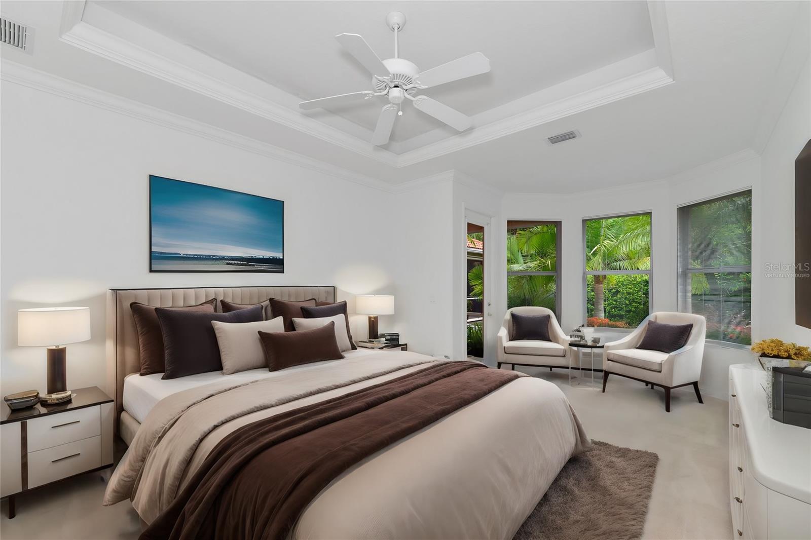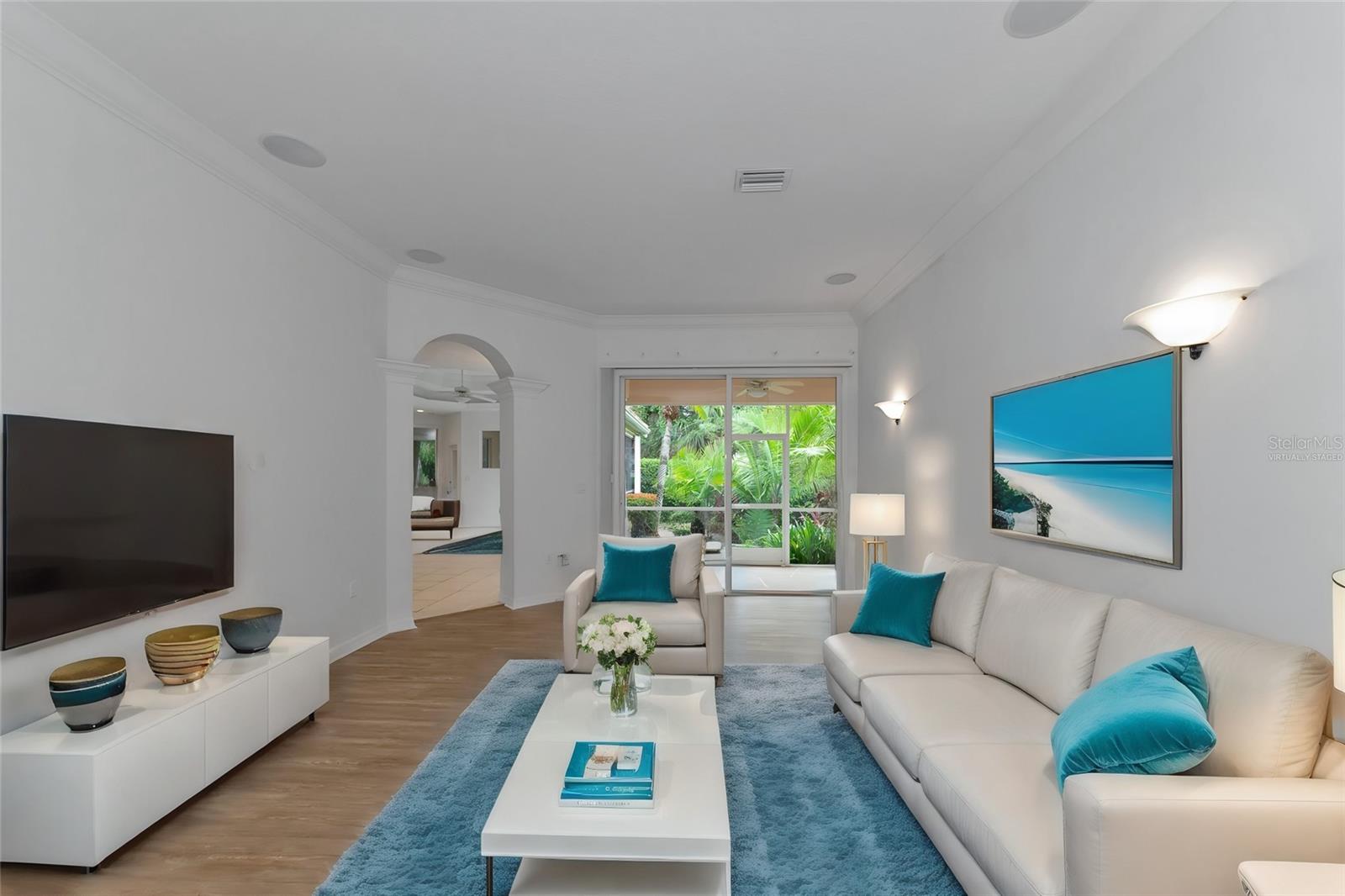 One or more photo(s) has been virtually staged. DON'T MISS THIS GREAT PRICE AT PRESTANCIA! MOVE-IN READY, AWARD-WINNING AUDUBON LANDSCAPE, PREMIER PGA TPC COMMUNITY, CLOSE TO GULF BEACHES Imagine driving home to a spectacular PGA Tournament Players Club community at Prestancia, Sarasota’s premier golf club with 2 18-hole courses “offering a balance of championship play with aesthetic beauty. ‘Whether you are a nature lover or golf enthusiast your soul will be invigorated as you drive through this beautifully landscaped, award winning Audubon Cooperative Sanctuary of 565 acres. Your home will be a hidden gem located on a corner lot, tucked away in the quaint and private community of Monte Verde within Prestancia. Make your approach into a paver driveway, tile roof one-level maintenance-free home, which includes landscaping, irrigation, 24-hour security at the gates and the community pool conveniently located across the street. Enjoy the charming and elegant architectural design of the house built on one of the most prestigious communities in Sarasota. It features 4 Bedrooms, 3 full Bathrooms which includes a split floor plan with formal dining/living rooms, a spacious kitchen with warm wood cabinetry and corian counters, that flow into an extraordinary and spacious family room that feels like a Great Room with its high double tray ceilings, combines several sets of sliding glass doors and clerestory windows for abundant natural light throughout the living space. You will appreciate the art niches, sconces, crown molding and extra details that make this home special. The Primary Bedroom has high tray ceilings, clerestory windows for natural light, a bay window to enjoy relaxing and reading in the sunlight, with a door access to lanai facing the tropical courtyard garden. The bath area offers a soaking tub, shower, water closet, His and Her's vanities and closets. For your delight and relaxation enjoy two covered lanais and a beautiful plush garden within the open-air courtyard that backs up into a greenbelt, creating a truly private setting in a tropical paradise. The home includes hurricane shutters and features an electric hurricane security shutter that encloses your stylish entrance double doors. Only a short 18–30-minute drive to Sarasota’s cultural epicenter, with gorgeous sugar-sand beaches that include three of Florida’s most beloved and famous Gulf beaches: Siesta Key, Lido Key, and Longboat Key. Shop and dine at St Armands on Lido Key, enjoy the arts, shopping, and fine dining at Sarasota’s Main Street and Downtown, providing the utmost convenience and a vibrant lifestyle. Sarasota/Bradenton Airport is 34 mins away and Tampa International Airport, NFL, MLB, NHL games in Tampa/St Pete, are 1 ¼ hour drive. Come and start enjoying your life in this picturesque premier setting on the Gulf coast of Florida.