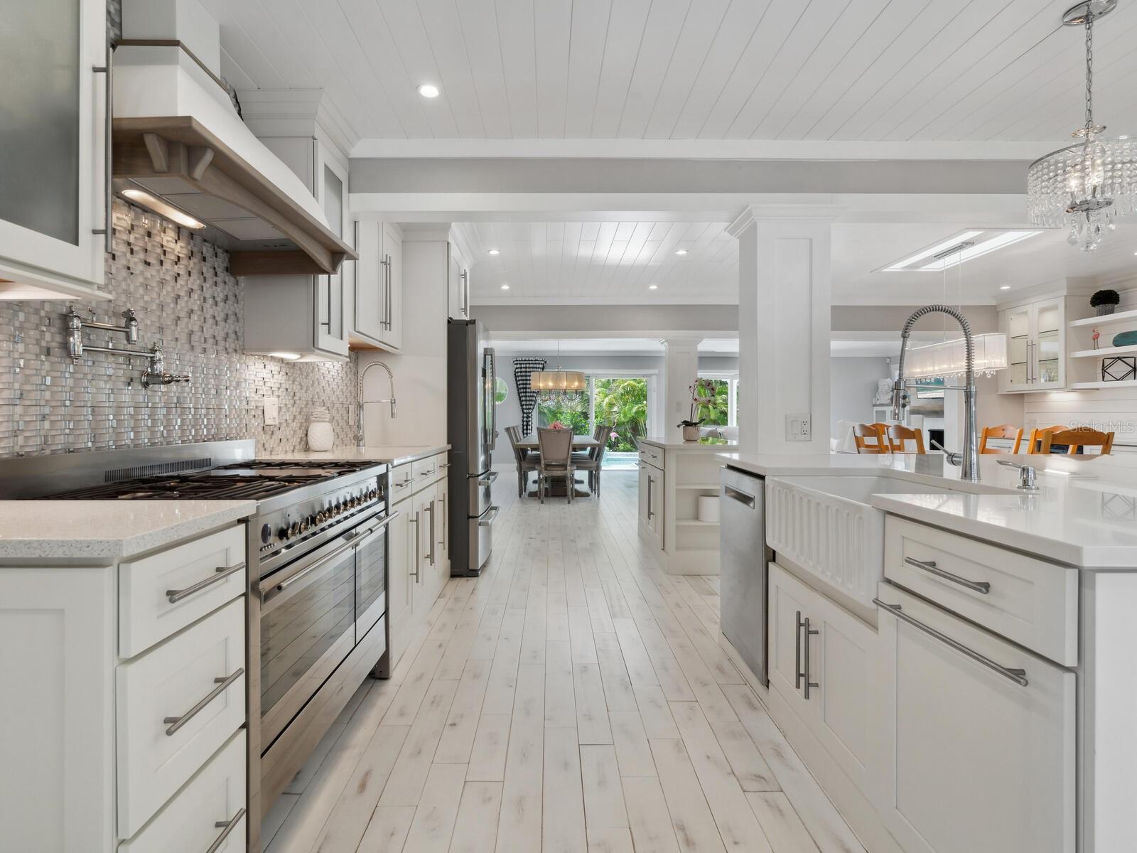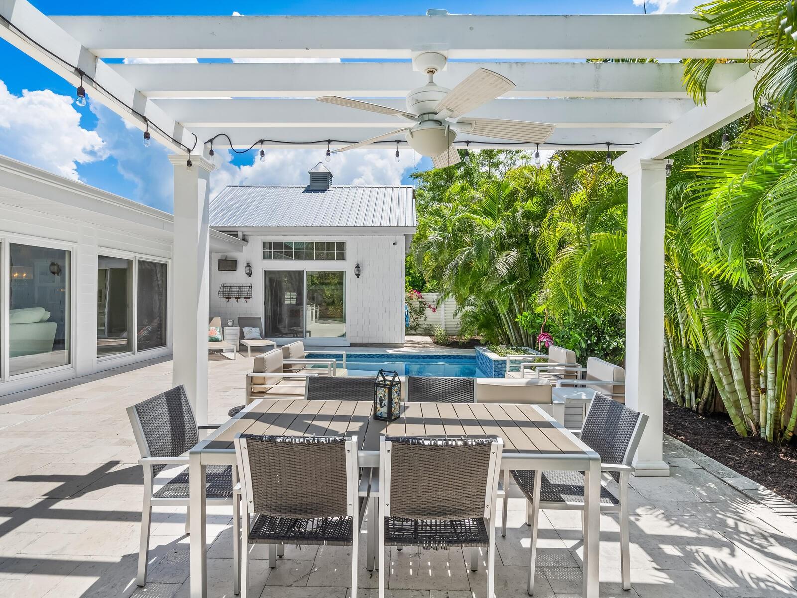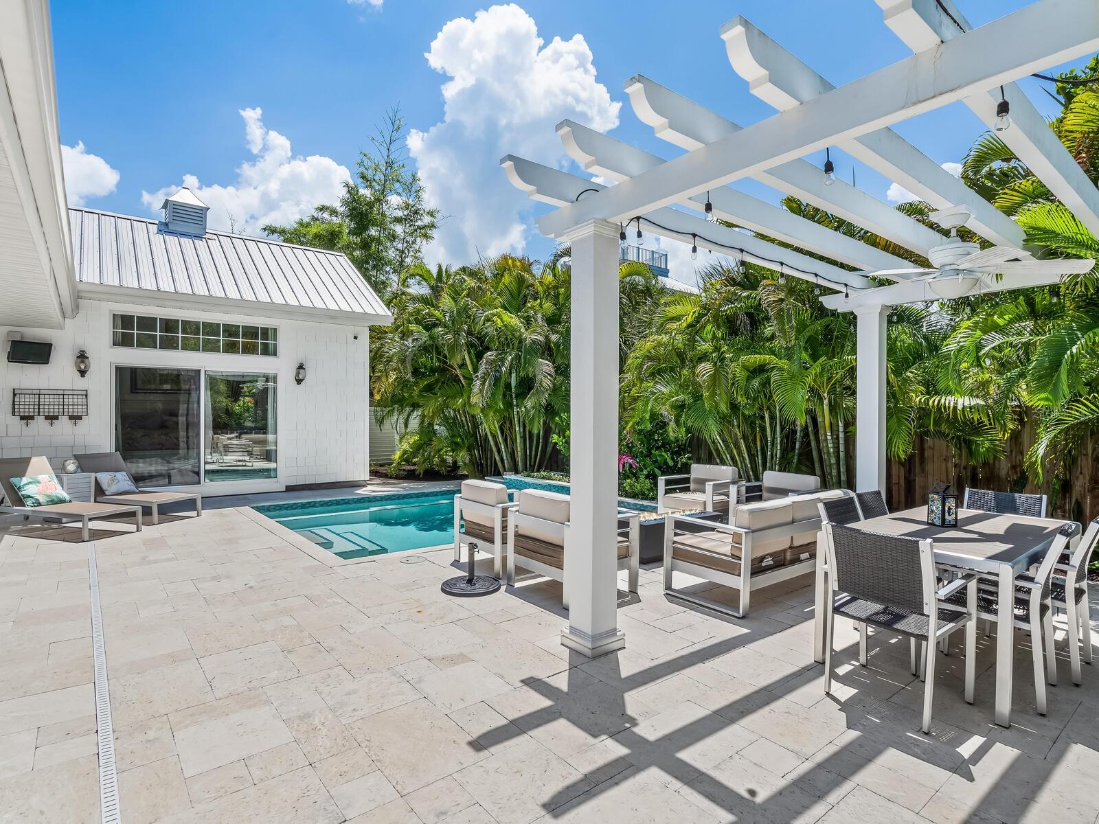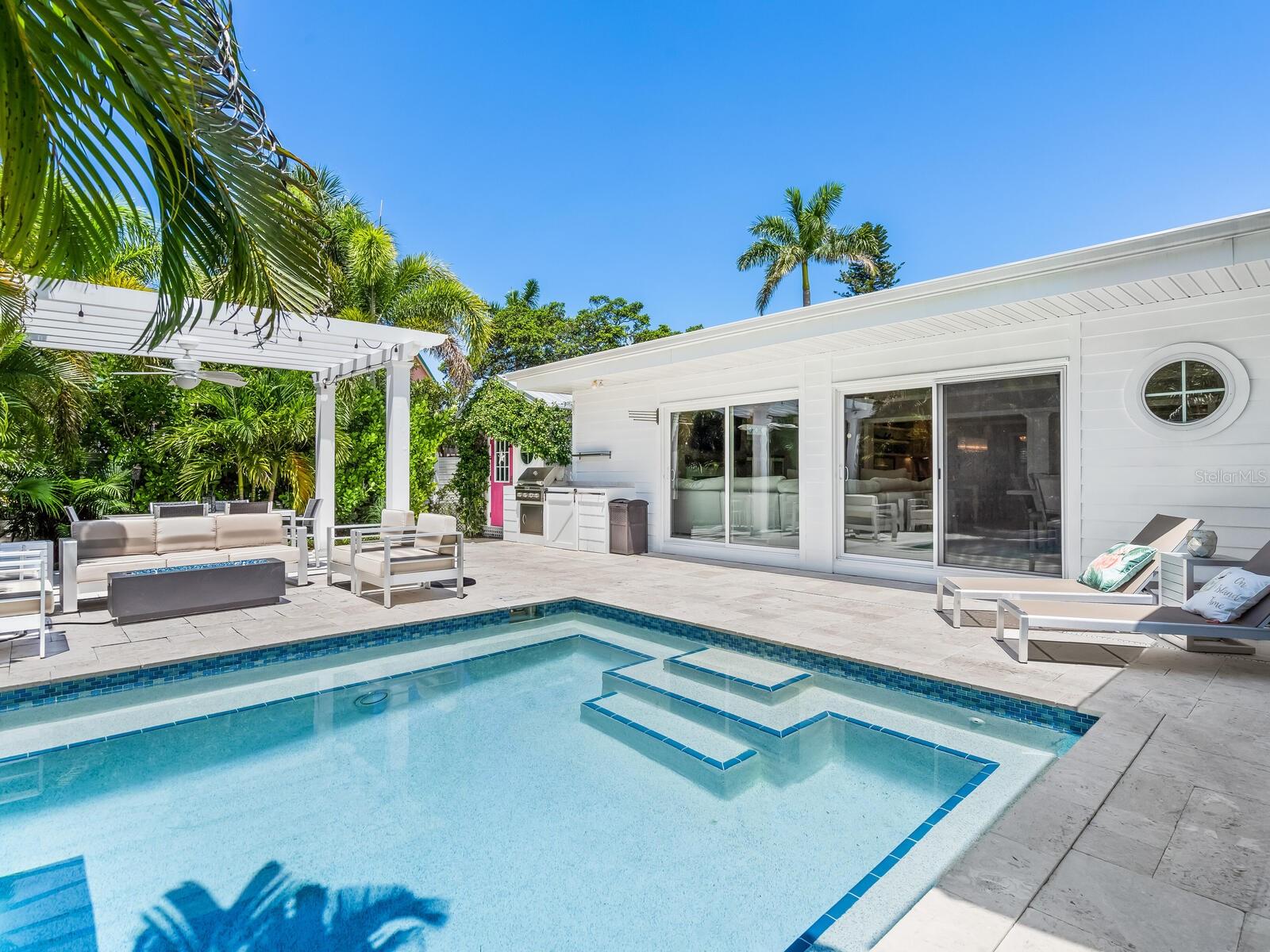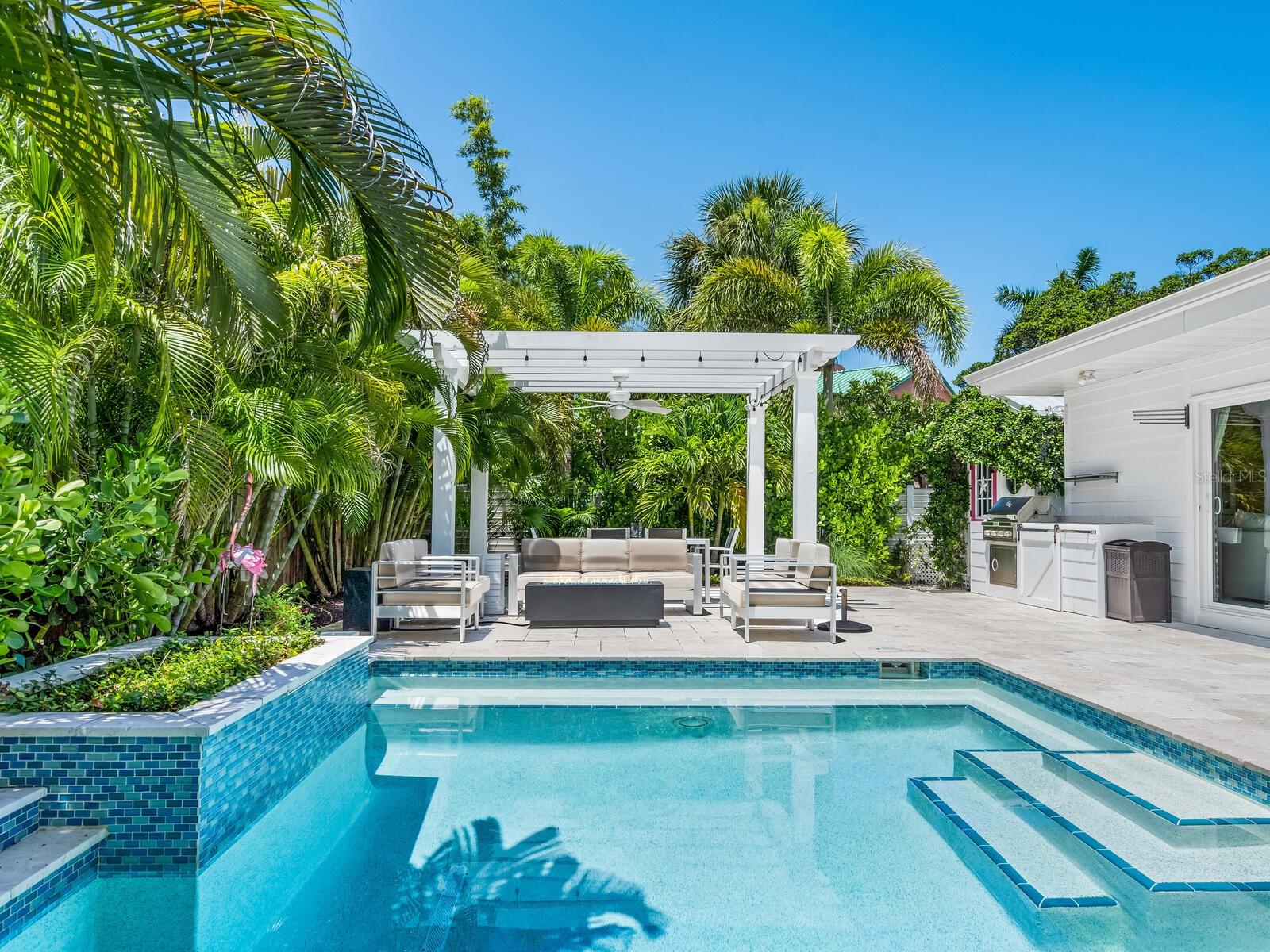 Beach house perfection! Beautifully updated with unique high-end finishes and less than a block from the beach! This charming Lido Beach house offers a heated swimming pool, and an attached legal, full one-bedroom apartment with private entrance. Designed for large gatherings, the main house features a bright open floor plan with chef's kitchen, gas stove and a massive island that will seat six-plus. A split-plan home, you will delight in the luxurious primary suite with spa bath, large walk-in closet and sliders that lead to the pool. Two additional bedrooms and one full and one-half baths complete the main house. The guest apartment offers private bedroom, full bath, full kitchen, laundry and private deck making it a self-sufficient space. With its proximity to St Armands Circle and downtown Sarasota Florida, this is a wonderful second home or rental property, with income potential, as weekly rentals are permitted.