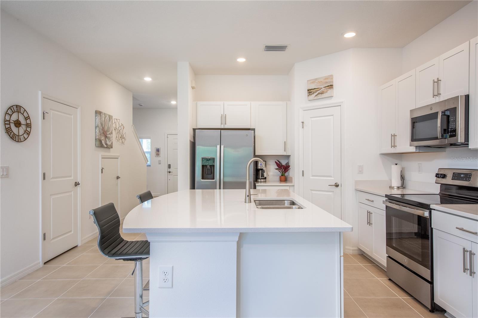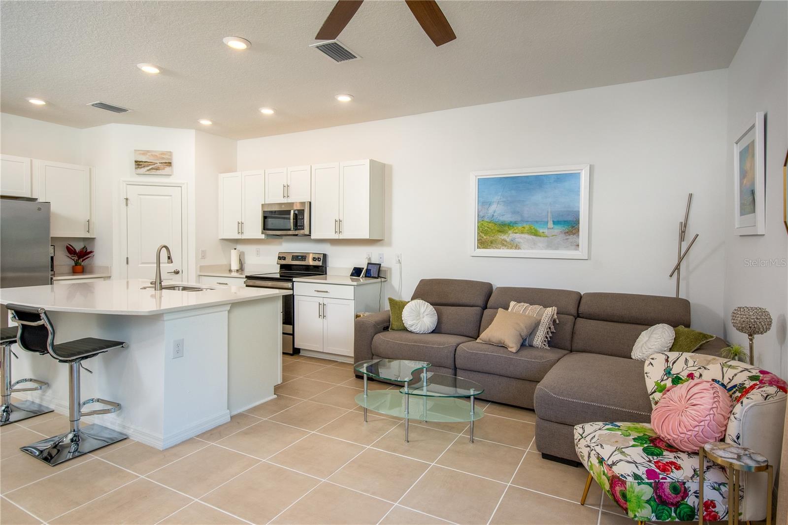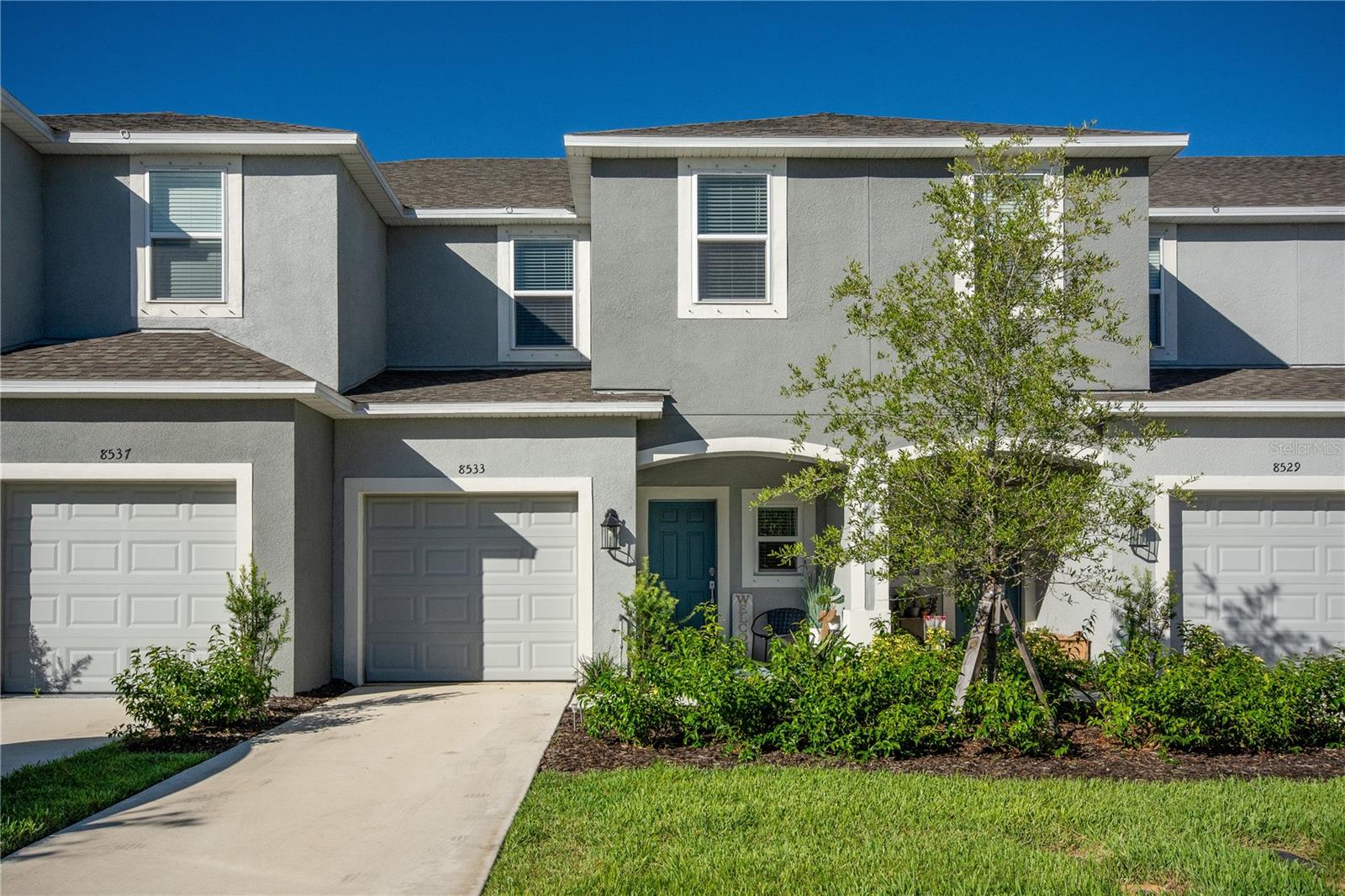 Move right in to this clean, bright and beautiful townhome that is just waiting for you! This Jasmine Model Townhome by Taylor Morrison is one-person owned for just one year. It has been meticulously maintained and loved! Well designed with an open concept, 3 bedrooms, 2 ½ baths, expansive island/breakfast bar, screened-in lanai and 1 car garage w/shelving & storage. The 2nd floor laundry closet w/high efficiency washer & dryer is so convenient in the center hall close to all 3 of the bedrooms. Enjoy your primary bedroom suite w/ensuite double vanity, enclosed shower and spacious walk-in closet. The perfect size guest bath w/tub & shower combo. All bedrooms, great room and lanai are equipped w/fan, light fixture combo, nice upgrade. Notably, there is plenty of storage in this townhome with under stair storage, a large pantry and linen closet. The builder upgrades in this unit include: upgraded cabinets, quartz countertops & upgraded floor tile. Skye Ranch has earned the reputation of being one of the most sought-after neighborhoods in Sarasota County as well as being in a great school district (brand new public school now under construction) & close to the new Turner Park which gives you access to pickle ball, tennis courts & basketball courts, baseball & soccer fields, volleyball, playgrounds and dog parks. Why wait for a new build when you can move in immediately!