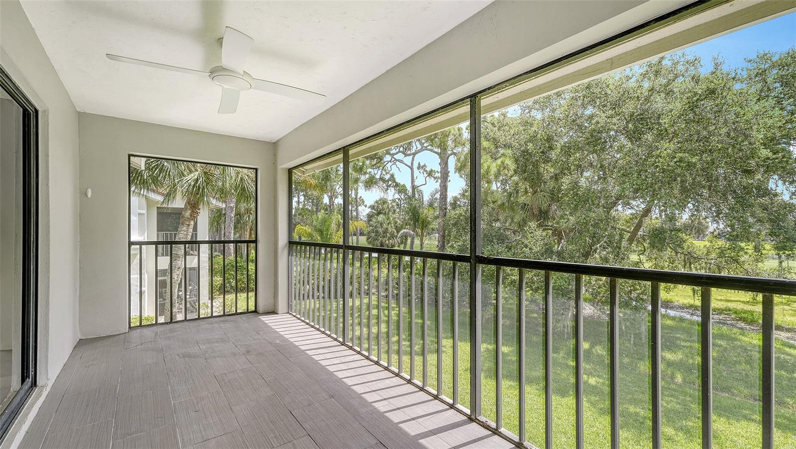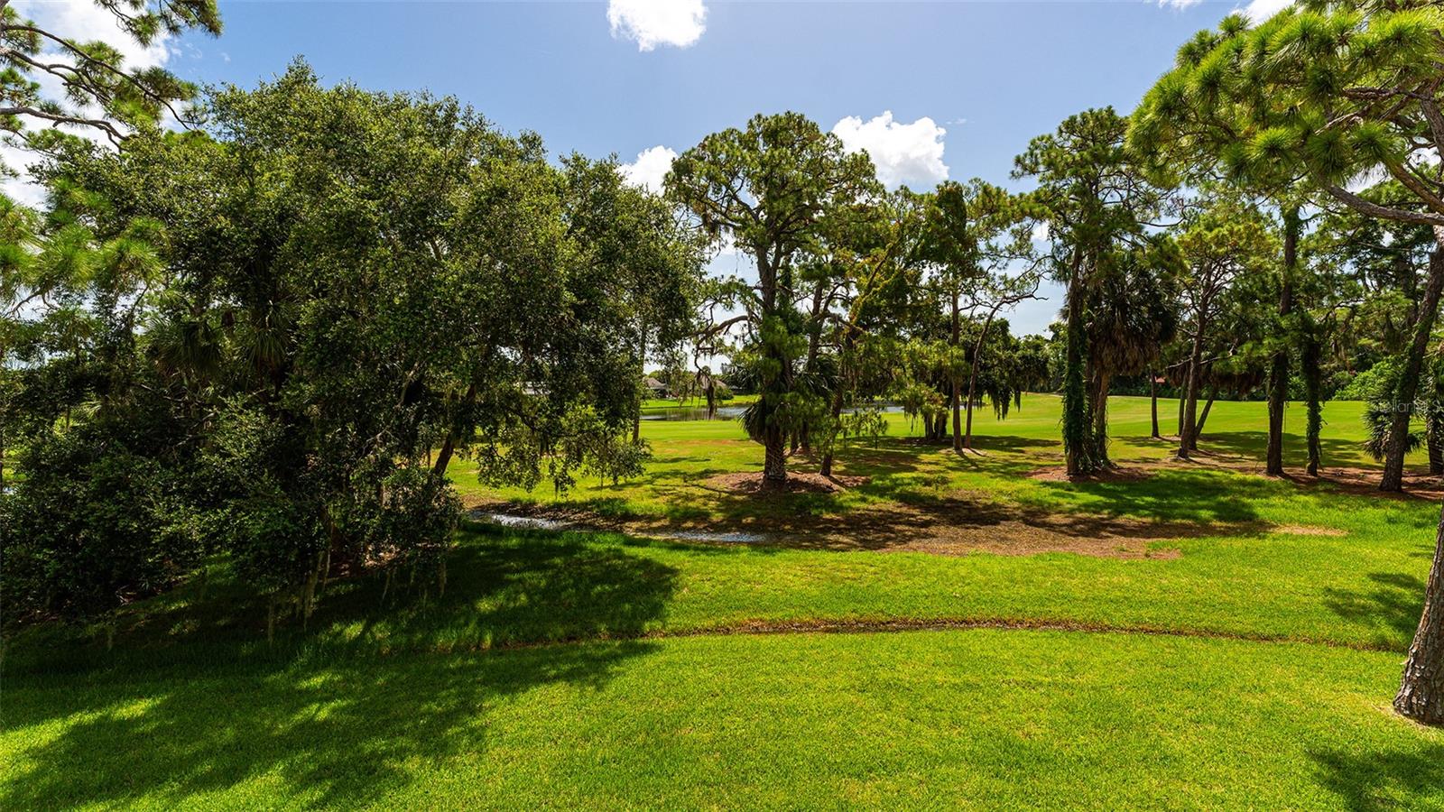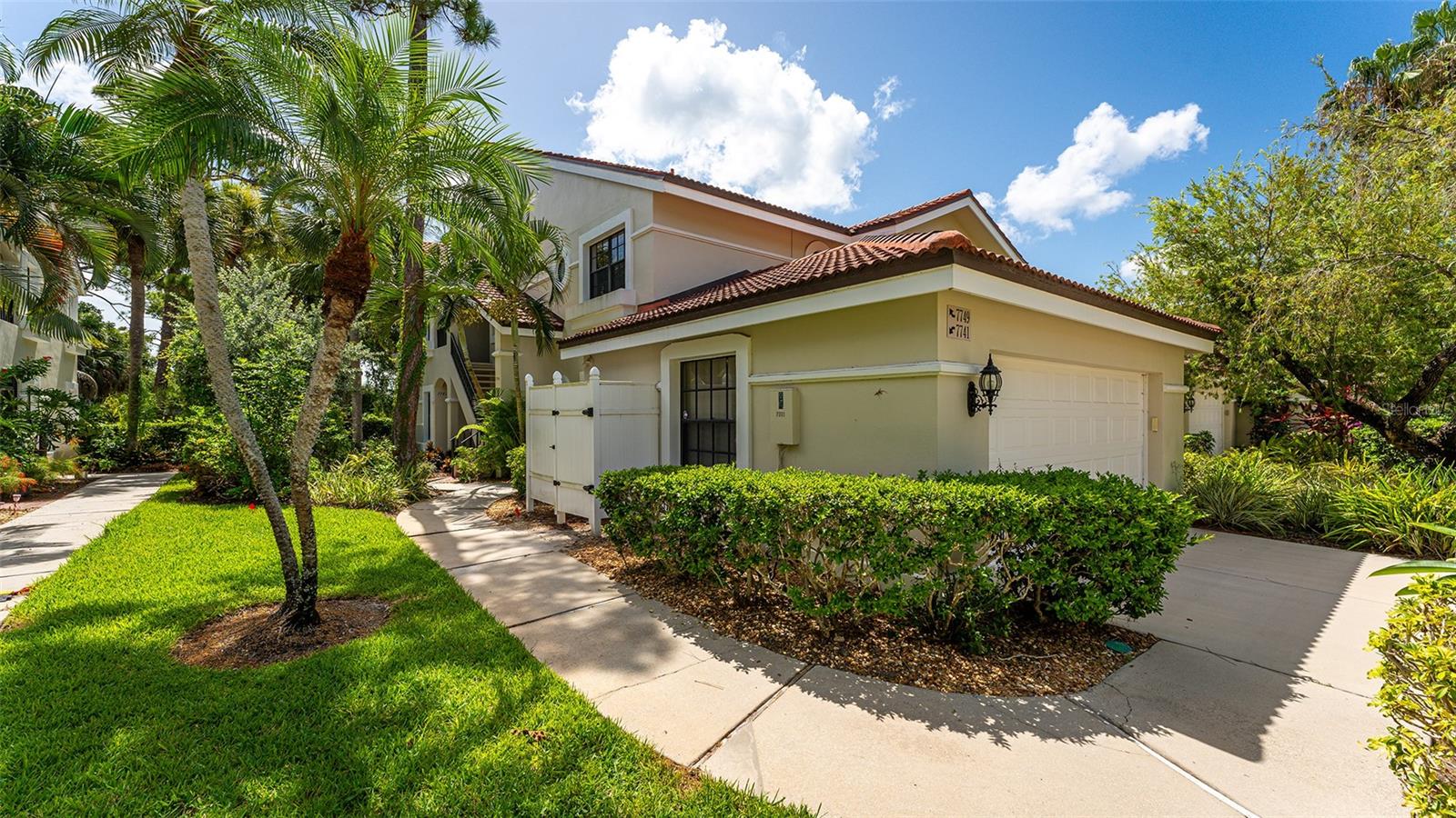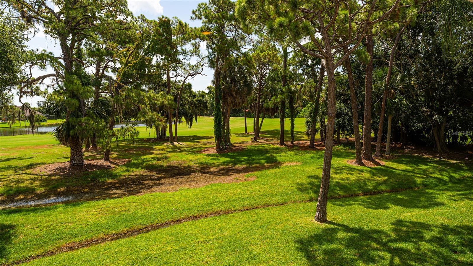 One or more photo(s) has been virtually staged. Experience serenity and comfort in this 2nd floor freshly painted 2BR/2BA + den Rutenberg condo conveniently located near the Serendipity Tennis Club, Legacy Trail, Costco, YMCA, with easy access to I75 and the famous award-winning Siesta Key beach. Immerse yourself in the tranquility and natural beauty of your outdoor space and expansive views of the Prestancia PGA golf course. You will entertain in style in this open floor plan featuring a formal dining room, expansive vaulted ceilings and a cozy fireplace. Unleash your culinary prowess in the elegantly remodeled, highly functional, eat-in gourmet kitchen with Quartz countertops, tile backsplash and stainless steel appliances. The primary suite is an owners' dream retreat including a spacious walk-in closet, elegantly updated master bath with double sinks and convenient walk-in shower. The den has a closet and is ideal for an office, work-out room, hobby room or could easily be converted into a 3rd bedroom. There is a 2-car detached garage, located steps away down the street, featuring built-in cupboards and attic space for your extra storage needs. Fairway Woods is a gated, charming, wooded, maintenance-free community with a heated pool and a recently updated covered pavilion for fun, organized neighborly social gatherings.